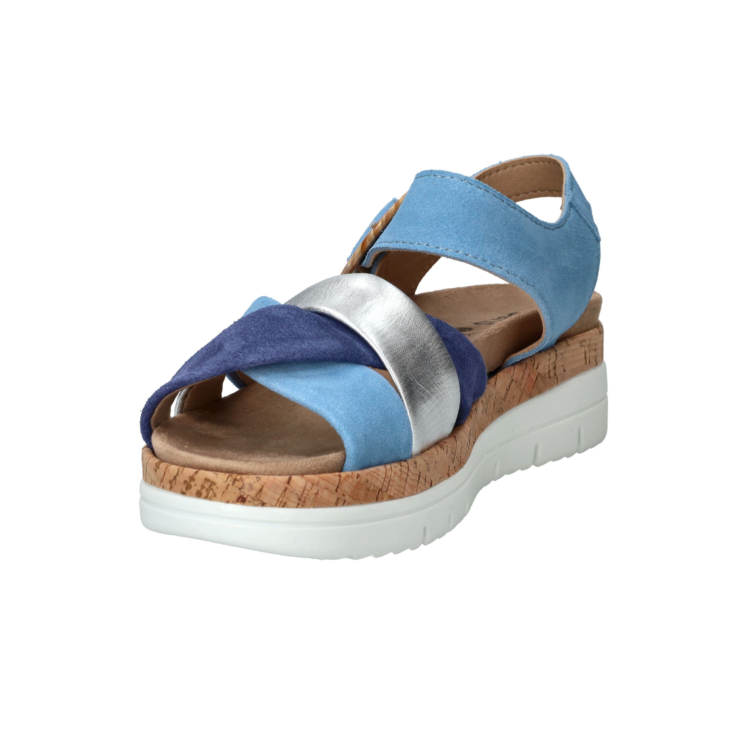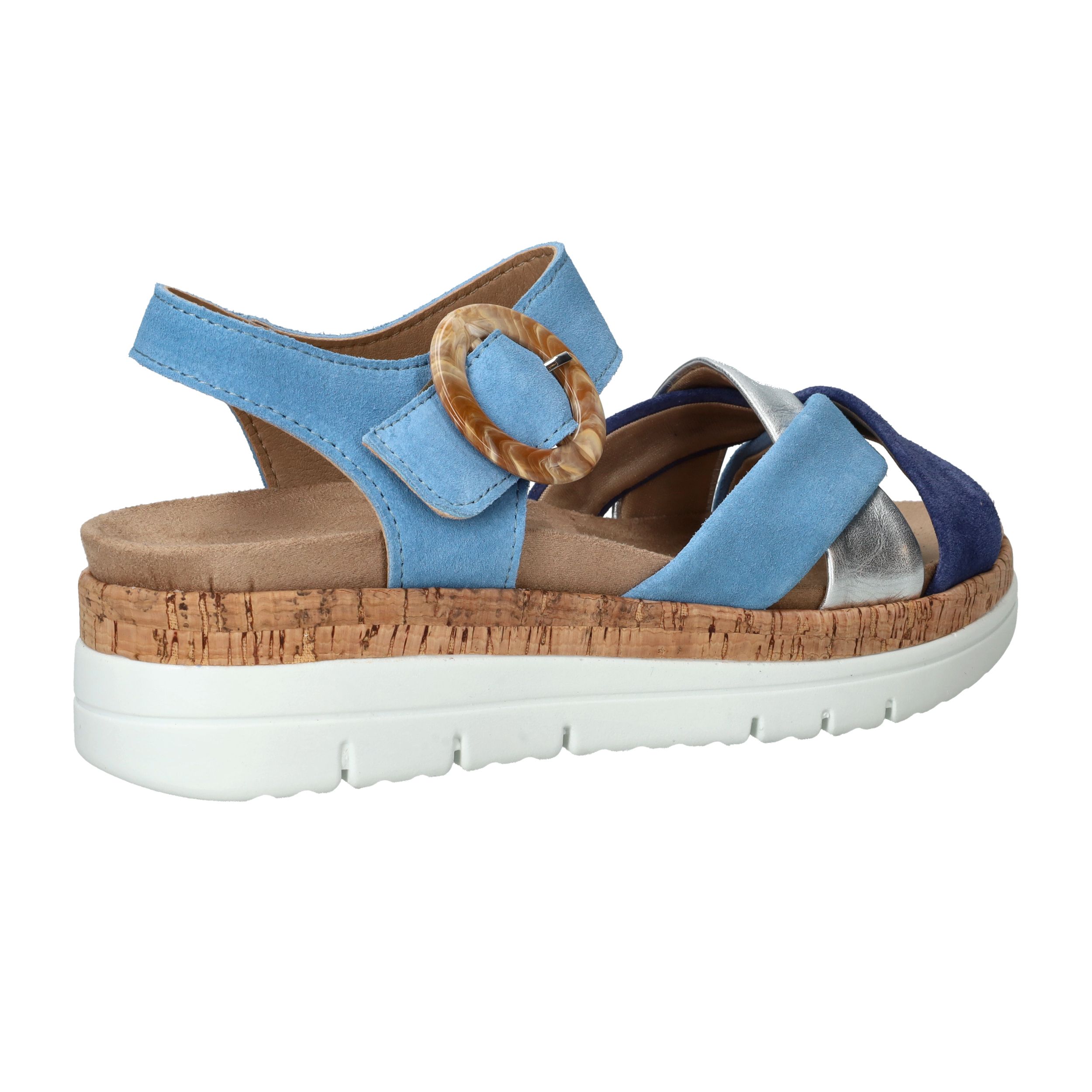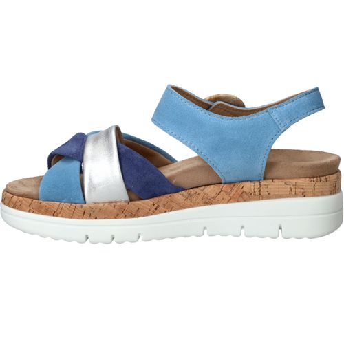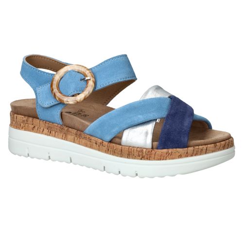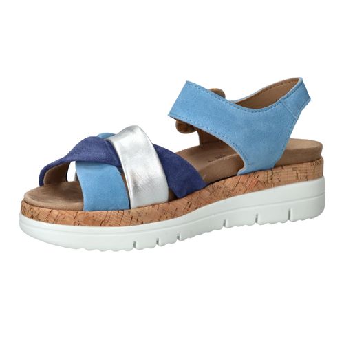 Een speelse combinatie van stijl en comfort: deze sandalen van Sens zijn een frisse toevoeging aan je zomergarderobe. De banden van zacht suède en glanzend metallic zorgen voor een trendy en luxe uitstraling. Deze sandalen zijn ontworpen voor dames met voetbreedte G en bieden comfort dankzij het zachte voetbed en de lichtgewicht zool. De combinatie van lichtblauw, zilver en navy maakt elke stap stijlvol.