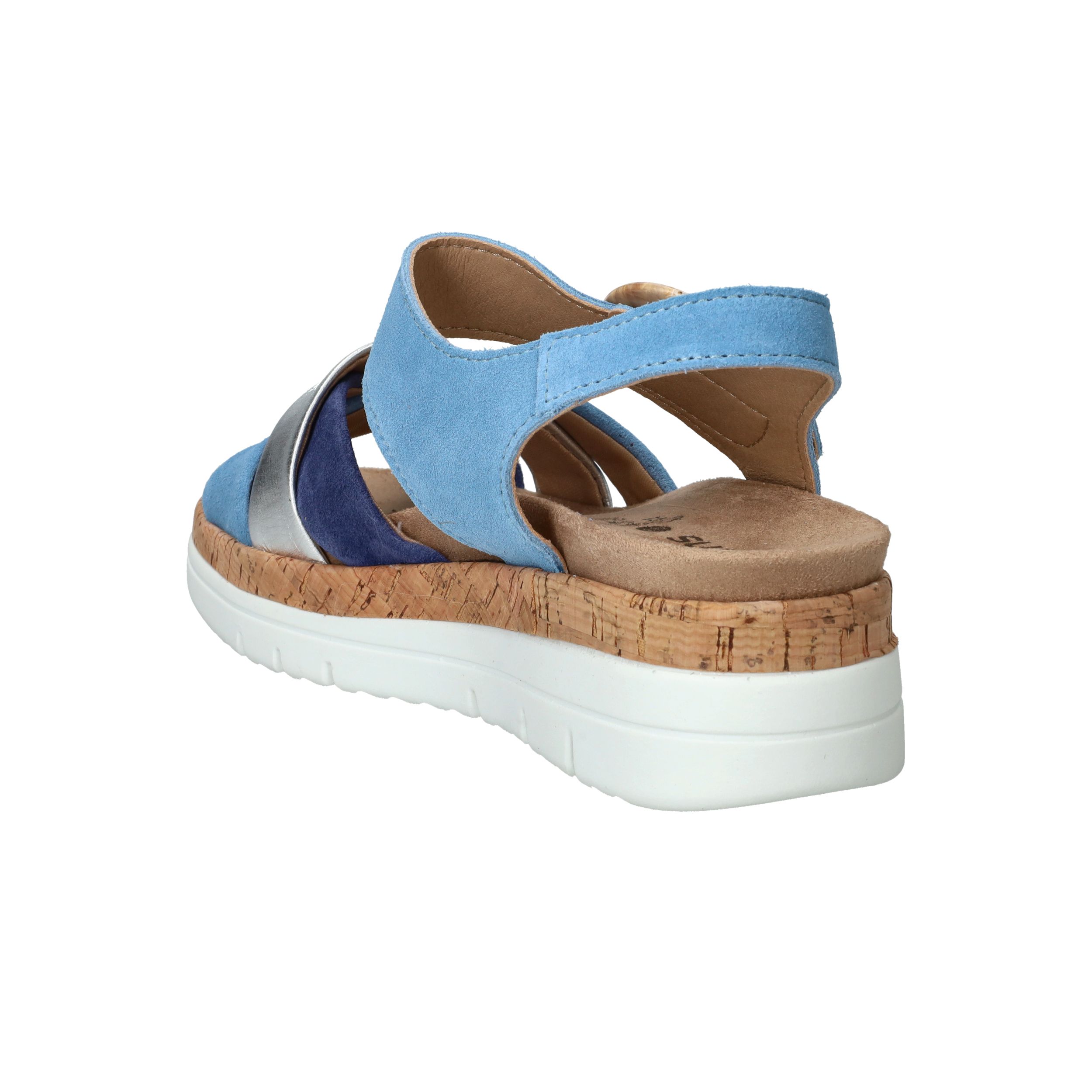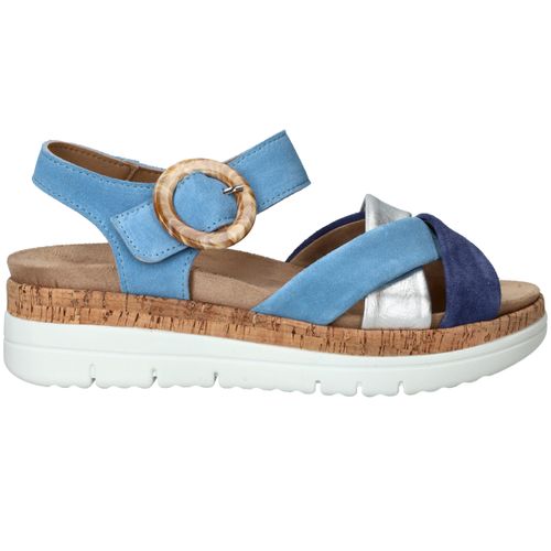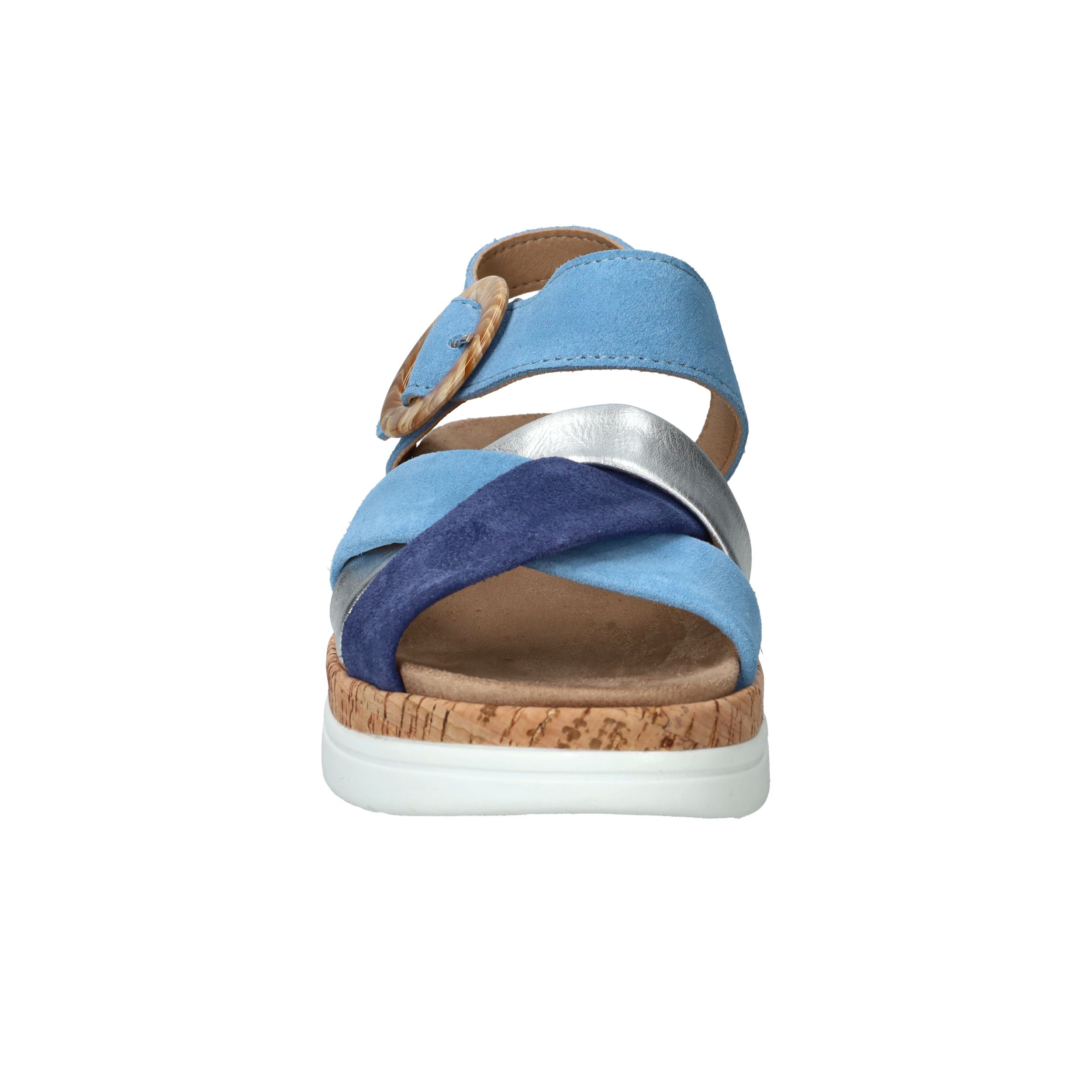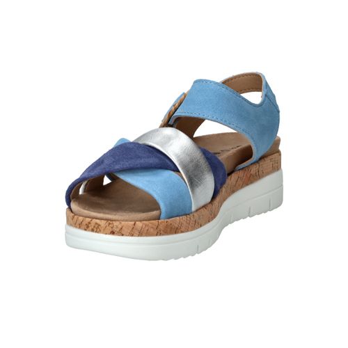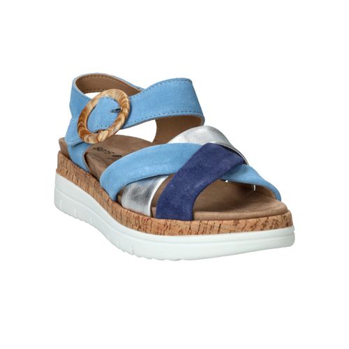 Een speelse combinatie van stijl en comfort: deze sandalen van Sens zijn een frisse toevoeging aan je zomergarderobe. De banden van zacht suède en glanzend metallic zorgen voor een trendy en luxe uitstraling. Deze sandalen zijn ontworpen voor dames met voetbreedte G en bieden comfort dankzij het zachte voetbed en de lichtgewicht zool. De combinatie van lichtblauw, zilver en navy maakt elke stap stijlvol.