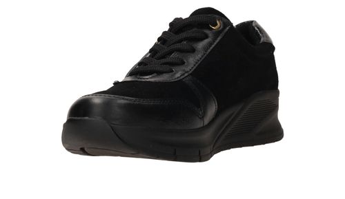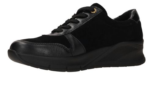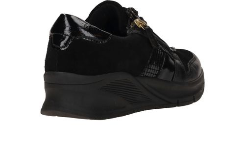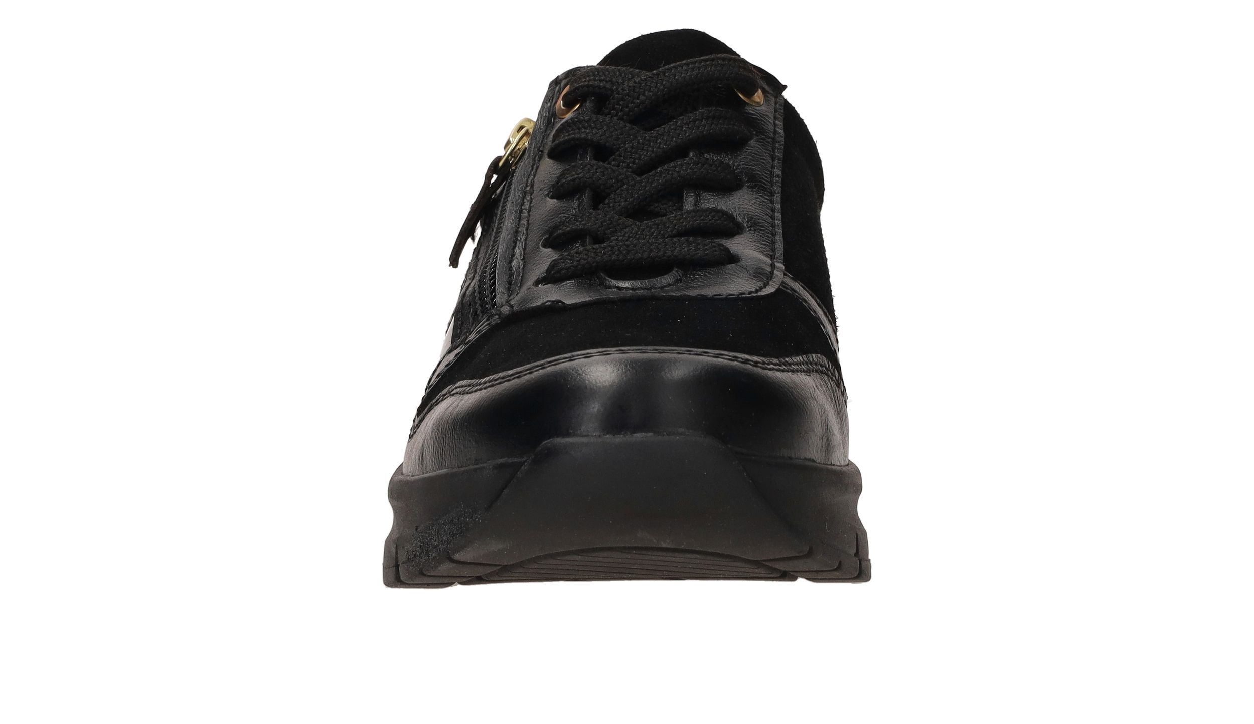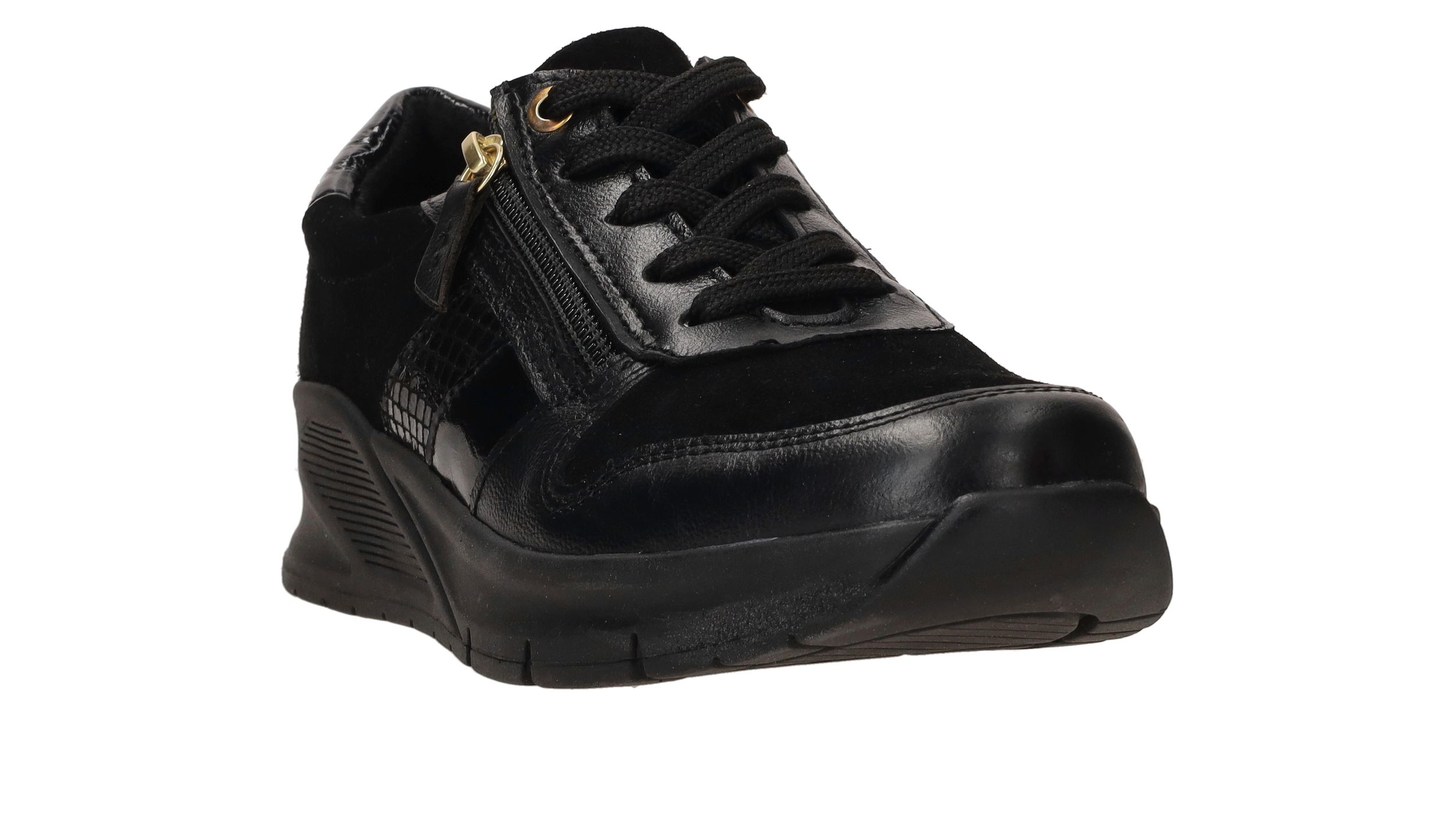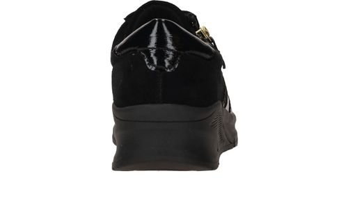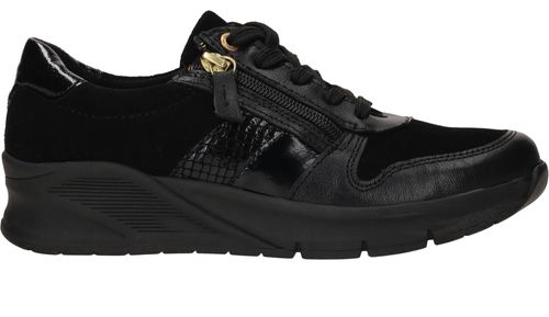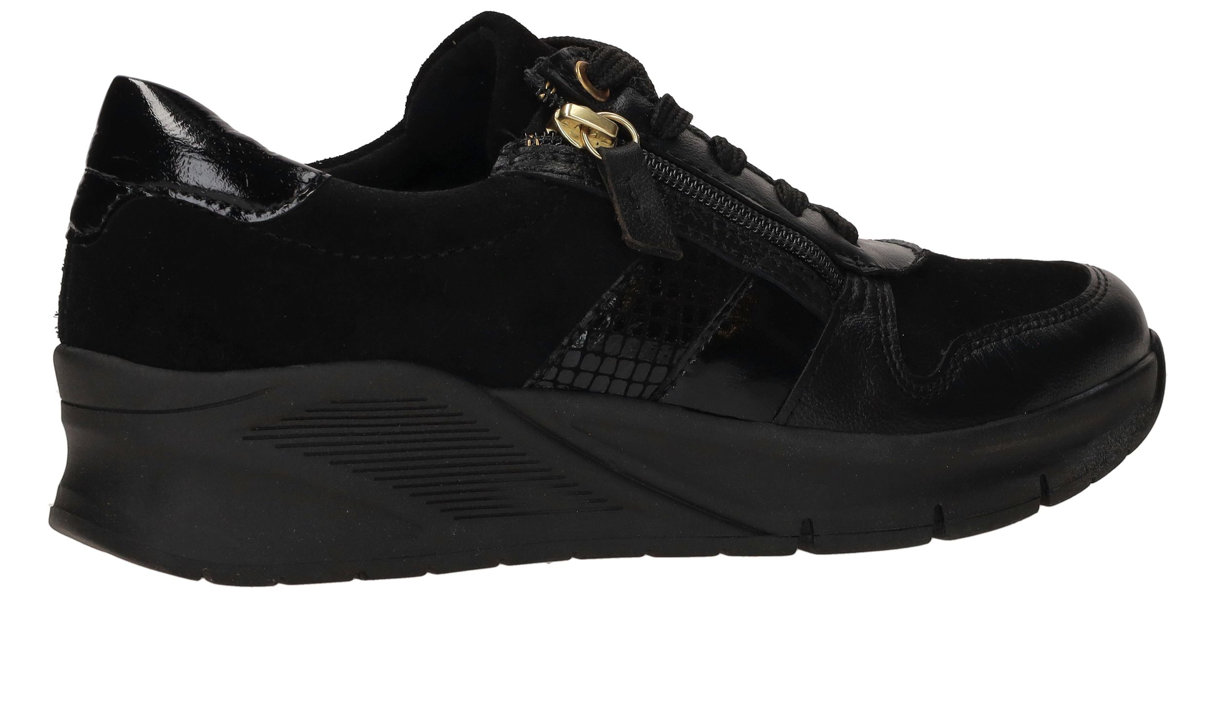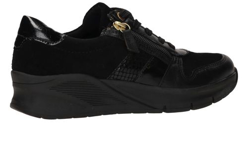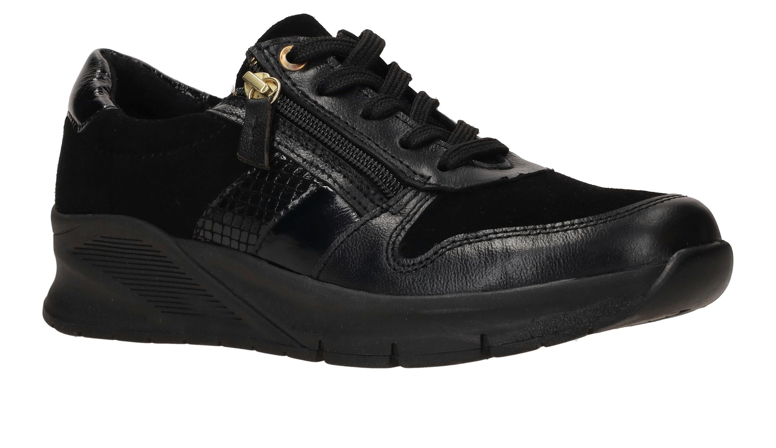 Sportieve zwarte Sens sneaker voor dames. De sneaker is helemaal gemaakt van leer en je stapt er makkelijk in door de veter- en ritssluiting.
