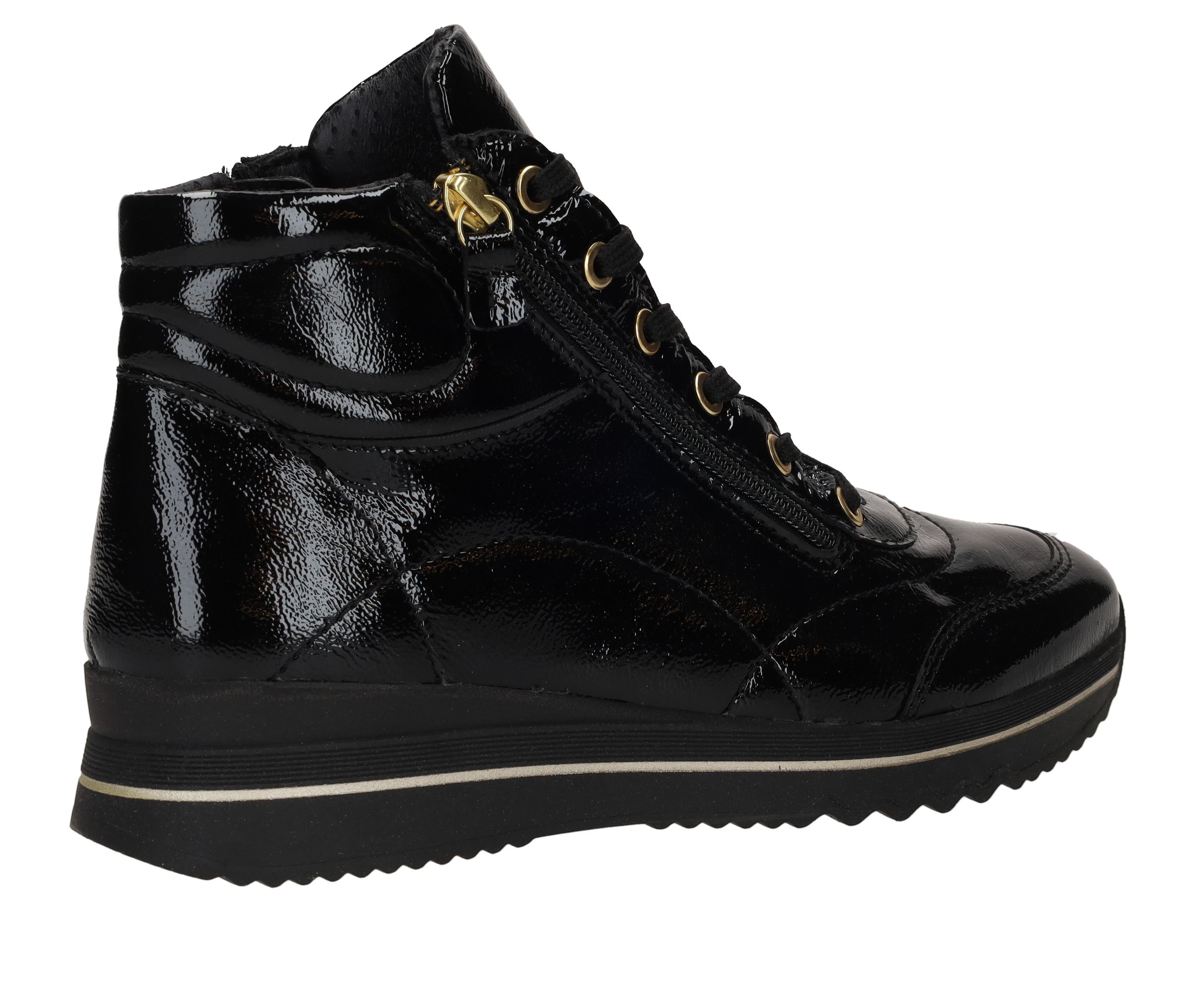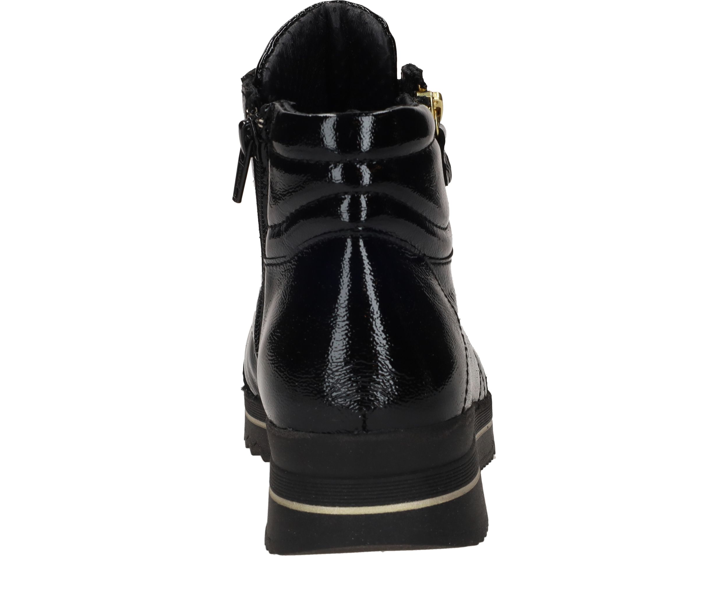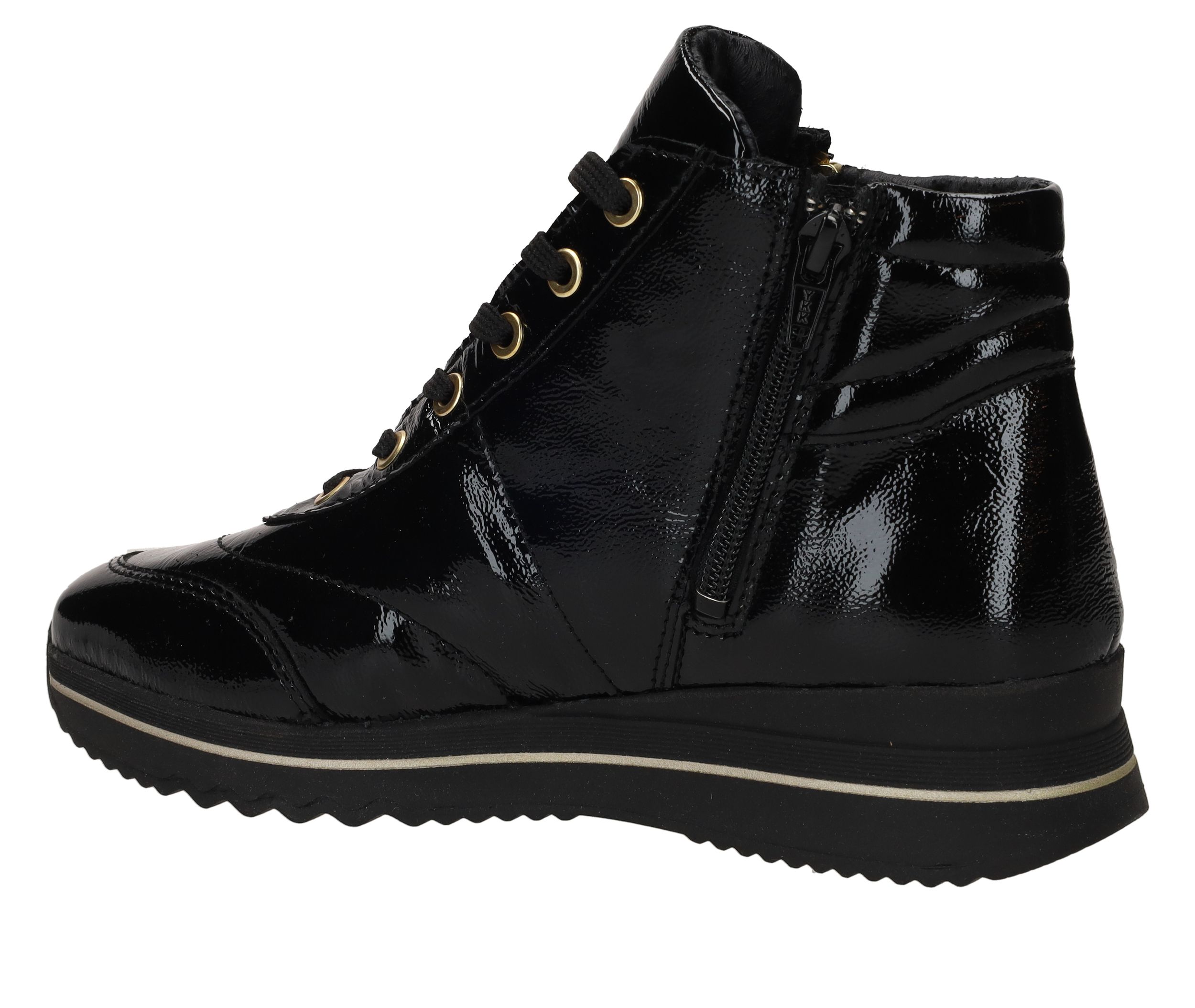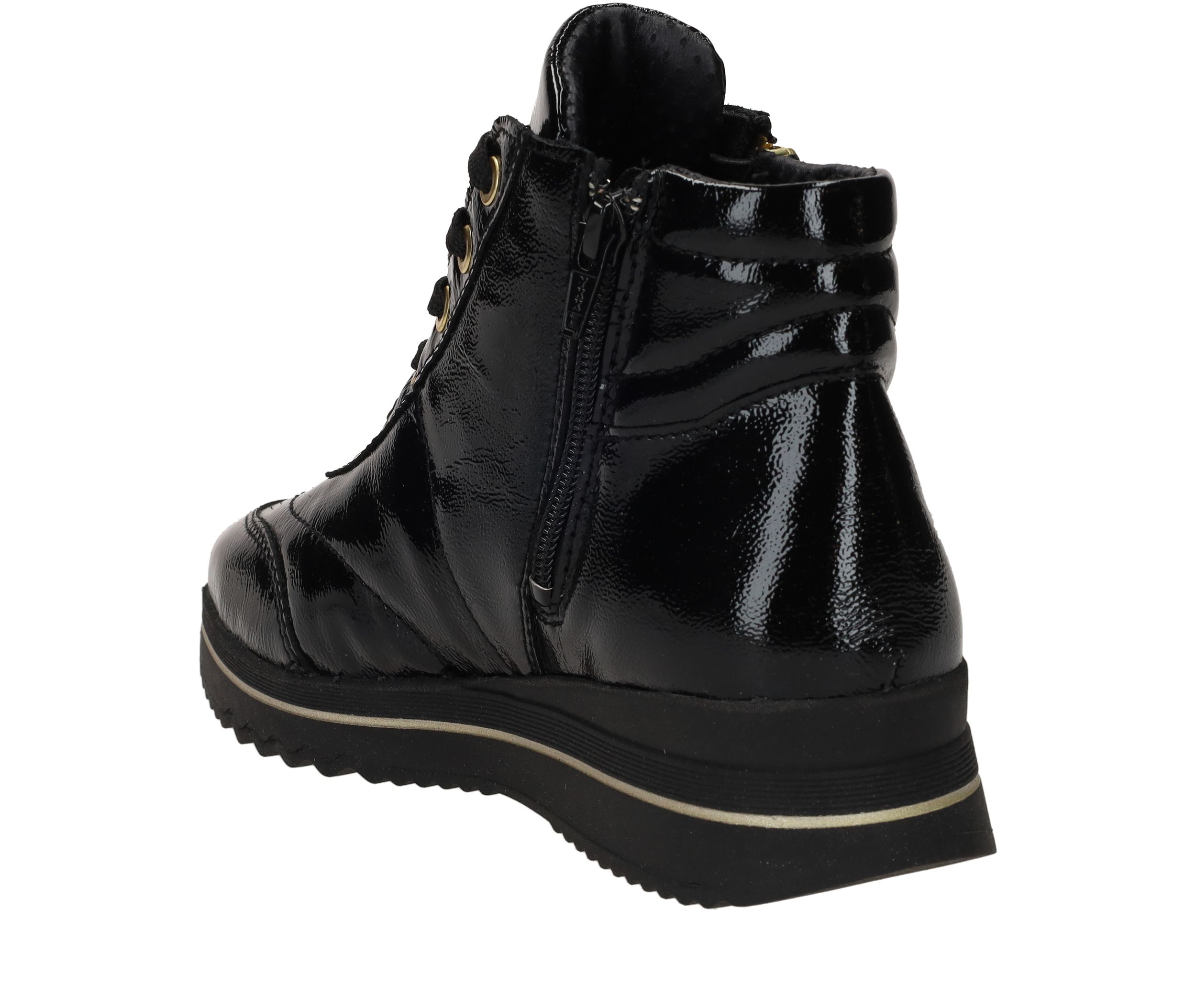 - De zwarte damesboot heeft voetwijdte H en is daarom geschikt voor een bredere voet.