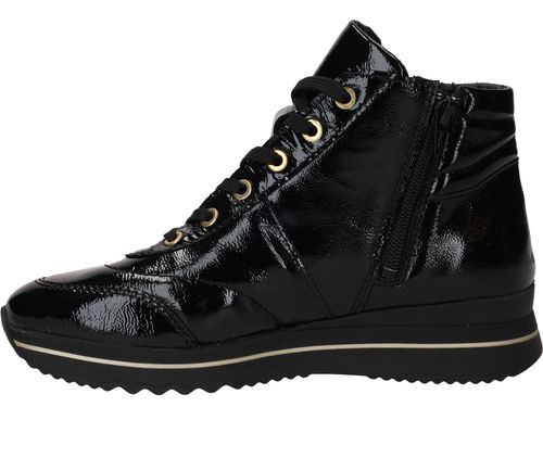 Combineer stijl en comfort met deze lakzwarte Sens veterboot. De schoen is mooi afgewerkt met gouden accenten en gemaakt van leer.