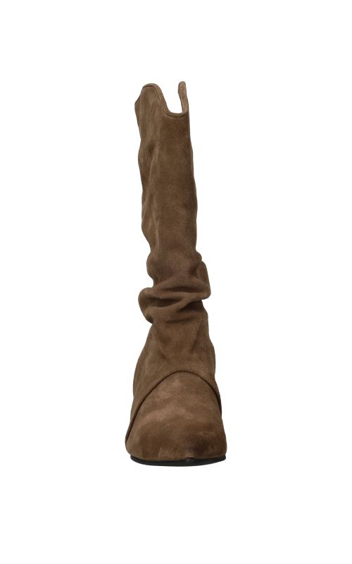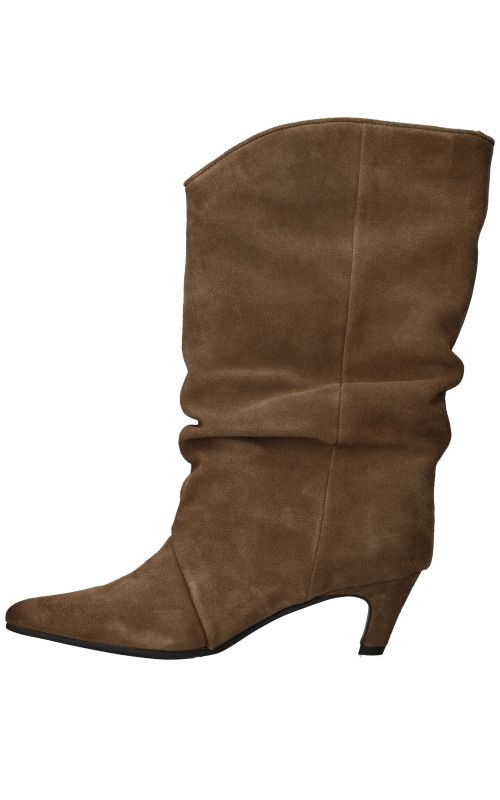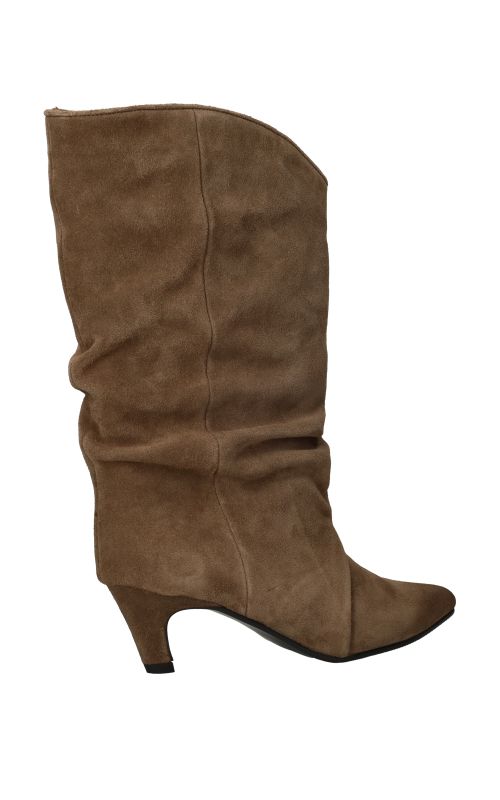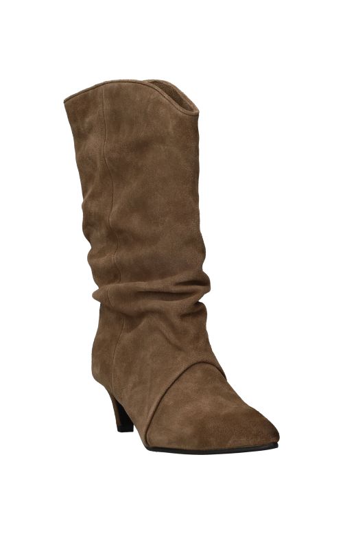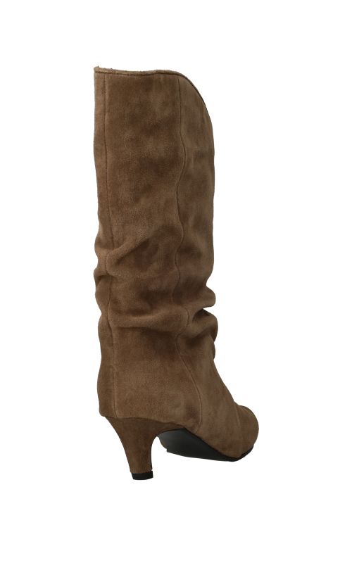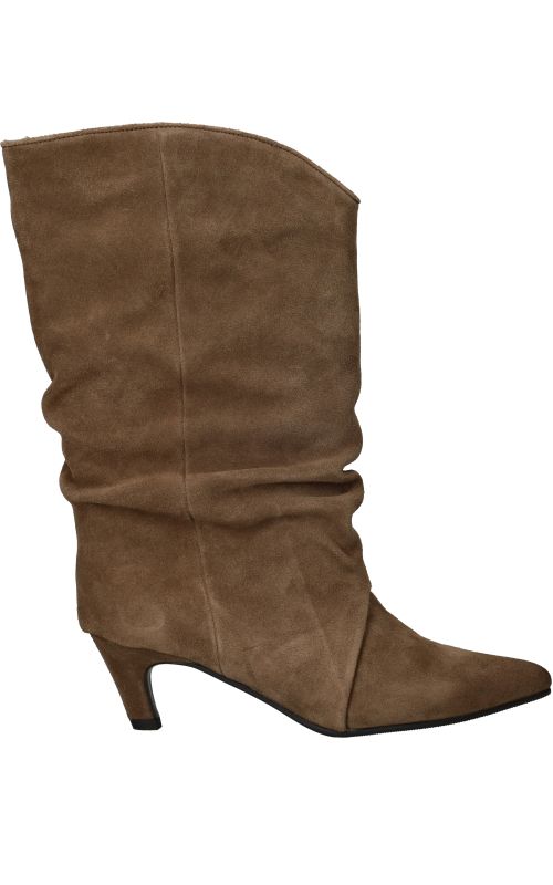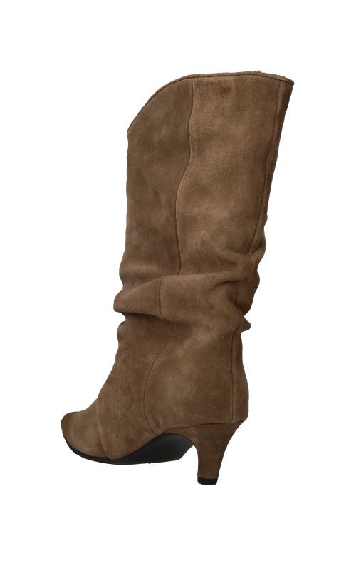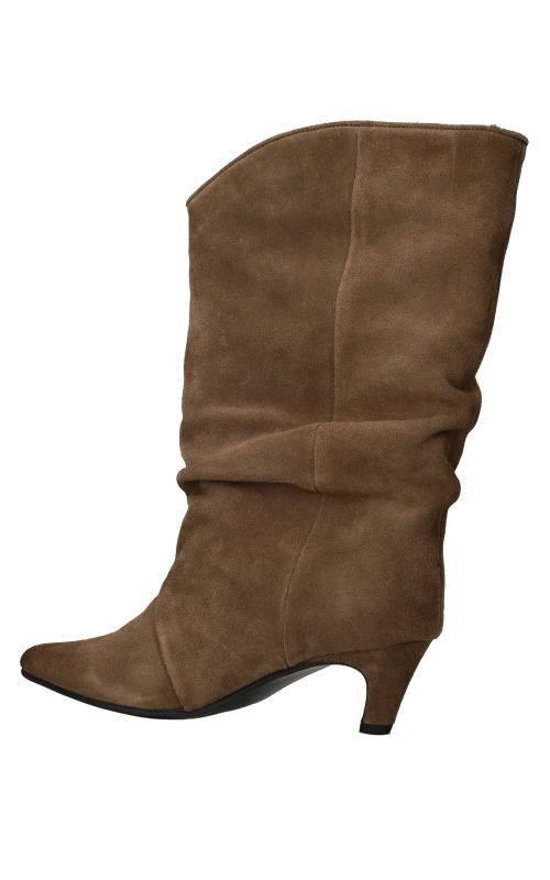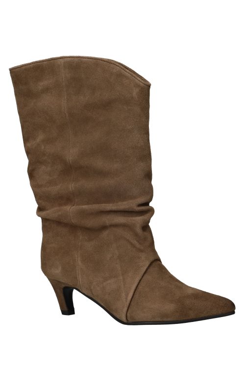Deze Shoecolate laars voor dames in stijlvolle taupe tint is de perfecte mix van elegantie en draagcomfort. De buitenkant is gemaakt van zacht suède dat de laars een luxe uitstraling geeft, terwijl de geplooide schacht zorgt voor een nonchalante, vrouwelijke look. De voering van textiel en kunstleer voelt prettig aan en zorgt voor een aangename pasvorm. Met de middelhoge hak creëer je een elegante houding zonder in te leveren op comfort – ideaal voor een modieuze herfst- of winterlook.