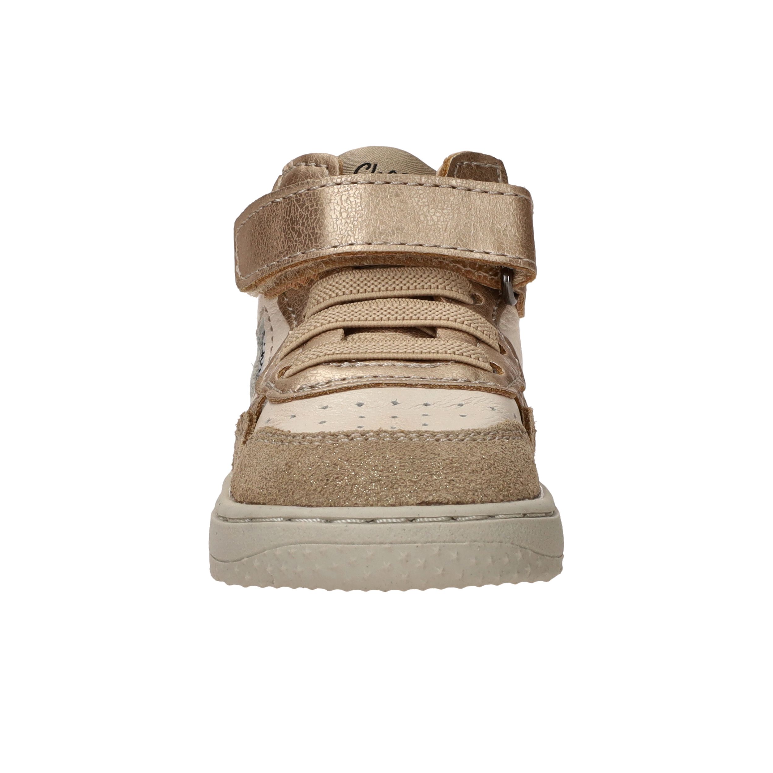 Deze glanzende Shoesme Baby-Proof klittenbandschoenen in champagnekleur zijn perfect voor meisjes die hun eerste stapjes zetten. Het kunstleren bovenwerk met metallic finish maakt ze feestelijk én praktisch, terwijl de leren voering zorgt voor een zacht en ademend gevoel. Dankzij de flexibele zool en de stevige pasvorm biedt deze klittenbandschoen optimale ondersteuning bij elke beweging. De klittenbandsluiting maakt het aan- en uittrekken extra gemakkelijk voor ouder én kind.
