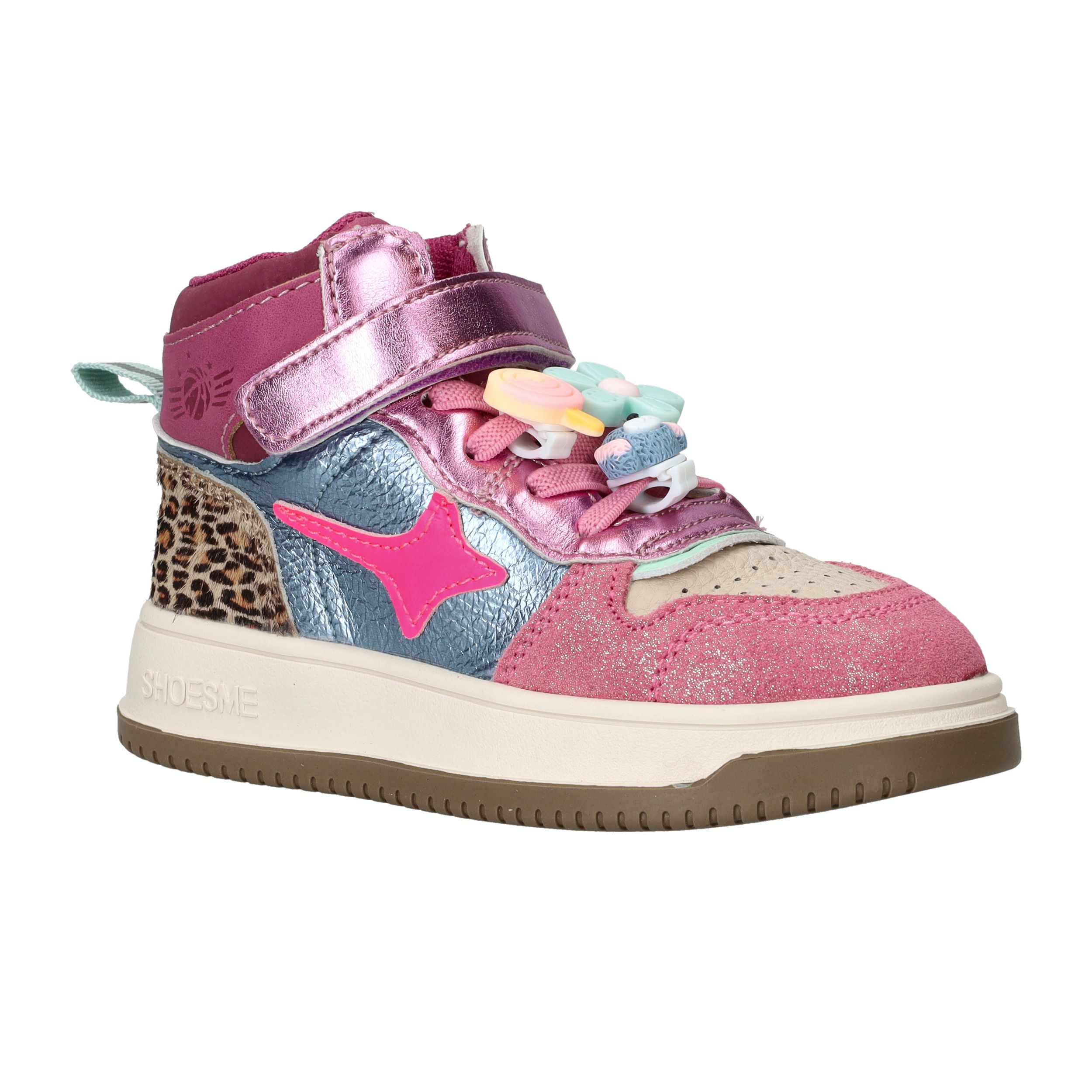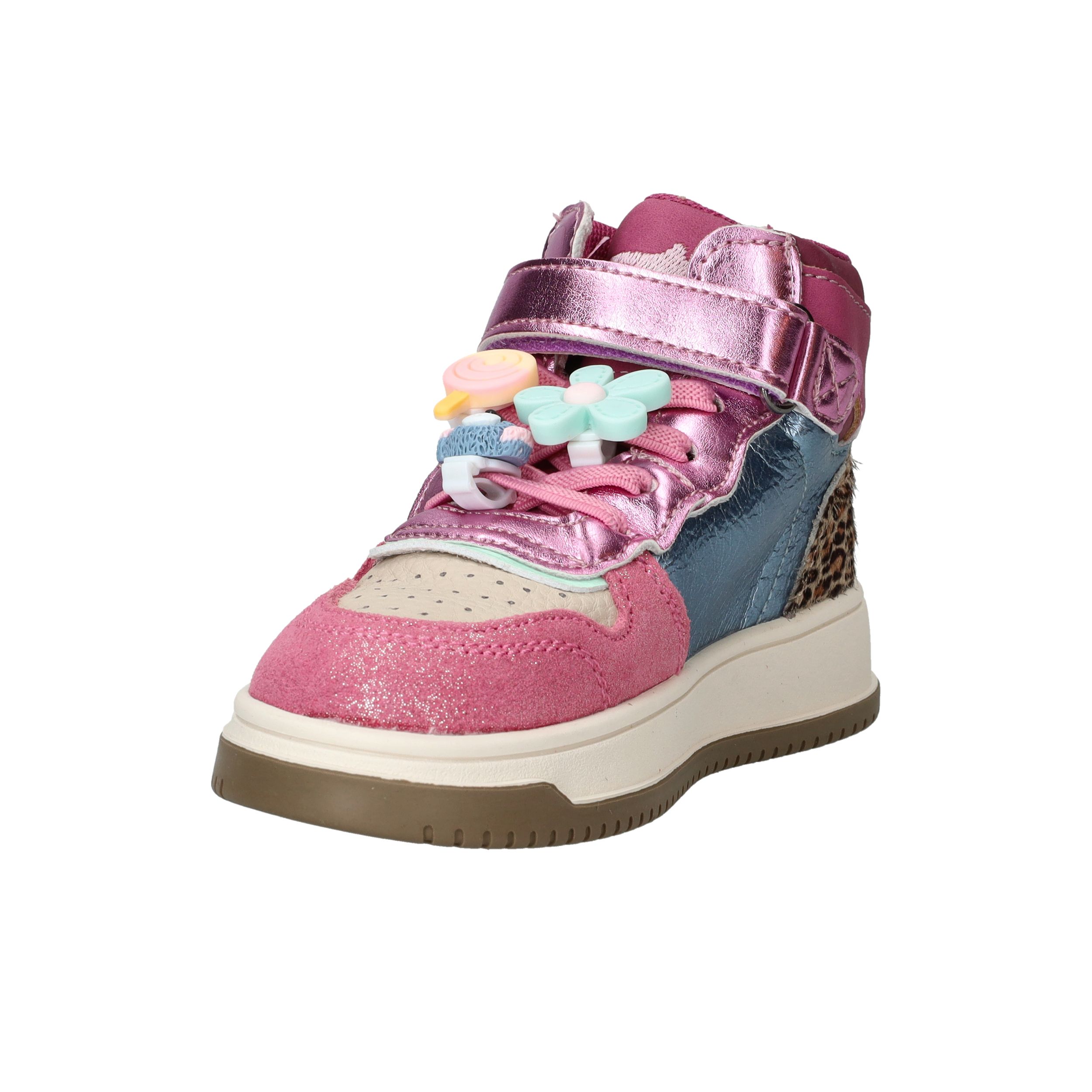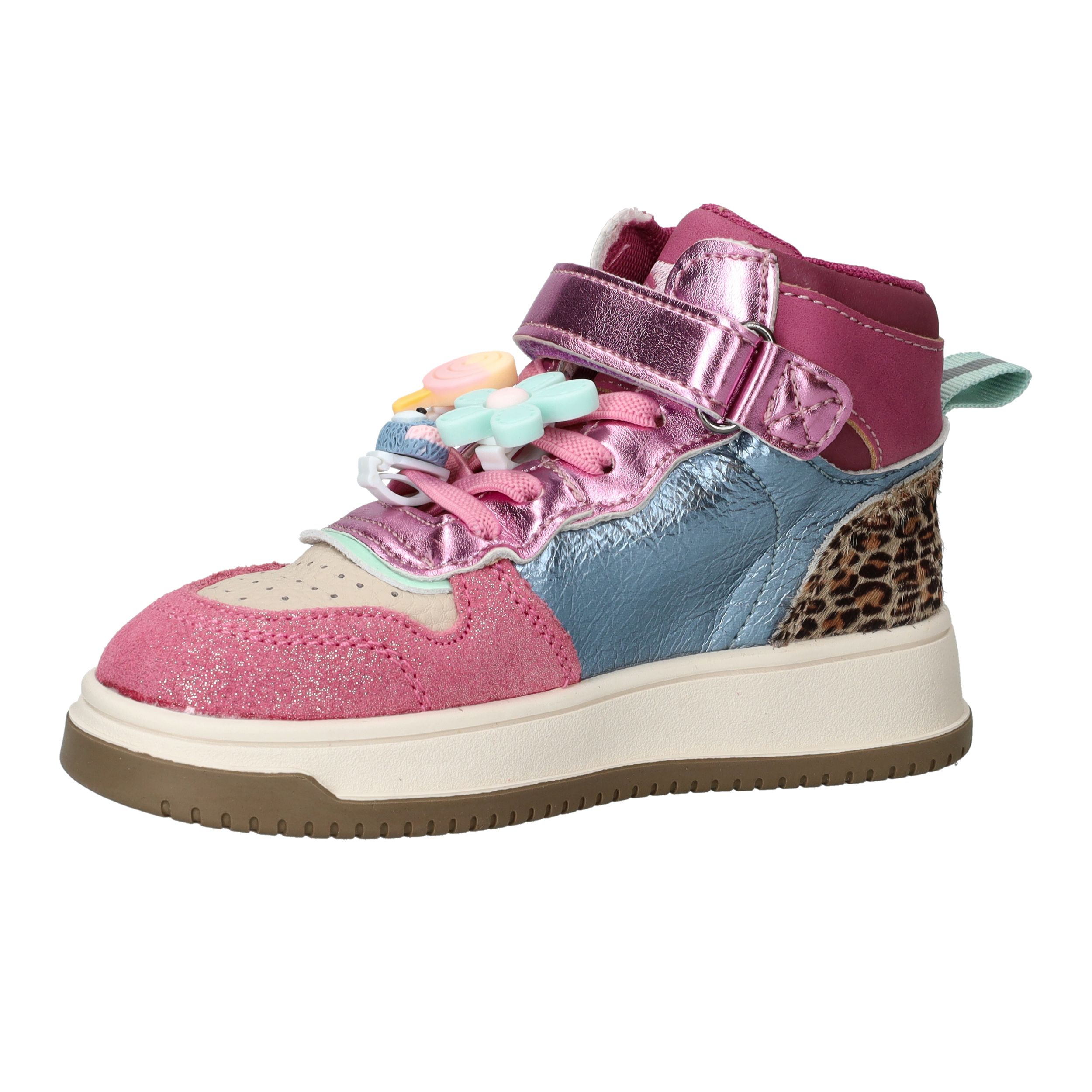 De Shoesme New Outsole sneakers zijn vrolijke en stoere schoenen voor meiden die graag opvallen. Deze kleurrijke meisjes sneakers combineren leer en kunstleer en zijn voorzien van speelse details zoals metallic accenten en dierenprint. Dankzij de stevige zool en fijne pasvorm kunnen kinderen zorgeloos en comfortabel spelen.