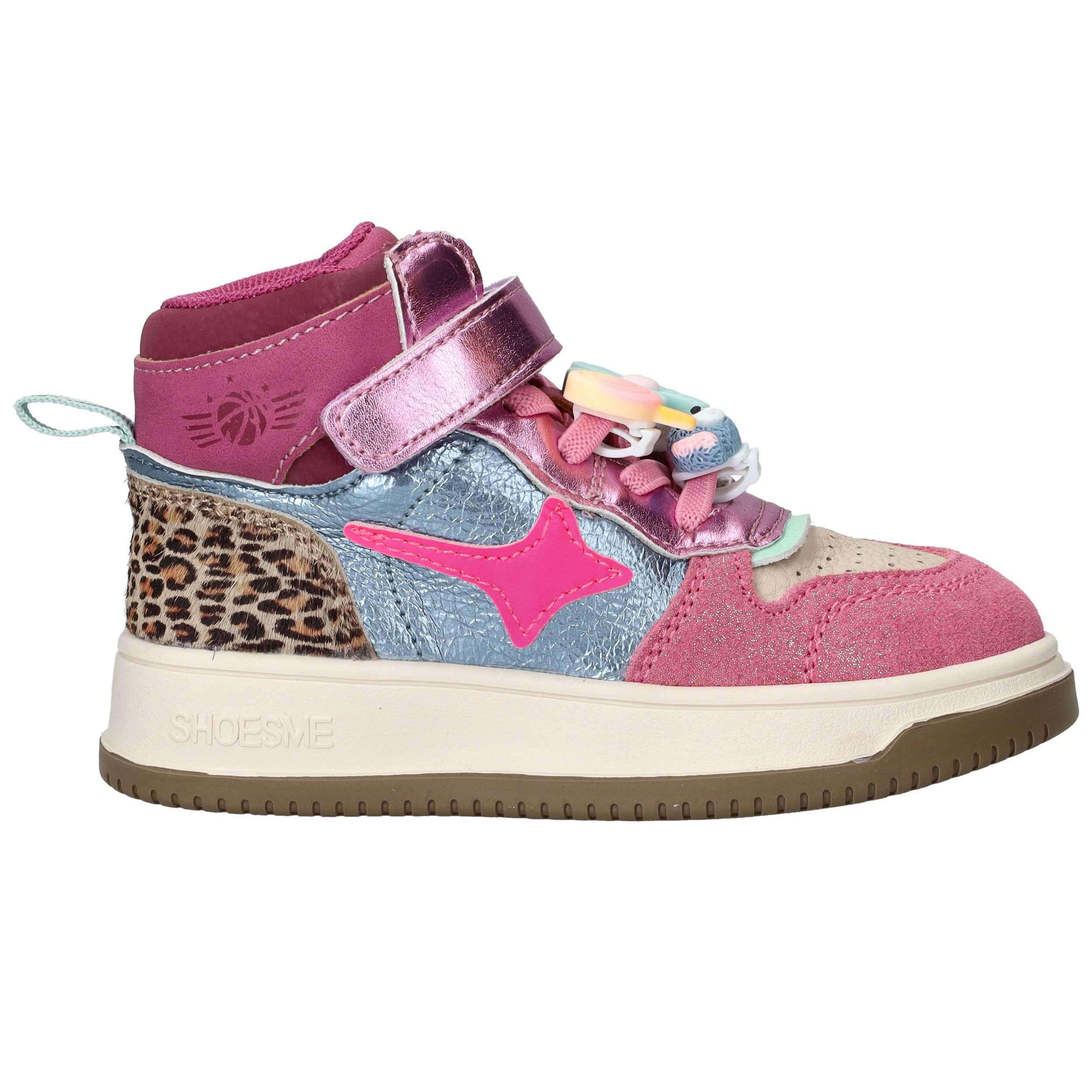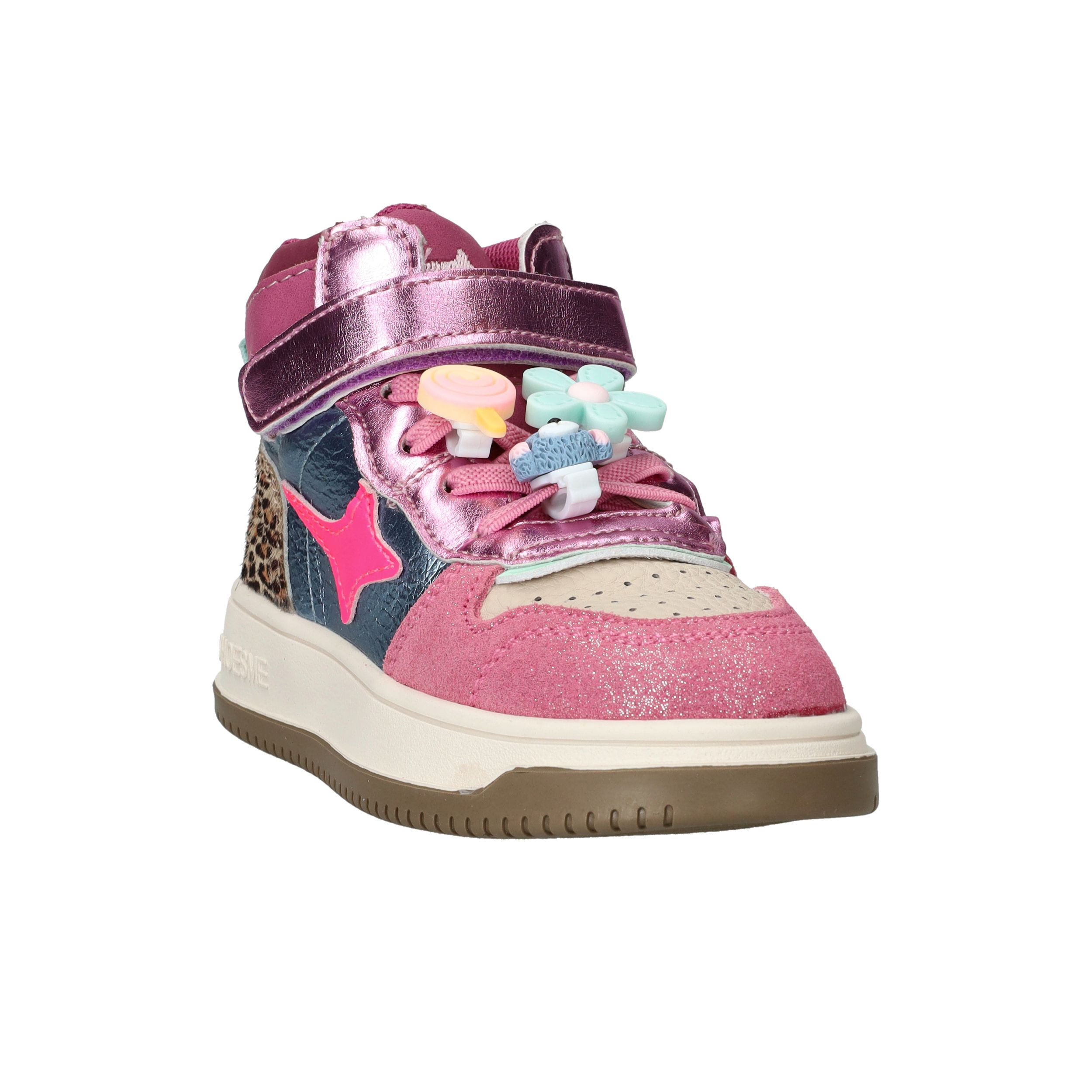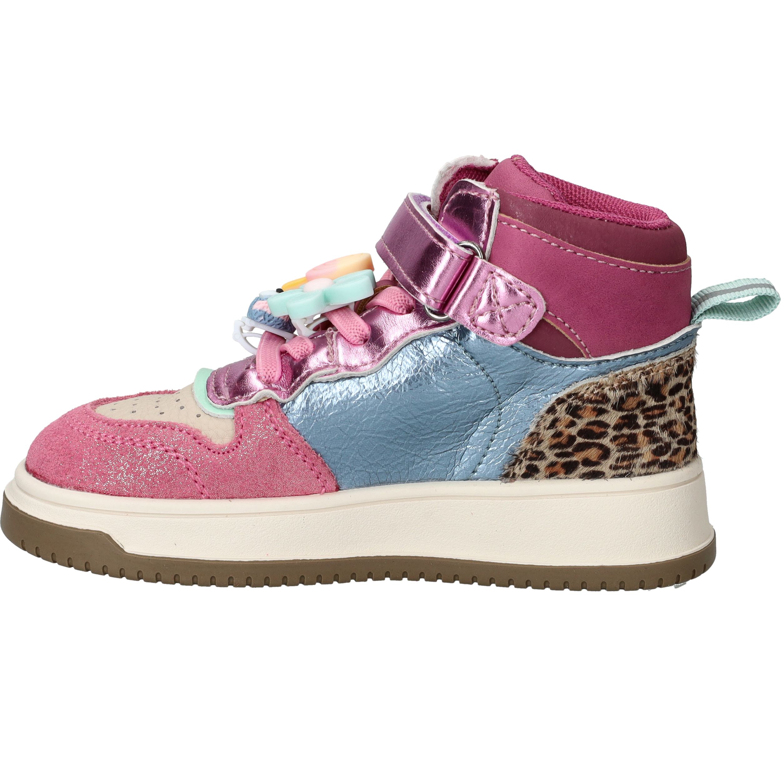 De Shoesme New Outsole sneakers zijn vrolijke en stoere schoenen voor meiden die graag opvallen. Deze kleurrijke meisjes sneakers combineren leer en kunstleer en zijn voorzien van speelse details zoals metallic accenten en dierenprint. Dankzij de stevige zool en fijne pasvorm kunnen kinderen zorgeloos en comfortabel spelen.