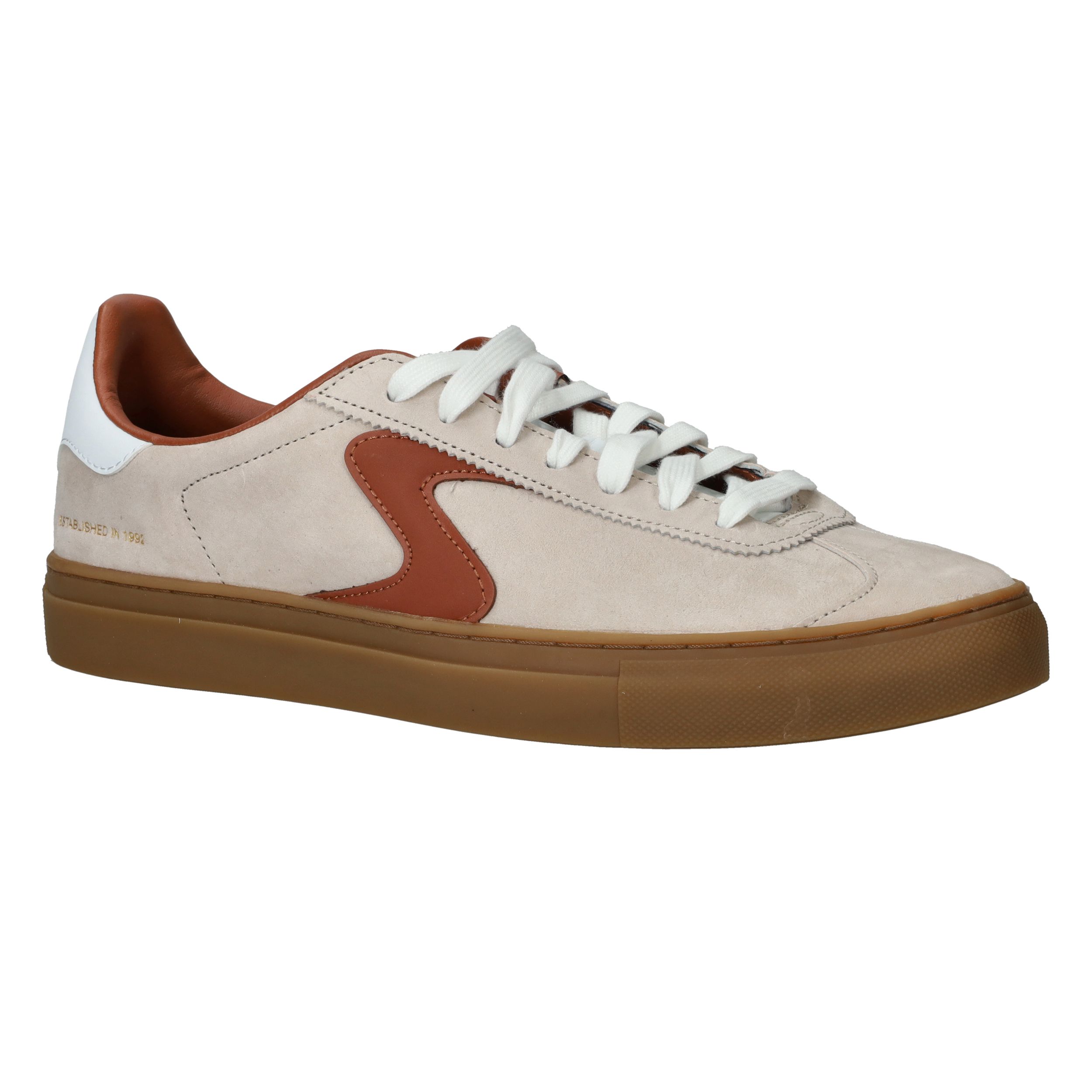 - Je krijgt een extra setje beige veters bij de sneakers