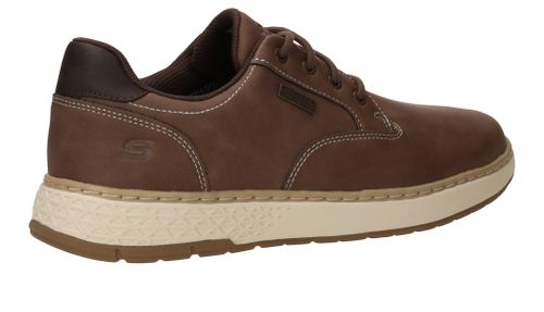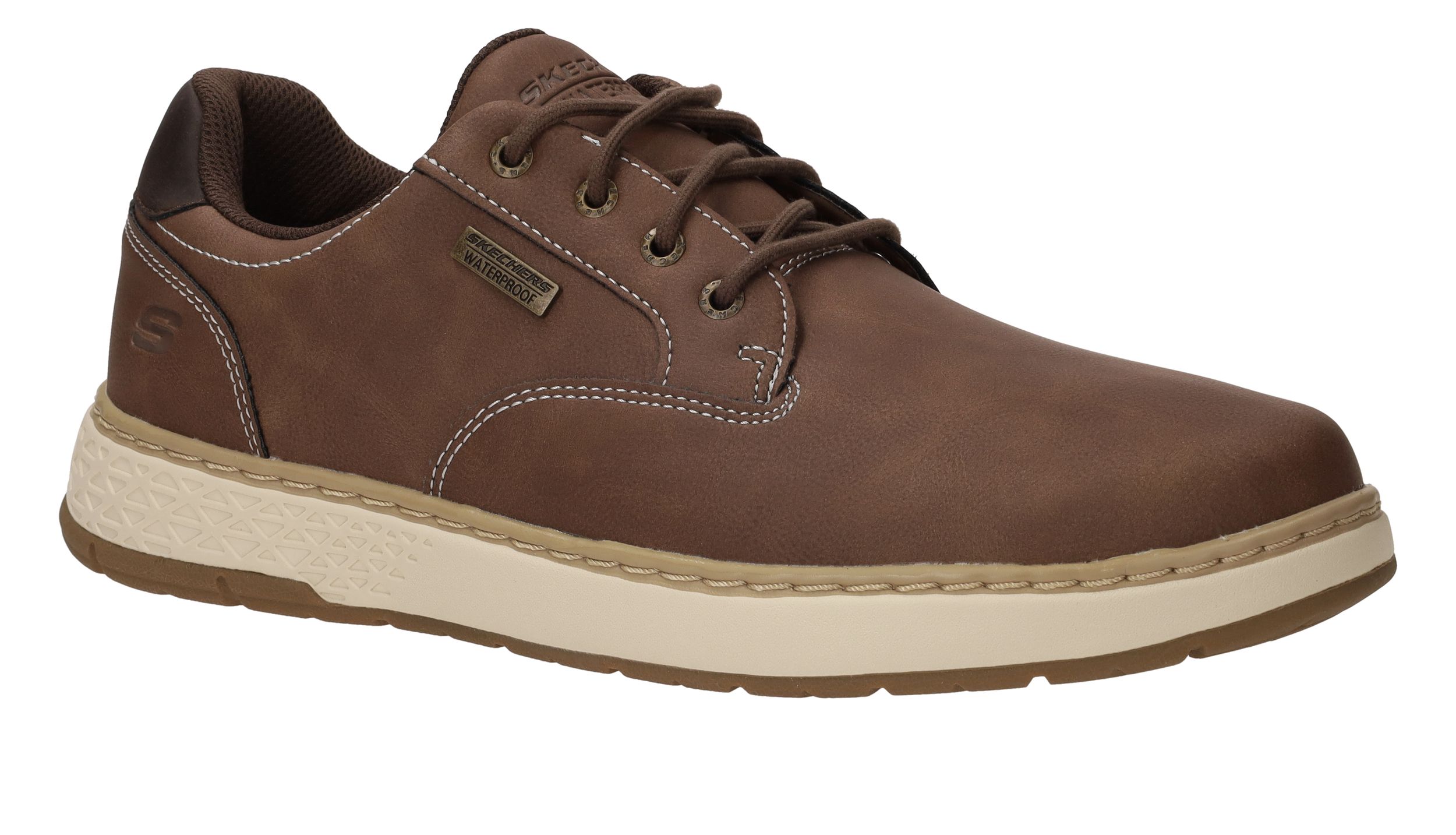 Sportieve Skechers Garlan Pryor Waterproof veterschoen voor heren in een mooie bruine kleur. De veterschoen is water- en vuilafstotend.