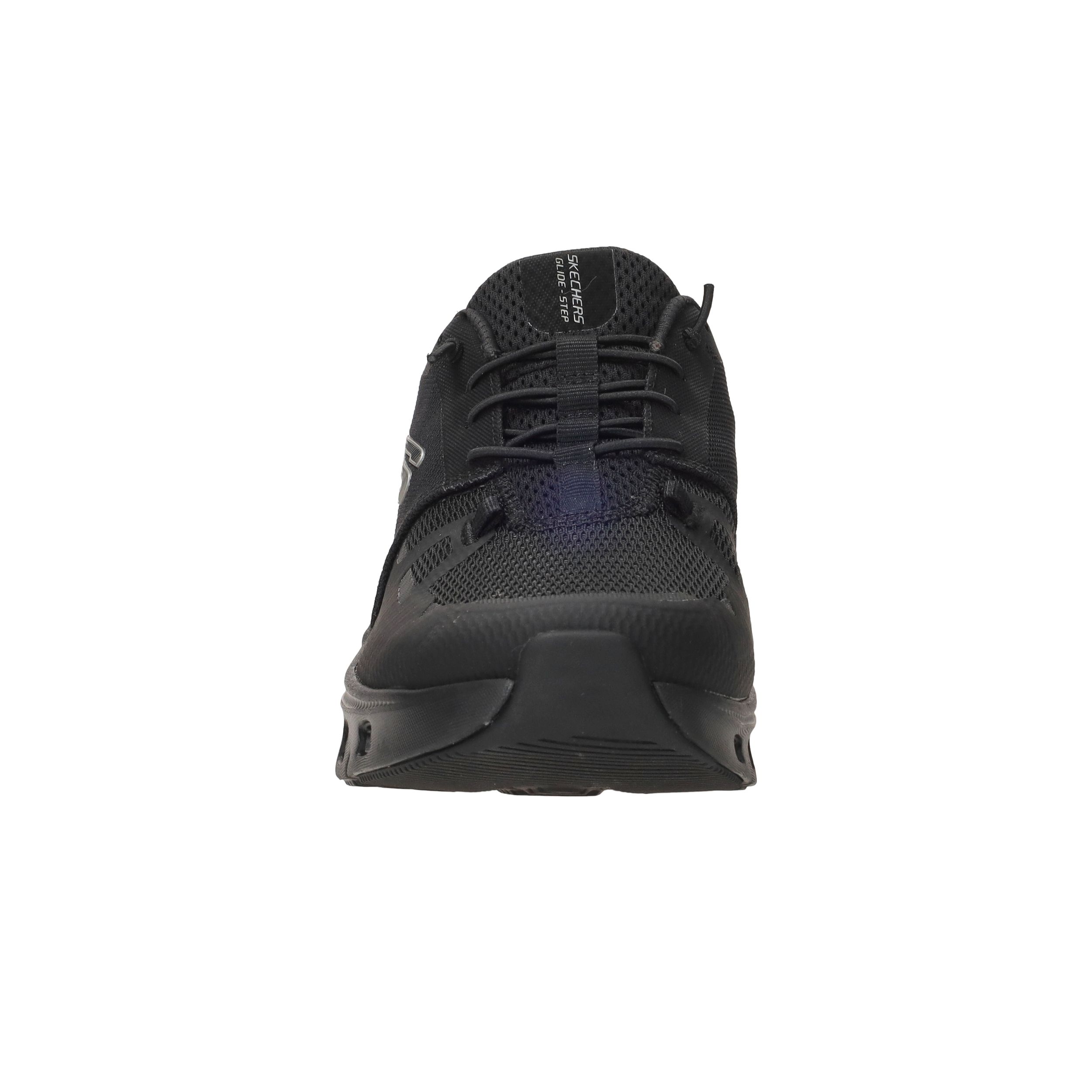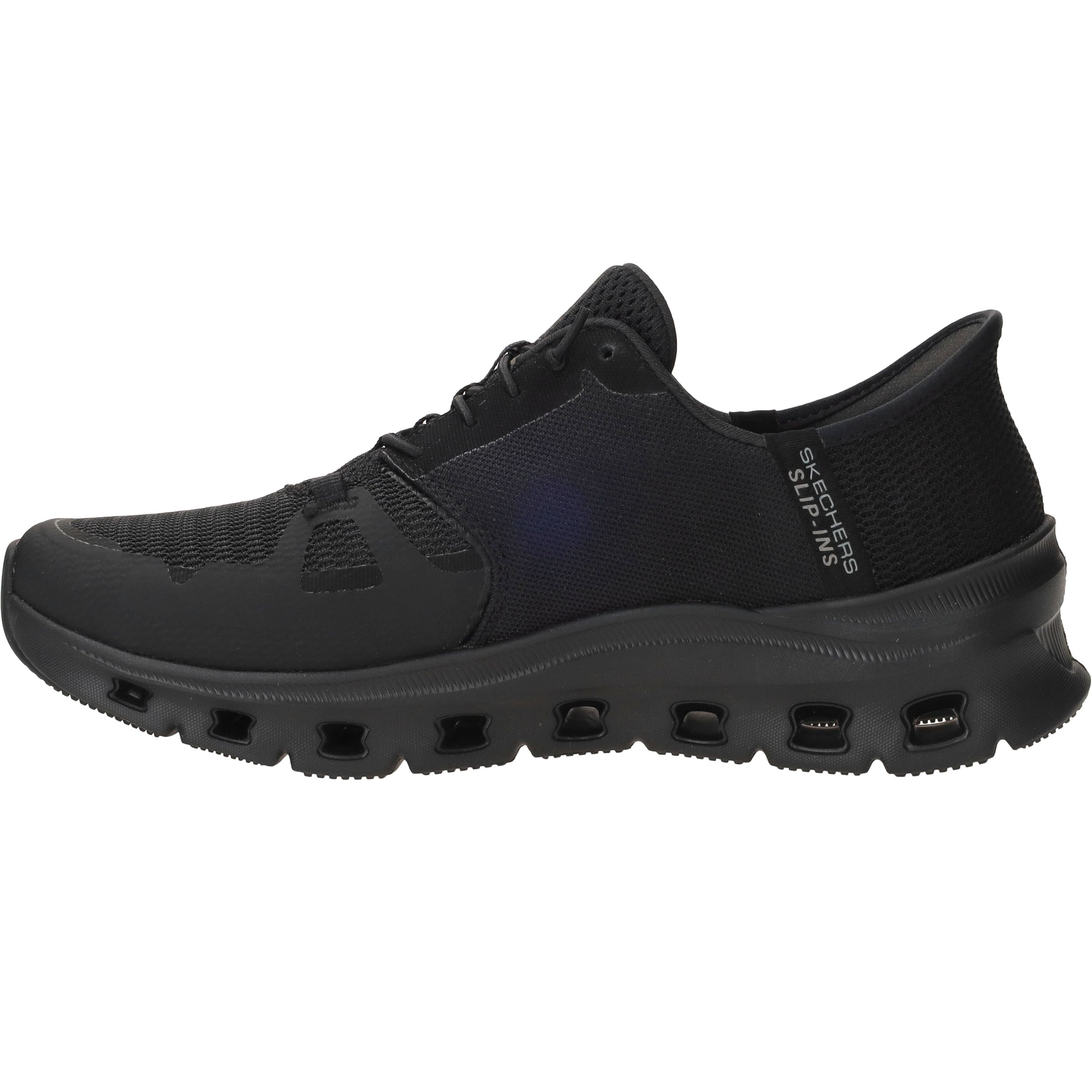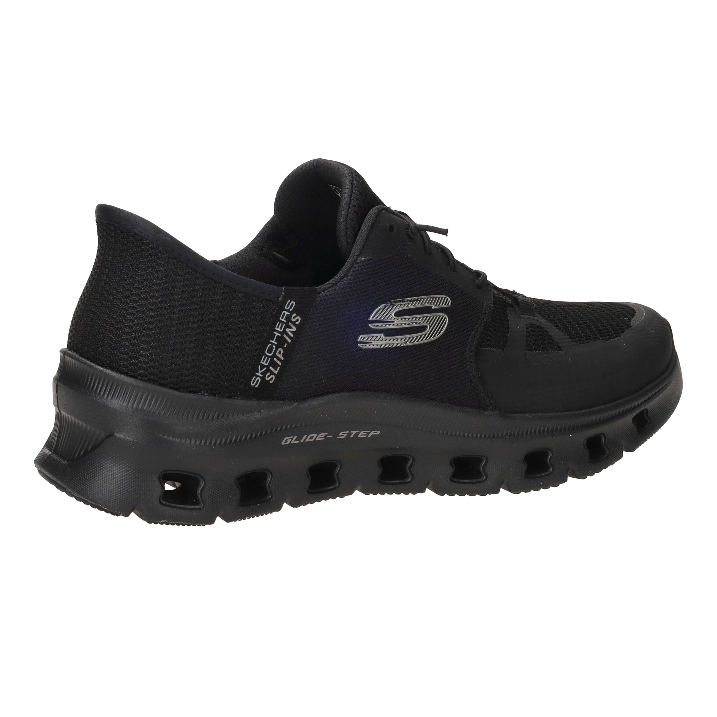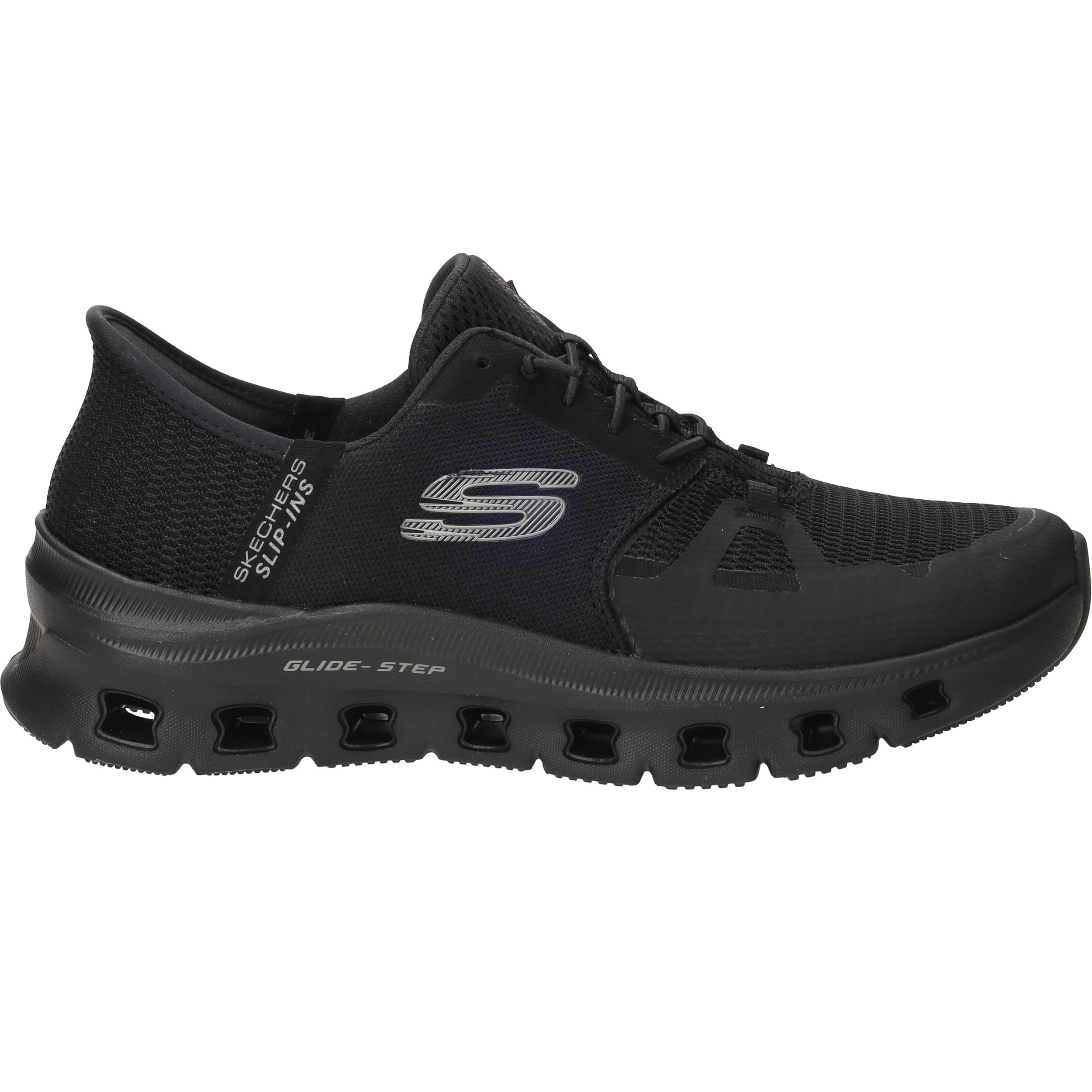 Ga voor lichtgewicht comfort met deze zwarte sneakers van Skechers. De Glide Step Pro is speciaal ontworpen voor heren die houden van gemak, ondersteuning en een moderne uitstraling. Het bovenwerk van ademend textiel en synthetisch materiaal maakt deze sneakers vegan en bijzonder comfortabel. De elastische sluiting zorgt voor een soepele instap zonder veters te hoeven strikken.
