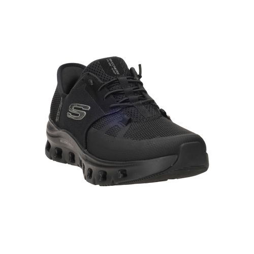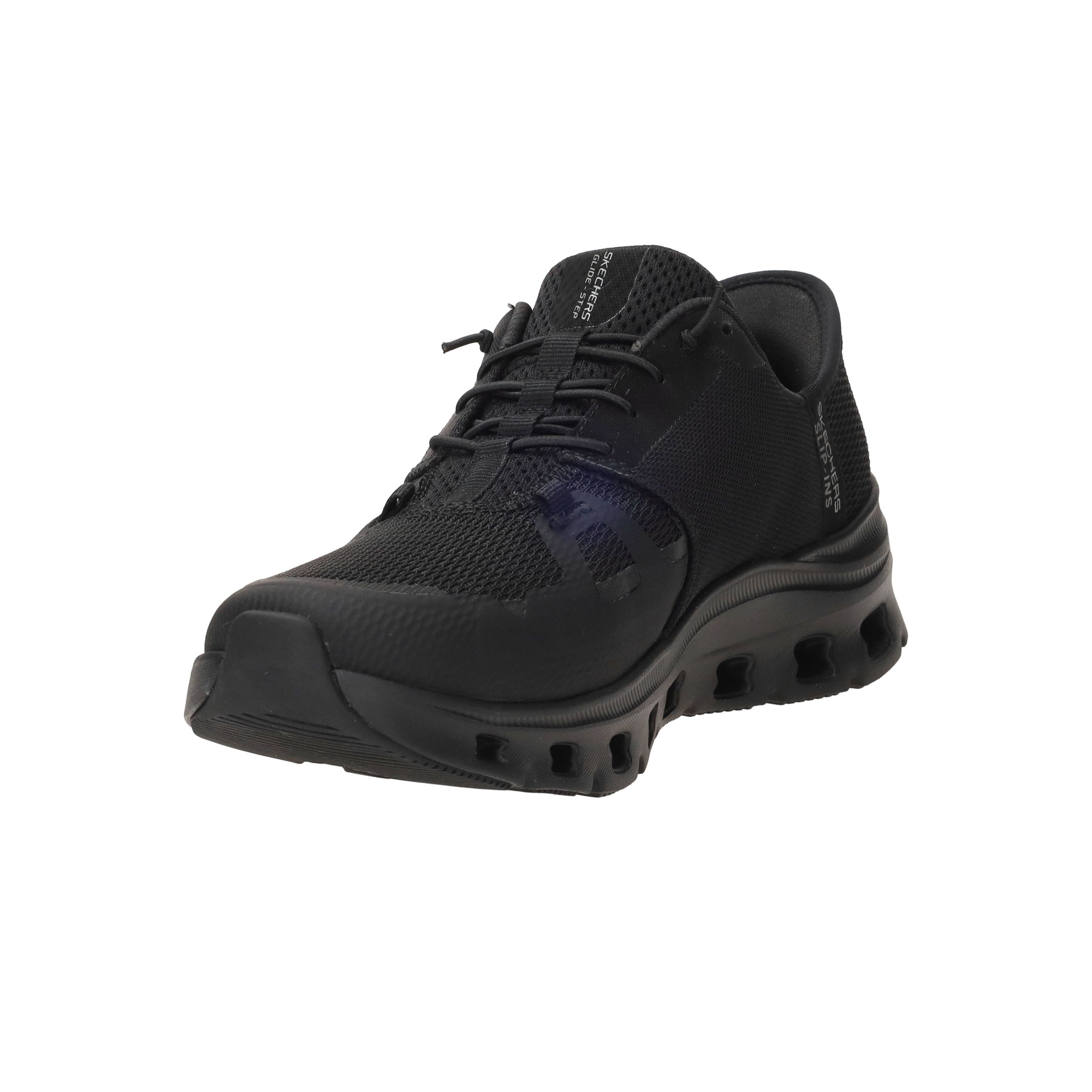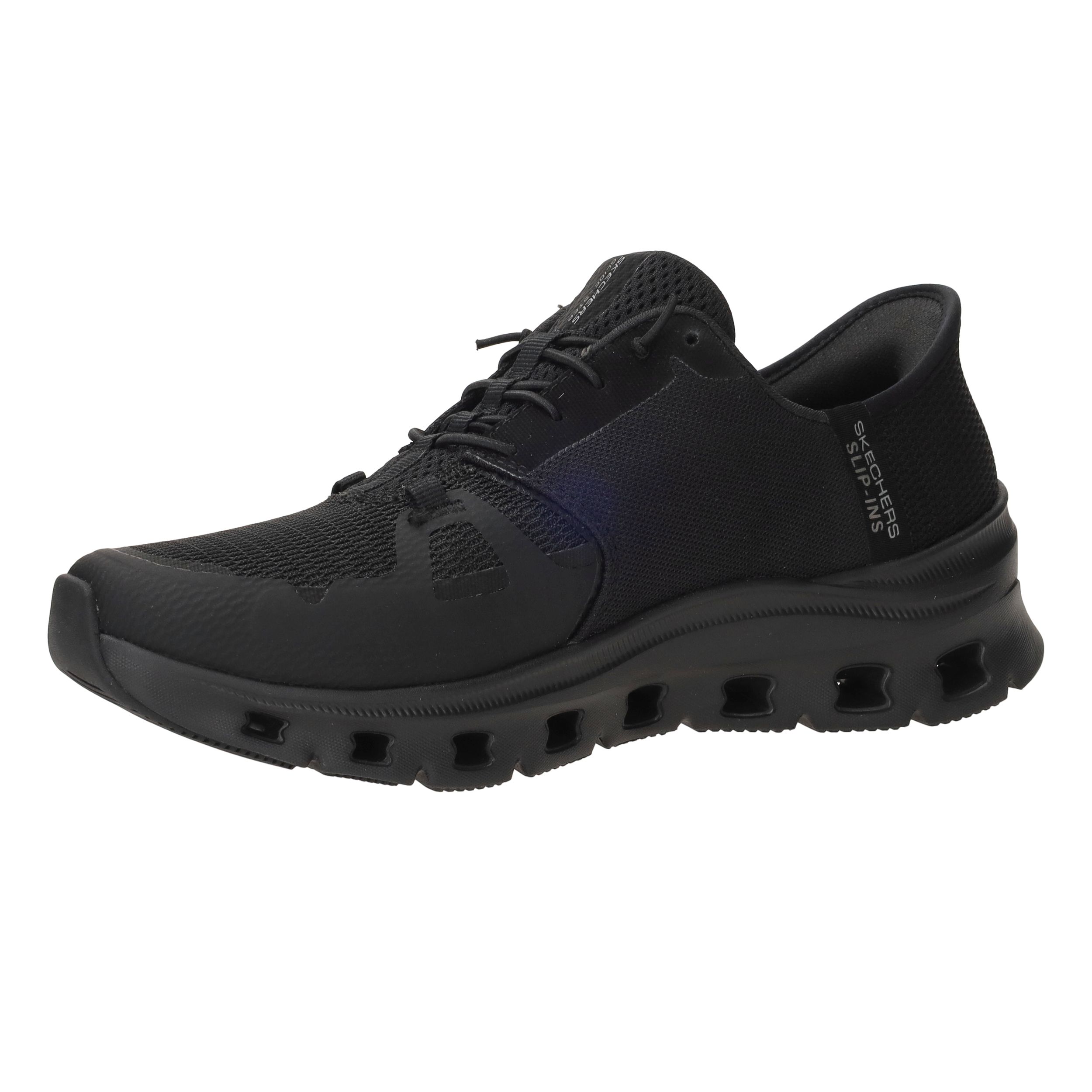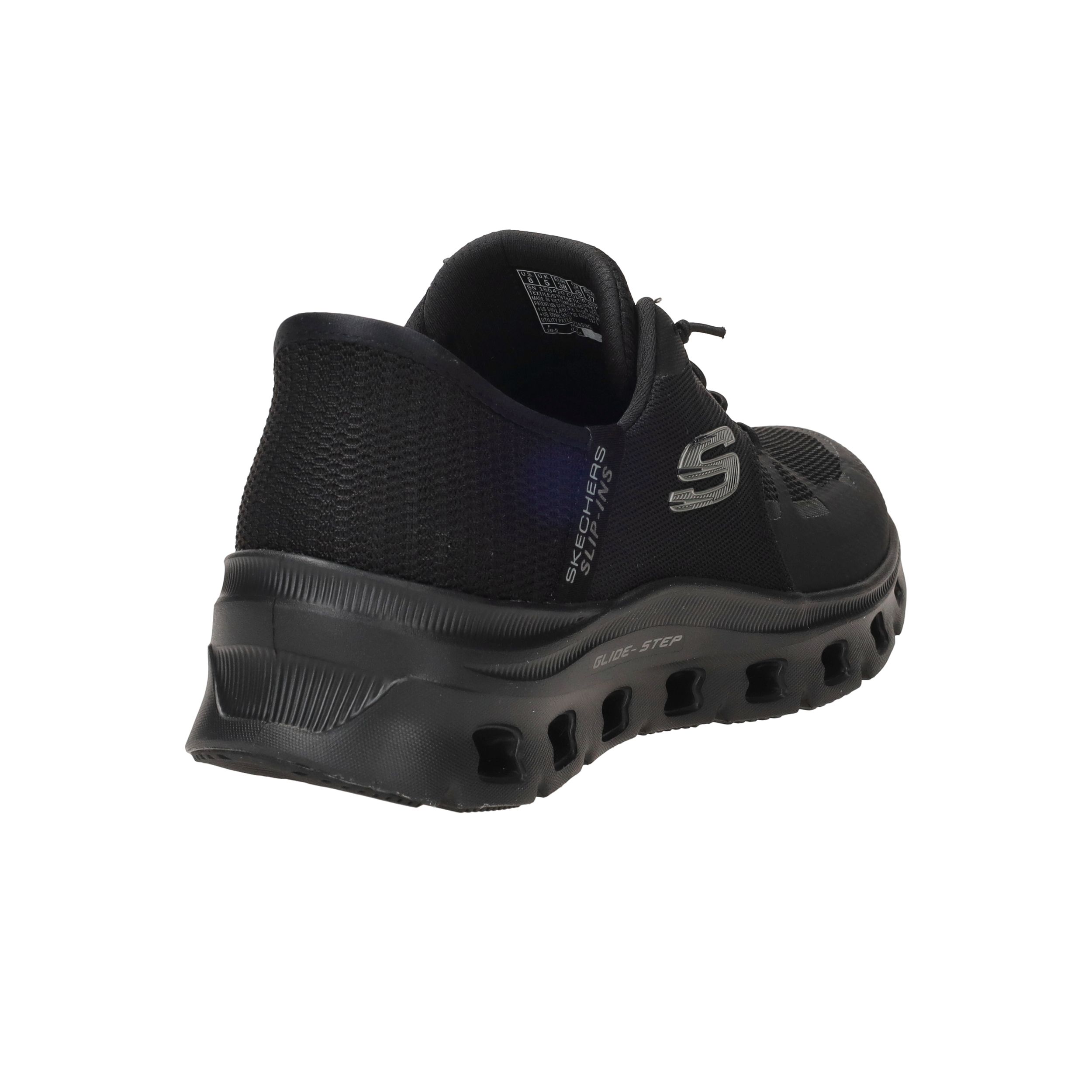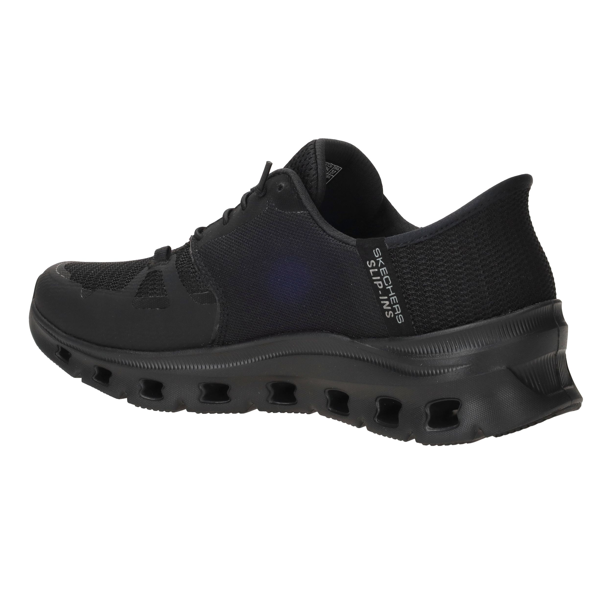 Ga voor lichtgewicht comfort met deze zwarte sneakers van Skechers. De Glide Step Pro is speciaal ontworpen voor heren die houden van gemak, ondersteuning en een moderne uitstraling. Het bovenwerk van ademend textiel en synthetisch materiaal maakt deze sneakers vegan en bijzonder comfortabel. De elastische sluiting zorgt voor een soepele instap zonder veters te hoeven strikken.
