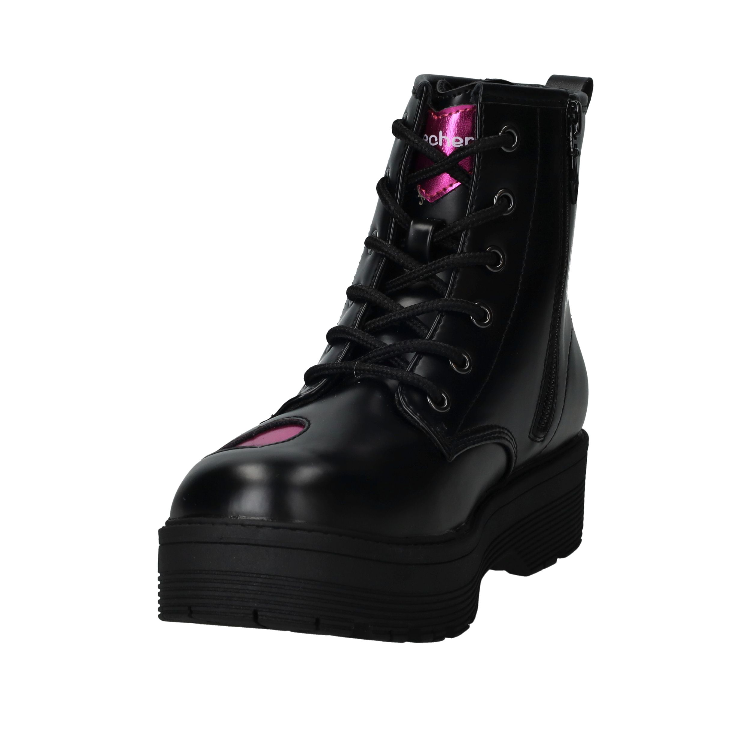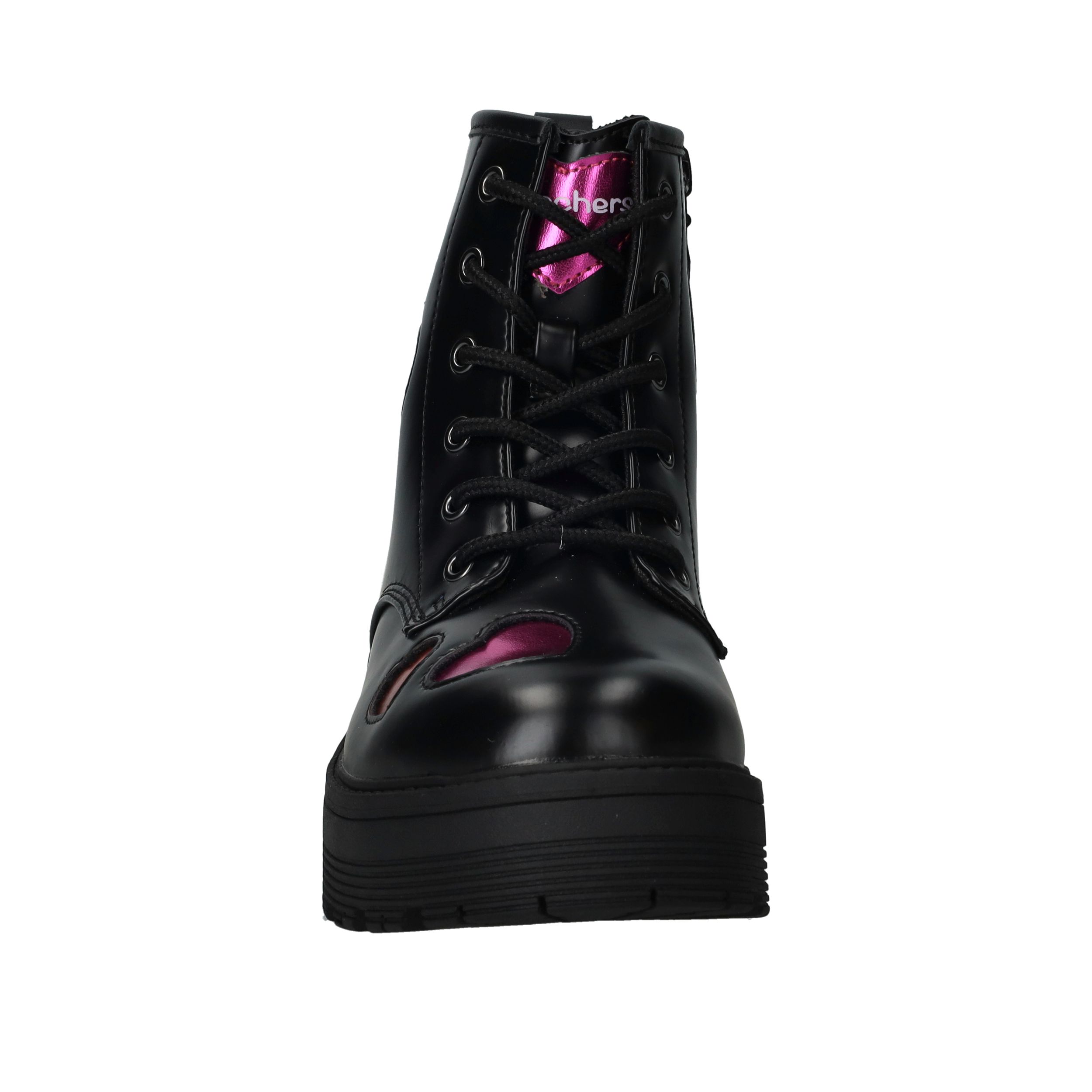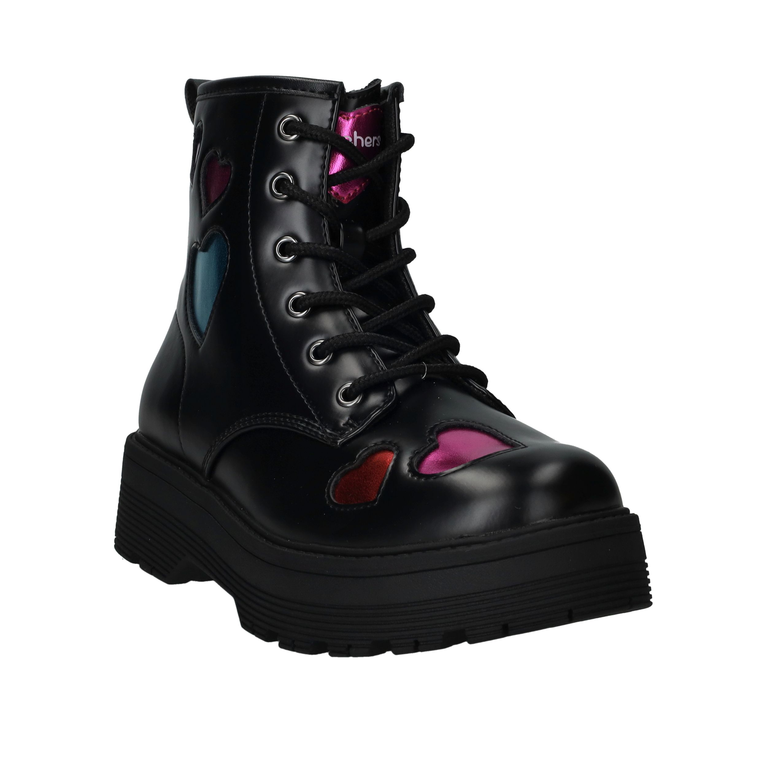 Deze stoere boots van Skechers zijn speciaal gemaakt voor meisjes die houden van een opvallende look. De vrolijke hartjesdetails in verschillende kleuren geven deze zwarte boots een speelse uitstraling. Het stevige kunstleer is niet alleen makkelijk te onderhouden, maar ook ideaal voor dagelijks gebruik. Perfect voor school, buitenspelen of gewoon lekker stoer de straat op!
