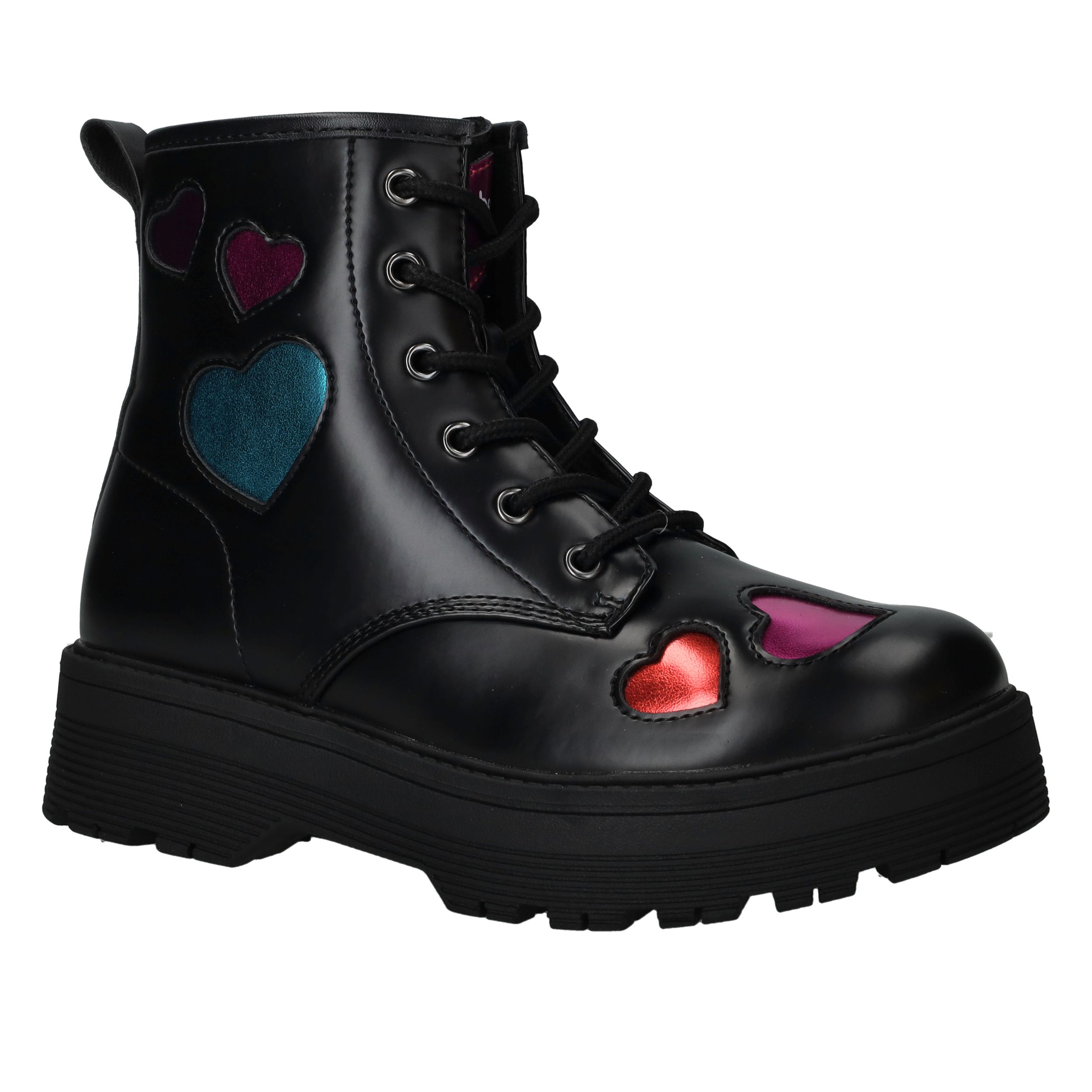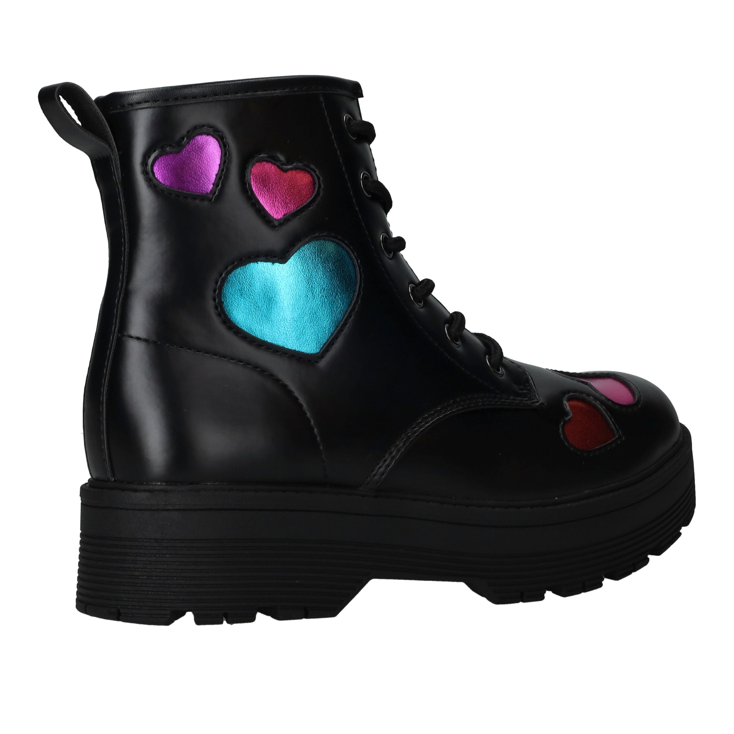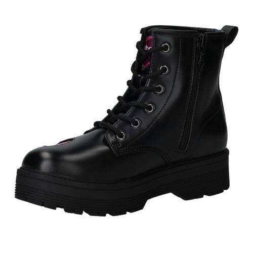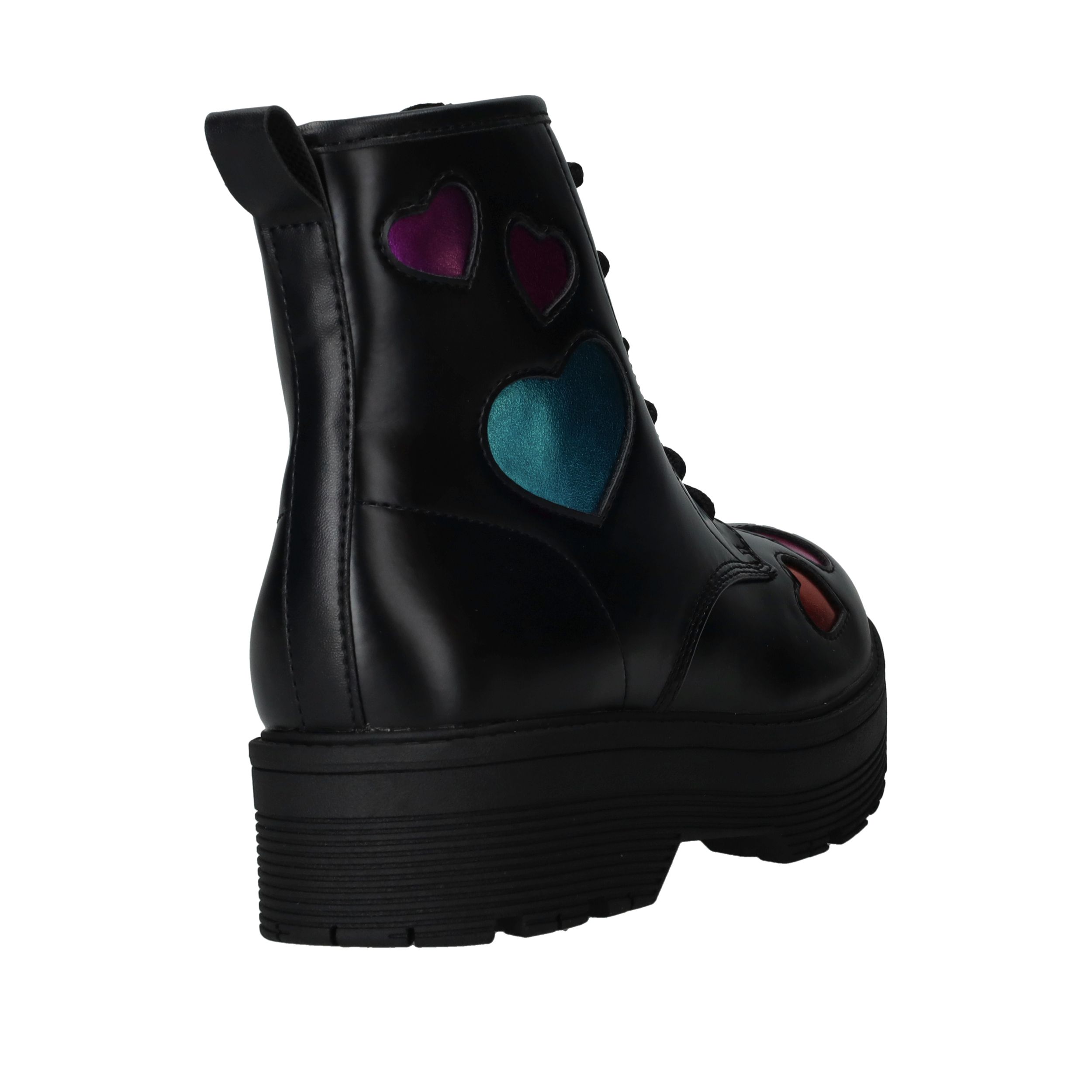 Deze stoere boots van Skechers zijn speciaal gemaakt voor meisjes die houden van een opvallende look. De vrolijke hartjesdetails in verschillende kleuren geven deze zwarte boots een speelse uitstraling. Het stevige kunstleer is niet alleen makkelijk te onderhouden, maar ook ideaal voor dagelijks gebruik. Perfect voor school, buitenspelen of gewoon lekker stoer de straat op!