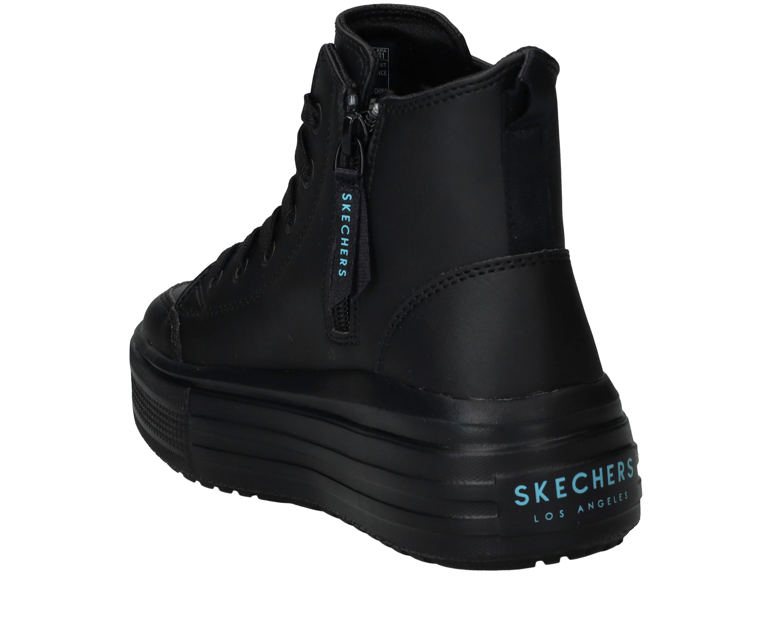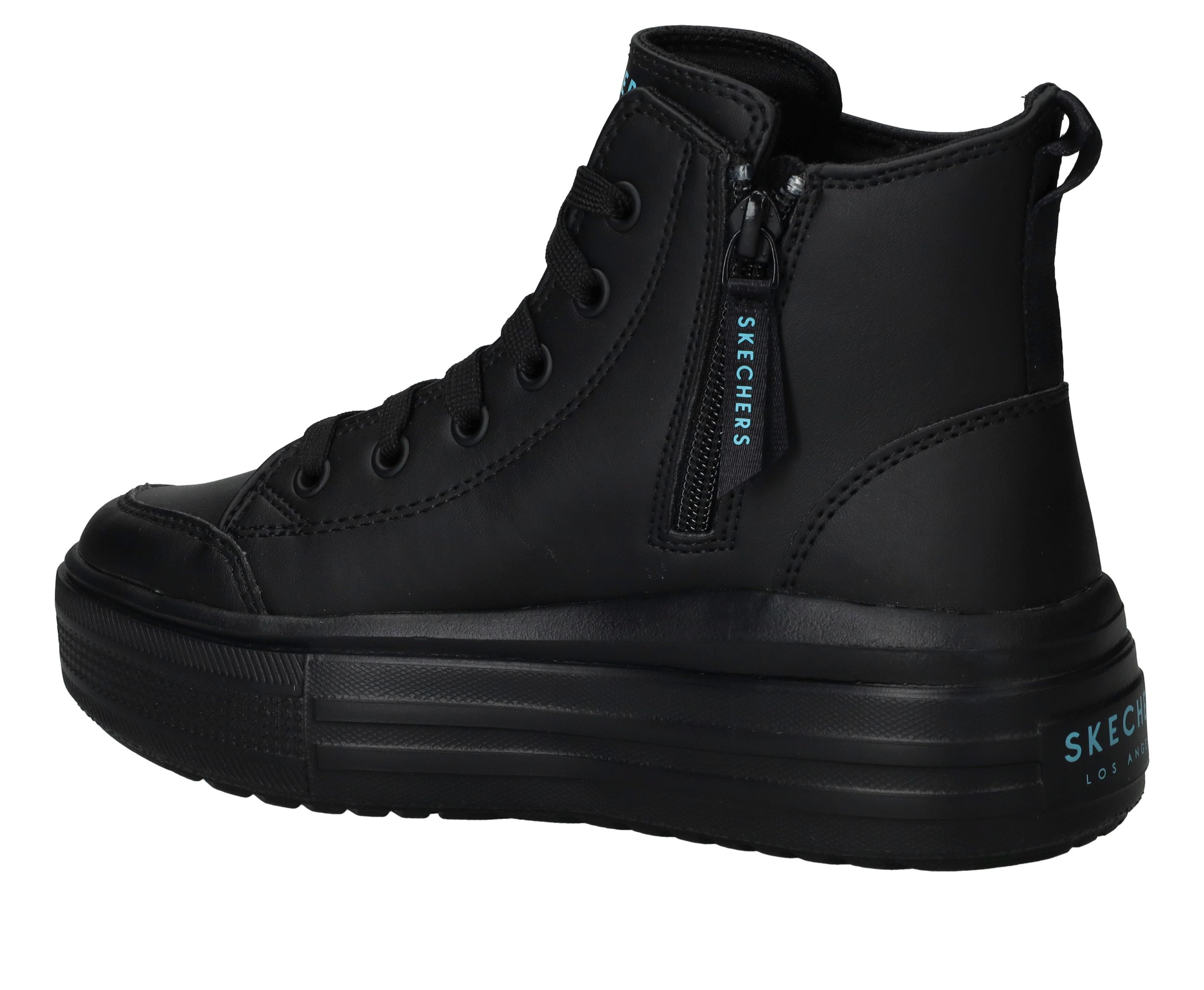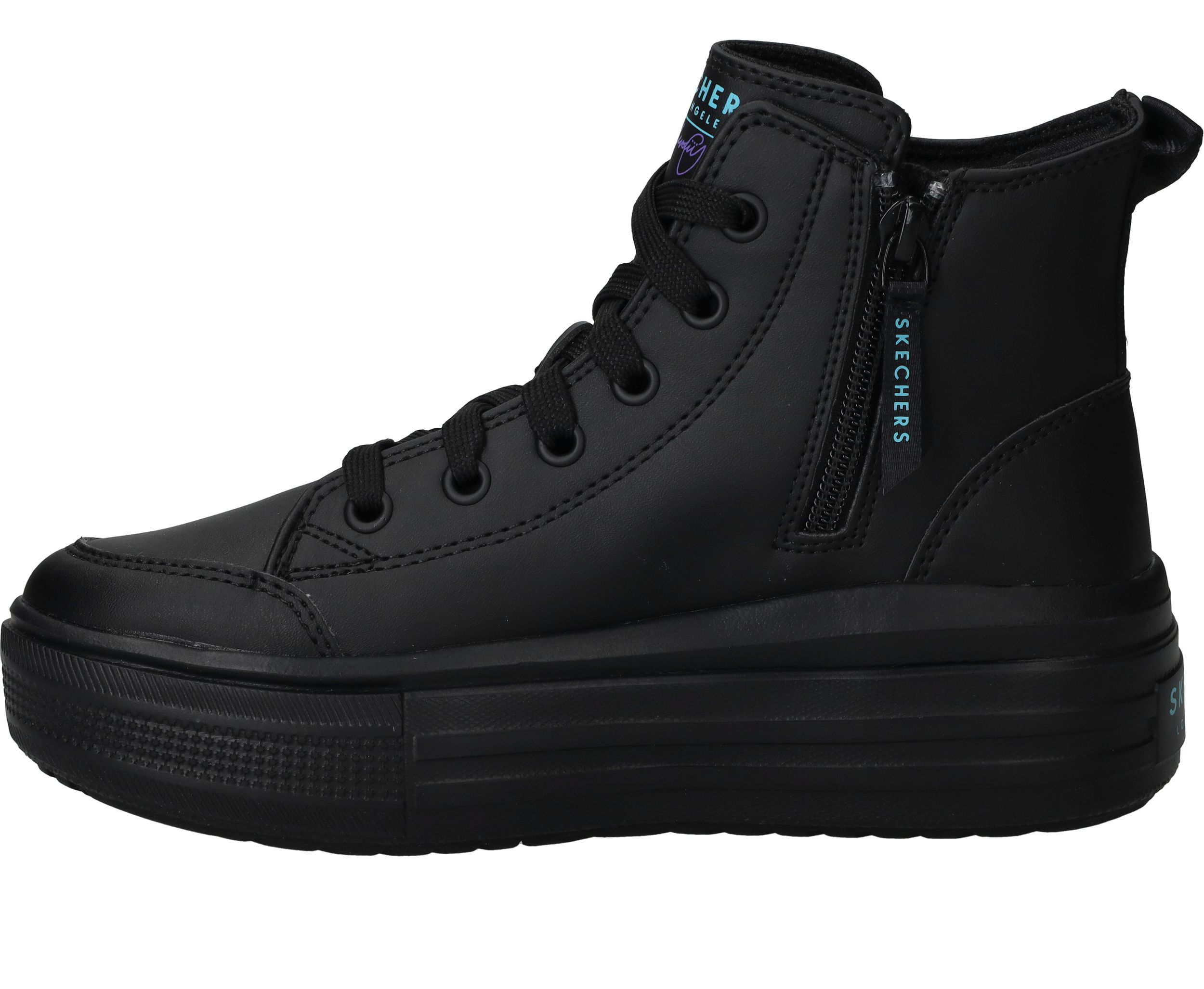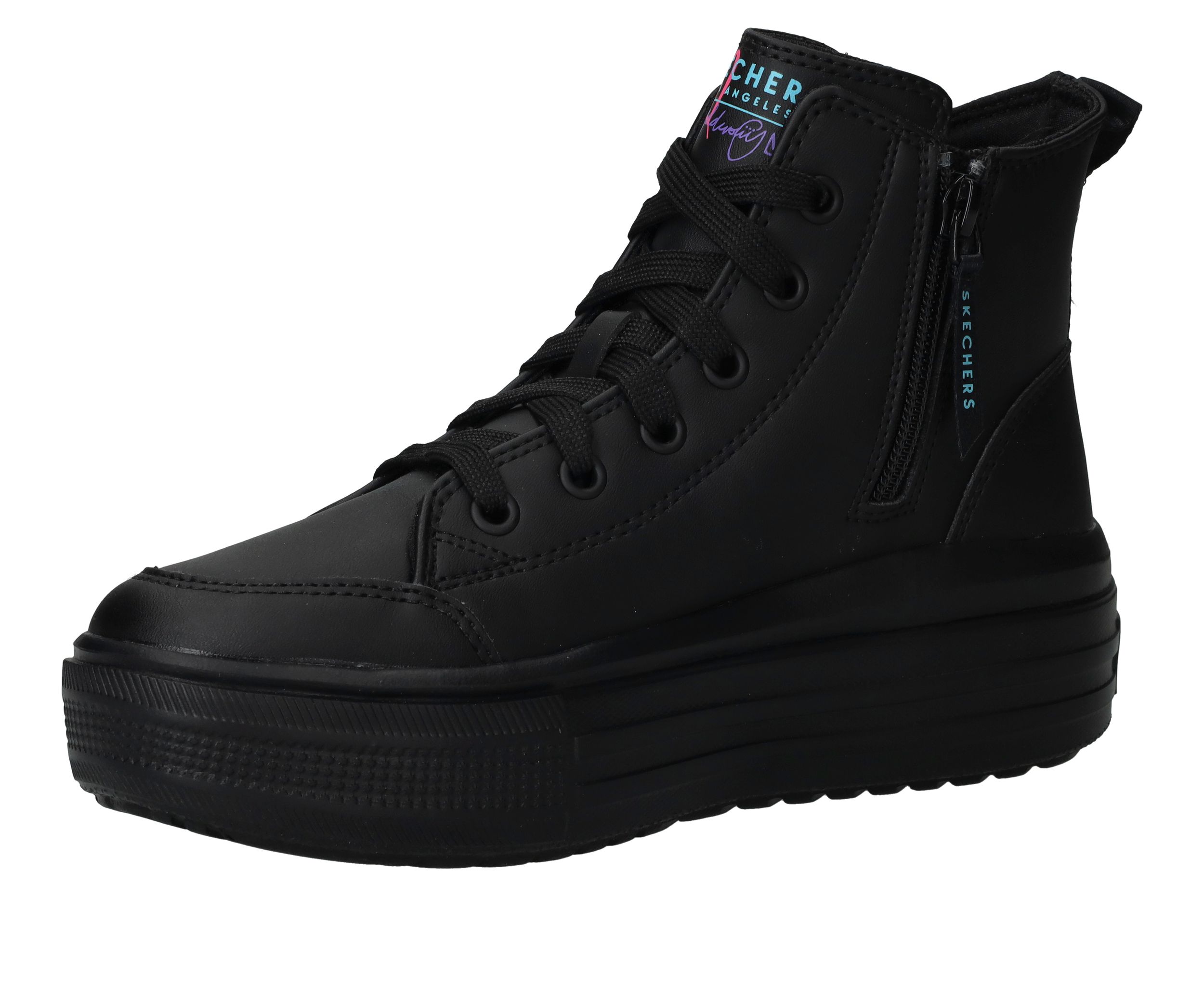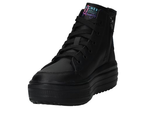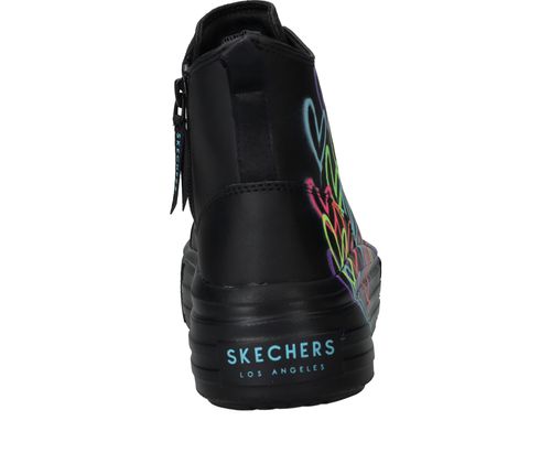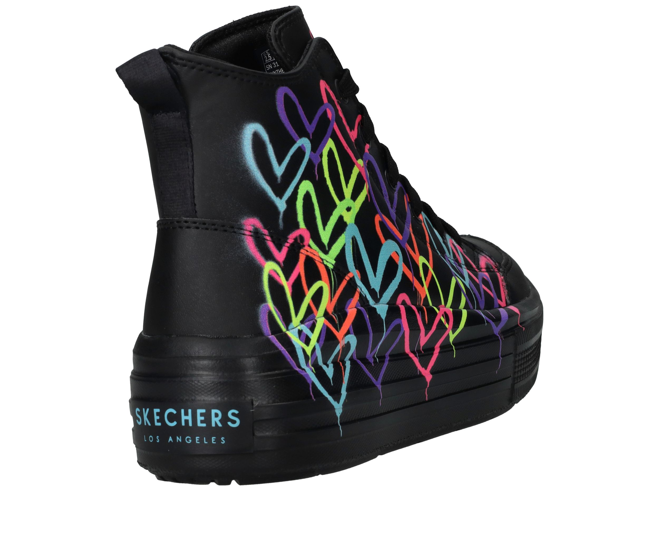 Ga voor deze flitsende zwarte Skechers Hyperlift veterboots met gave hartjes print van James Coldcrown! Extra stoer is de platformzool.
