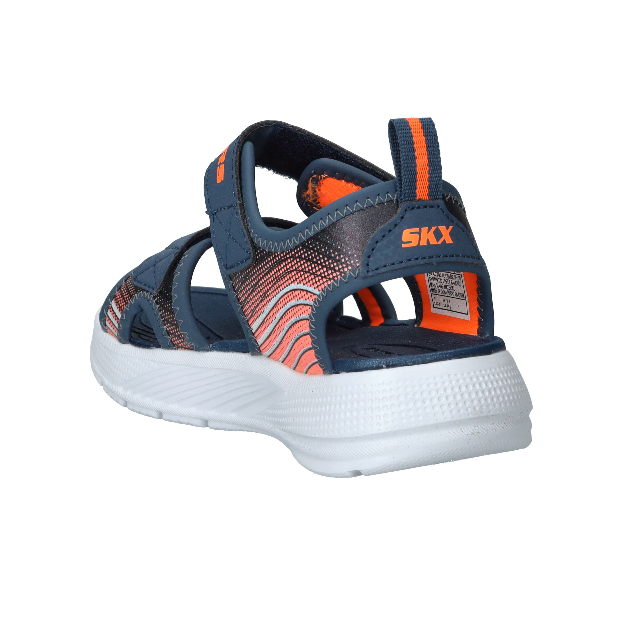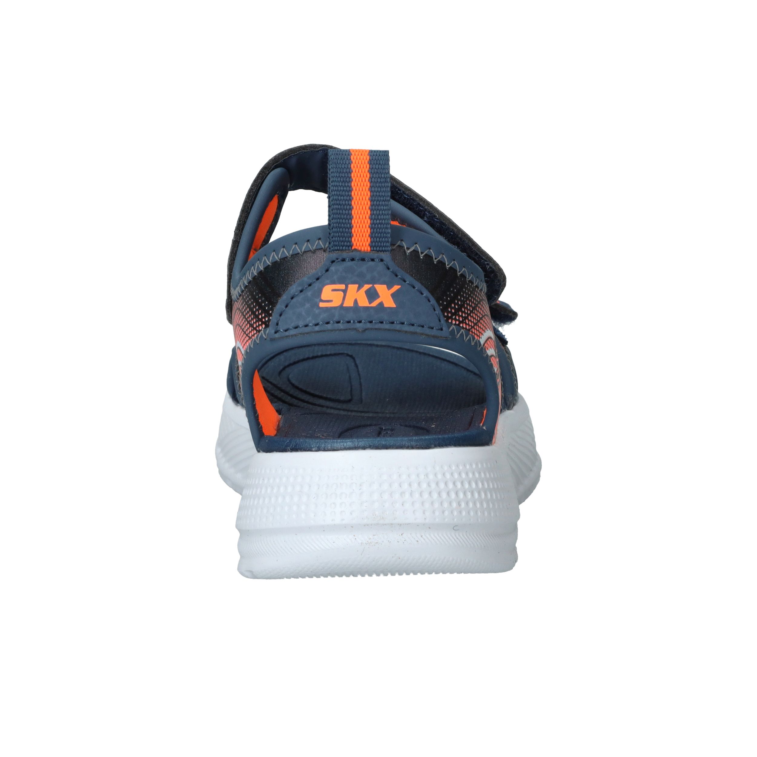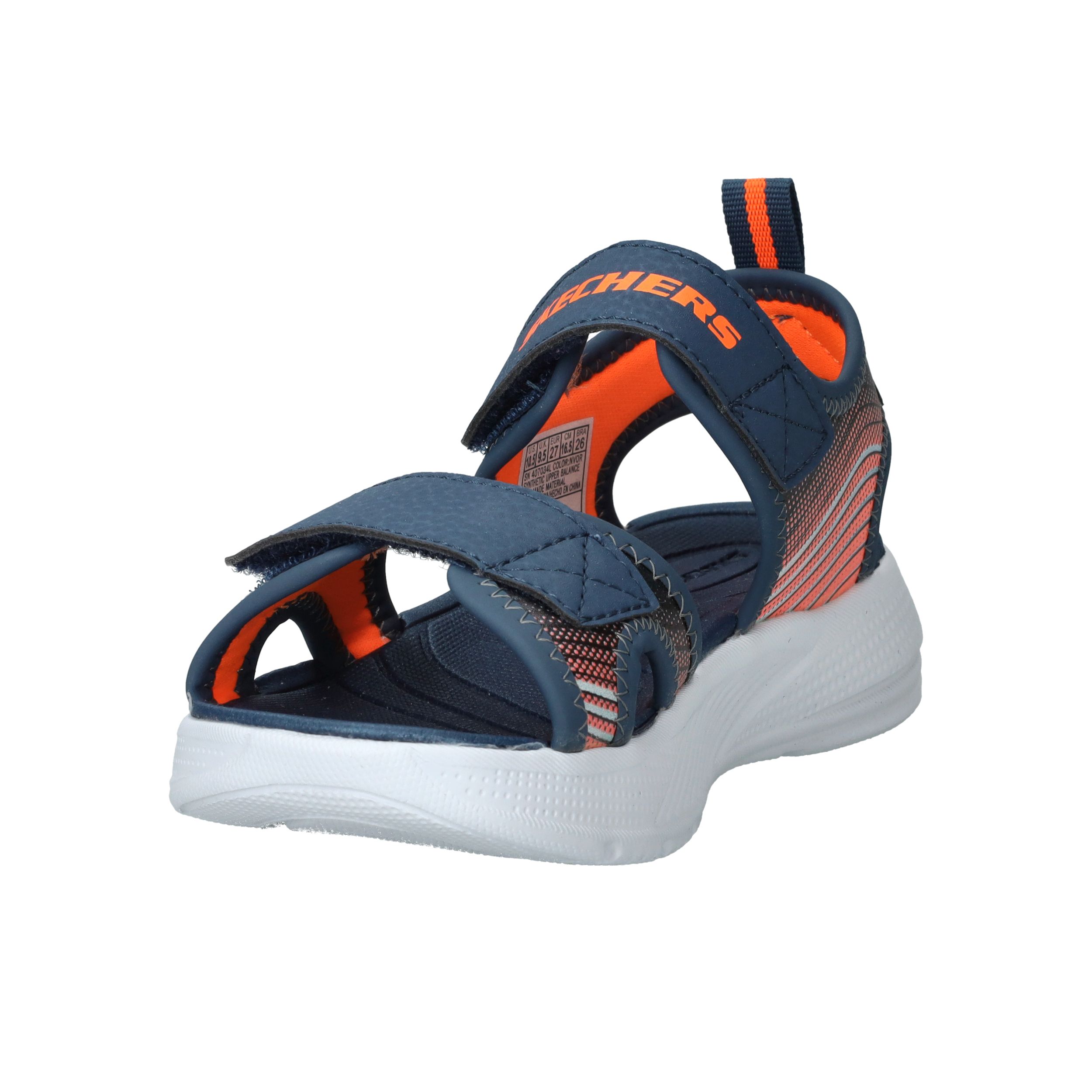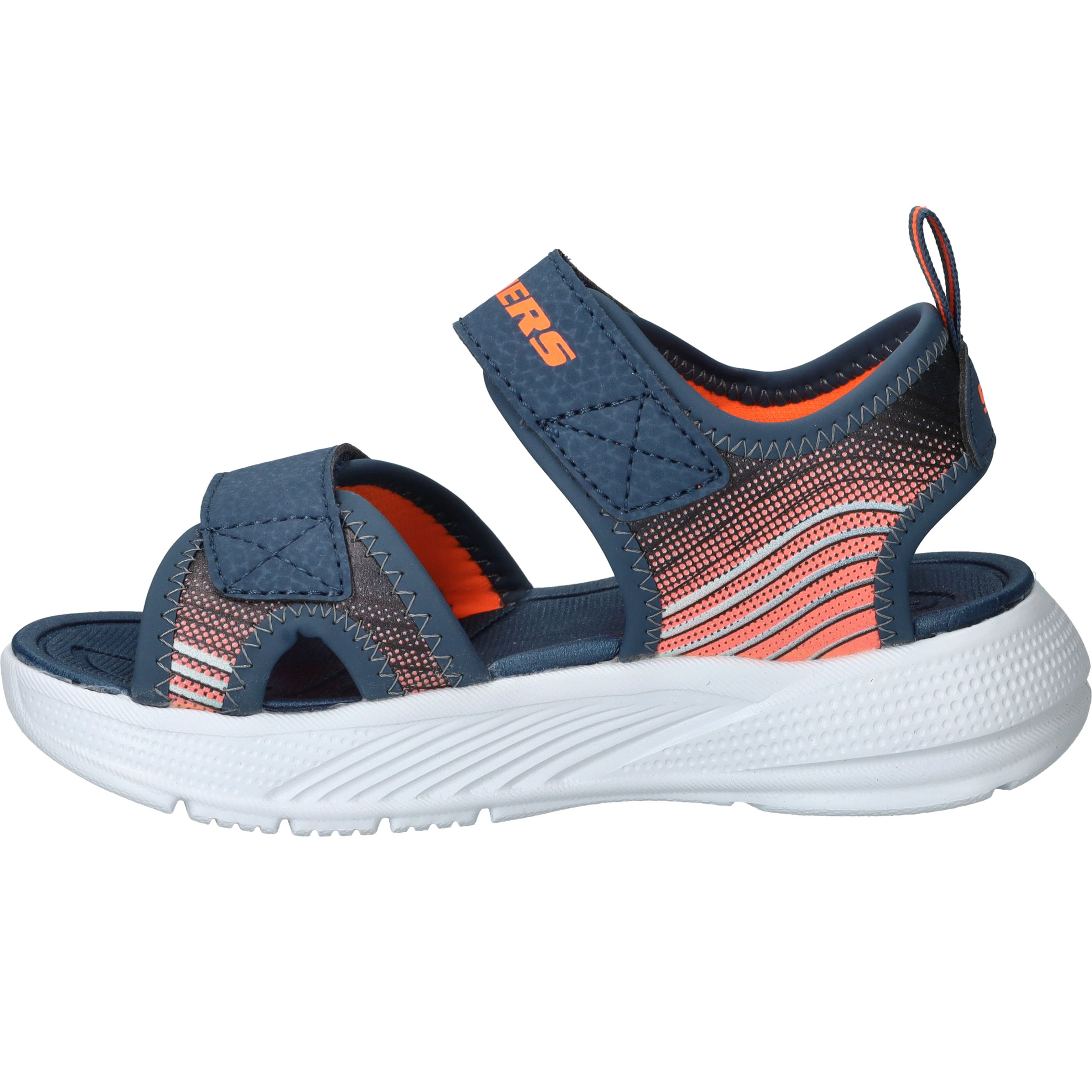 Skechers Microspec Splash sandaal voor jongens! De sandaal heeft een sportieve uitstraling en een mooie donkerblauwe en orjanje kleur