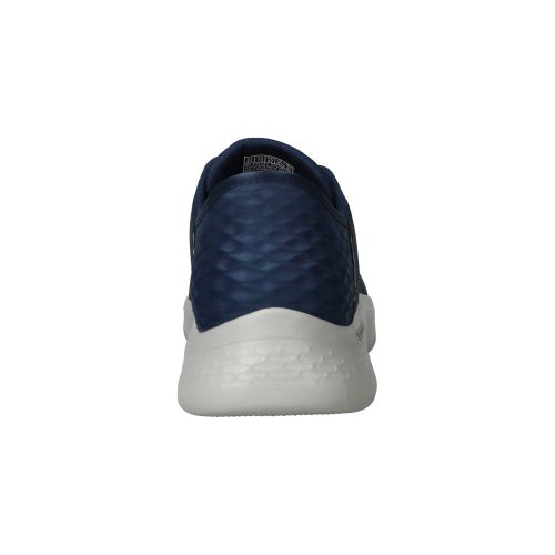 Deze blauwe heren instappers van Skechers zijn een mooie toevoeging aan je garderobe, perfect voor de man die comfort en gemak zoekt. De schoen heeft een sportieve uitstraling met subtiele blauwtinten die makkelijk combineren. Het soepele bovenwerk van synthetisch en textiel voelt zacht aan de voet en vormt zich mooi om de voet, wat zorgt voor een fijne drukverdeling tijdens het lopen. Je stapt er gemakkelijk in en uit, en eenmaal aan, ervaar je direct de fijne demping die elke stap verzacht.