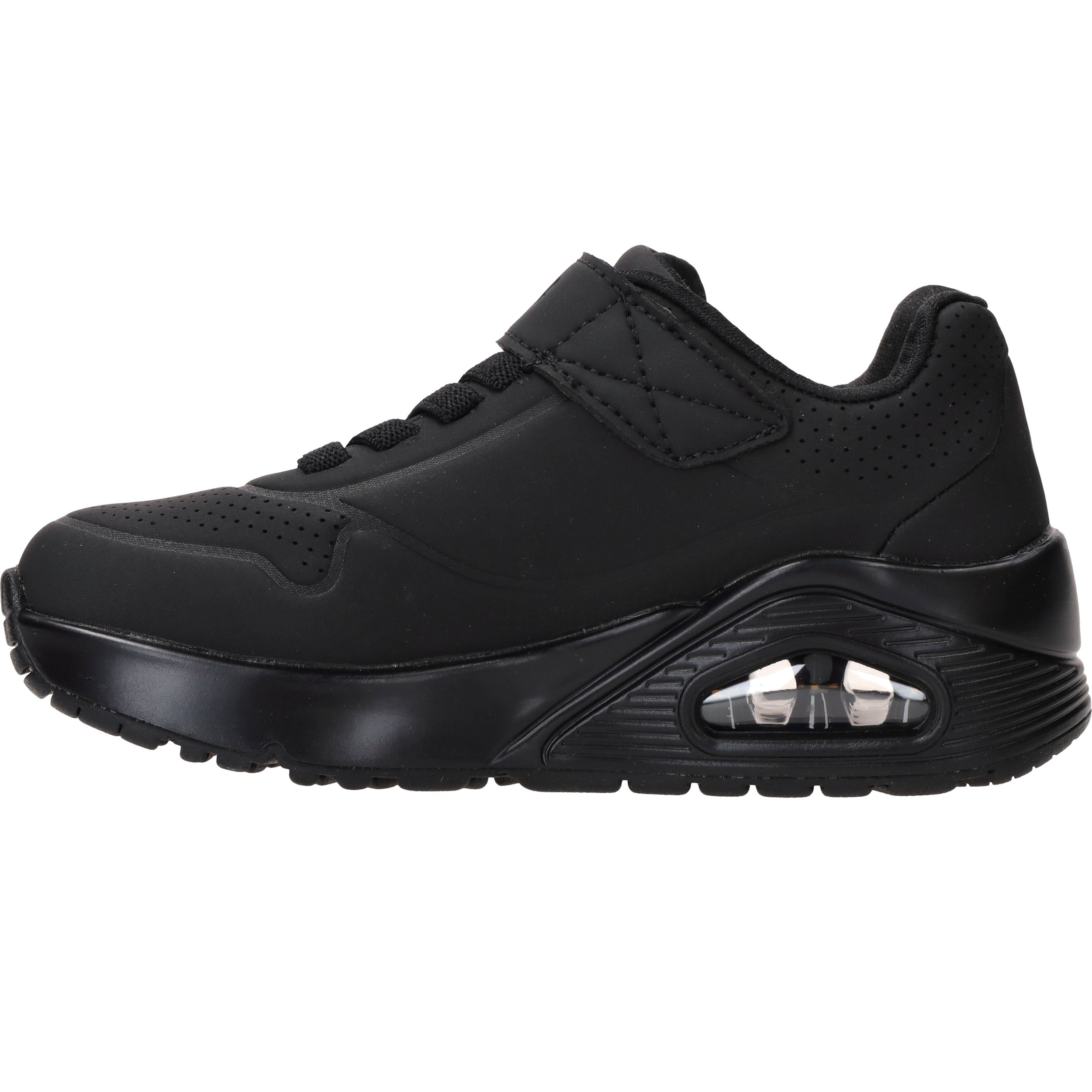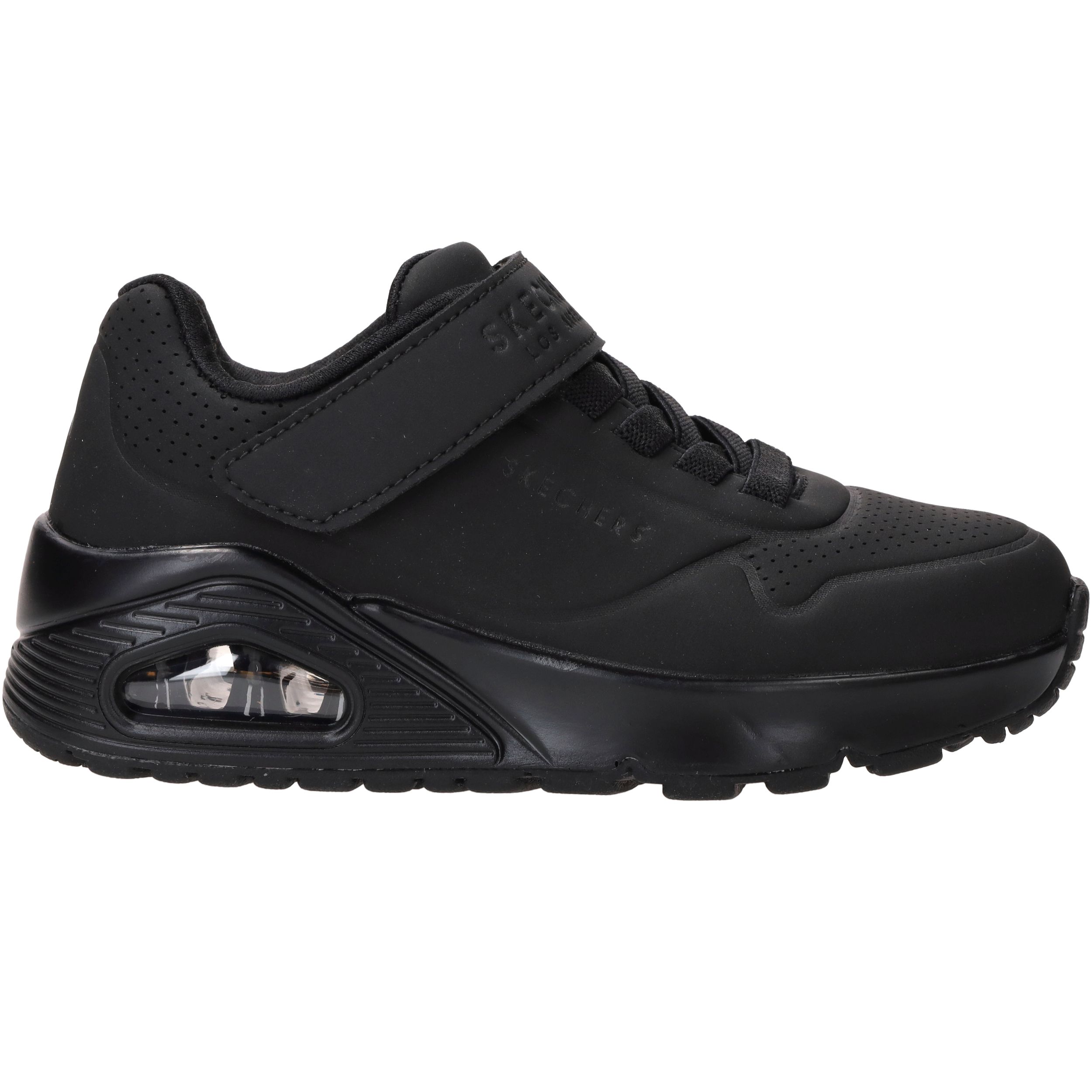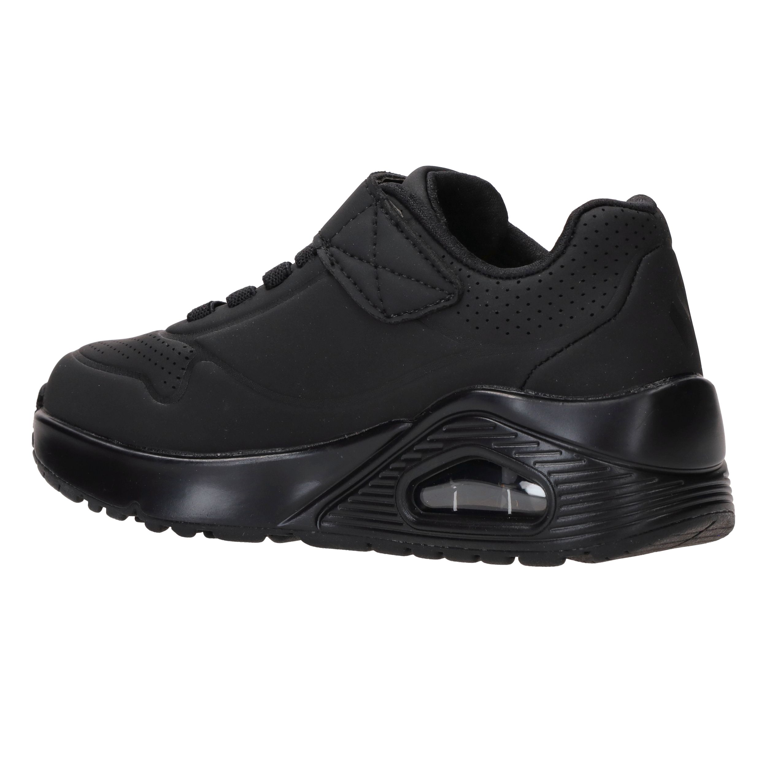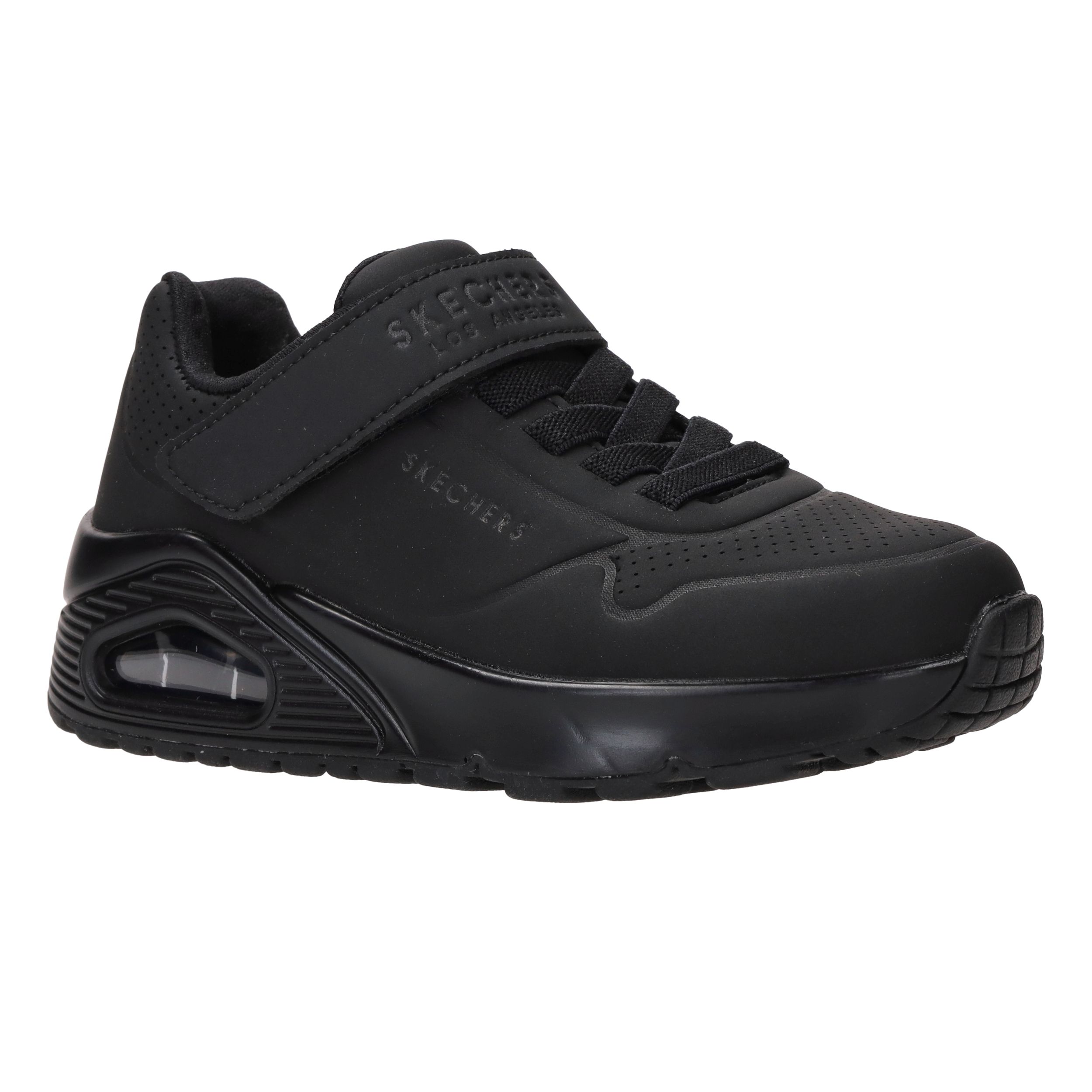 Deze gave zwarte jongens Skechers Uno Air Blitz sneakers lopen heerlijk en zijn super makkelijk aan te doen door de elastische veter en klittenbandsluiting.