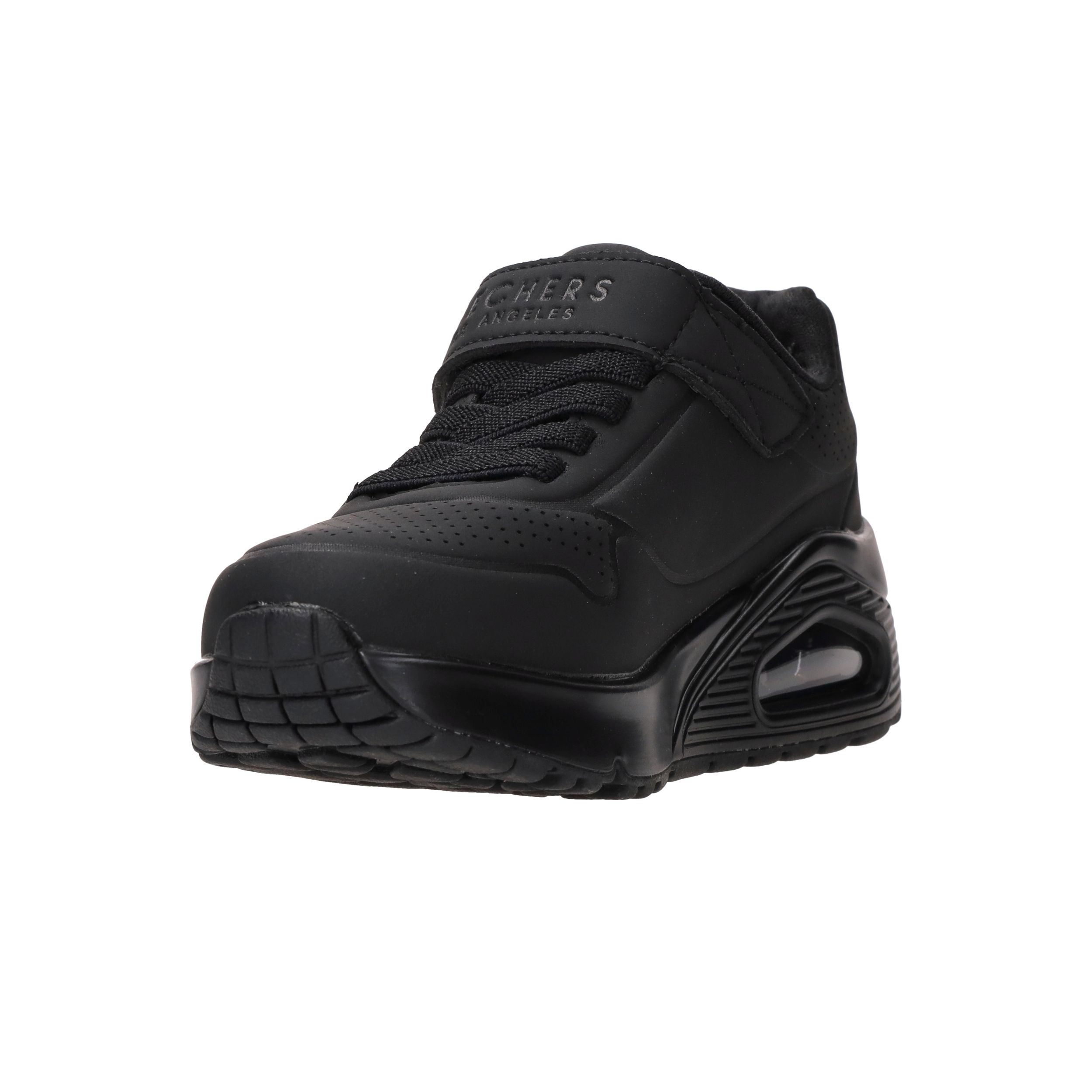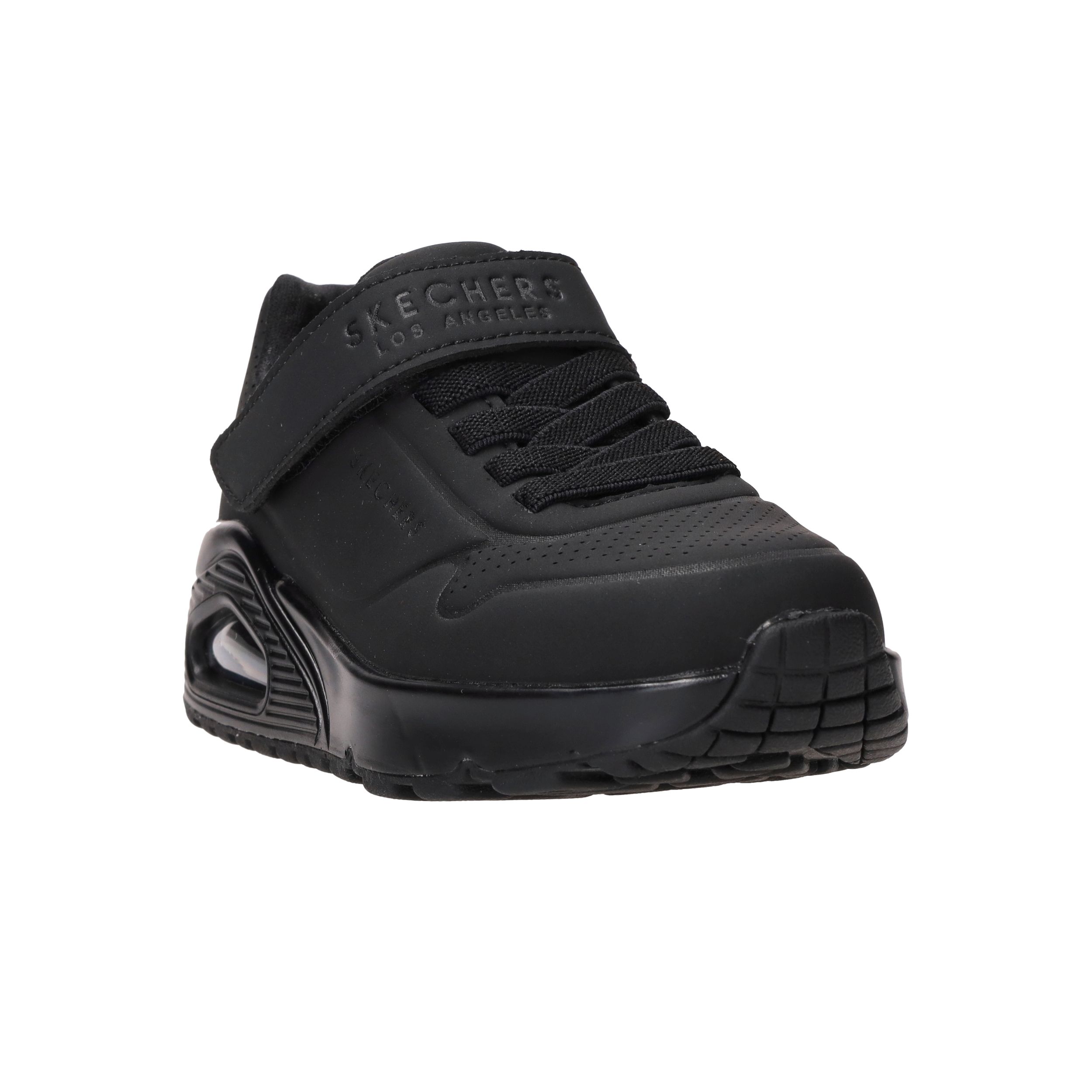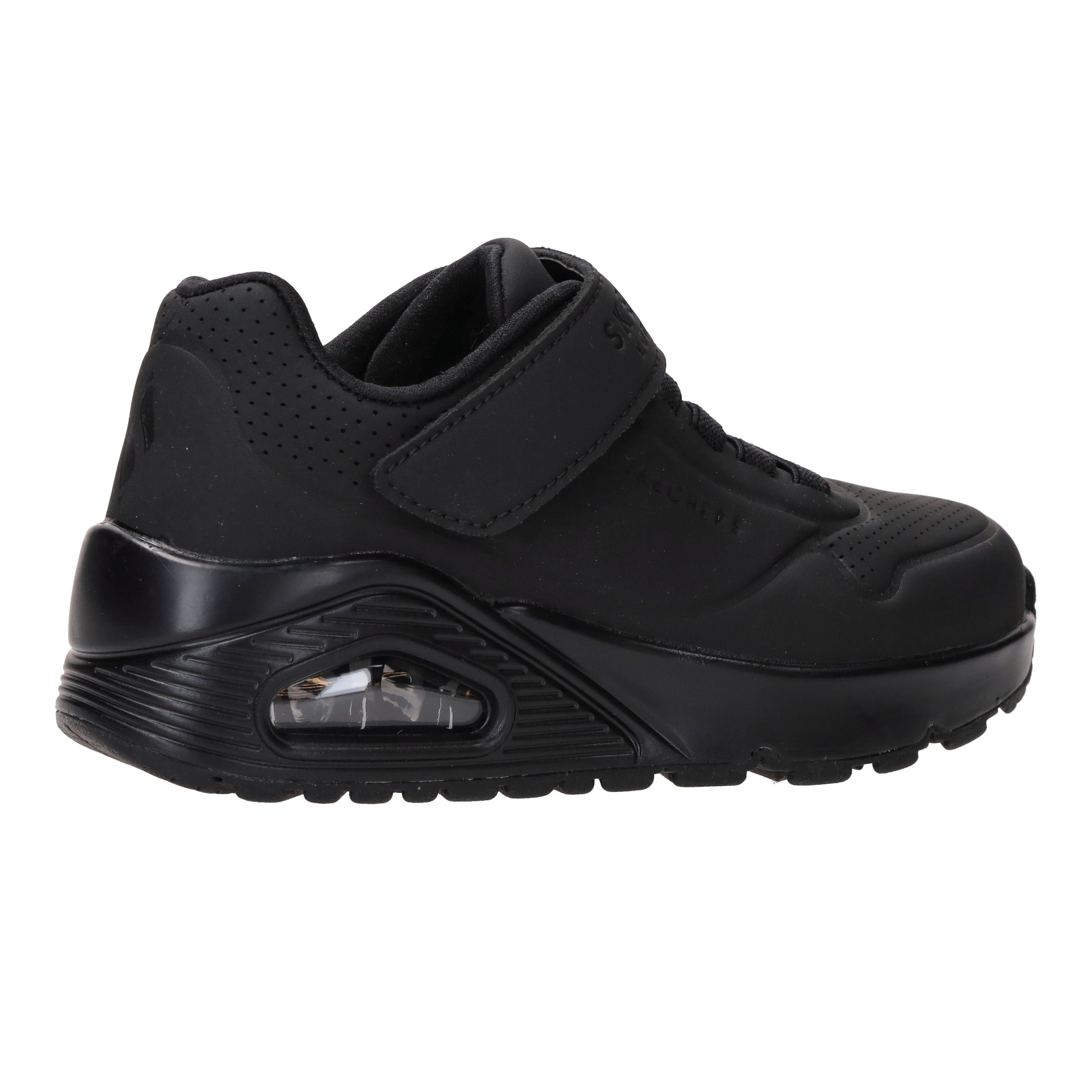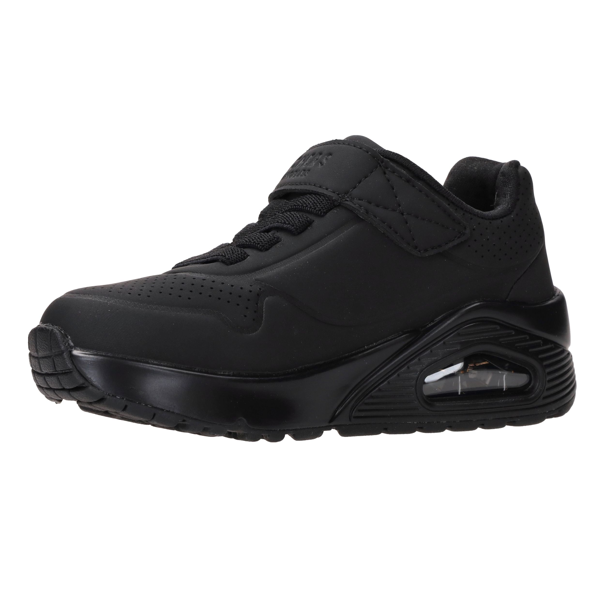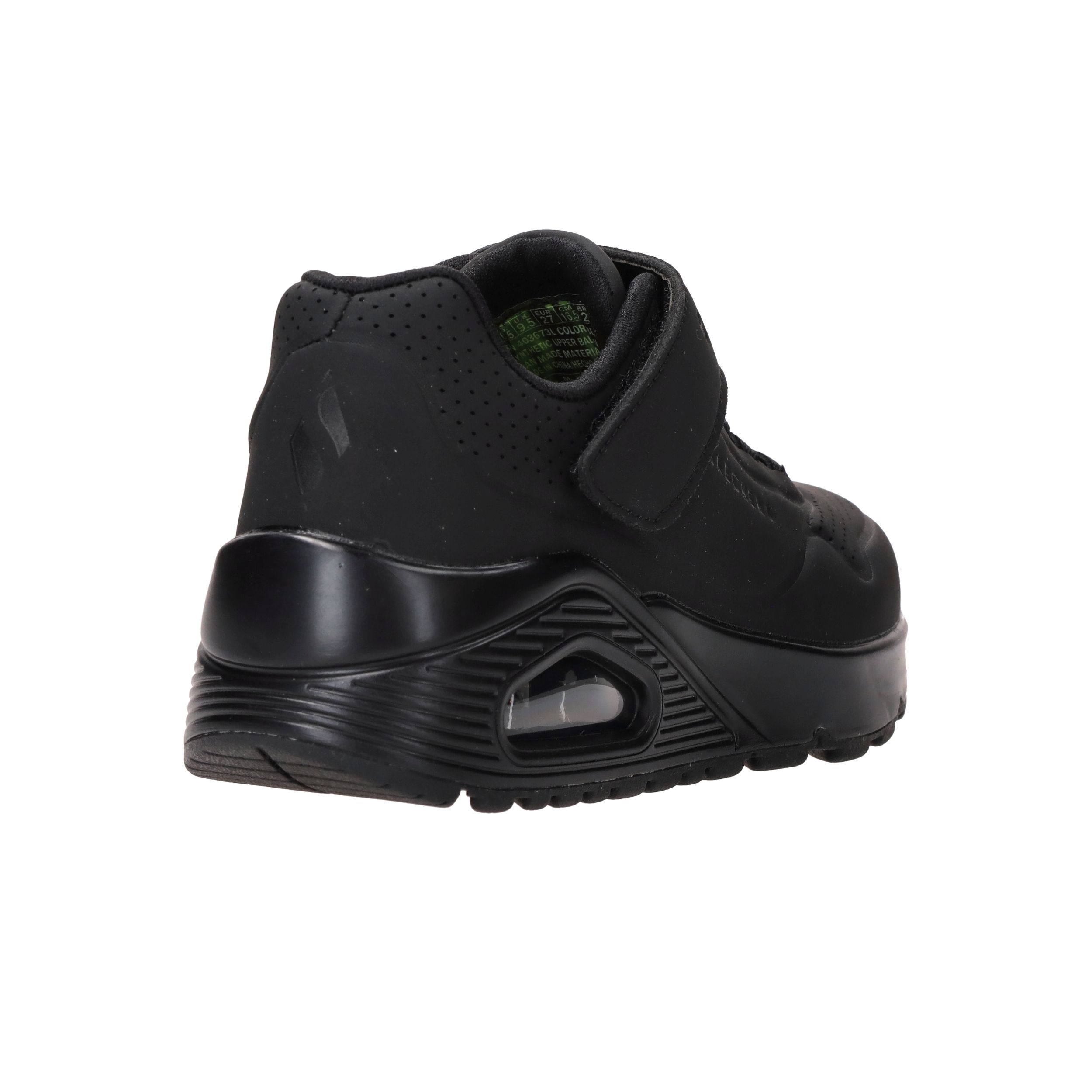 Deze gave zwarte jongens Skechers Uno Air Blitz sneakers lopen heerlijk en zijn super makkelijk aan te doen door de elastische veter en klittenbandsluiting.