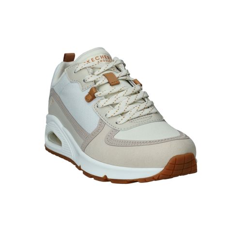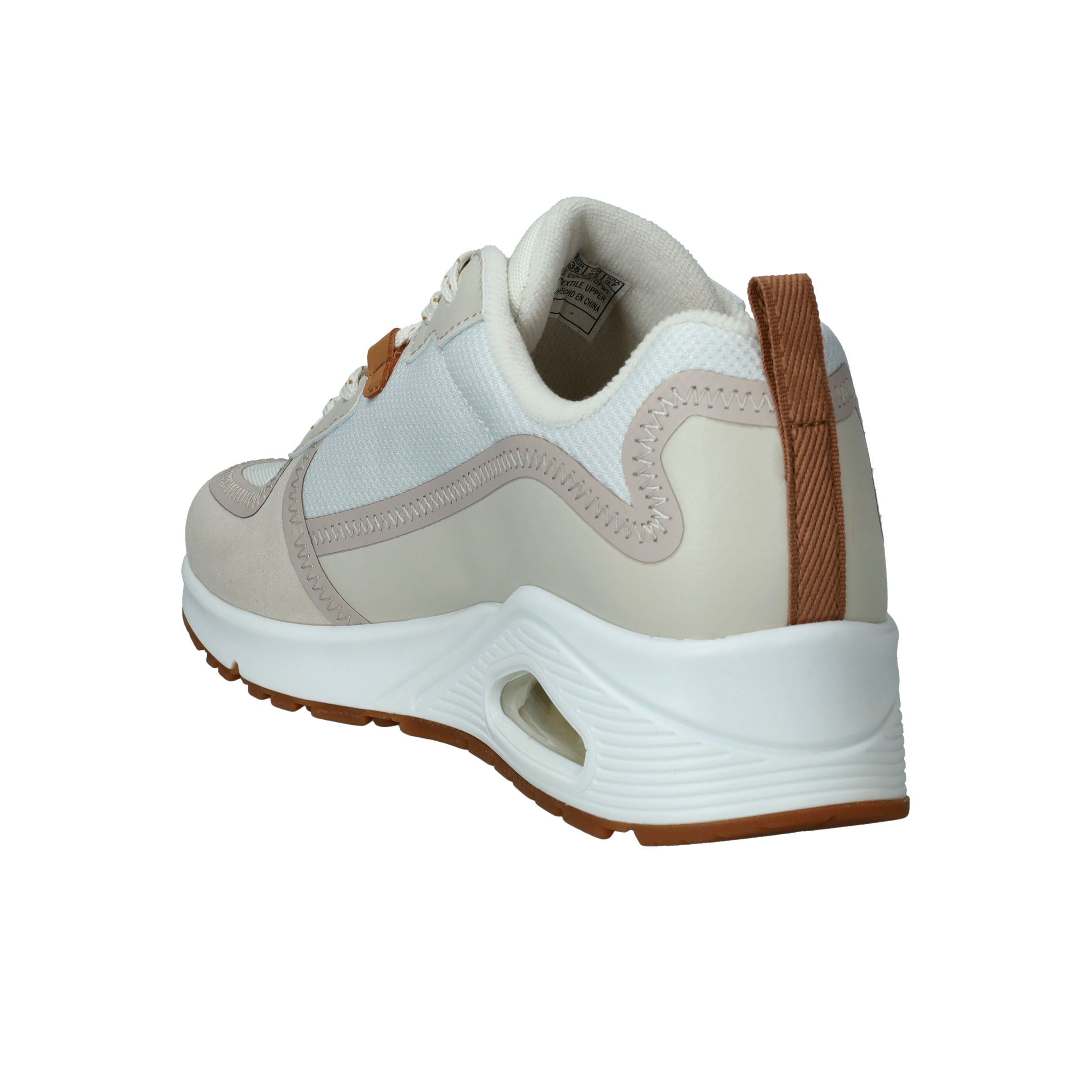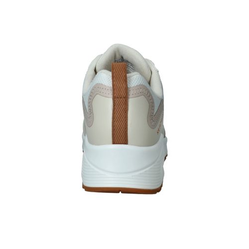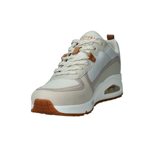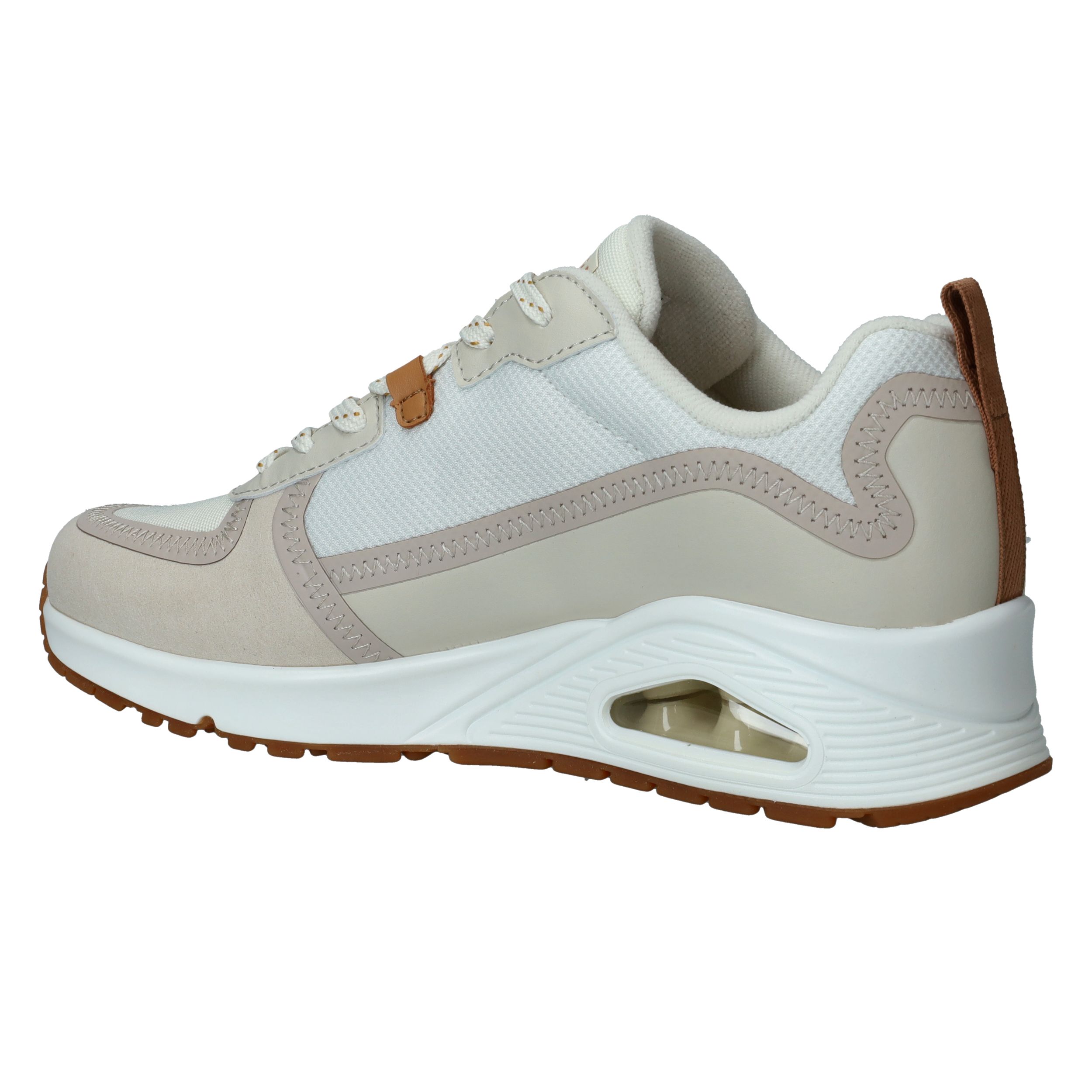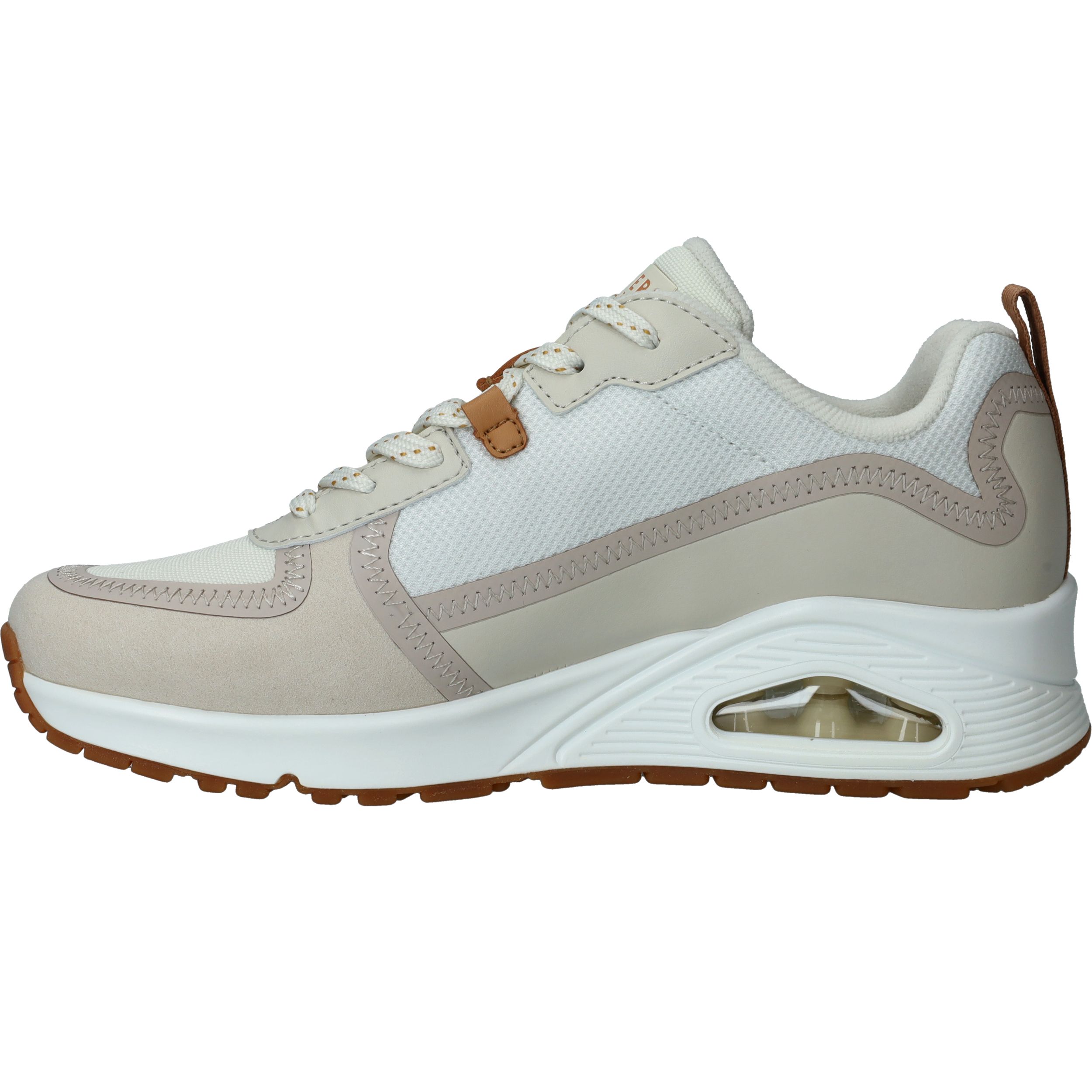 Ga voor deze sportieve Skechers Uno Layover sneaker voor dames! De sneaker heeft een warme beige kleur en cognac accenten.