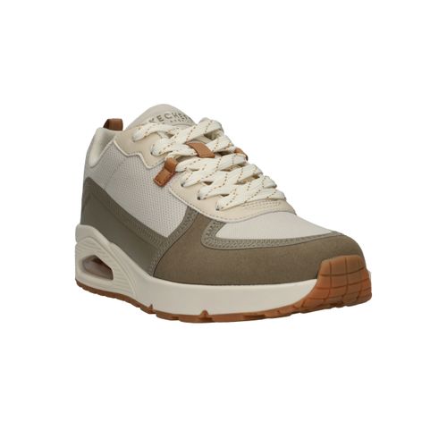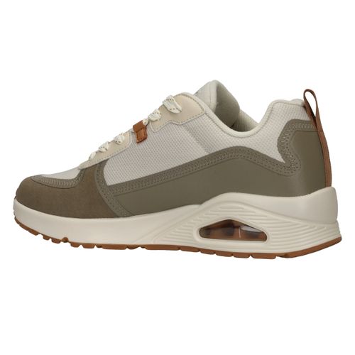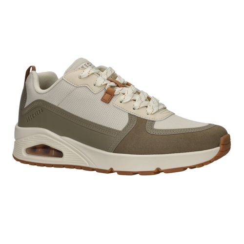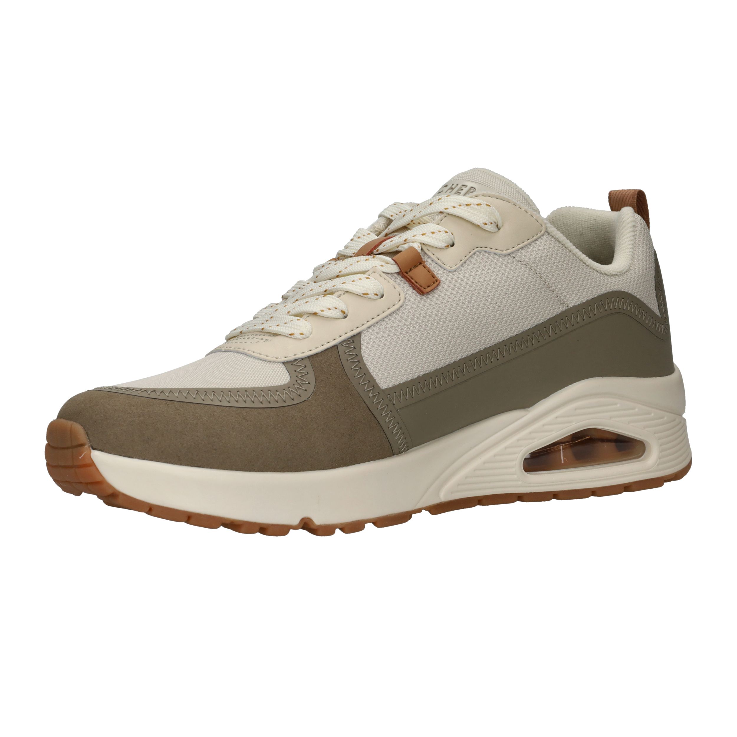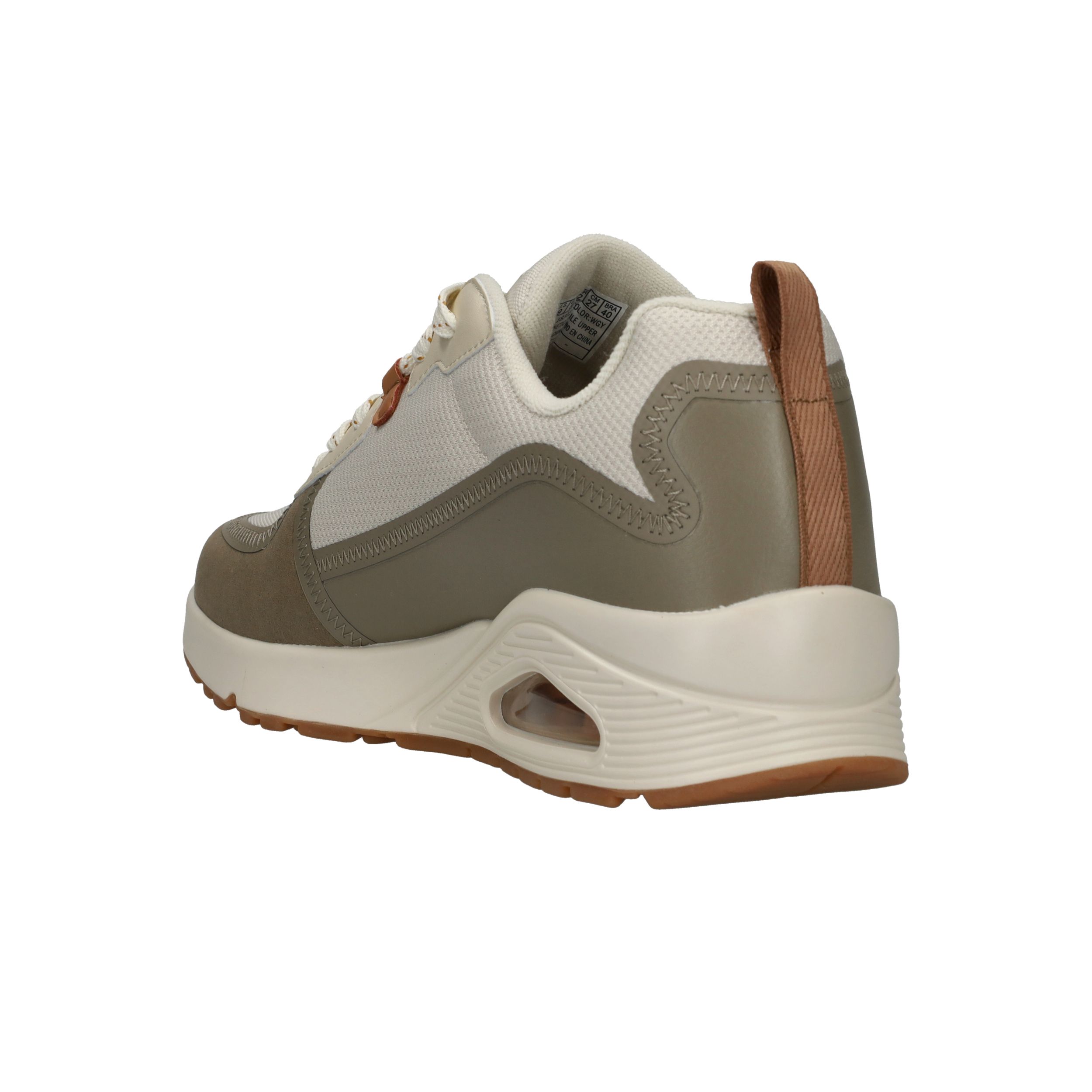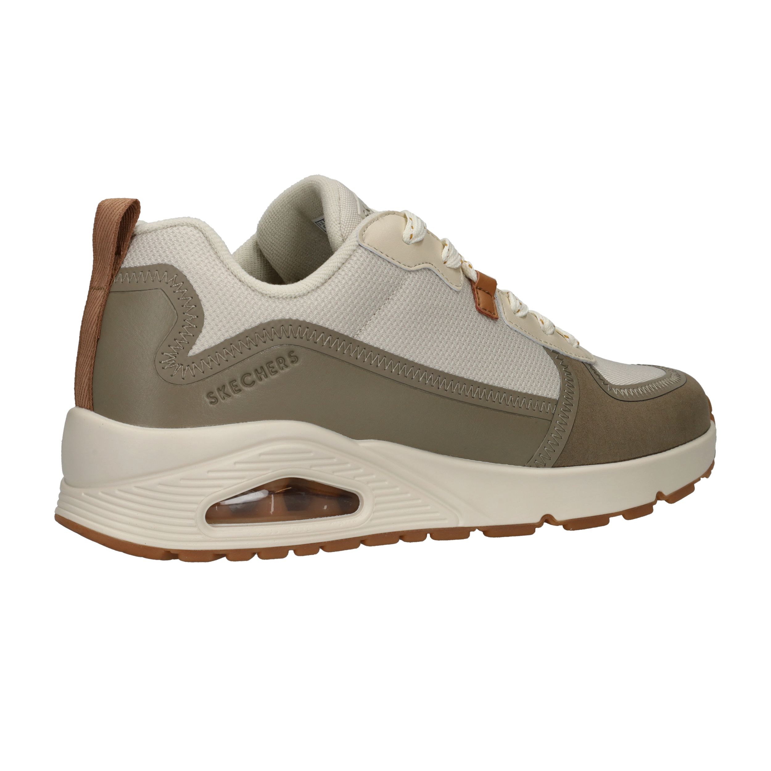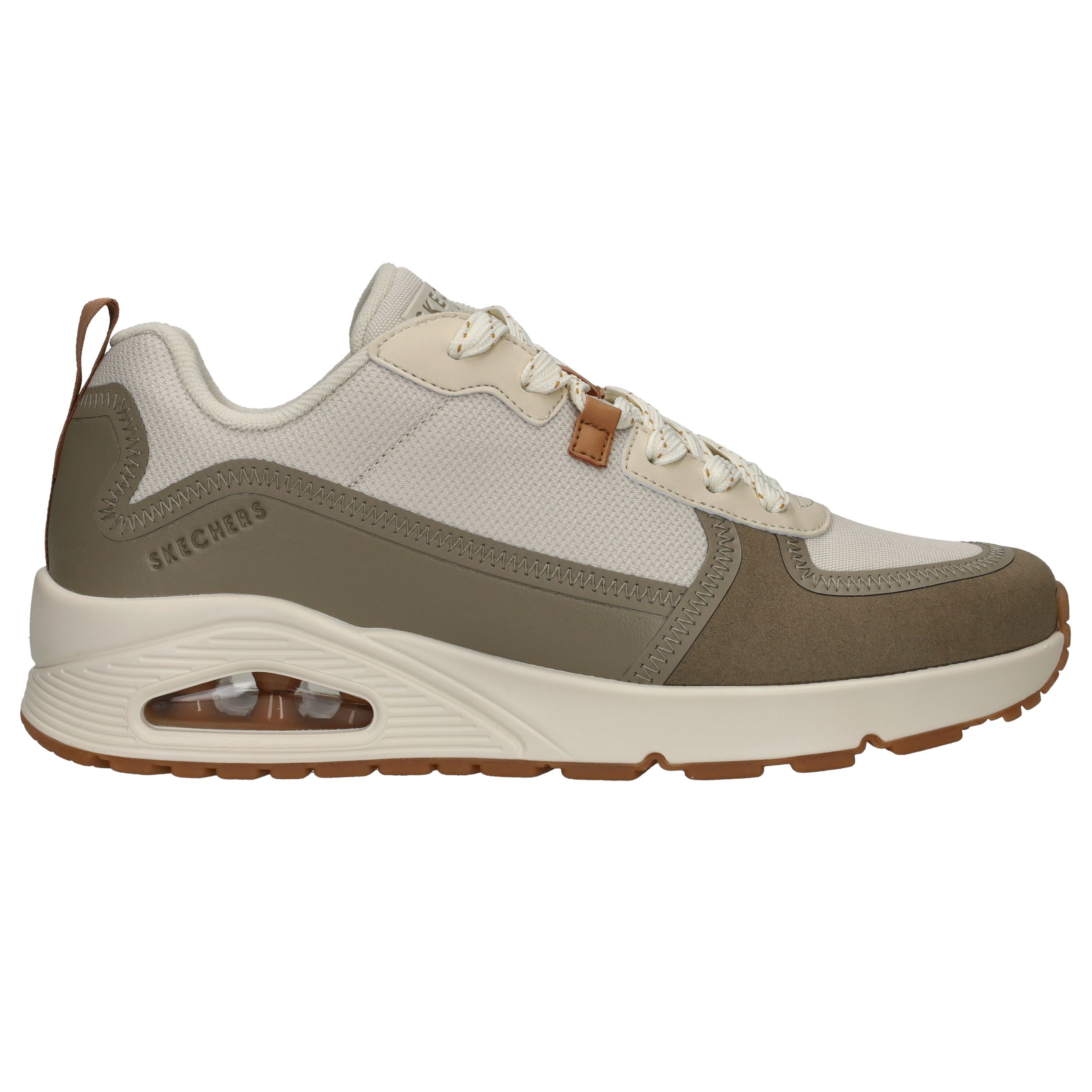 Wat een fijne Skechers Uno Layover sneaker is dit! De herensneaker heeft een mooie beige kleur met olijfgroene accenten.