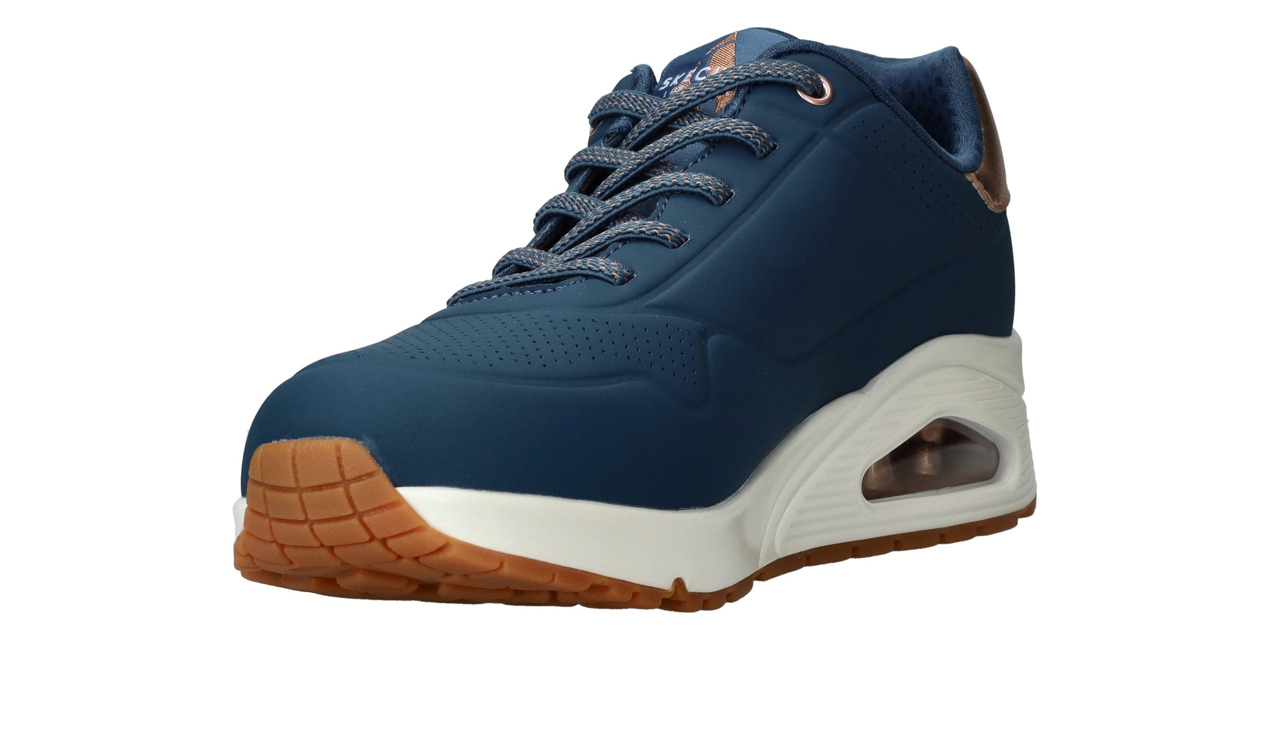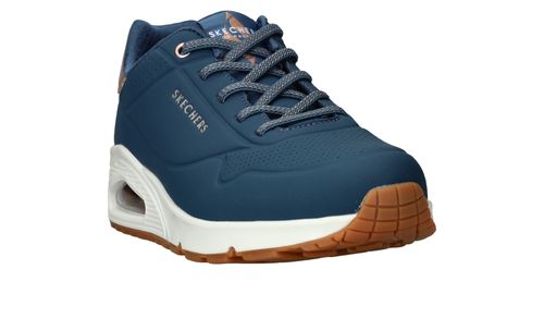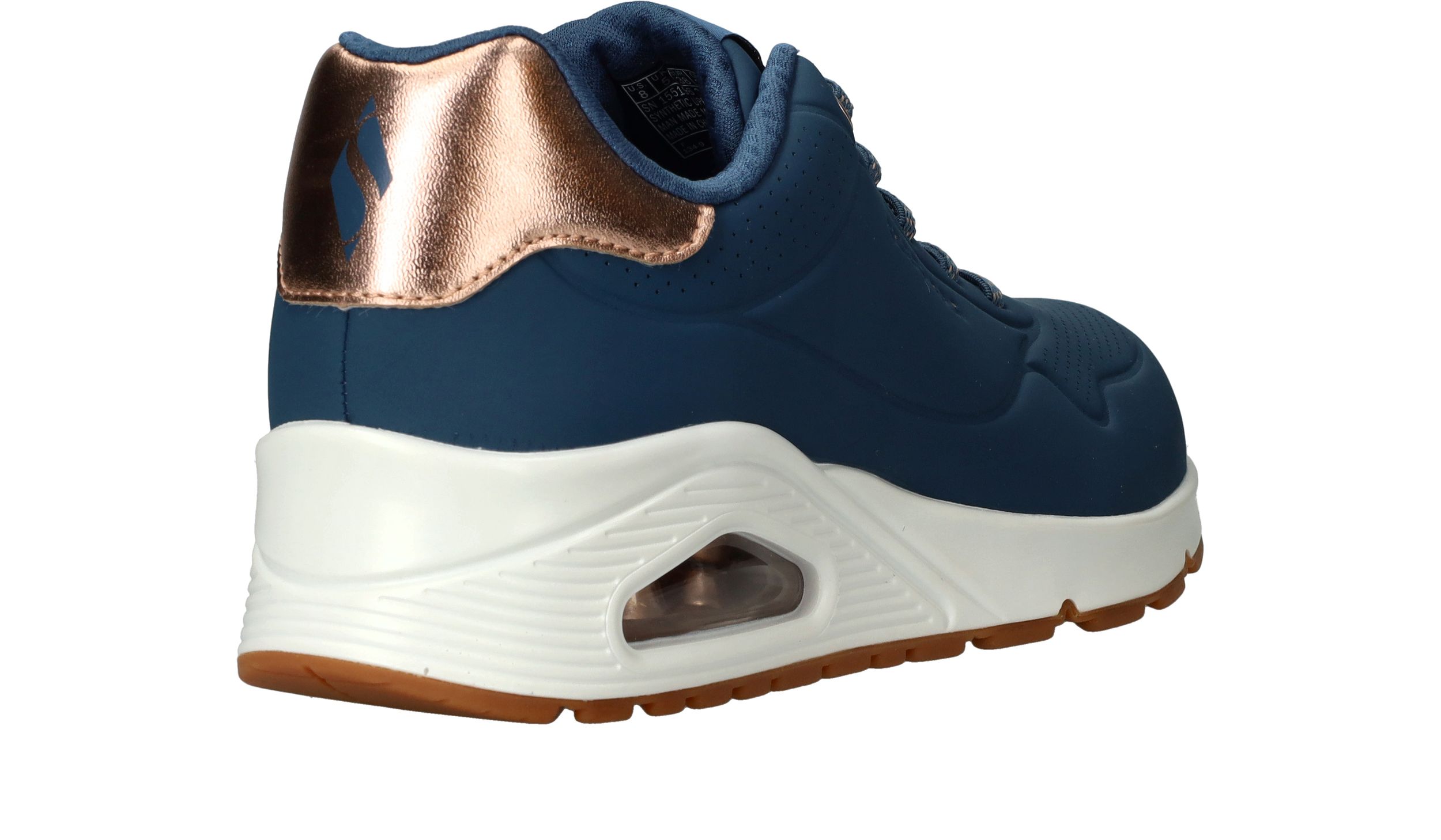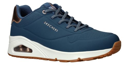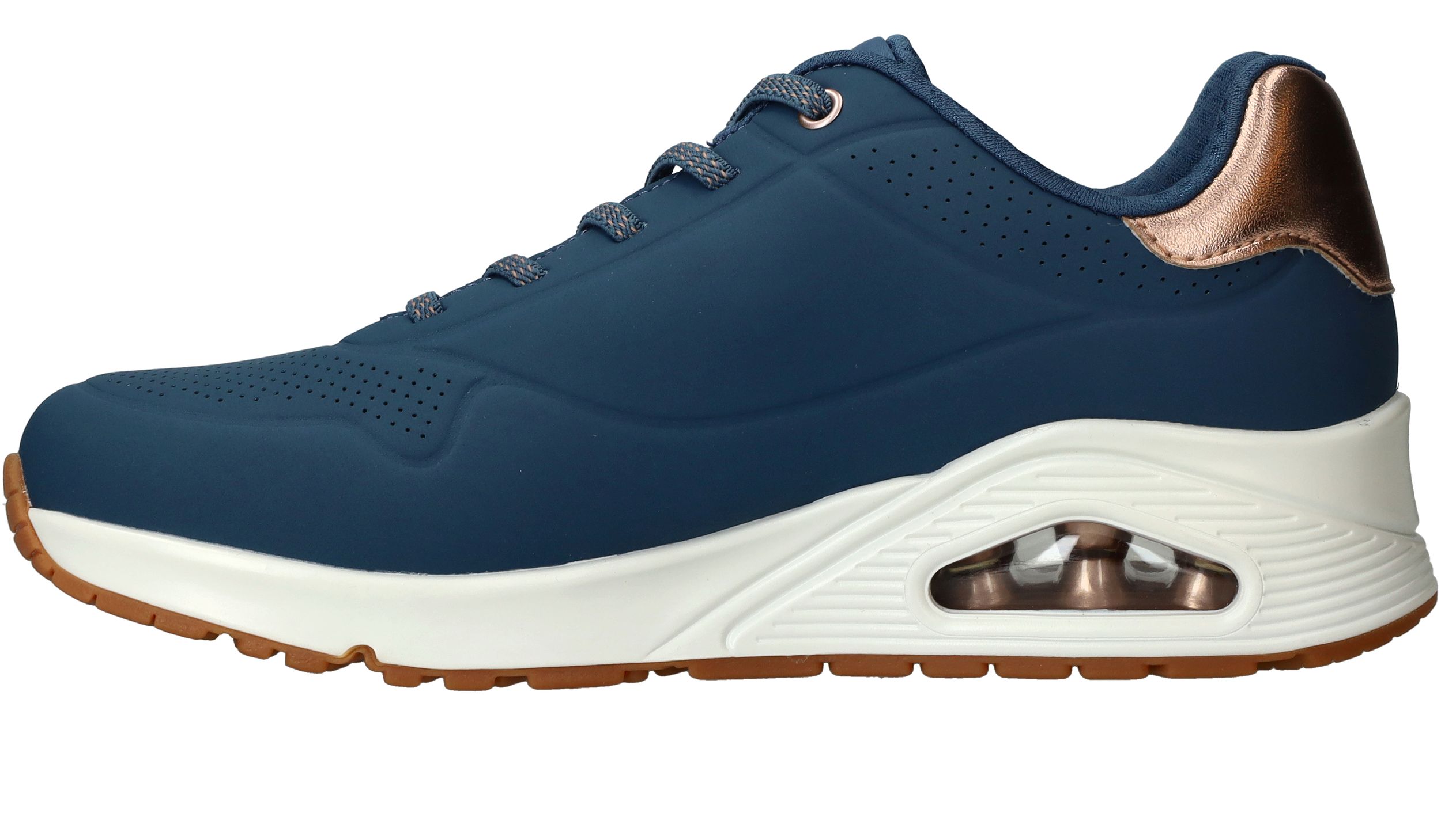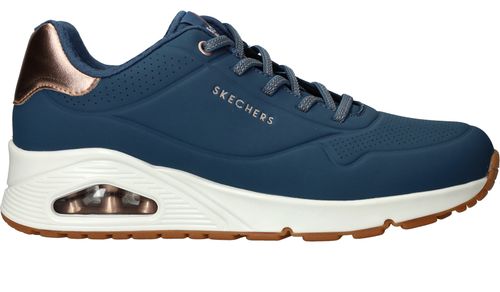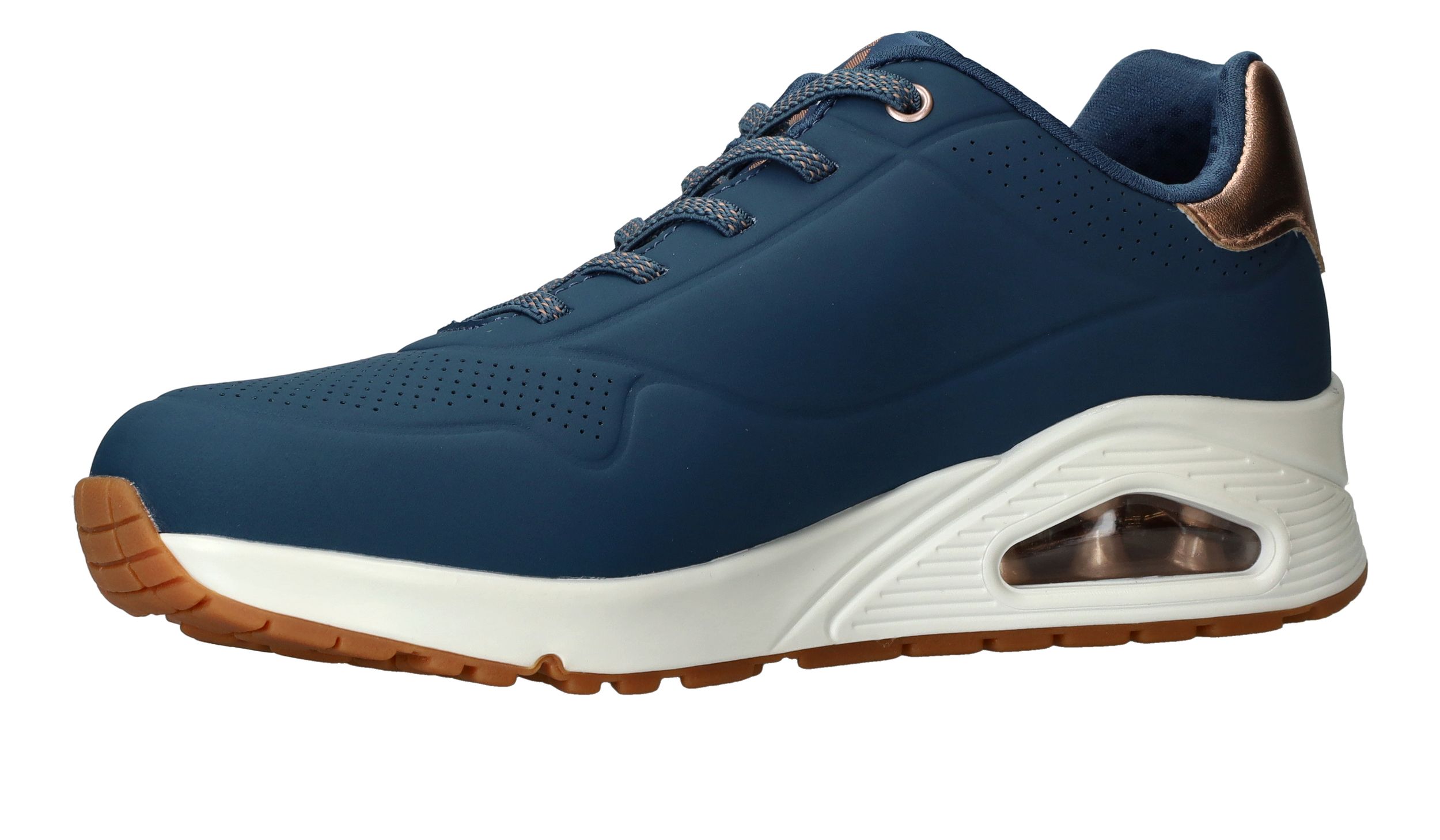 Sportieve Skechers Uno Shimmer Away sneaker voor dames in een stralend blauwe kleur. De sneakers zijn perfect voor elke gelegenheid en activiteit!