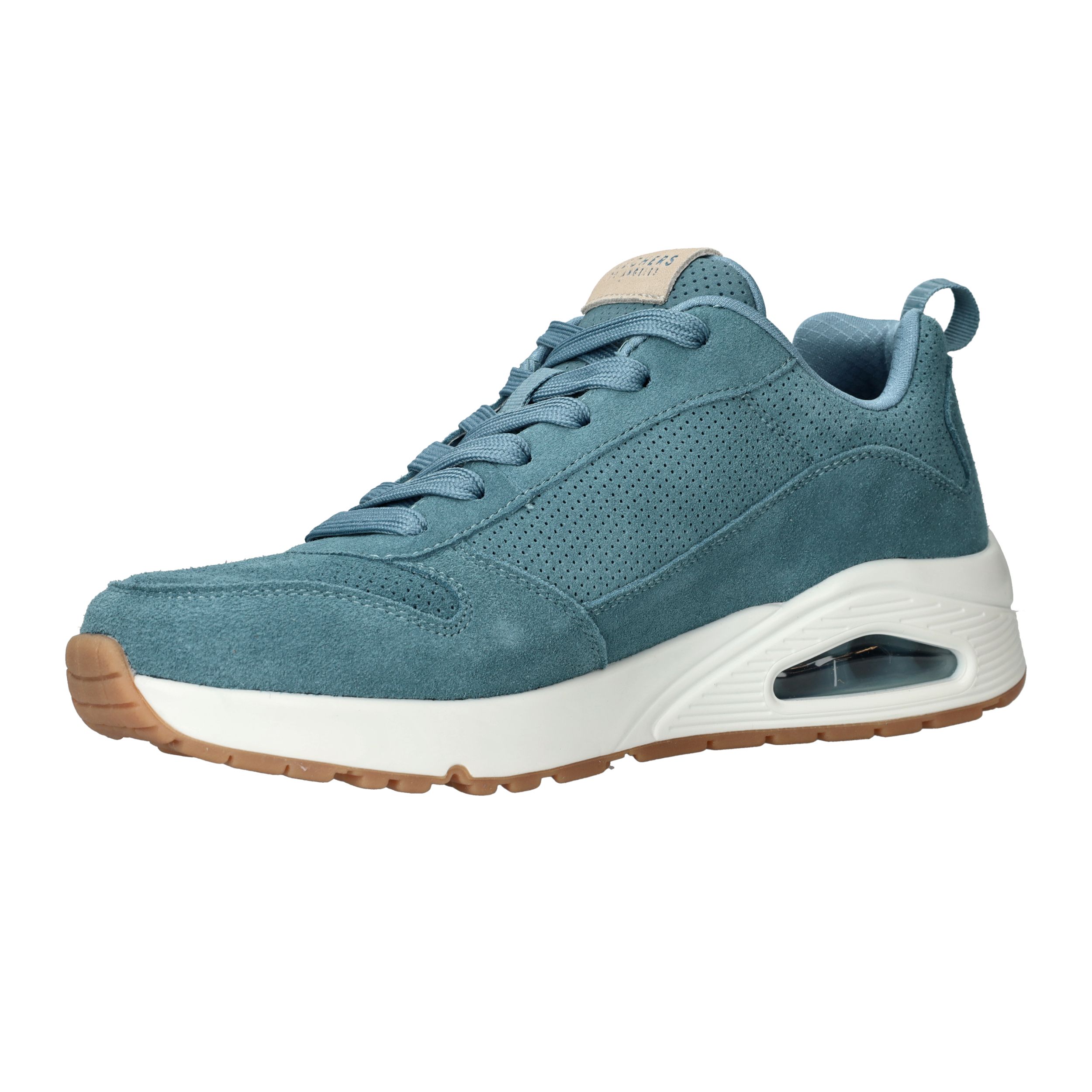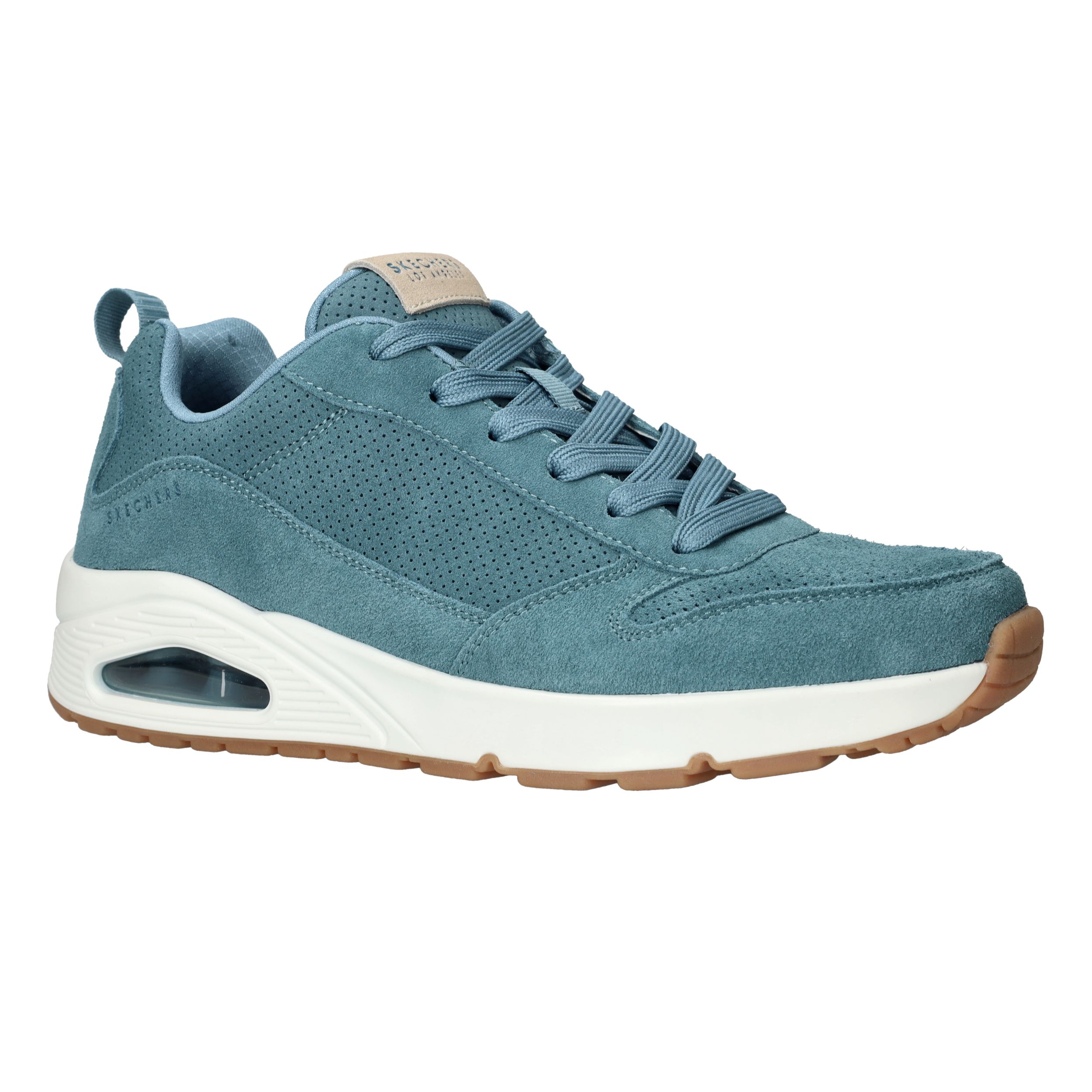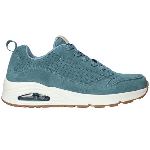 Gave blauwe Skechers Uno sneaker voor heren. De sneaker is gemaakt van suède en de blauwe kleur kun je alle seizoenen dragen.