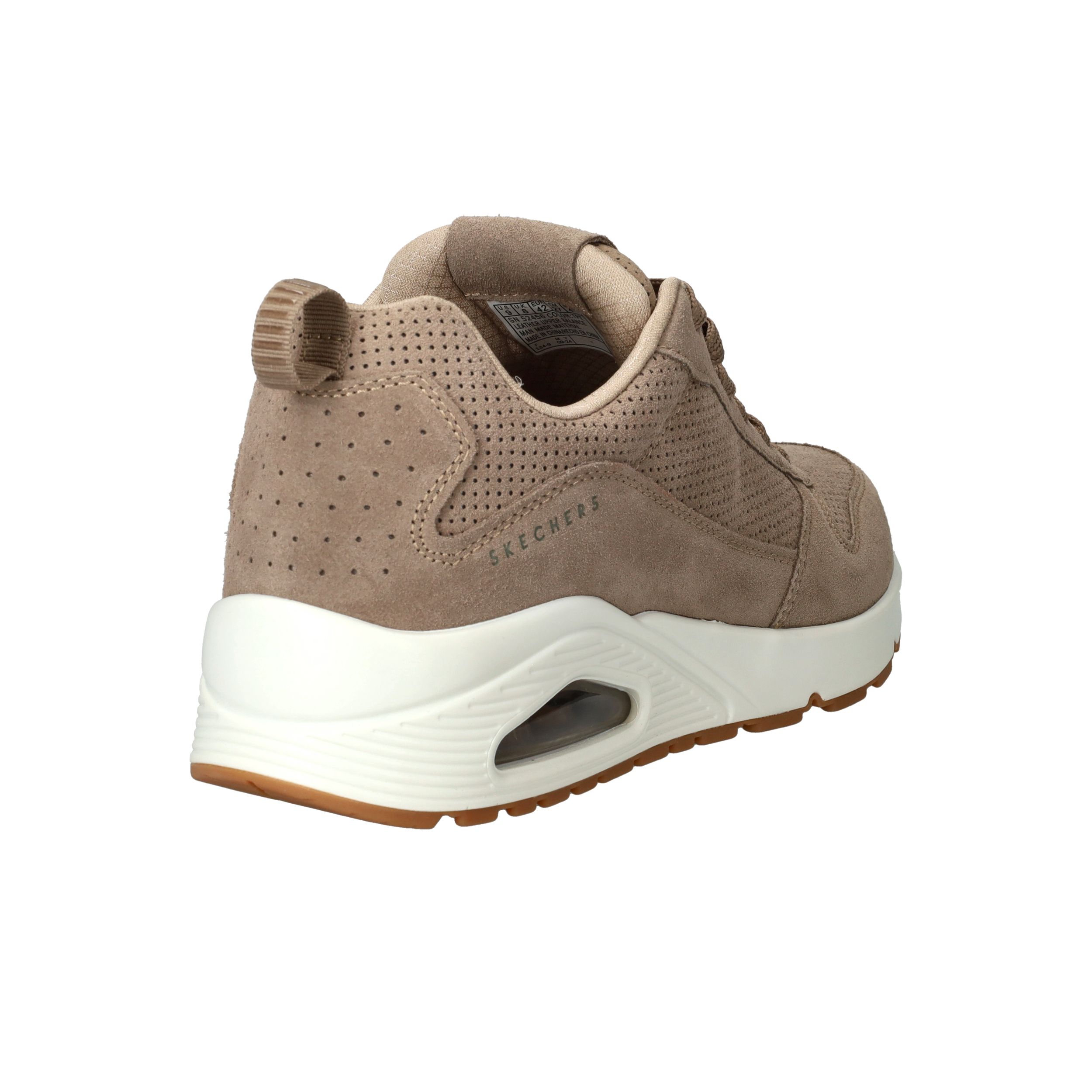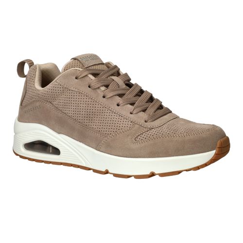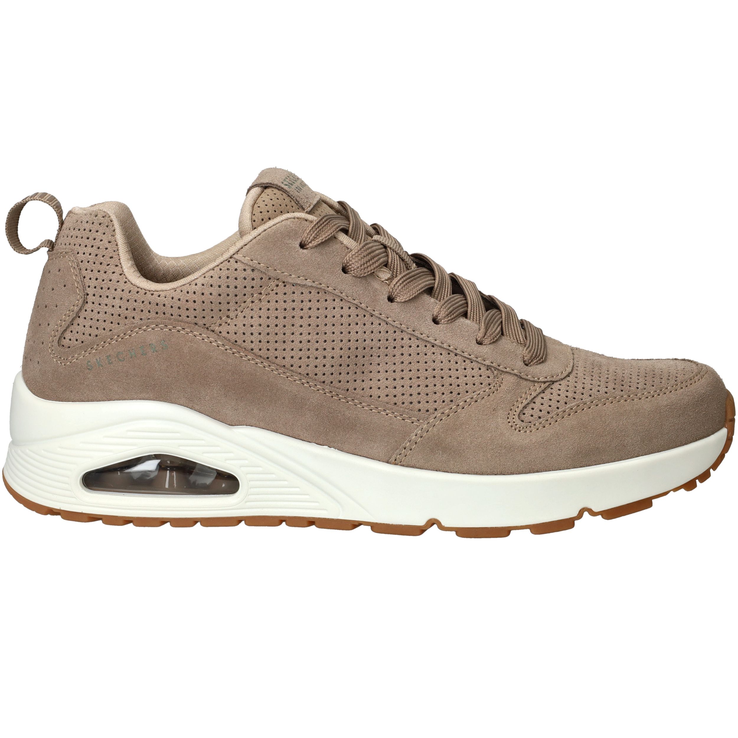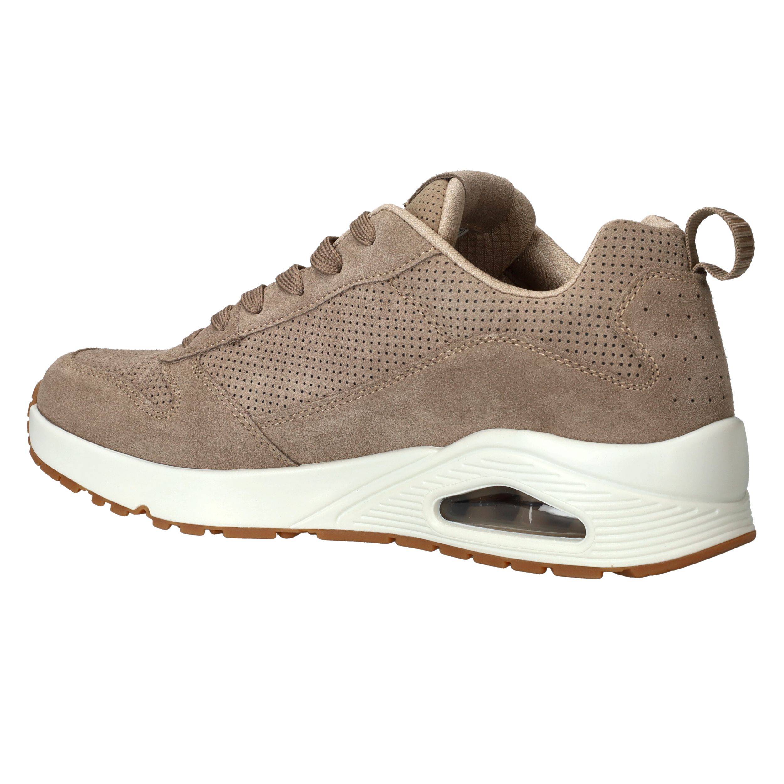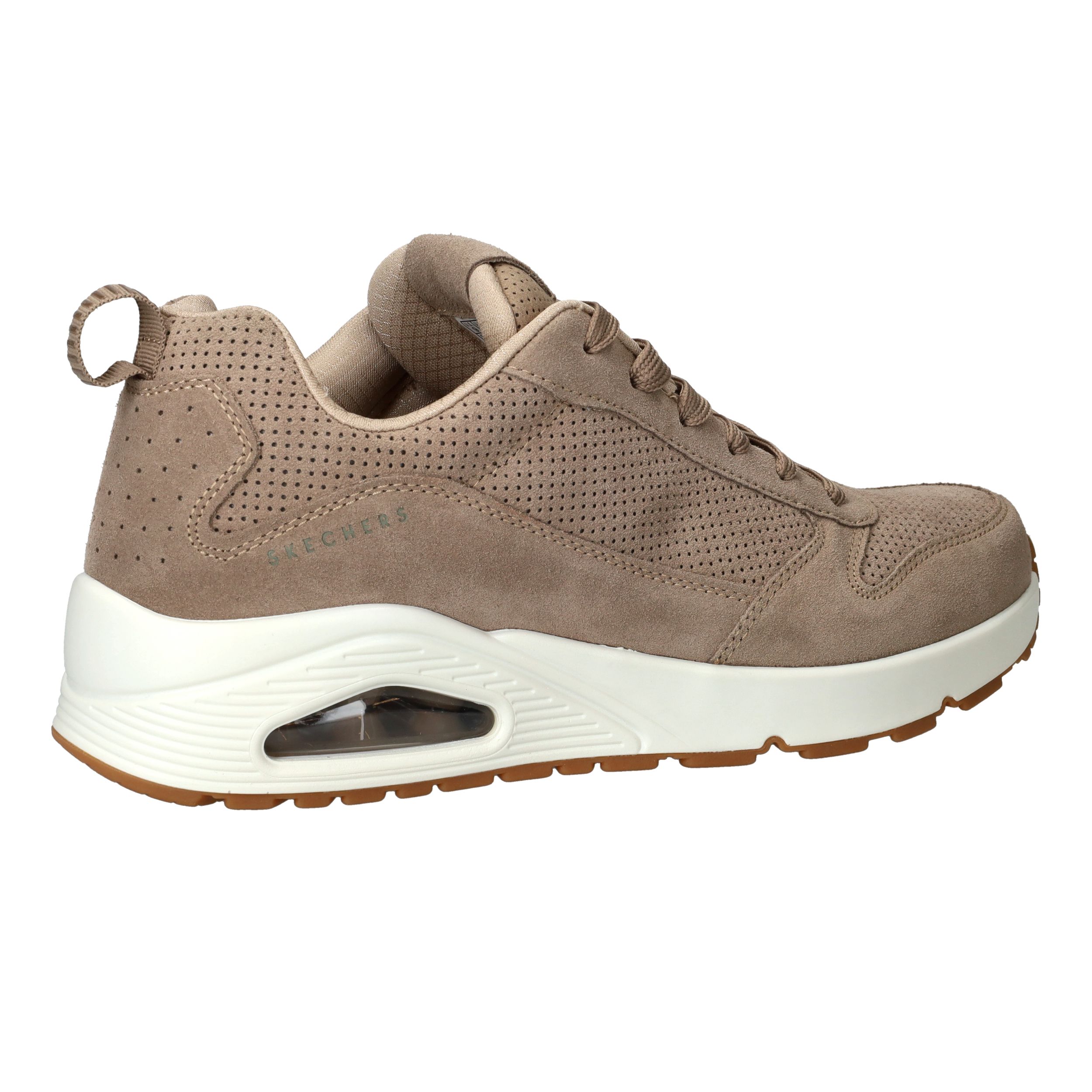 Sportieve Skechers Uno sneaker voor heren. Deze sneaker heeft een mooie taupe kleur en is gemaakt van suède.