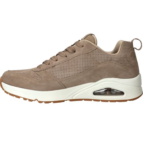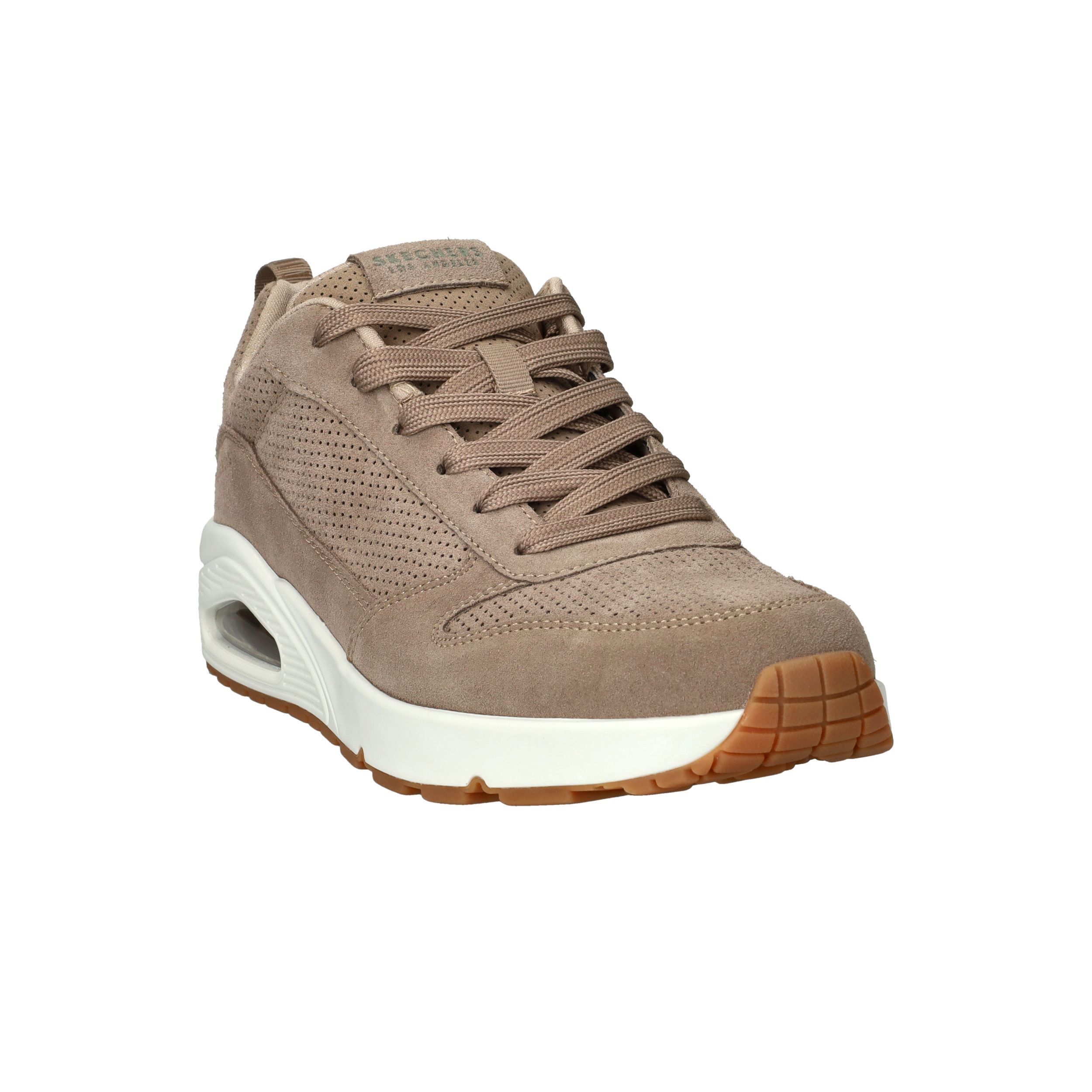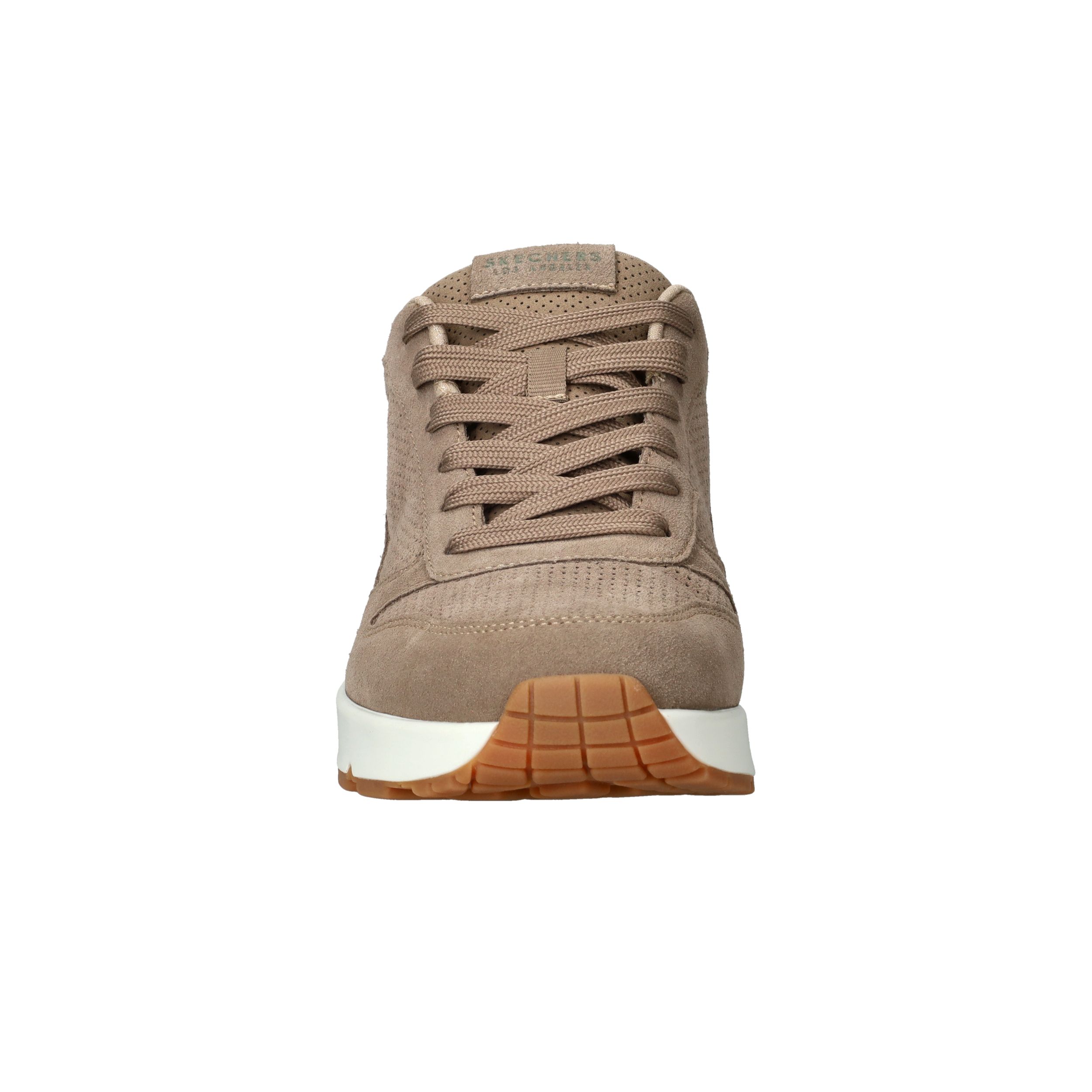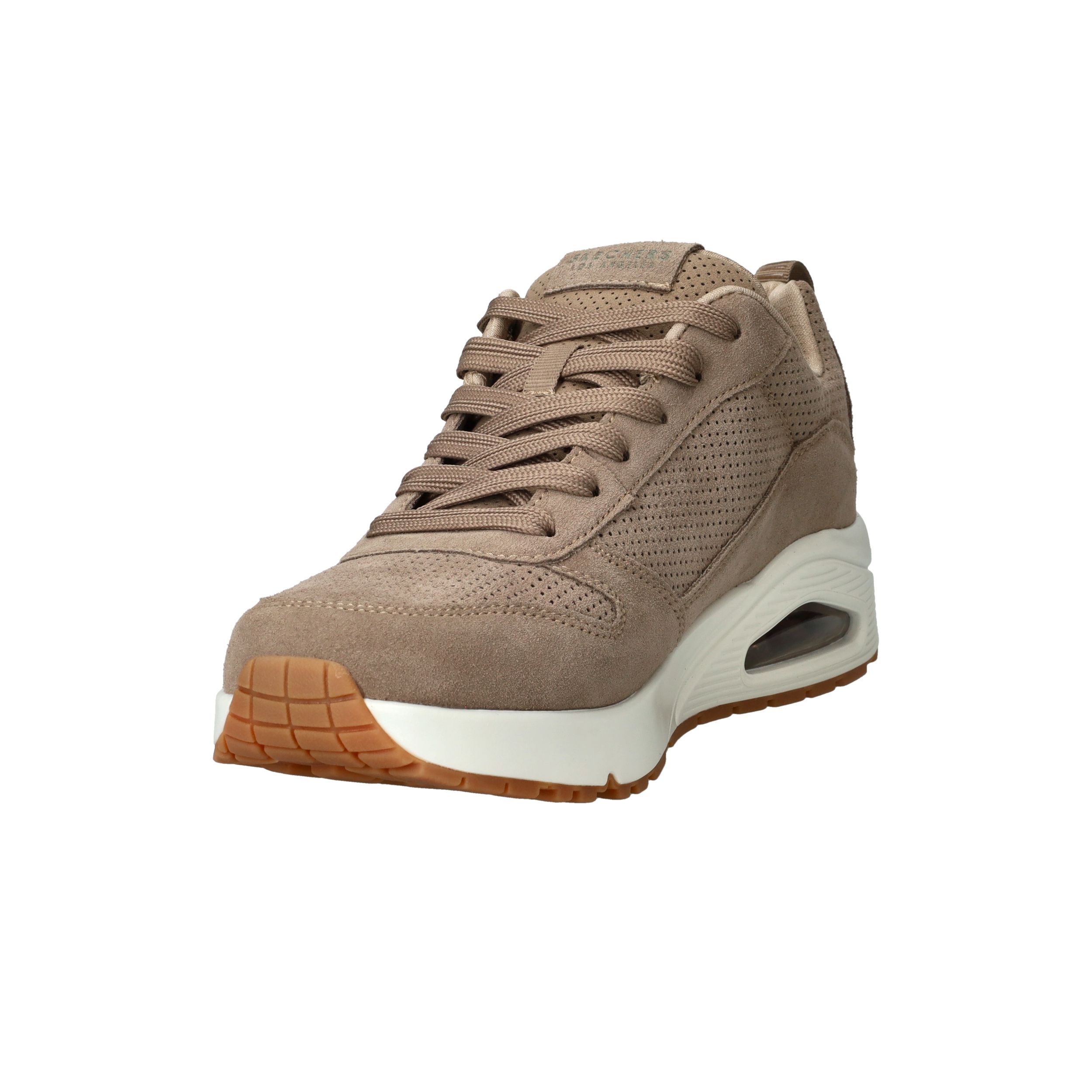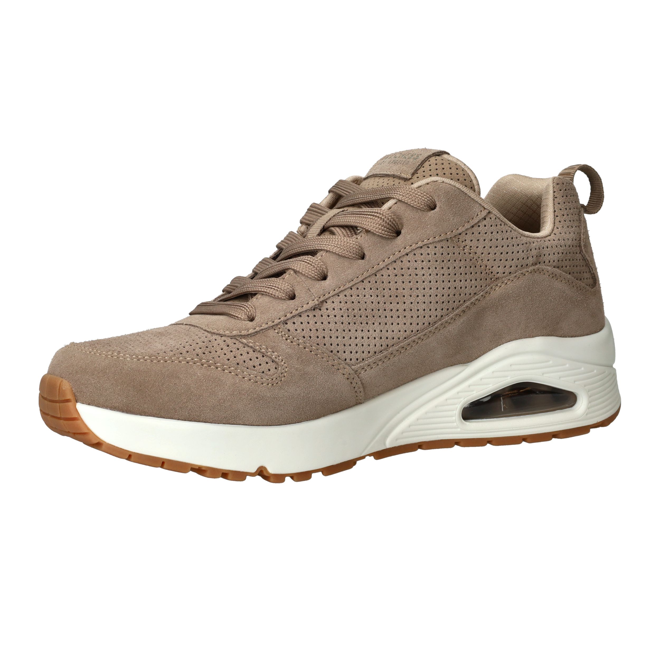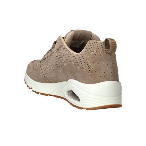 Sportieve Skechers Uno sneaker voor heren. Deze sneaker heeft een mooie taupe kleur en is gemaakt van suède.