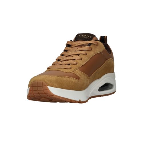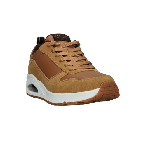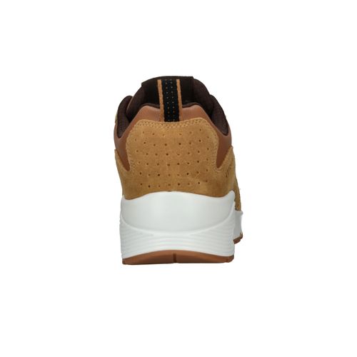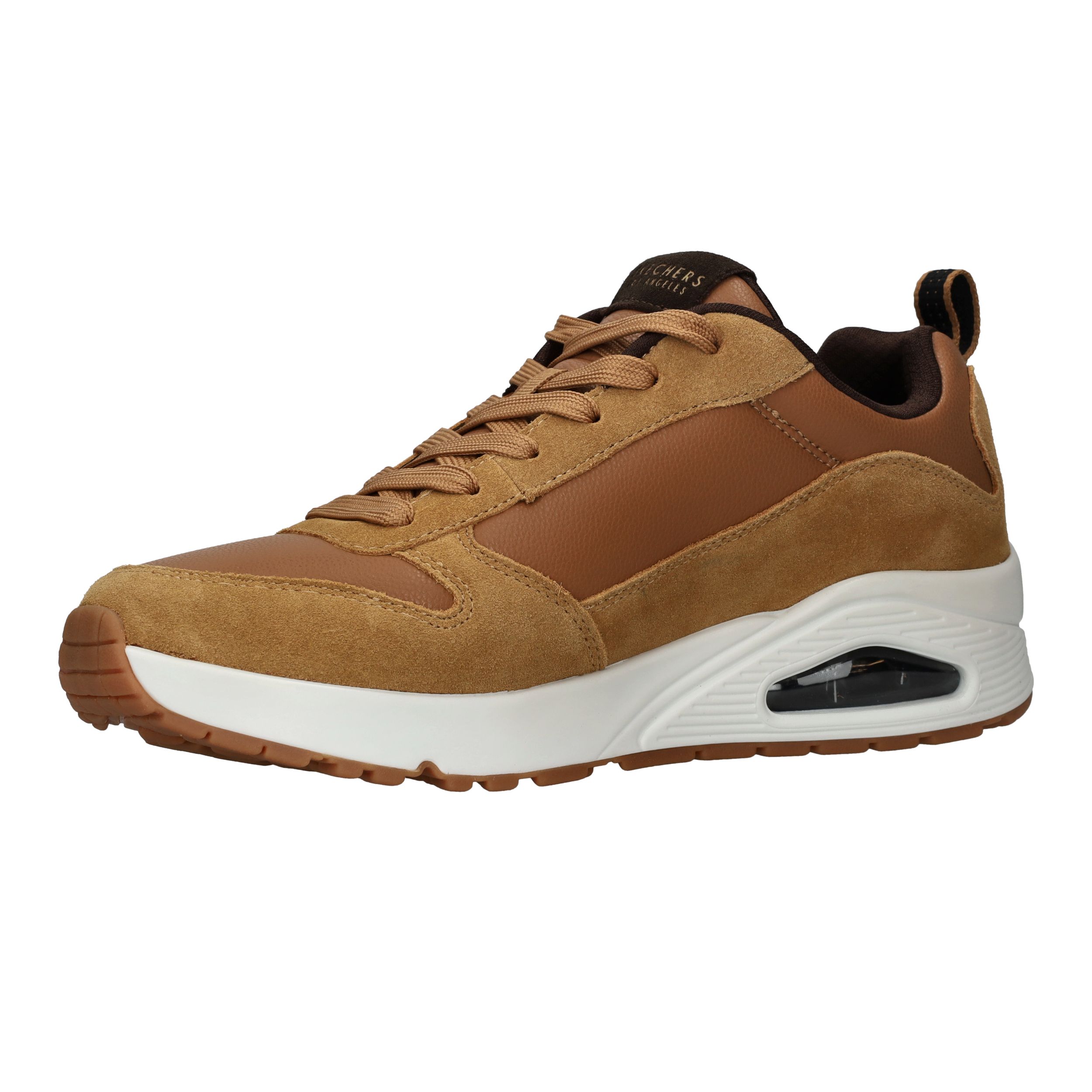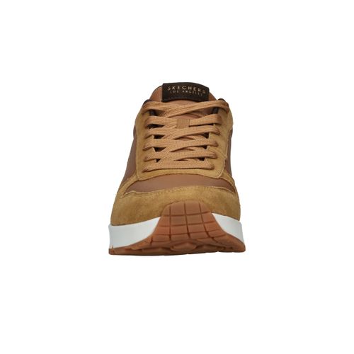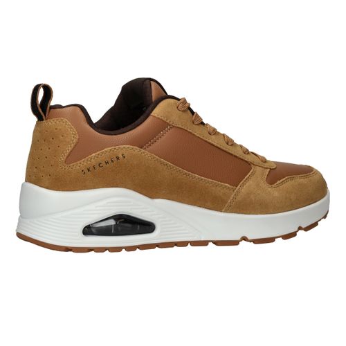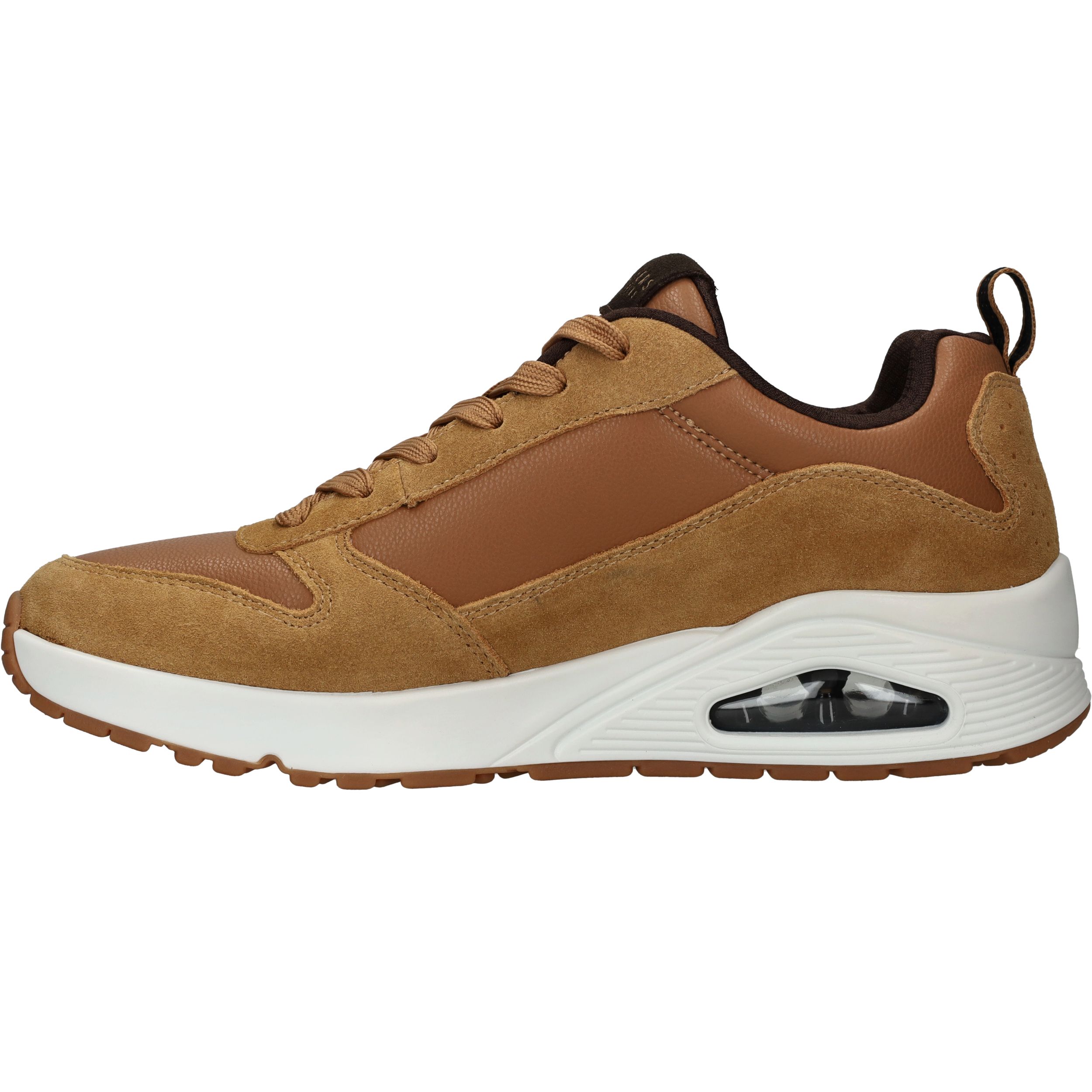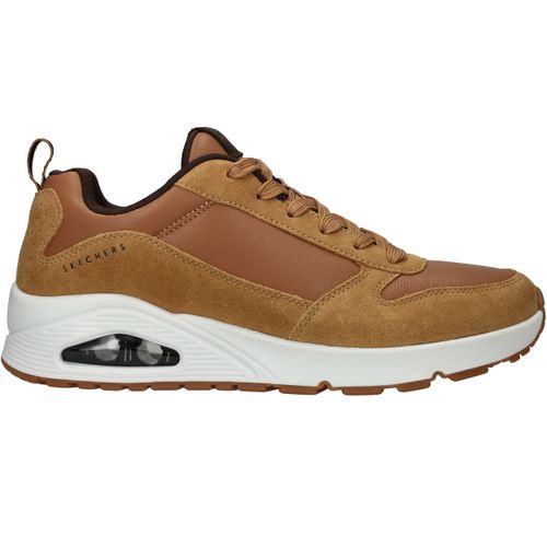 Draag deze Skechers Uno Stacre sneaker het hele jaar door! De herensneaker heeft een lichte cognac kleur en is gedeeltelijk gemaakt van leer.