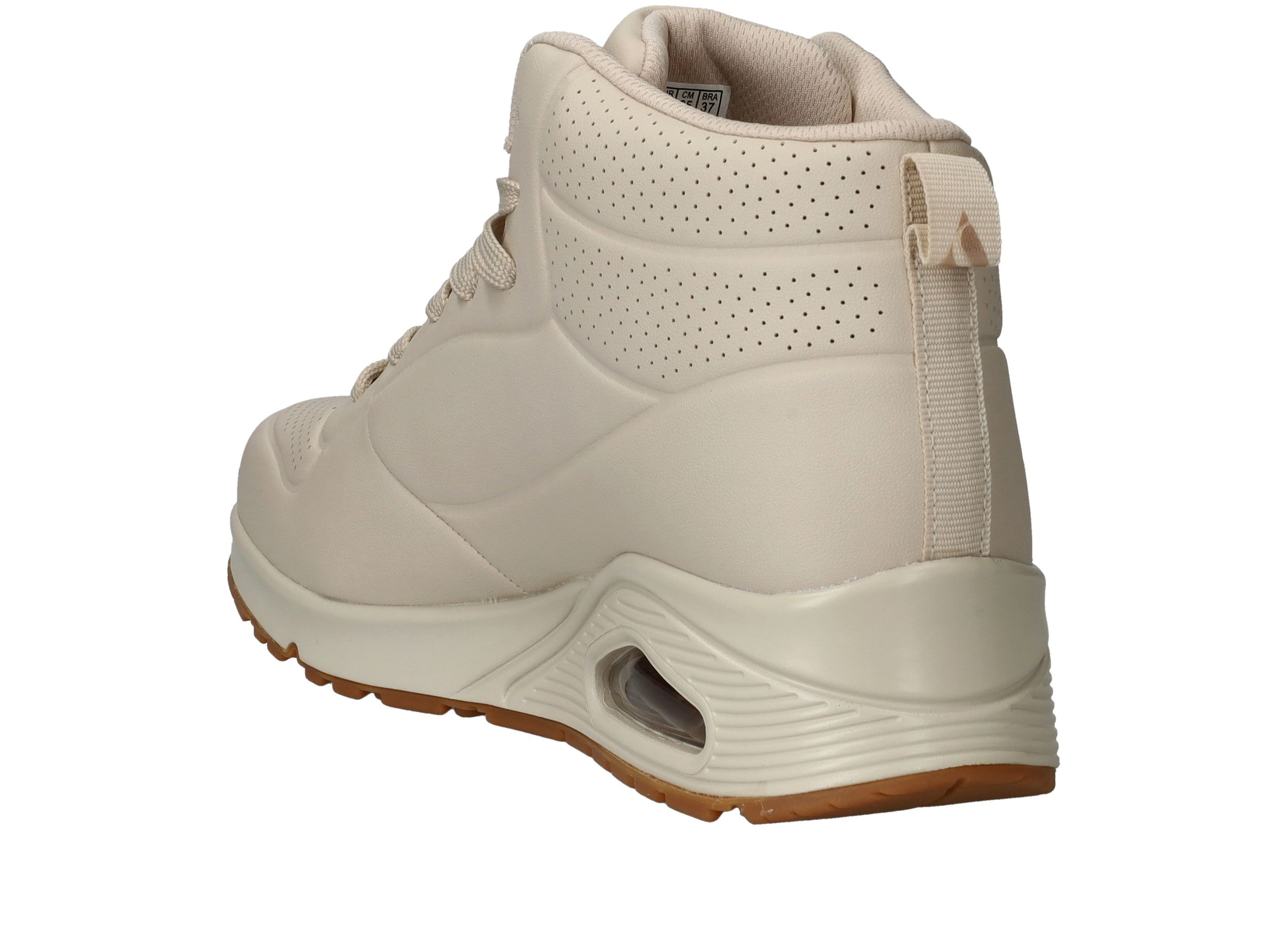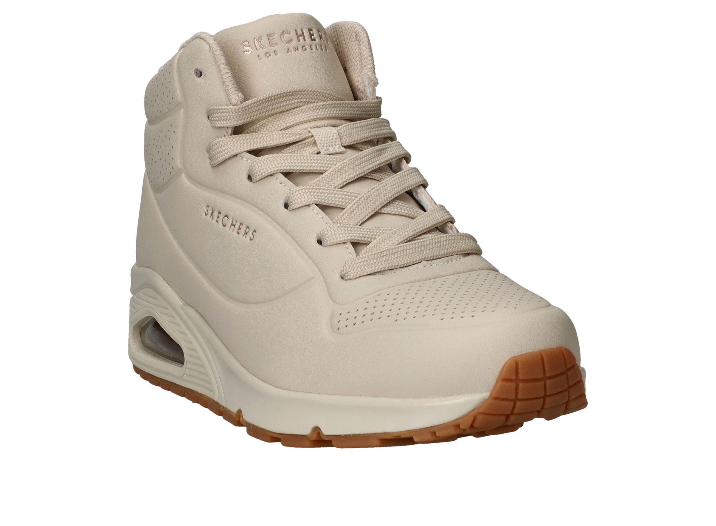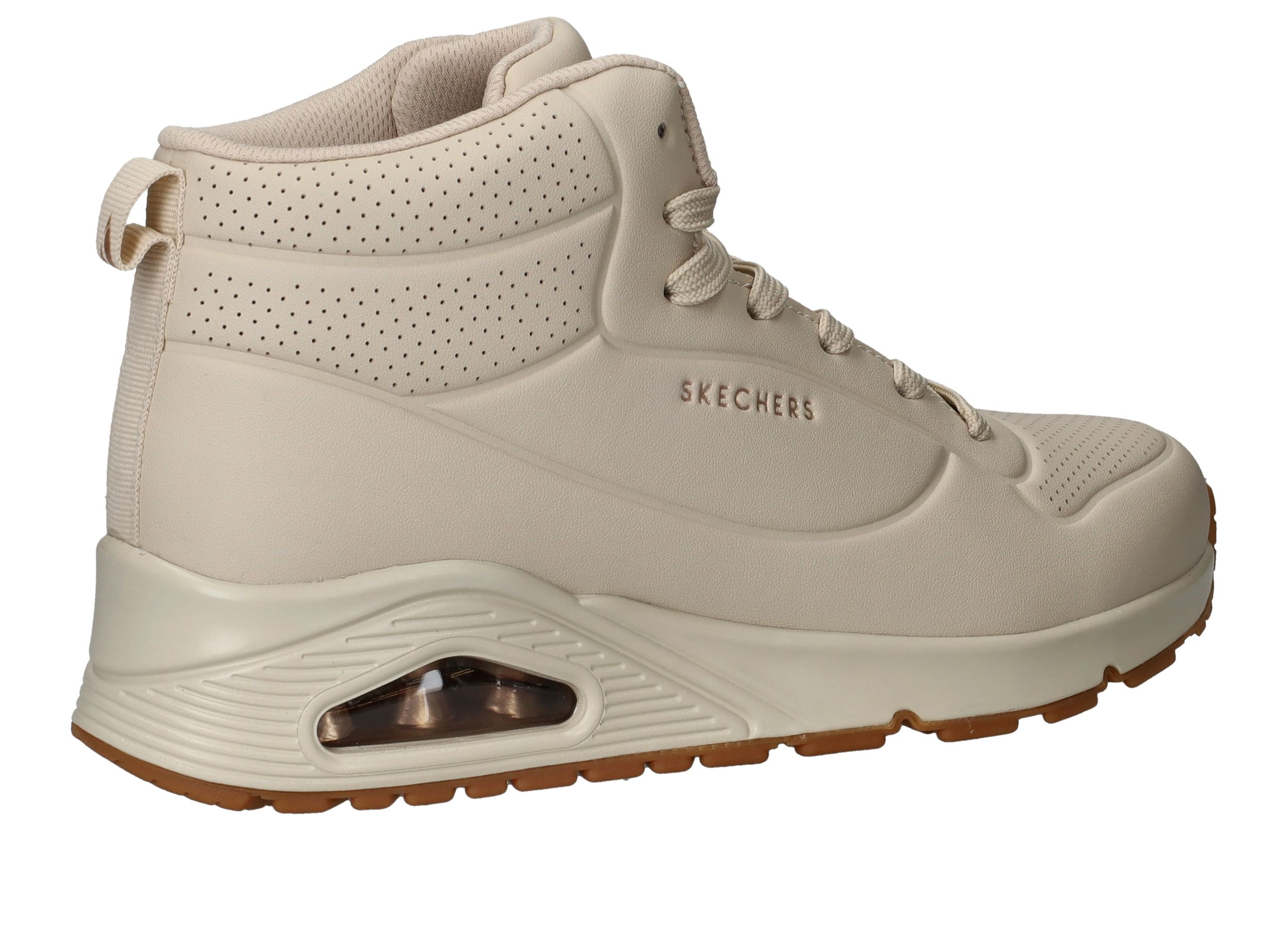 De Skechers Uno collectie is uitgebreid met deze klassieke Skechers Uno Stand High veterboot. De halfhoge sneaker heeft een zool gemaakt van Air-Cooled Memory Foam en is extra warm bij de enkels.
