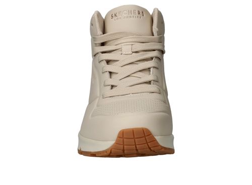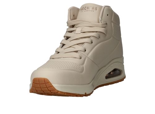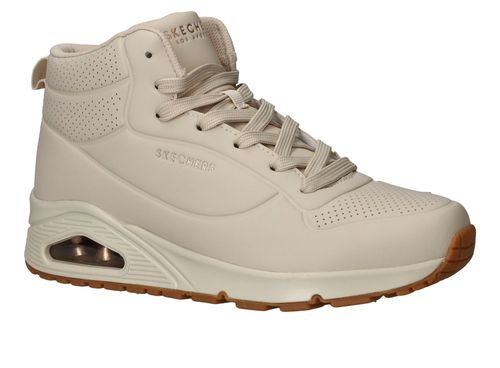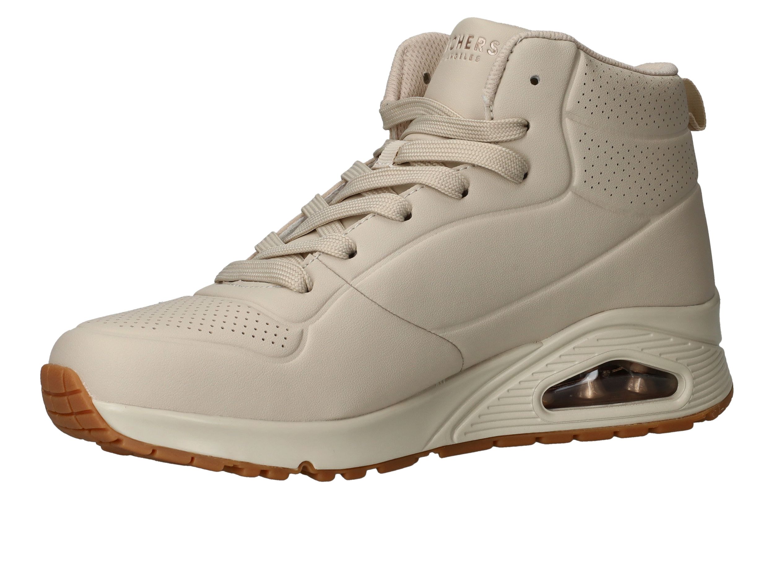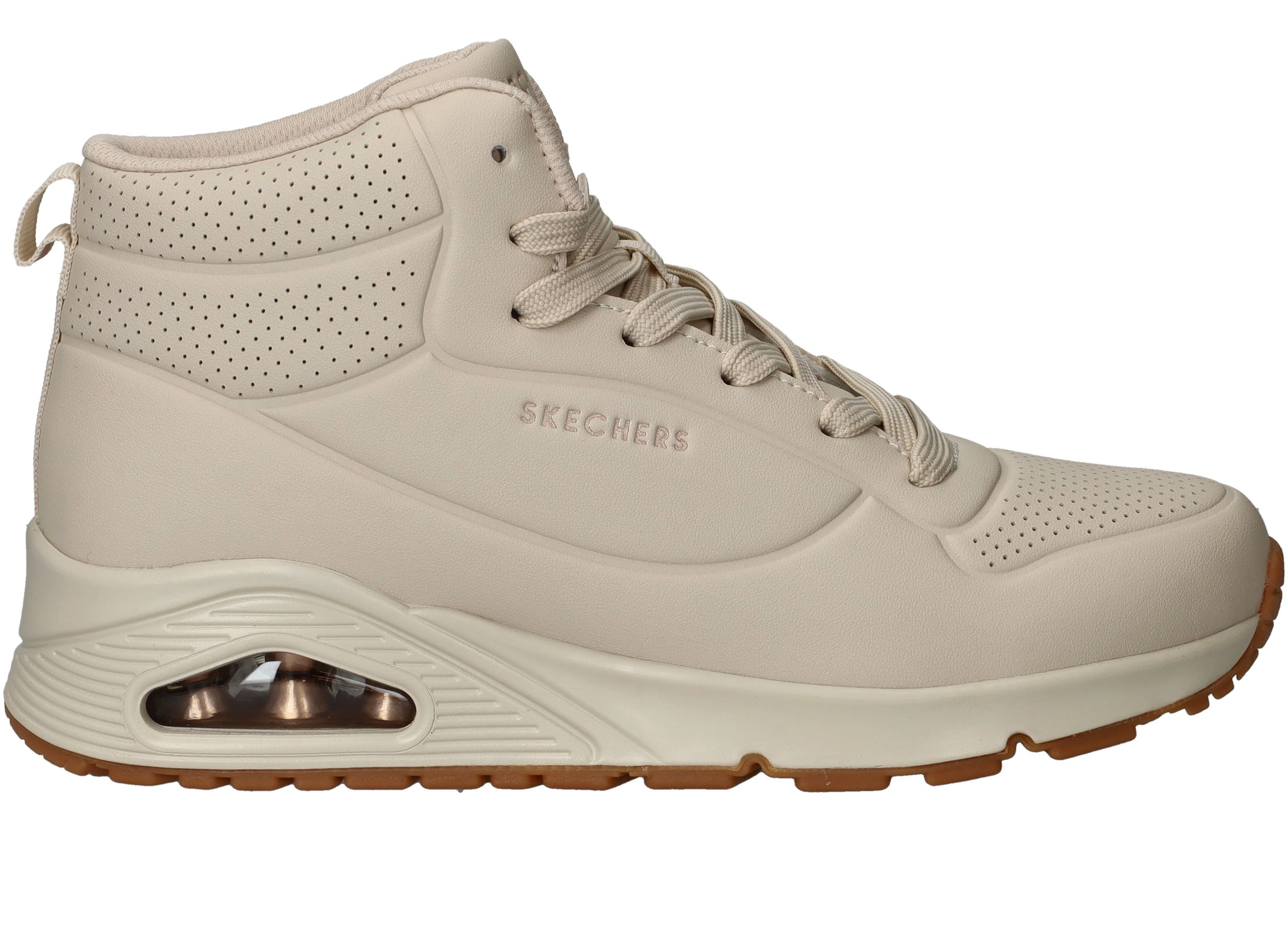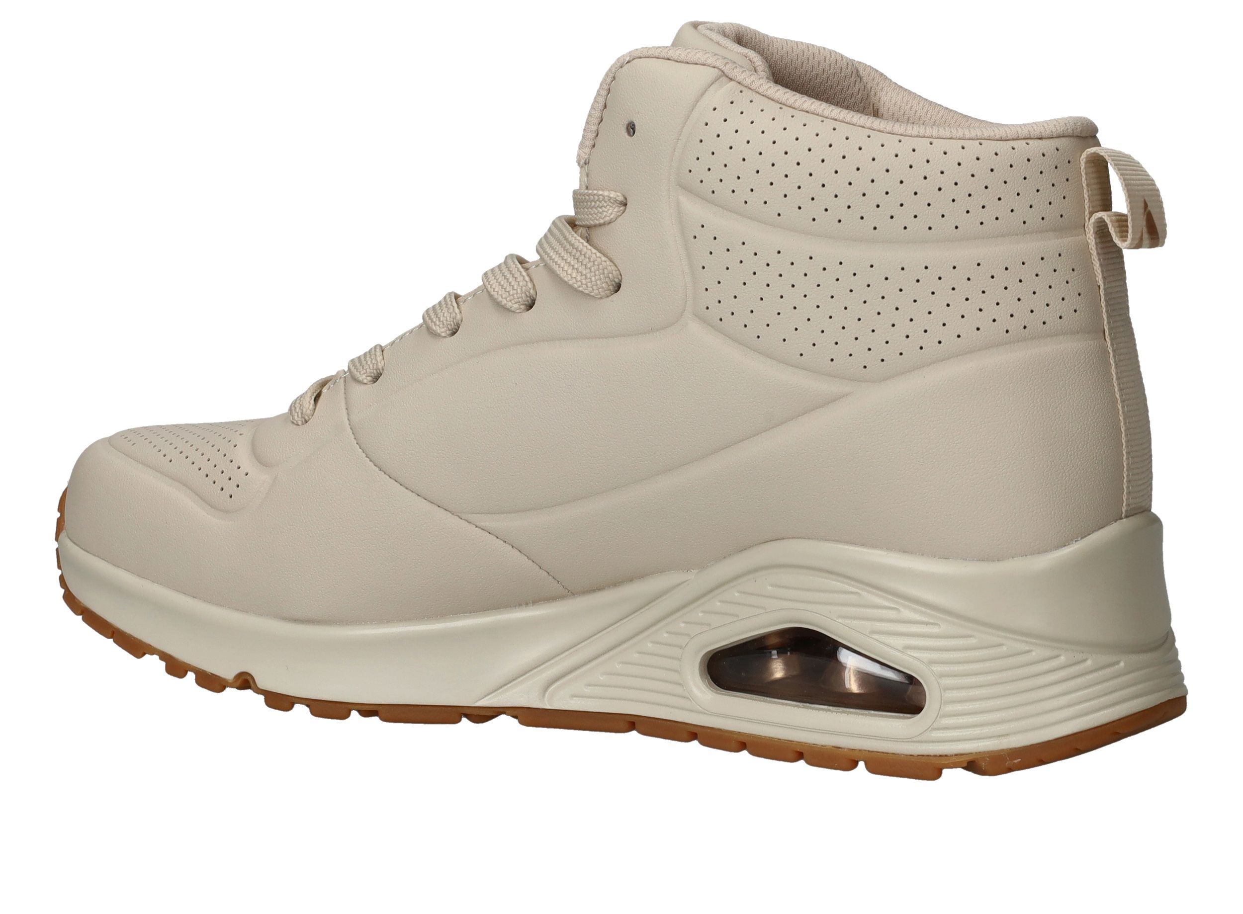 De Skechers Uno collectie is uitgebreid met deze klassieke Skechers Uno Stand High veterboot. De halfhoge sneaker heeft een zool gemaakt van Air-Cooled Memory Foam en is extra warm bij de enkels.