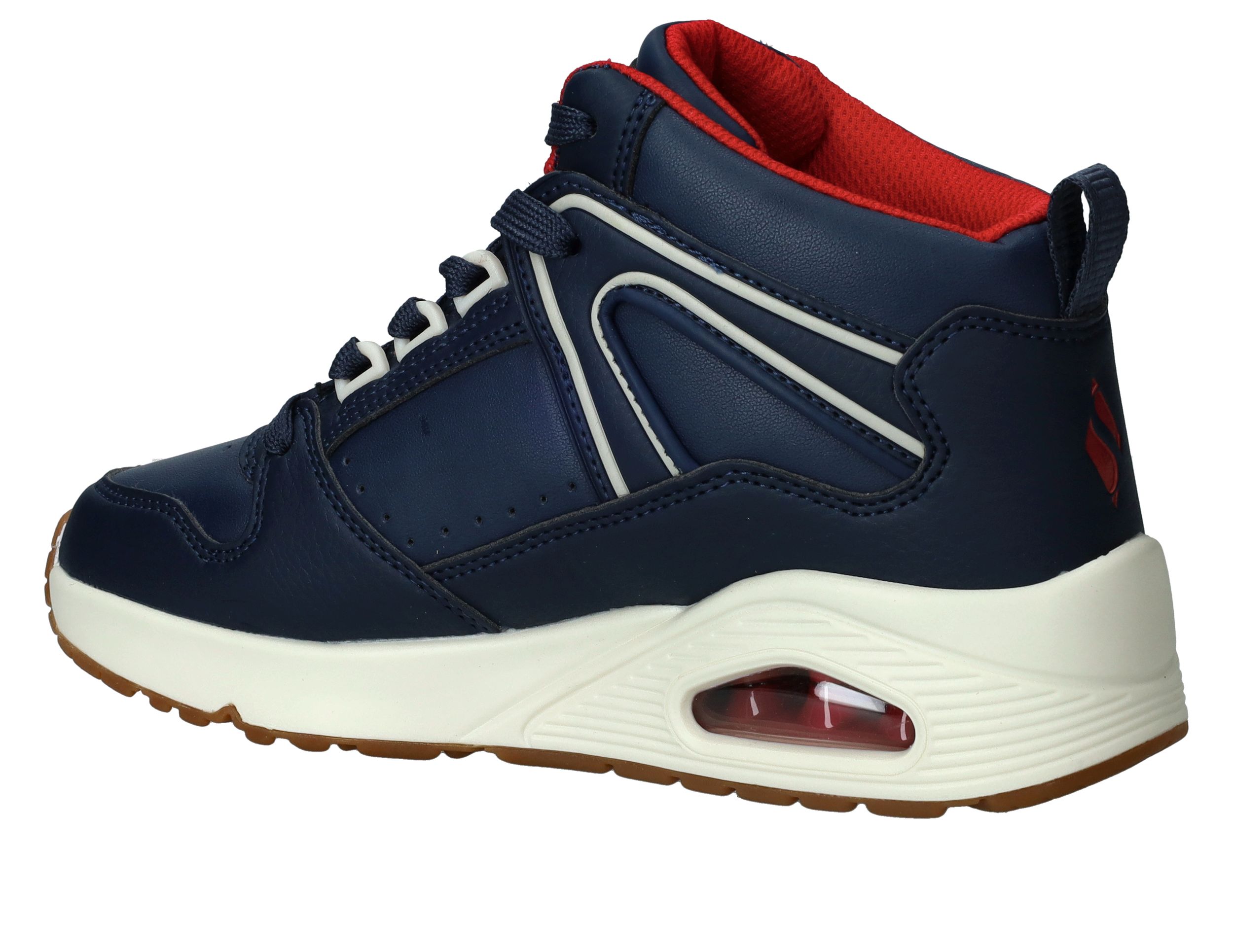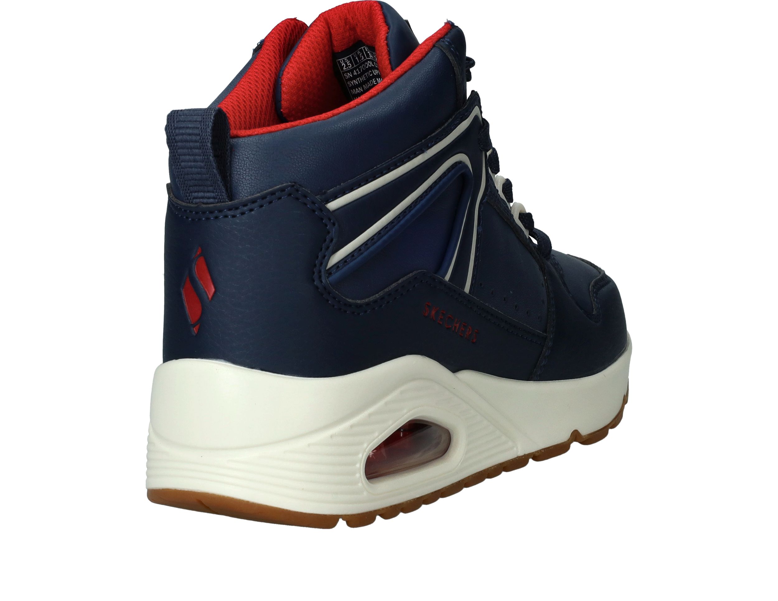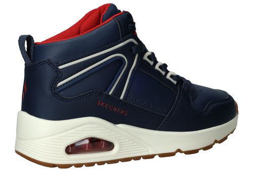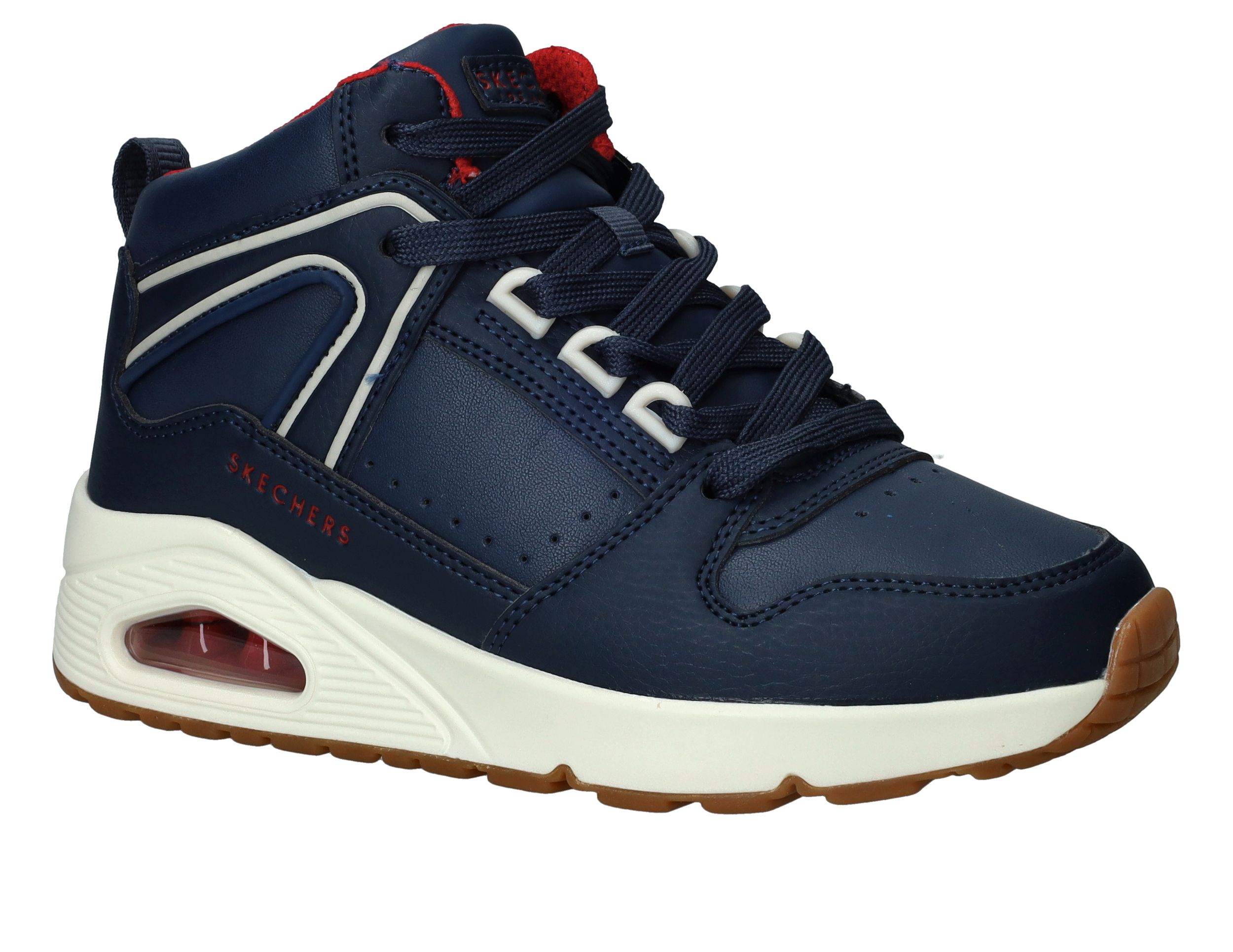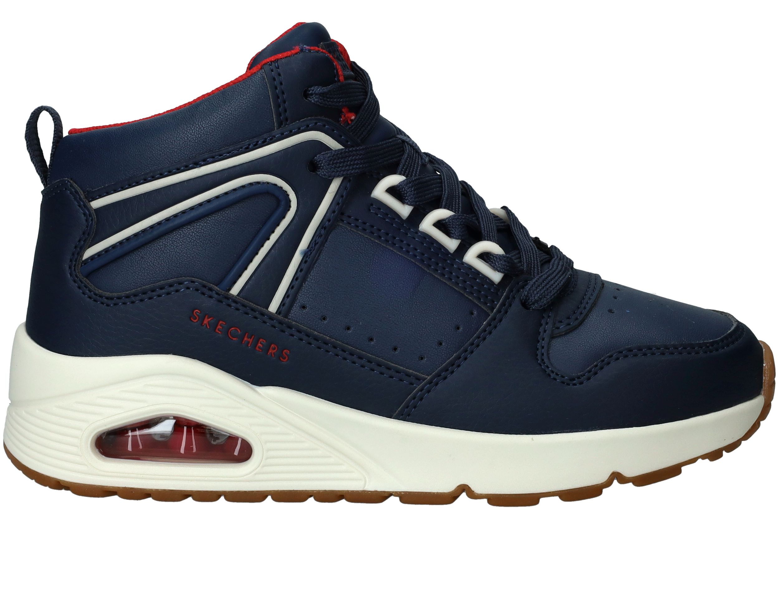 Hoe stoer is deze Skechers Uno Street Ryze sneaker voor jongens! De halfhoge sneaker is blauw en heeft toffe rode accenten.