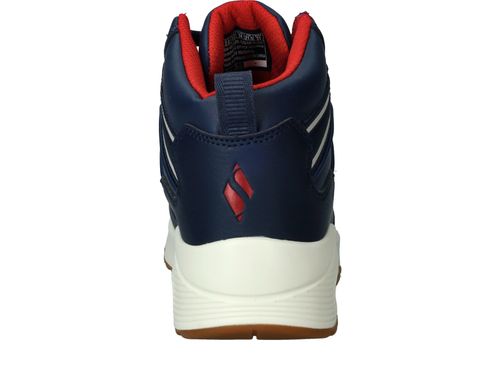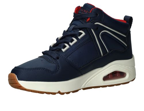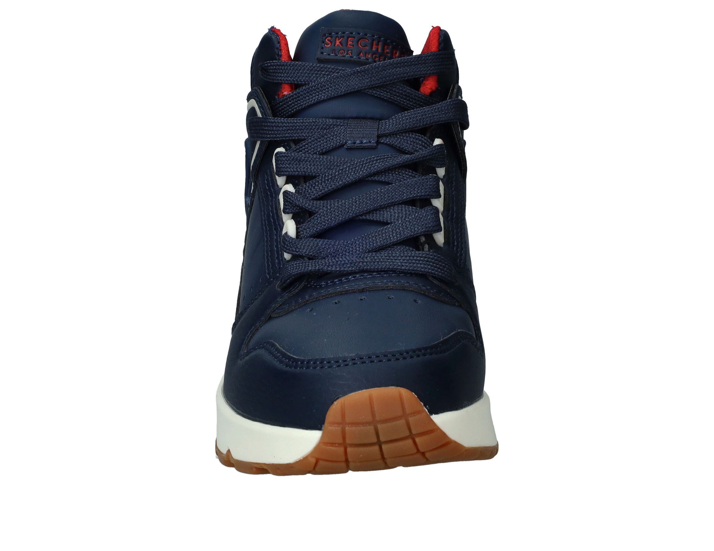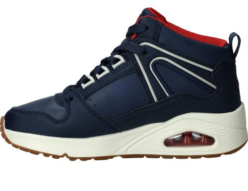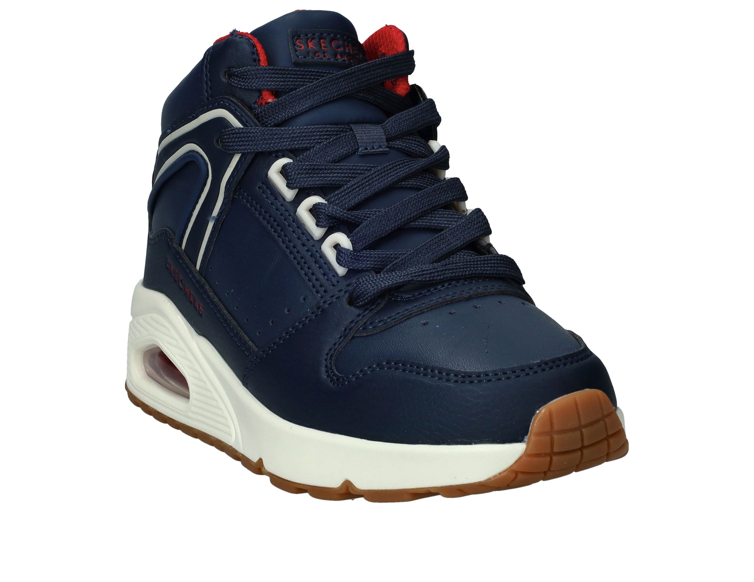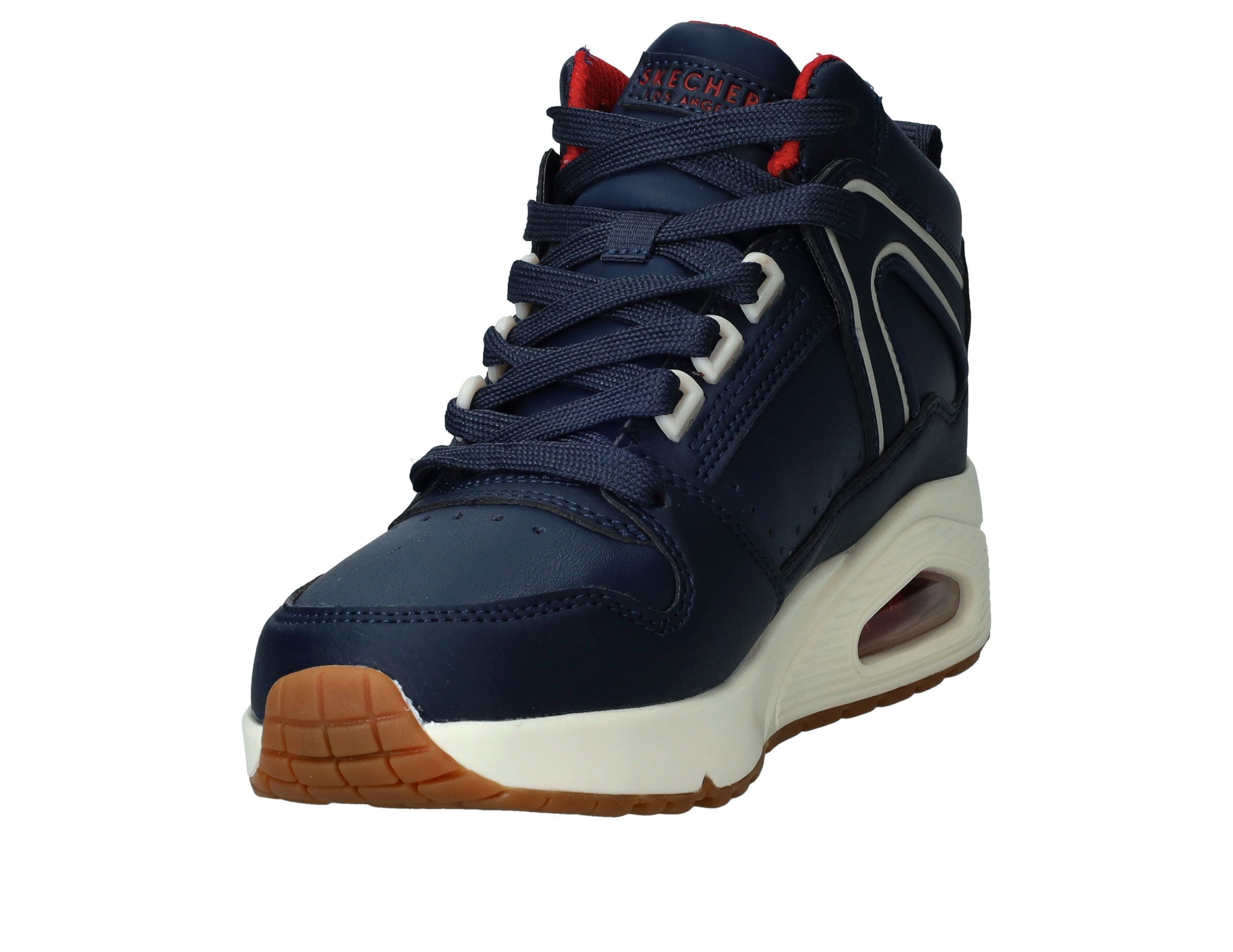 Hoe stoer is deze Skechers Uno Street Ryze sneaker voor jongens! De halfhoge sneaker is blauw en heeft toffe rode accenten.