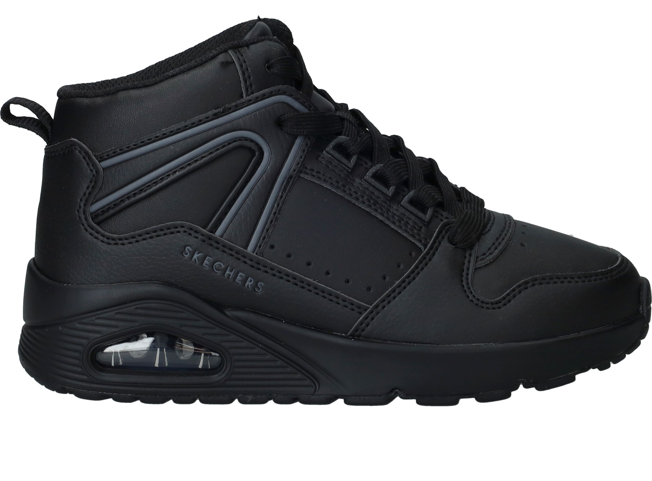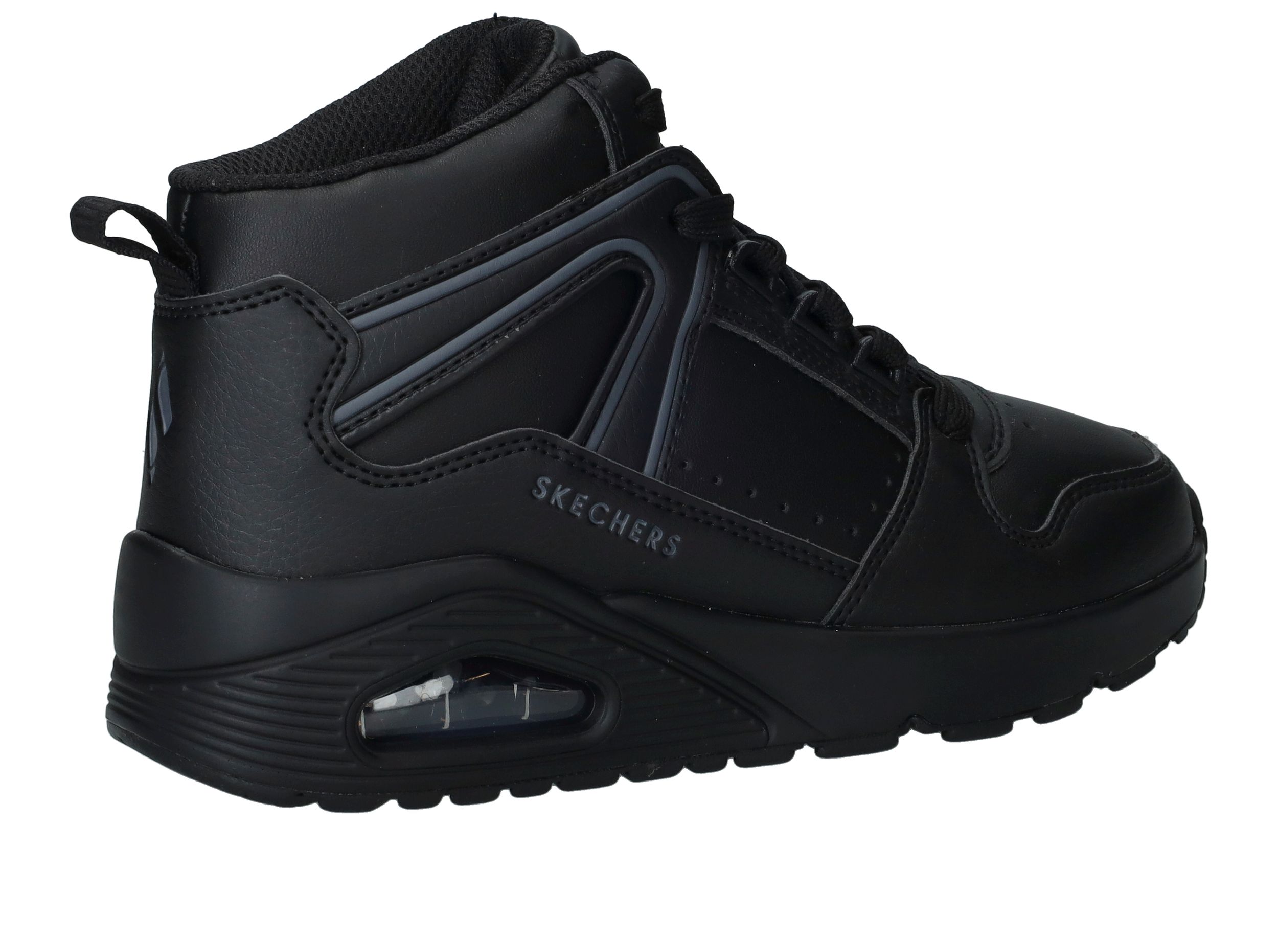 Hoe stoer is deze Skechers Uno Street Ryze sneaker voor jongens! De halfhoge sneaker past door zijn zwarte kleur bij alle outfits.