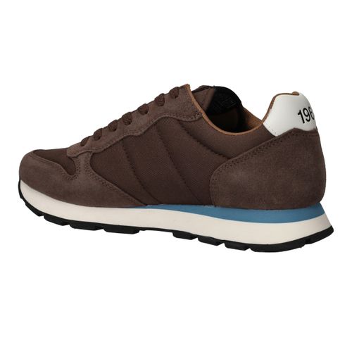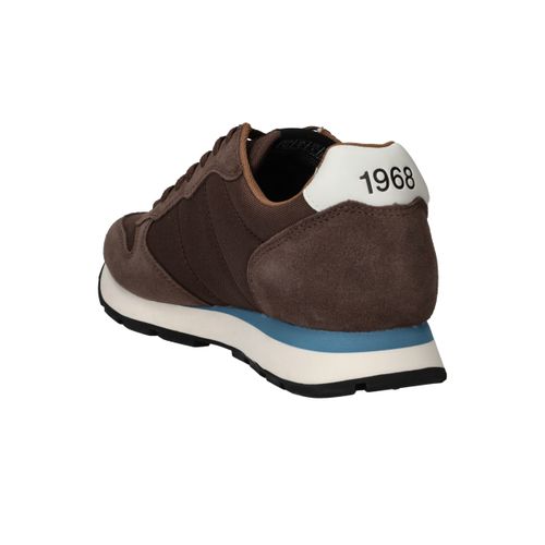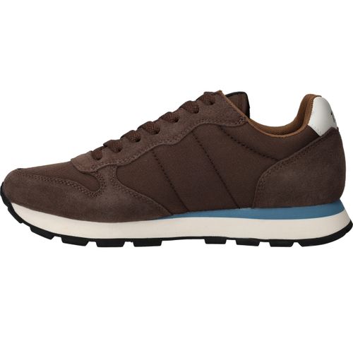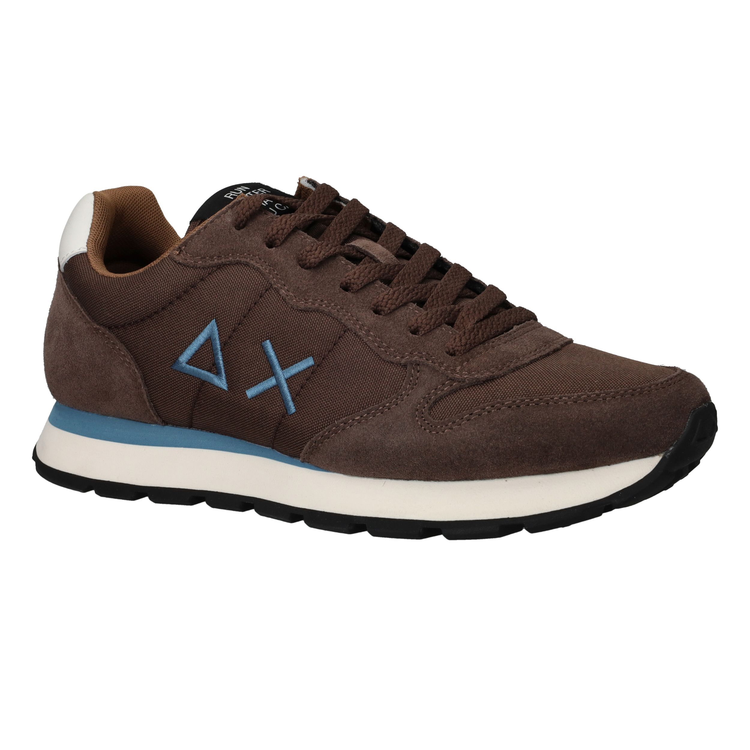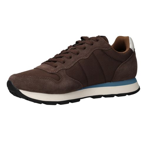 De SUN68 Tom Solid sneakers zijn perfect voor heren die op zoek zijn naar comfort met een sportieve twist. Het bovenwerk van suède en textiel in een warme bruintint wordt speels geaccentueerd door de blauwe details. Deze sneakers hebben een zachte textielen voering en een flexibele zool, waardoor ze ideaal zijn voor dagelijks gebruik. Als extra ontvang je een extra paar blauwe veters om af te wisselen en je sneakers een frisse look te geven.