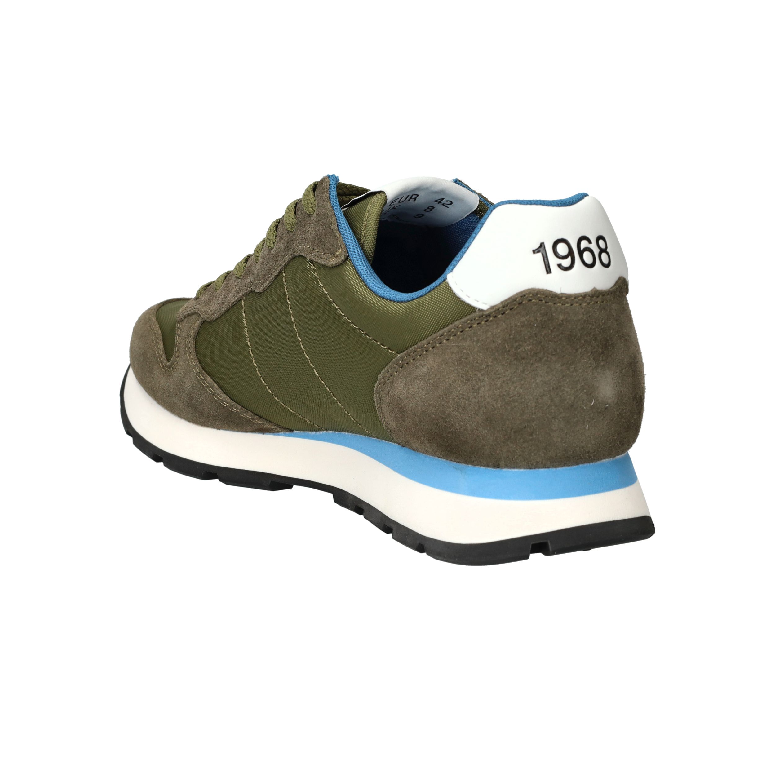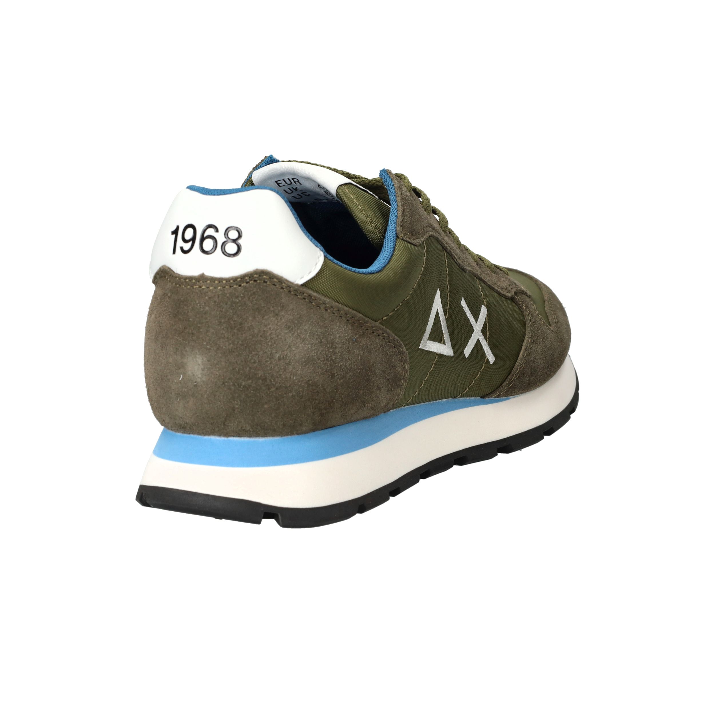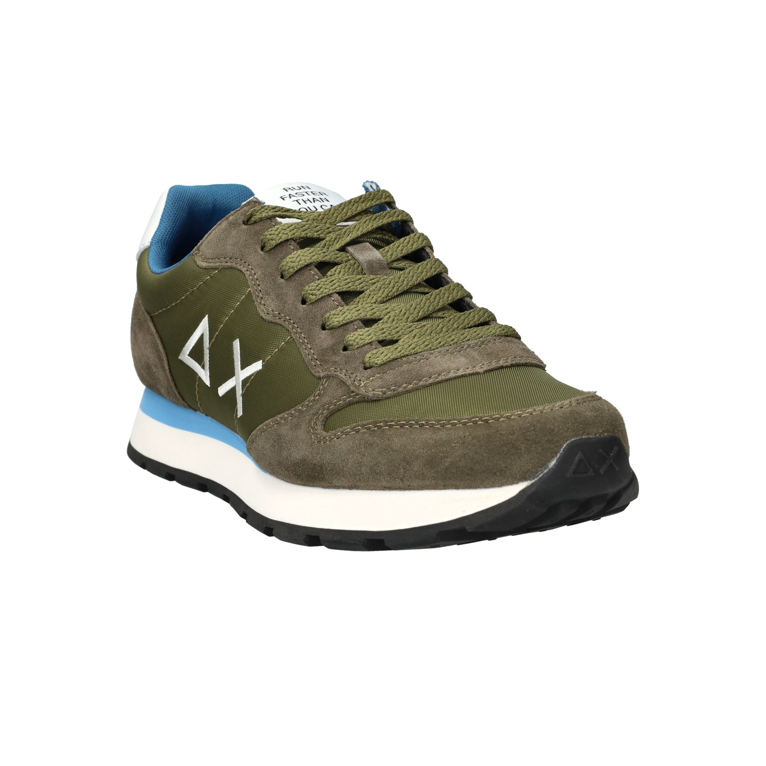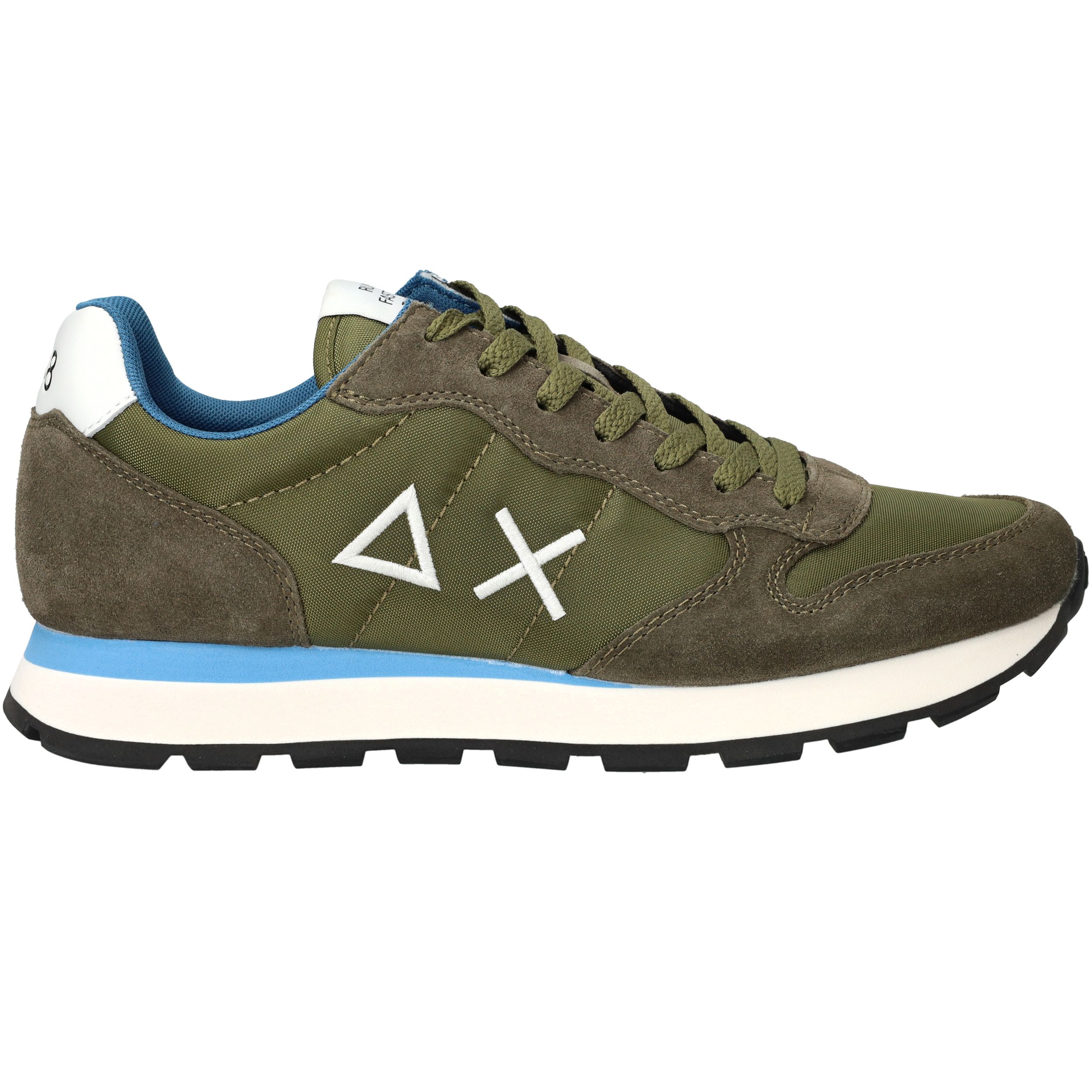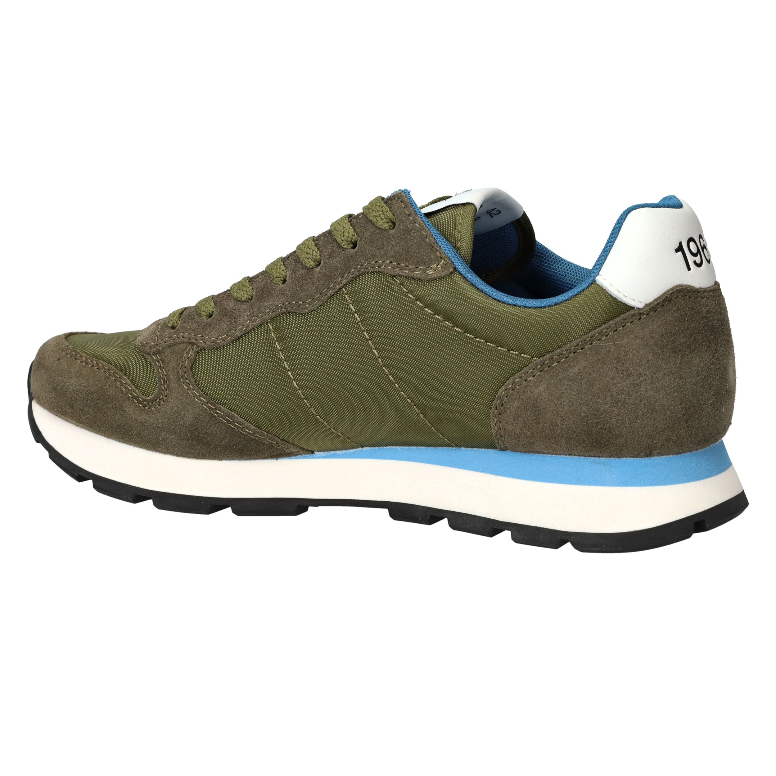 Gave legergroene SUN68 Tom Solid sneaker voor heren met blauwe accenten! De opvallende zool maakt de sneaker helemaal af.