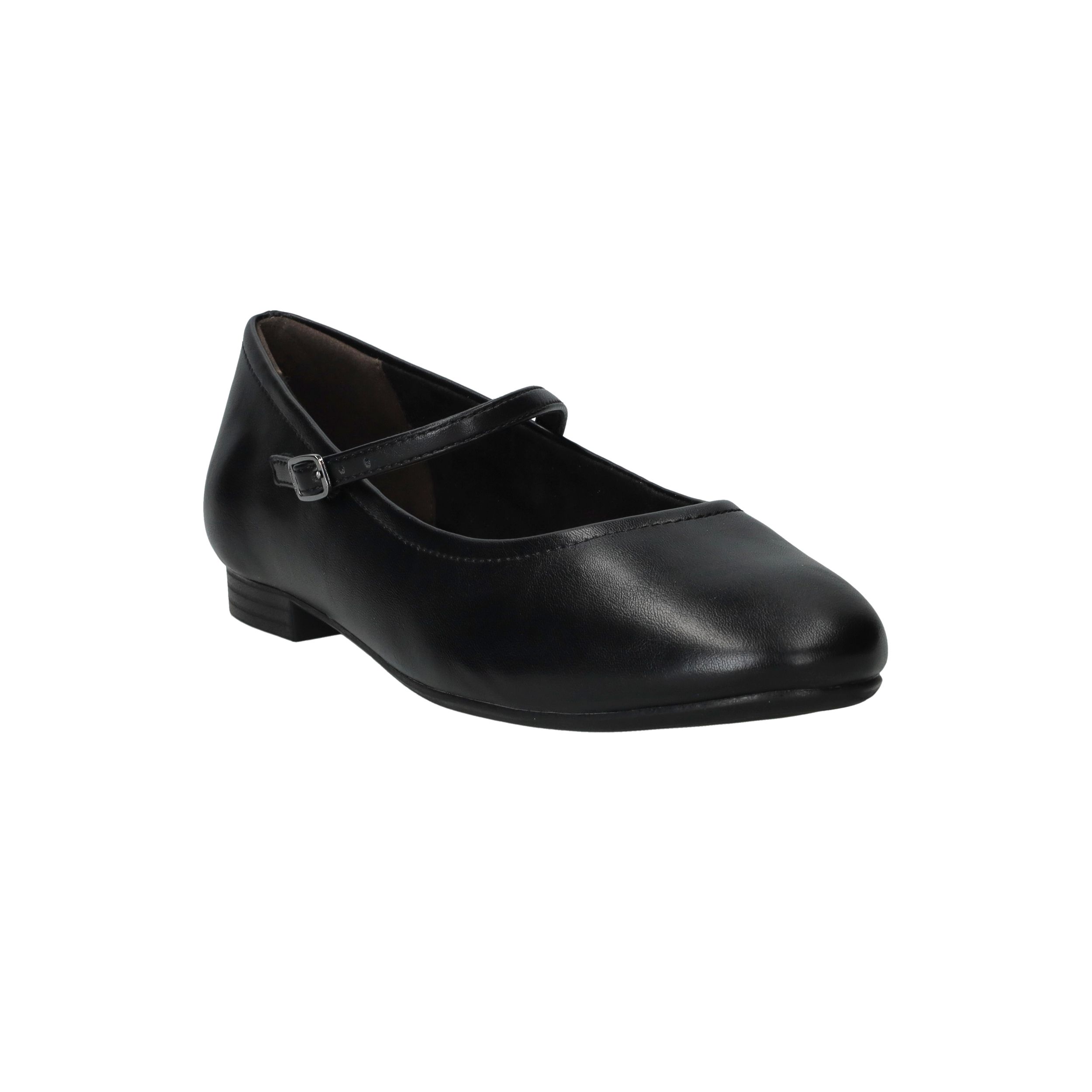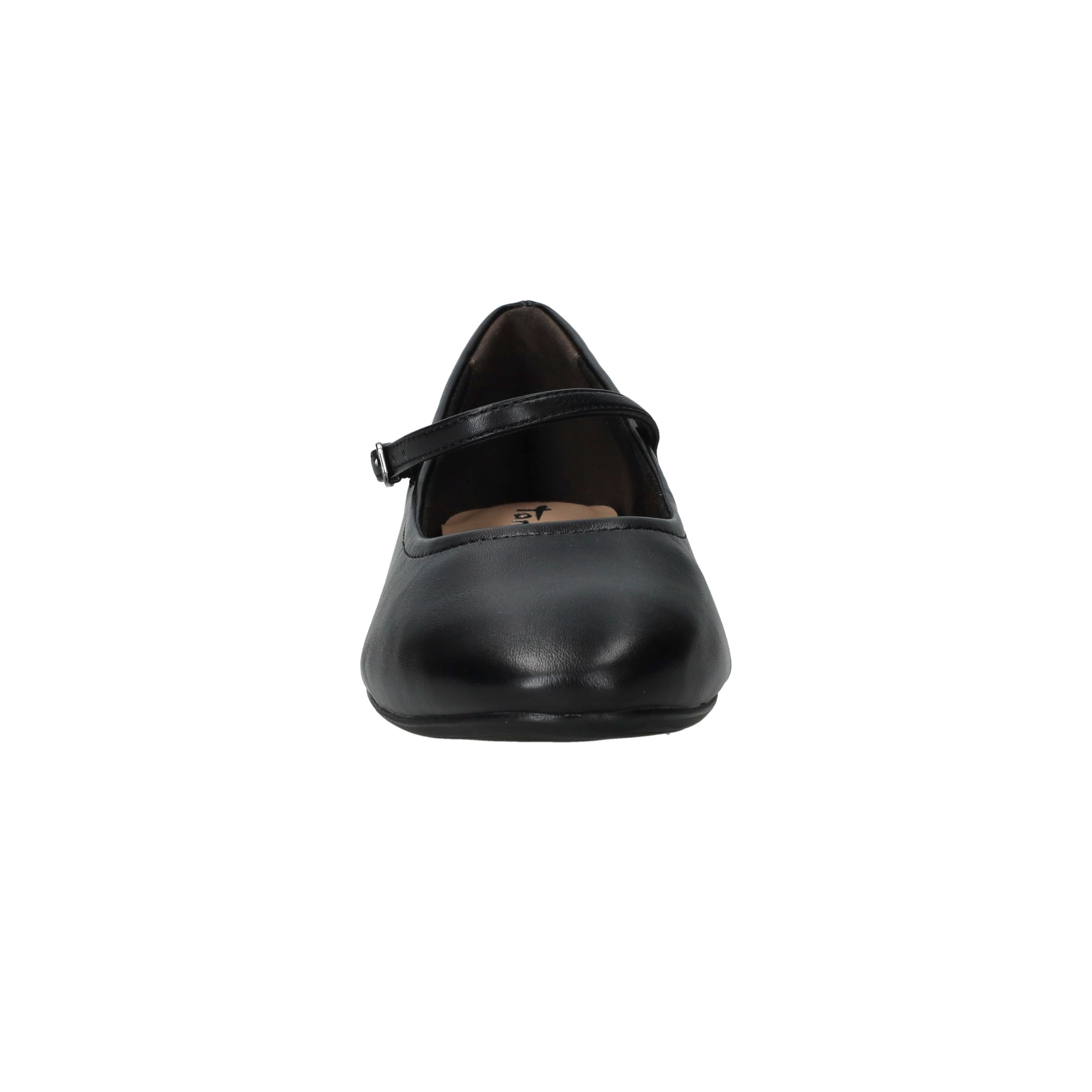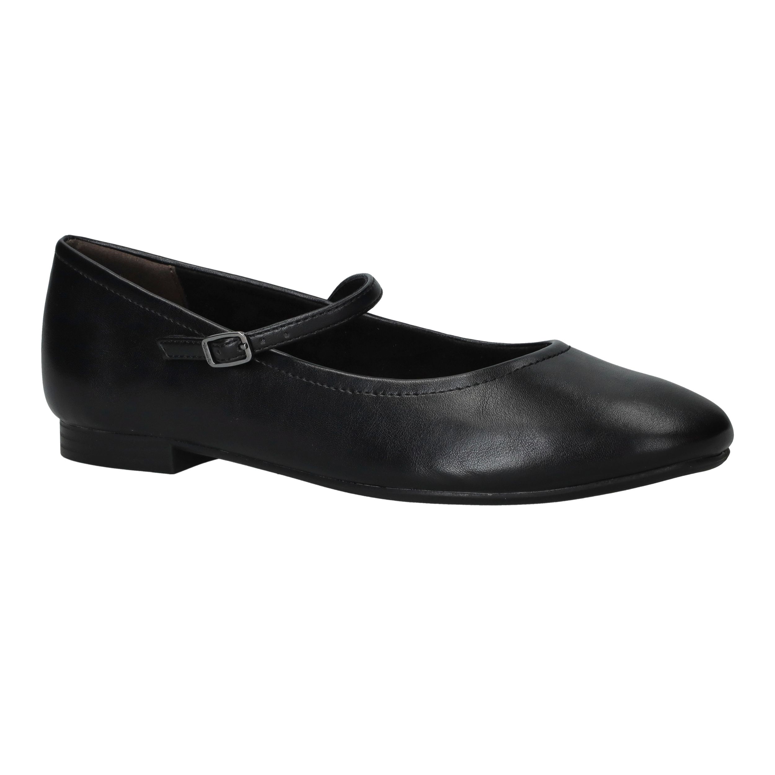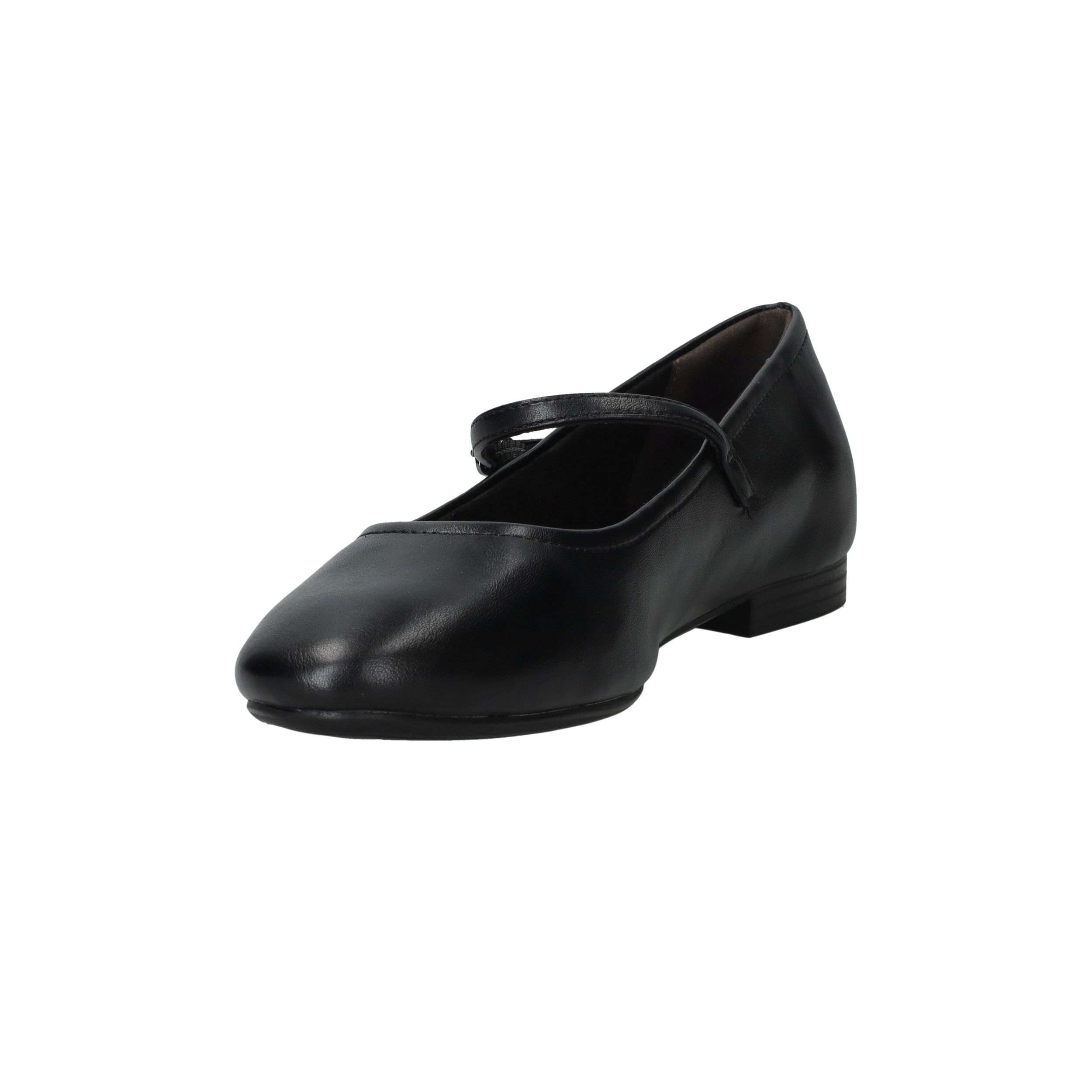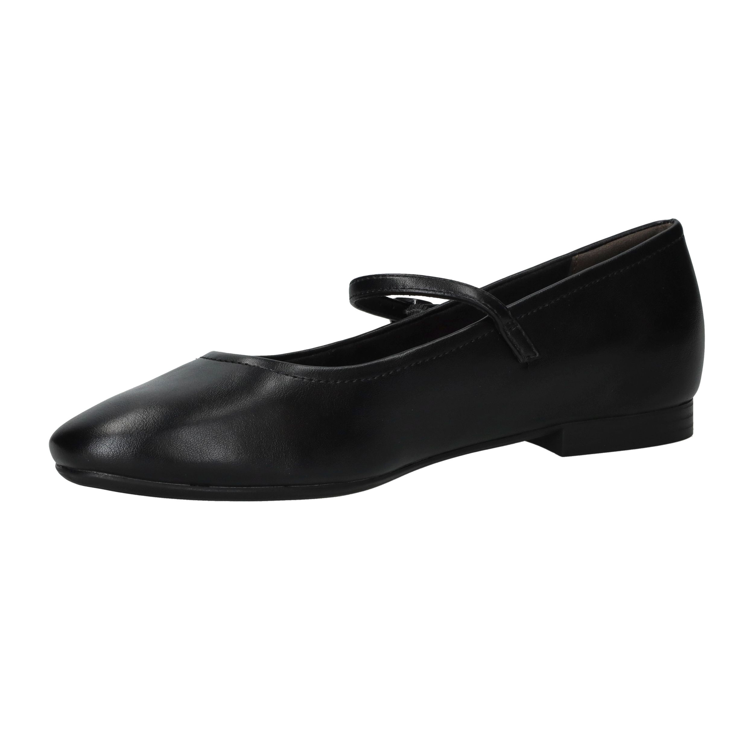 Basic zwarte Tamaris ballerina met een laag hakje. Draag de ballerina bij een feestelijke outfit of juist een casual look.