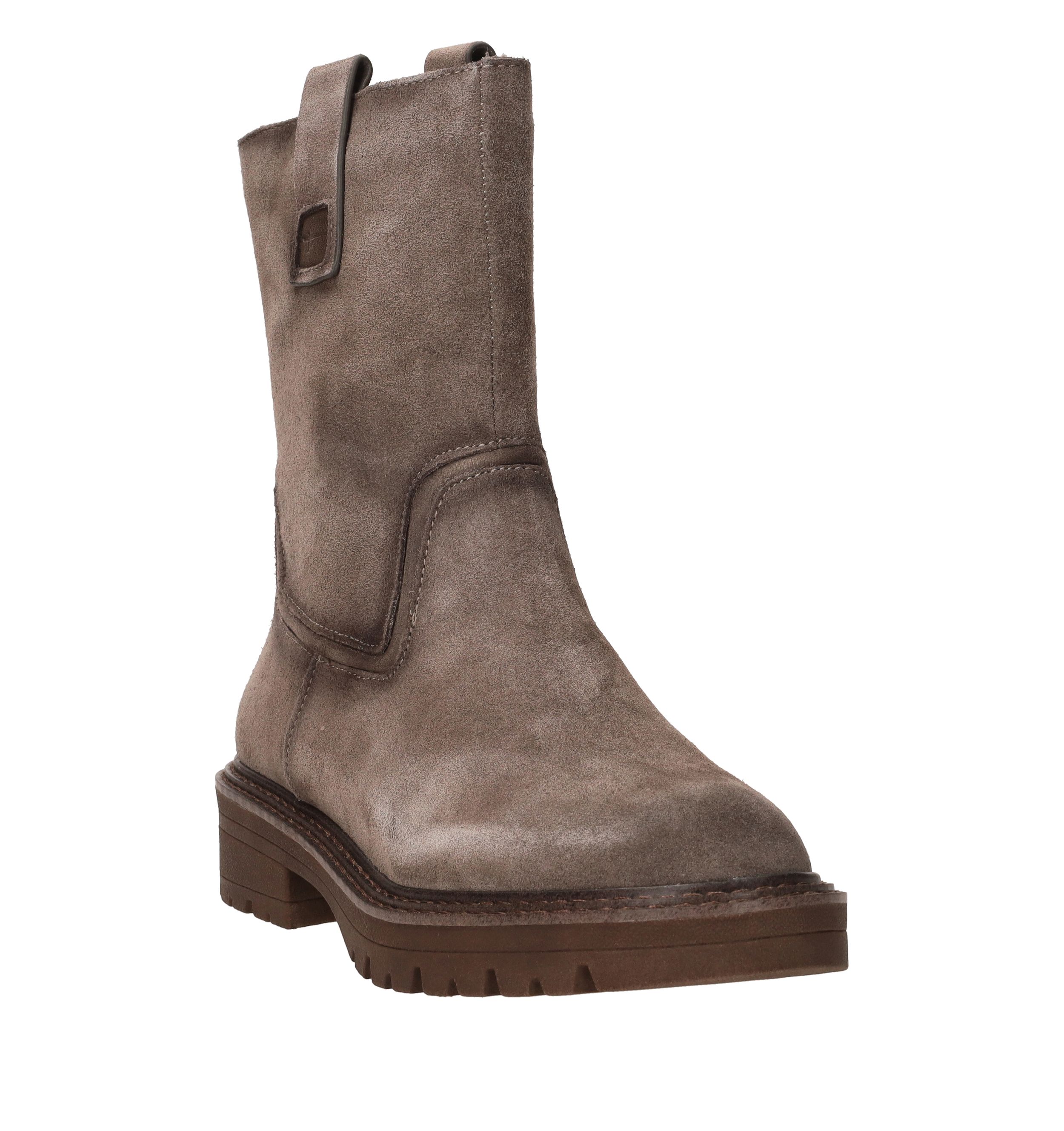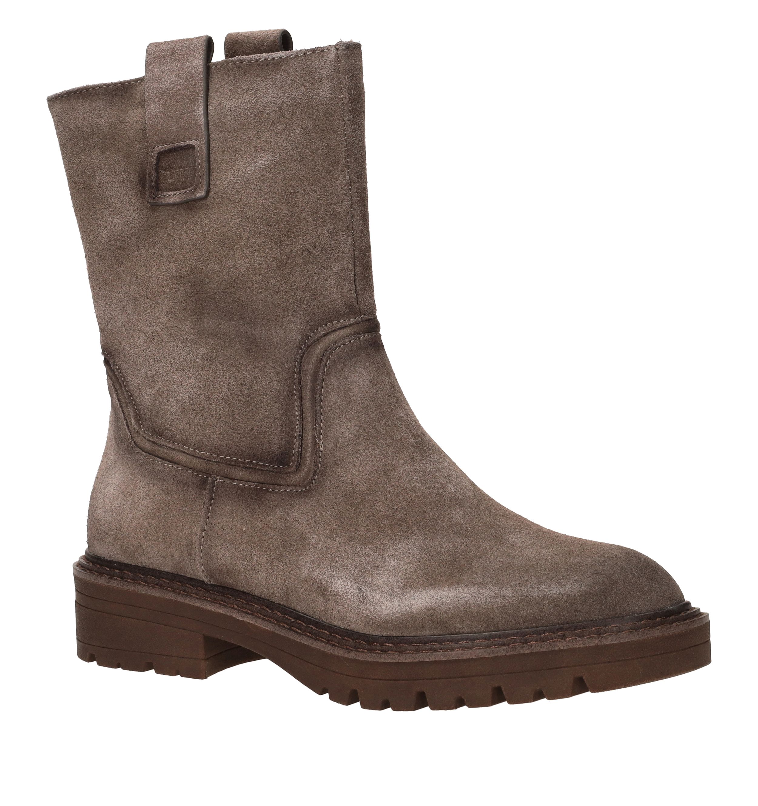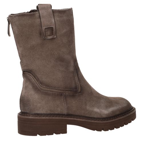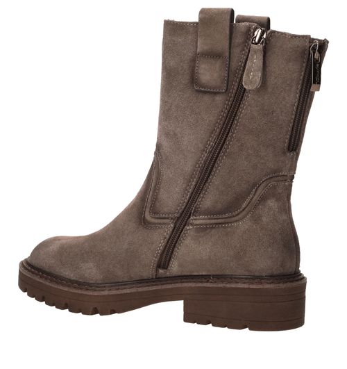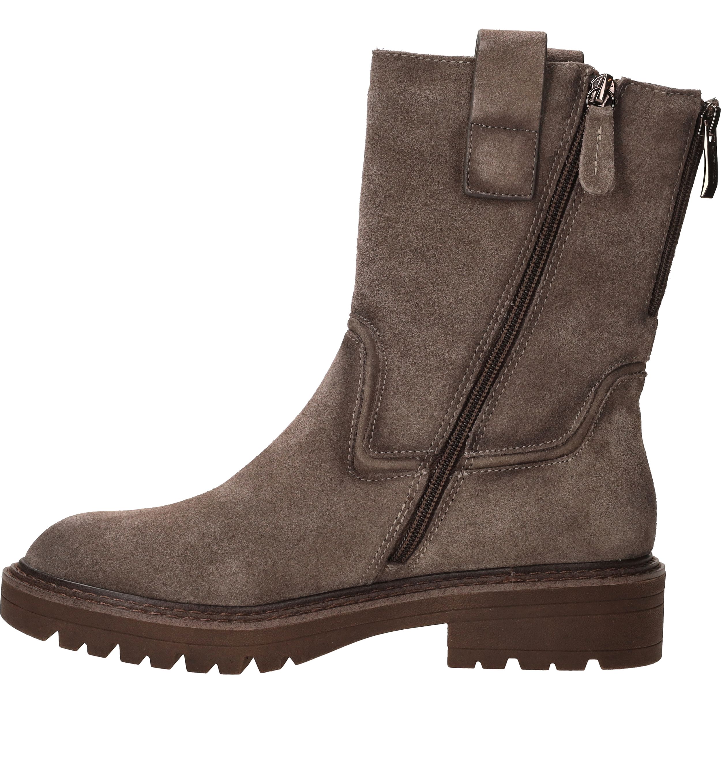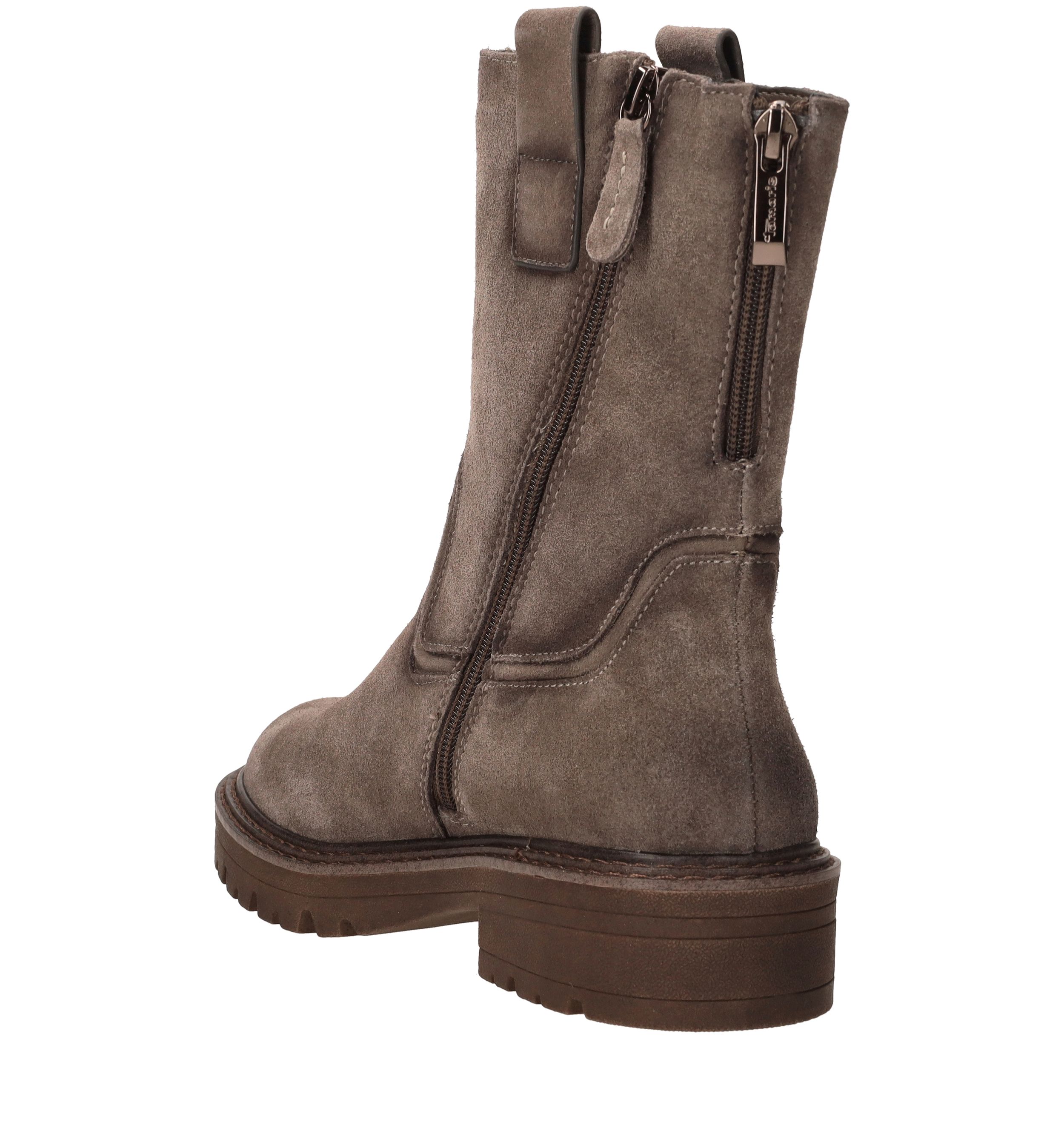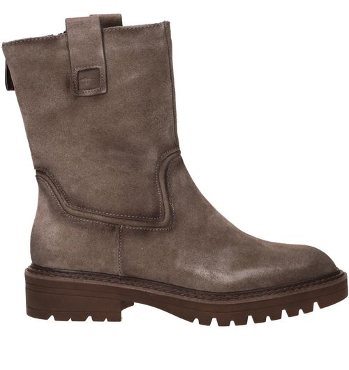 Stoere Tamaris damesboot in een donkere taupe kleur. De damesschoen is gemaakt van suède en heeft een leuk sierritsje aan de achterkant.