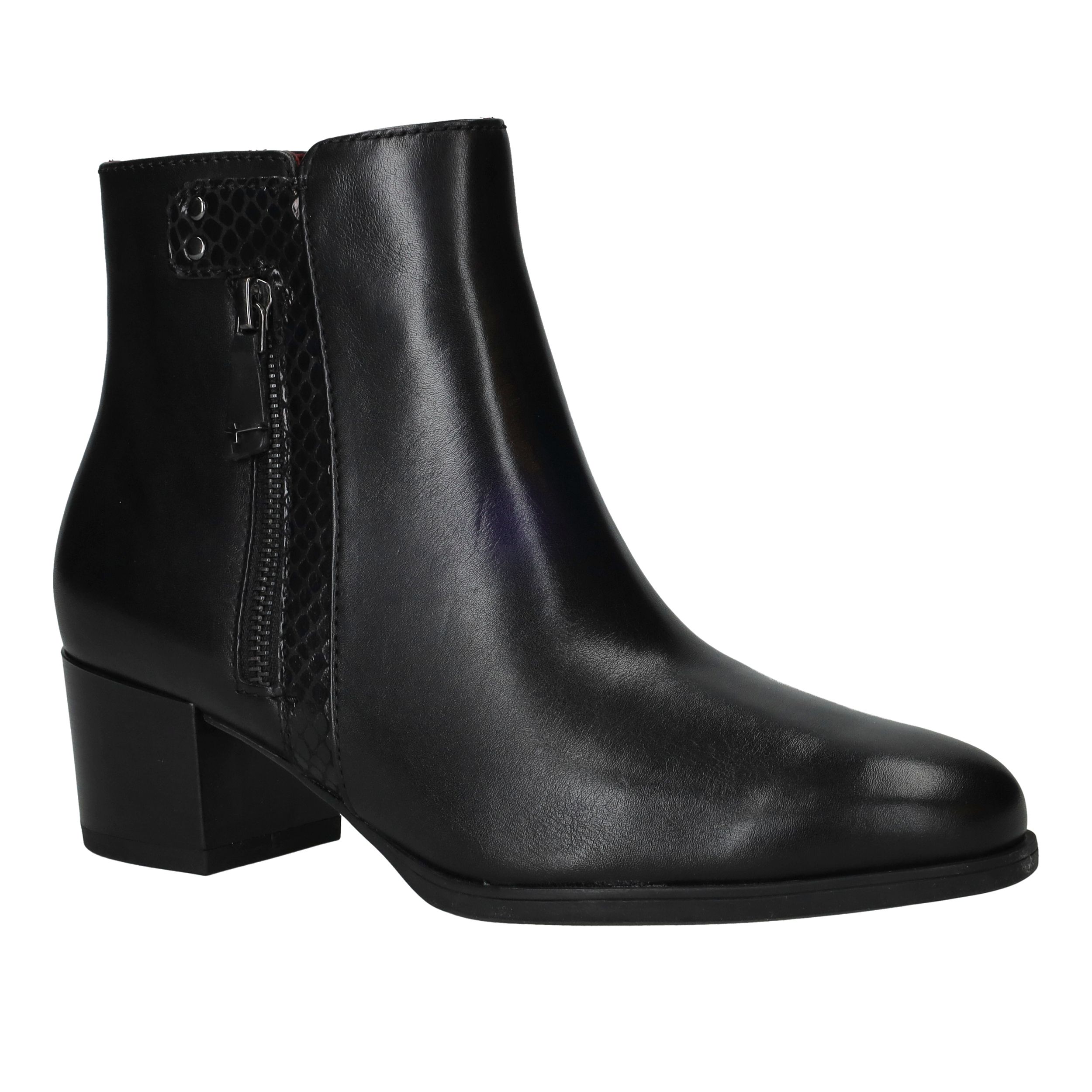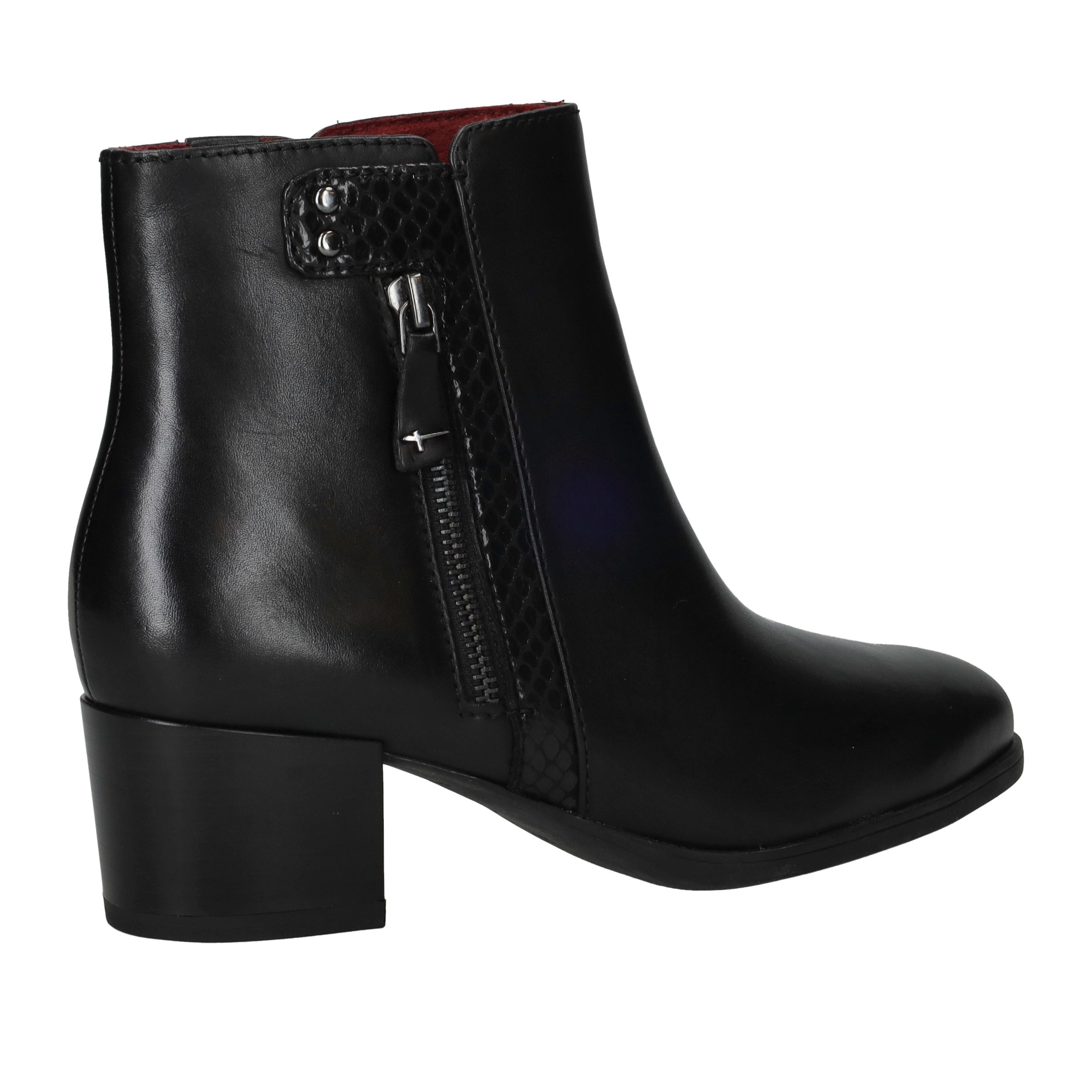 De Tamaris enkellaarsjes zijn een tijdloze keuze voor dames die comfort en elegantie willen combineren. Deze zwarte dames laarzen zijn uitgevoerd in leer en kunstleer en voorzien van een subtiel reliëfdetail langs de rits voor een verfijnde uitstraling. Dankzij de blokhak zijn ze comfortabel genoeg om dagelijks te dragen, terwijl ze je look toch een chique touch geven.