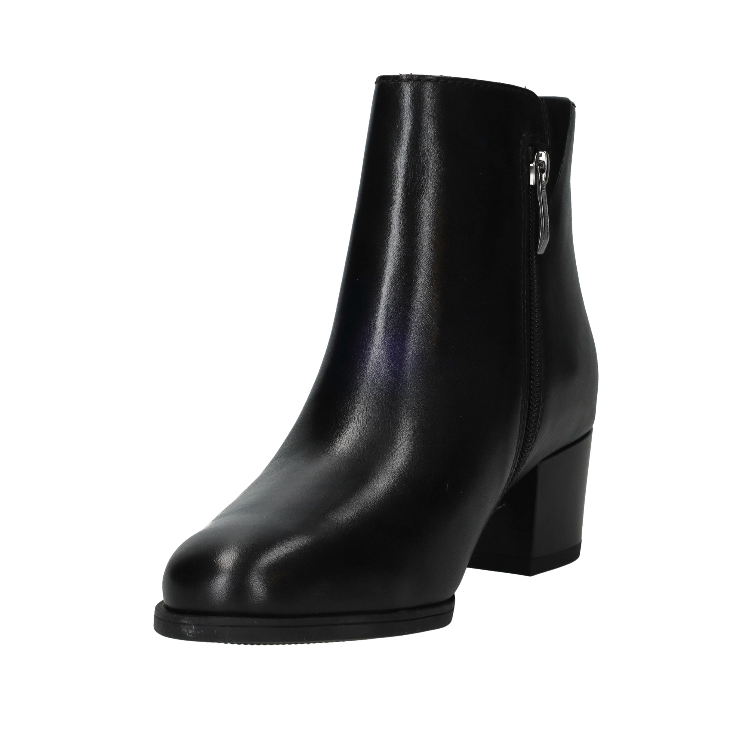 - Belangrijke kenmerken zijn de elegante blokhak, het subtiele reliëf en de tijdloze zwarte kleur.