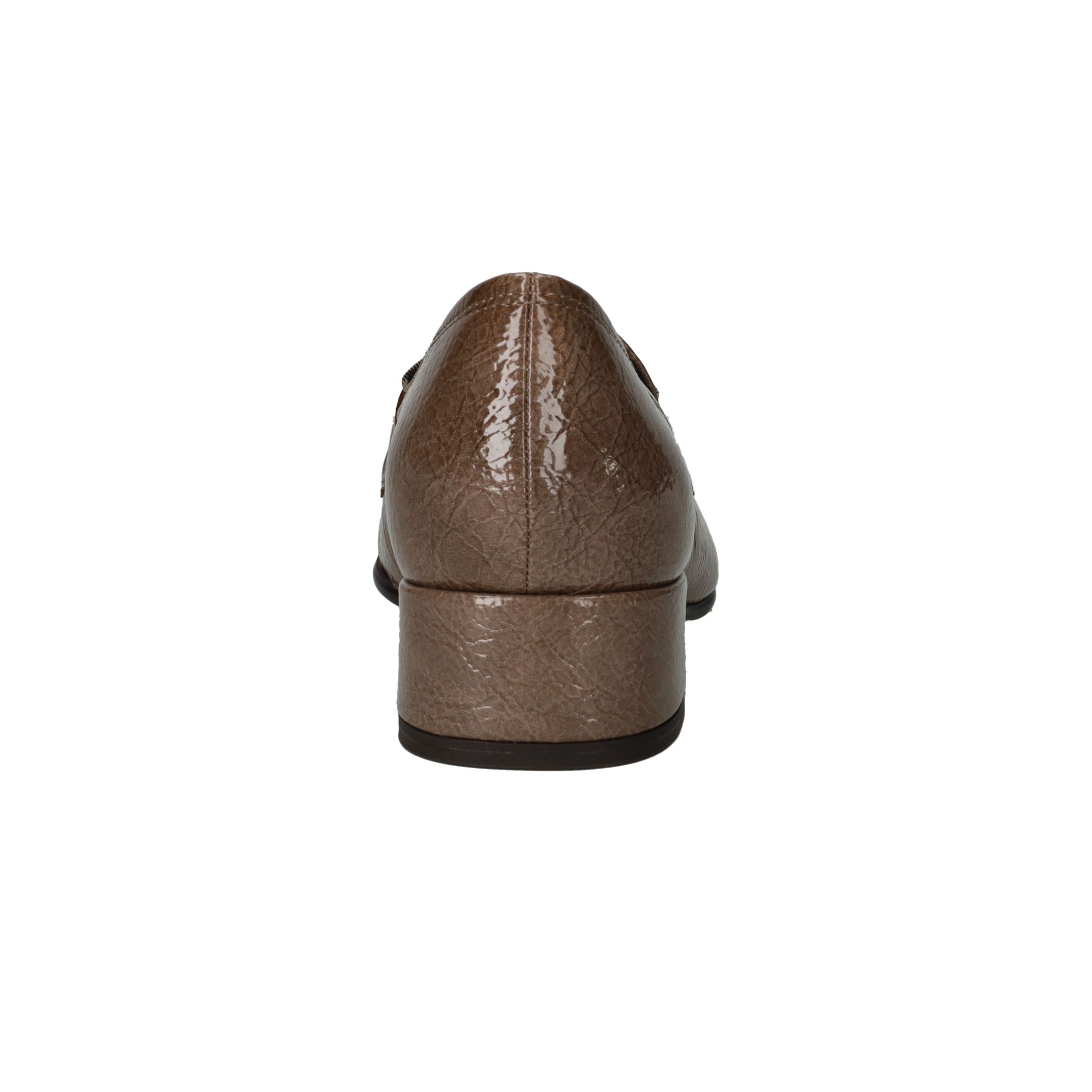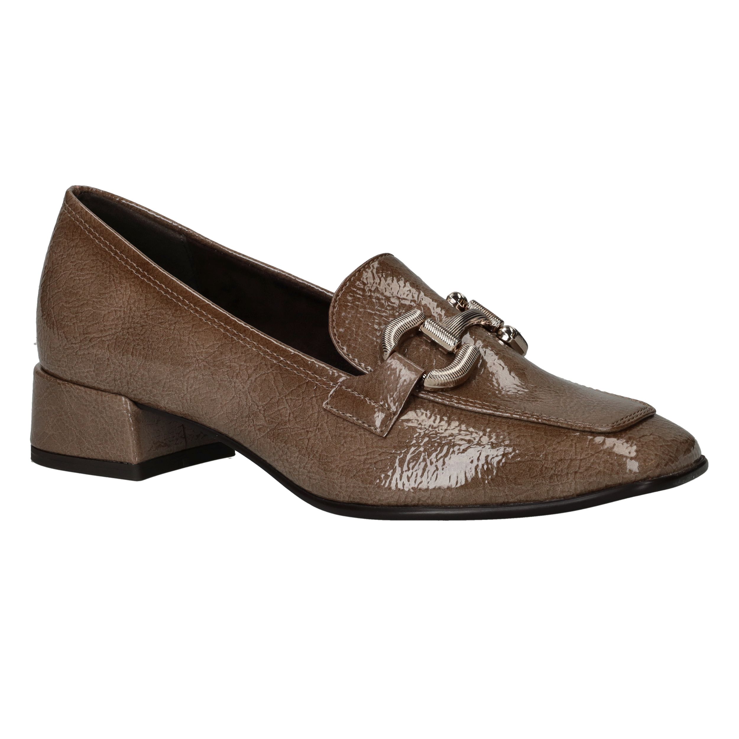 Deze taupekleurige Tamaris instappers zijn een elegante keuze voor dames die stijl en comfort willen combineren zonder poespas. Het glanzende lakmateriaal geeft de schoen een luxe uitstraling, terwijl het zachte textiel aan de binnenkant zorgt voor een aangenaam draaggevoel. Dankzij de vegan uitvoering én voetbreedte G zitten ze niet alleen fijn, maar zijn ze ook een bewuste keuze.