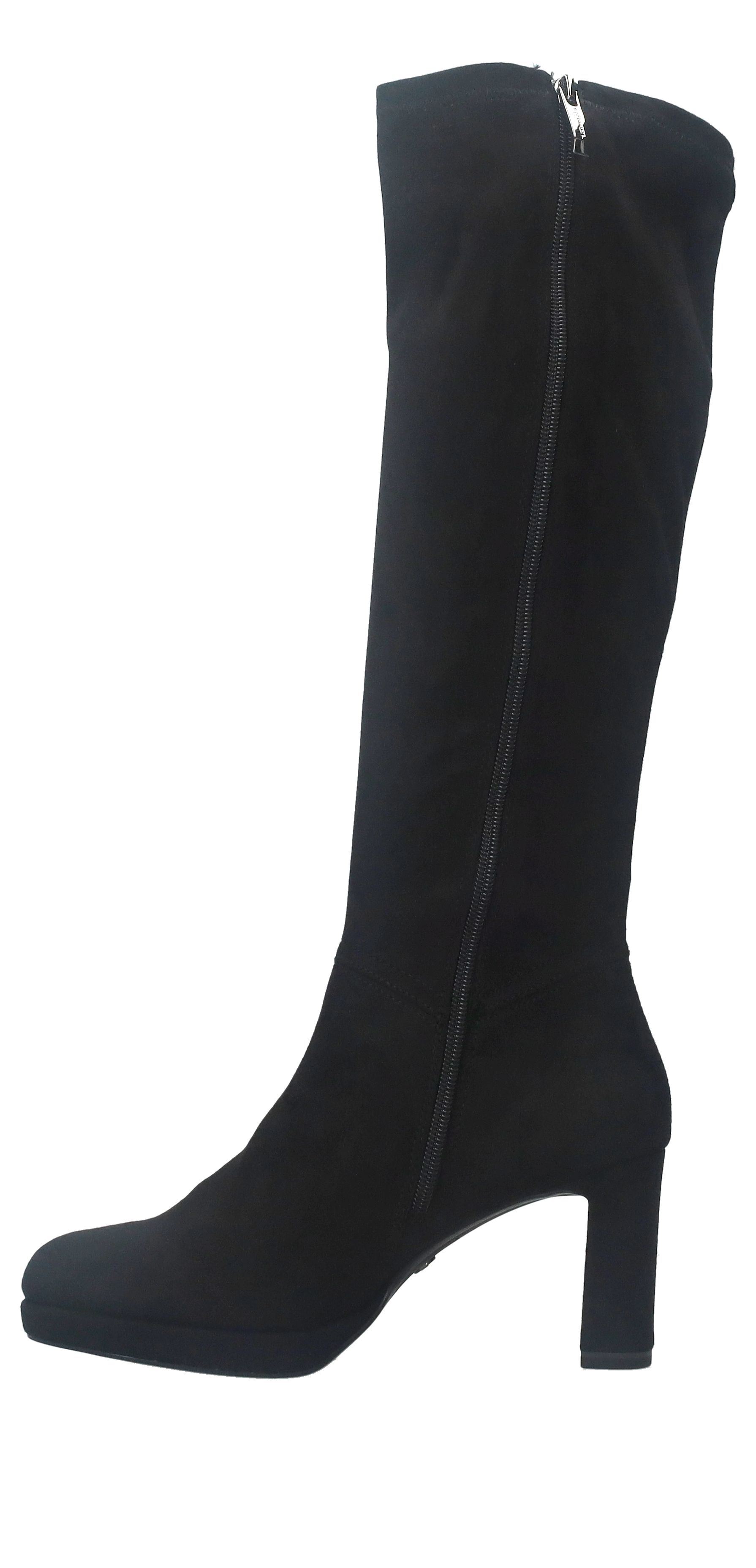 Elegante zwarte Tamaris lange laars. De schacht is gemaakt van stretch materiaal waardoor de laars mooi aansluit om de benen.