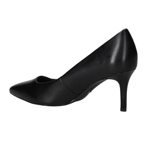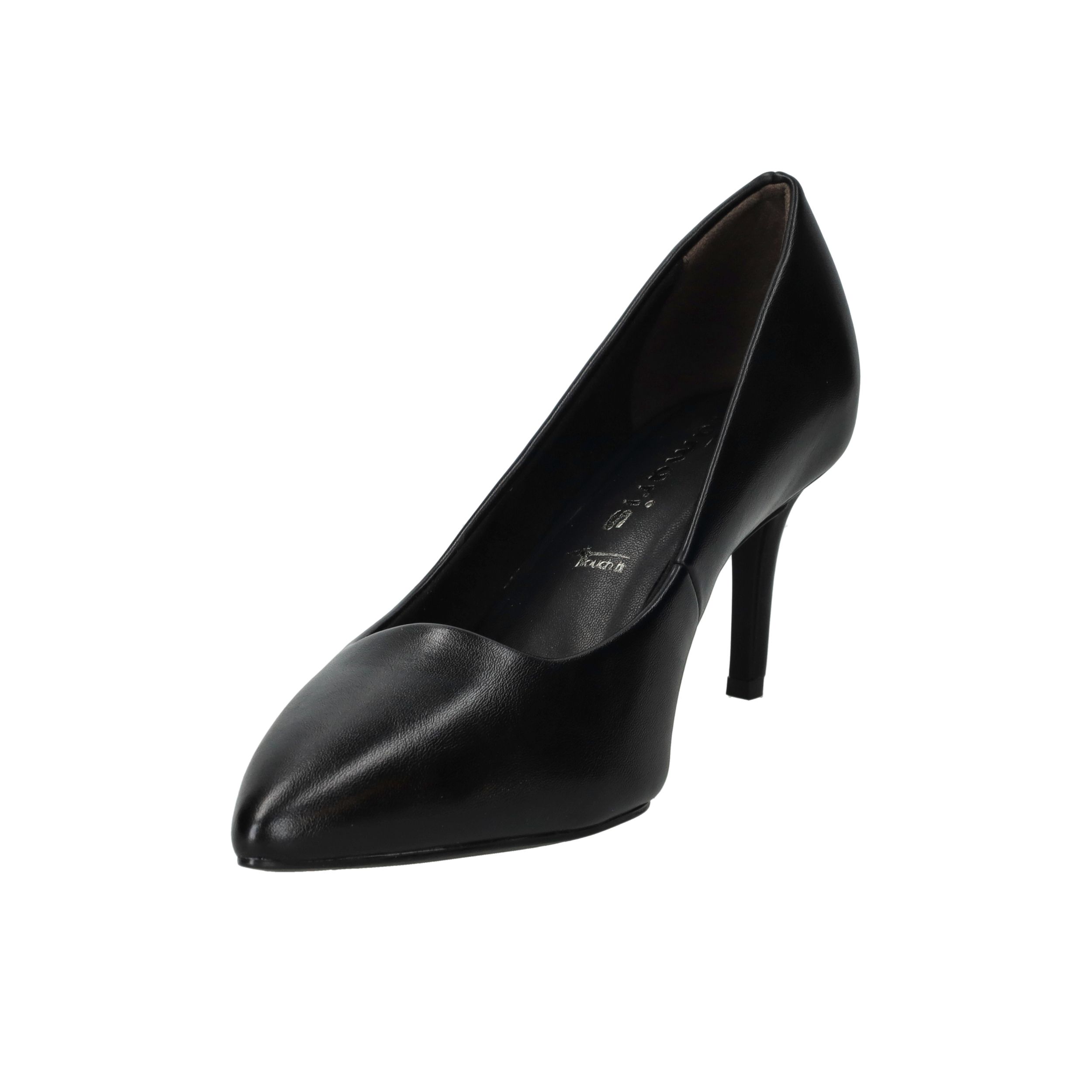 Deze elegante Tamaris pump voor dames in zwart is perfect voor wie houdt van stijl en comfort. De bovenkant van kunstleer vormt zich mooi naar je voet, terwijl de zachte textiel- en kunstleervoering zorgt voor een fijne pasvorm. De slanke hak en spitse neus maken hem ideaal voor zowel feestjes als formele gelegenheden.