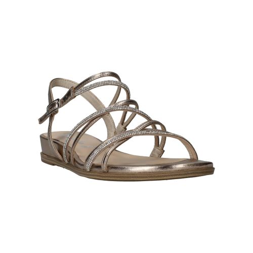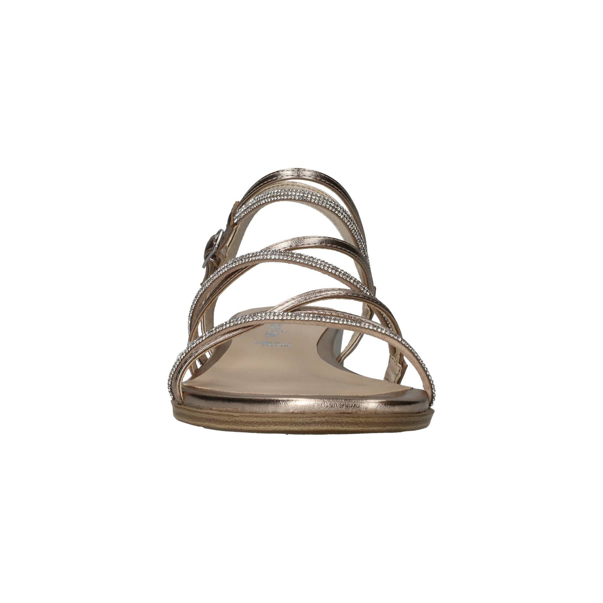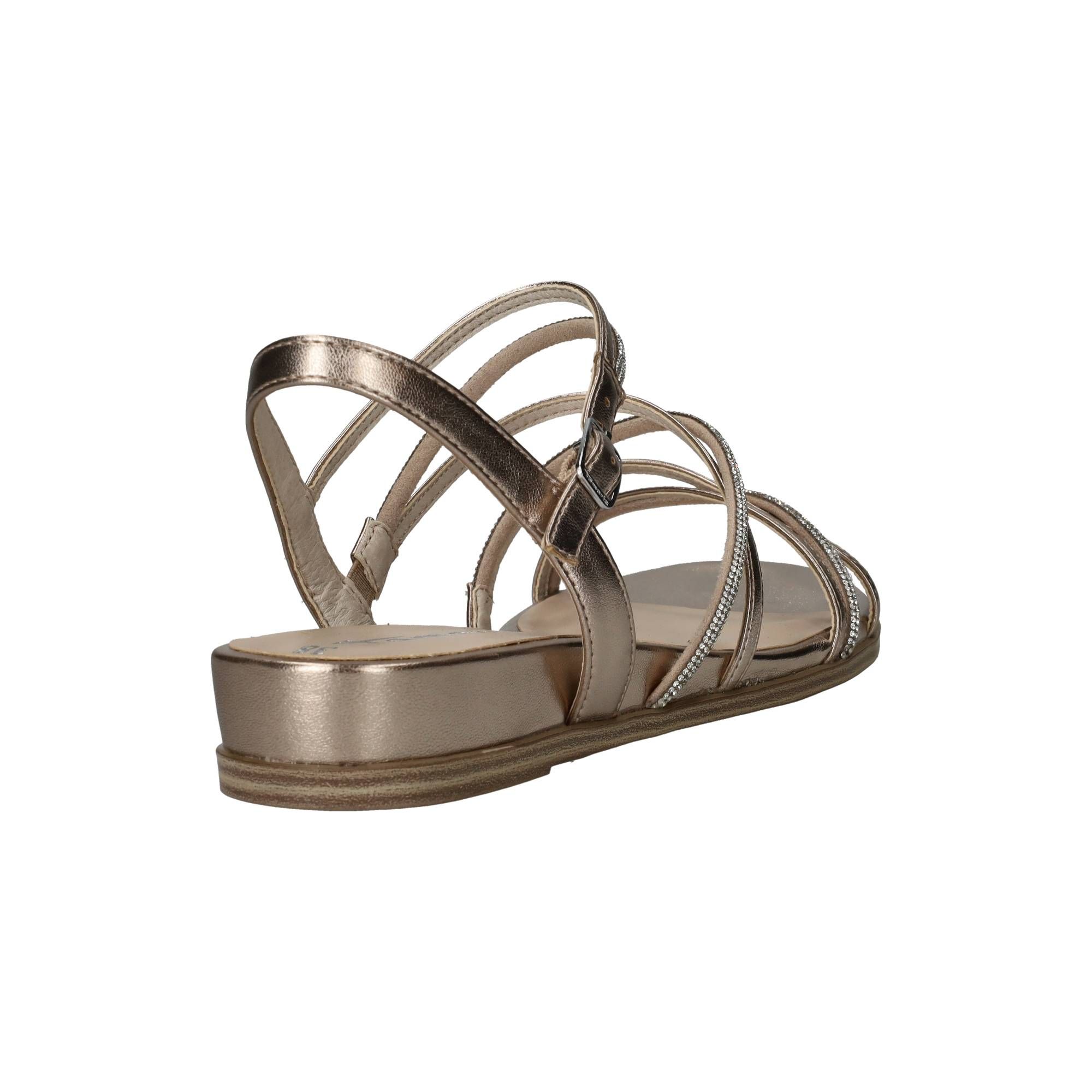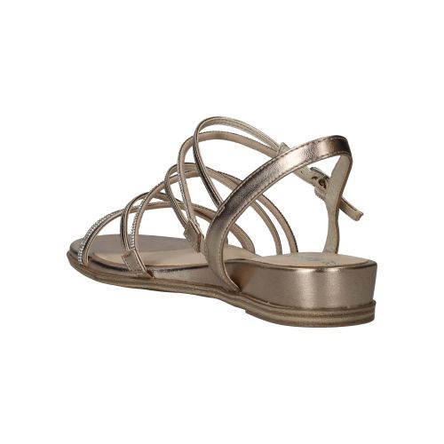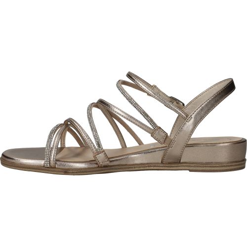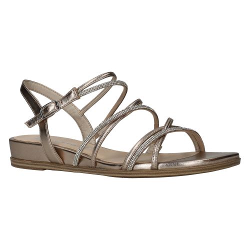 Elegante Tamaris sandaal in het lichtgoud. De sandaal heeft glinsterende steentjes op de bandjes.
