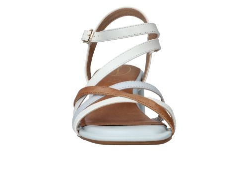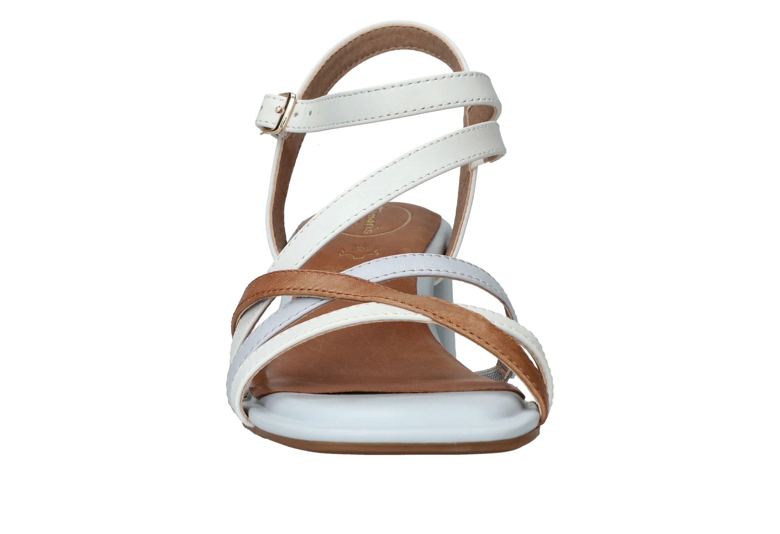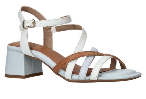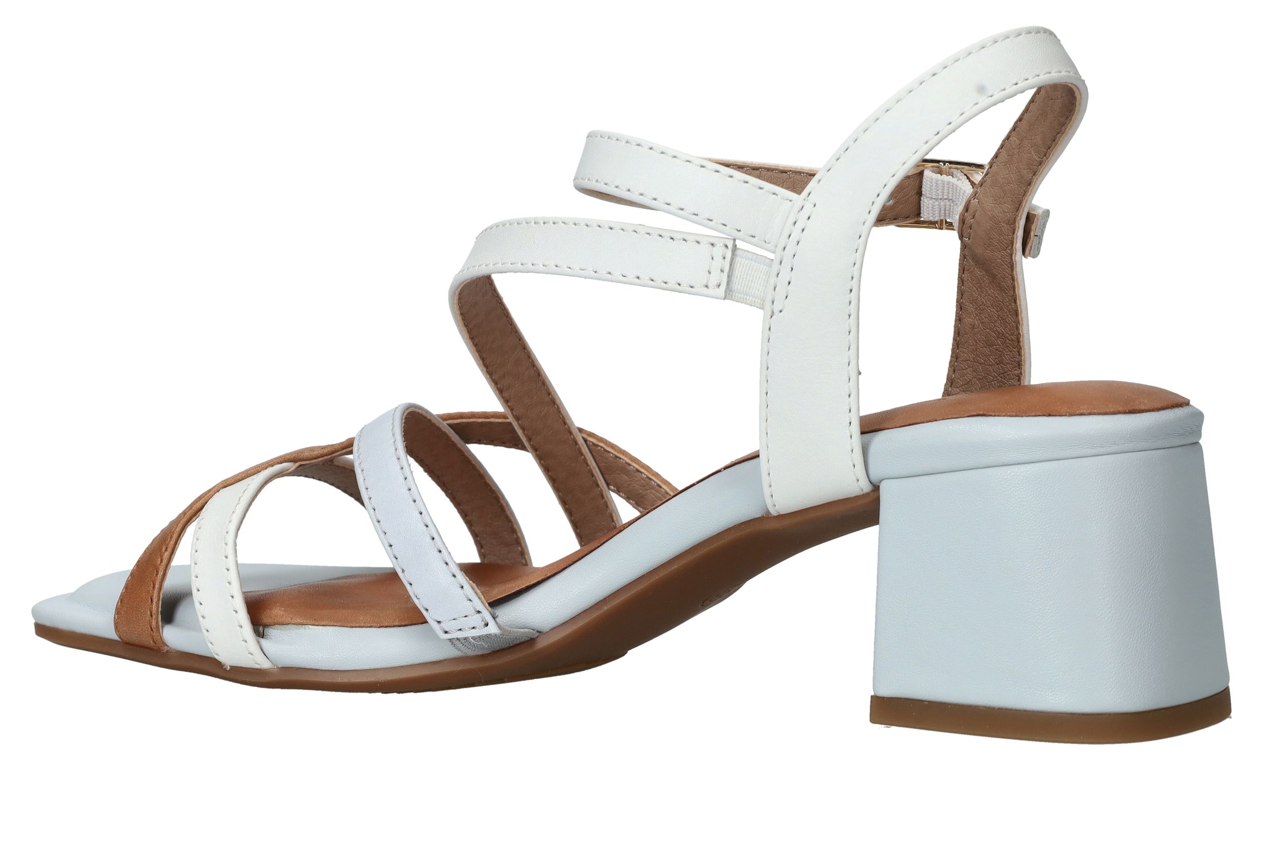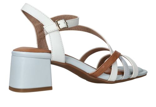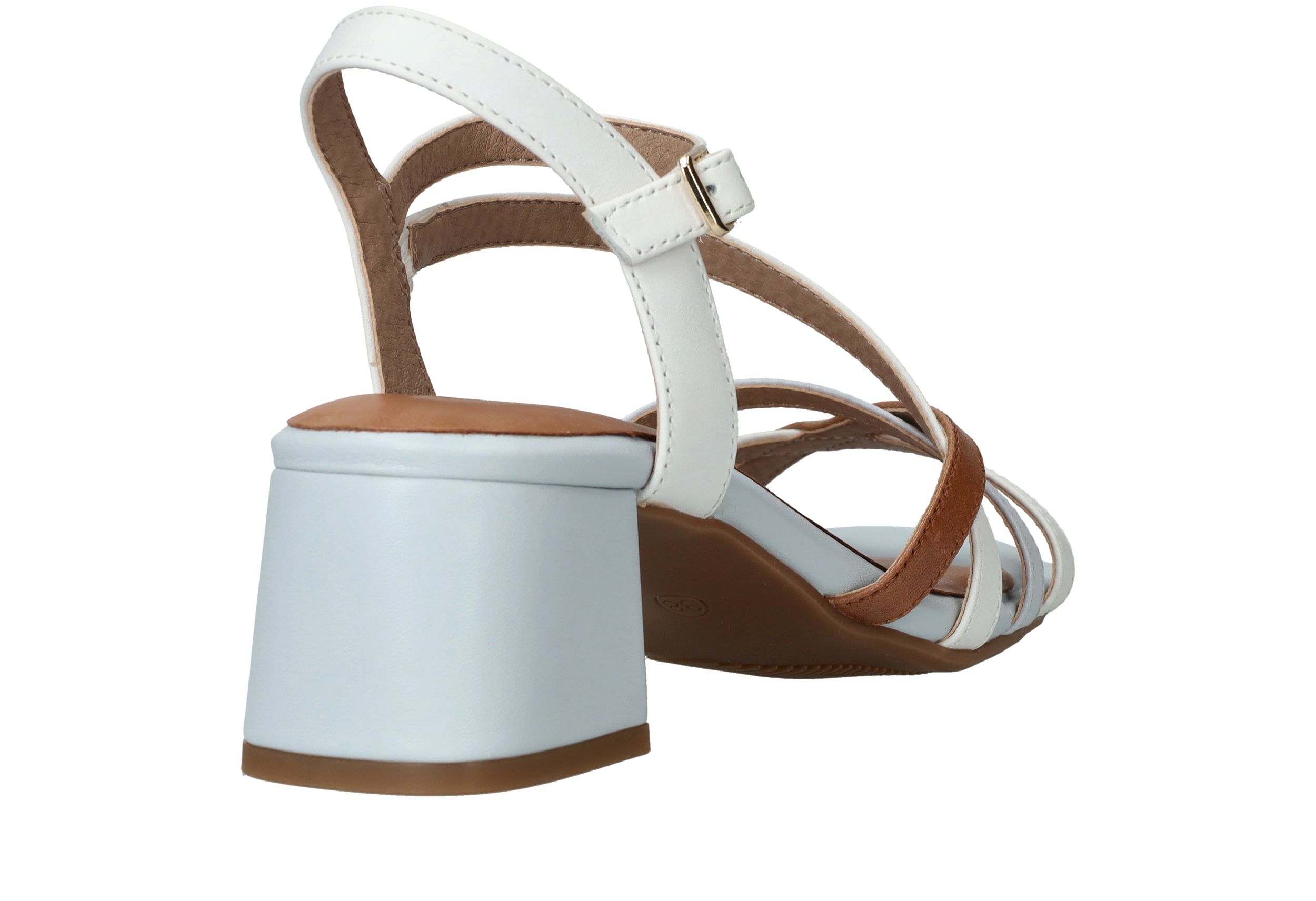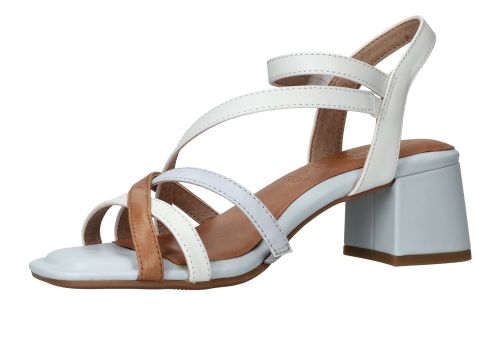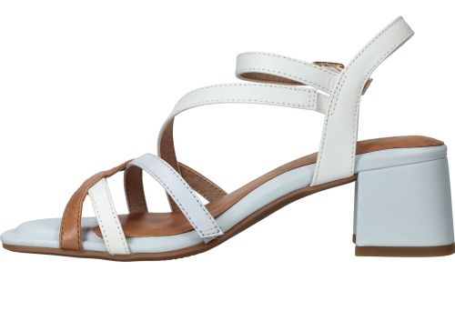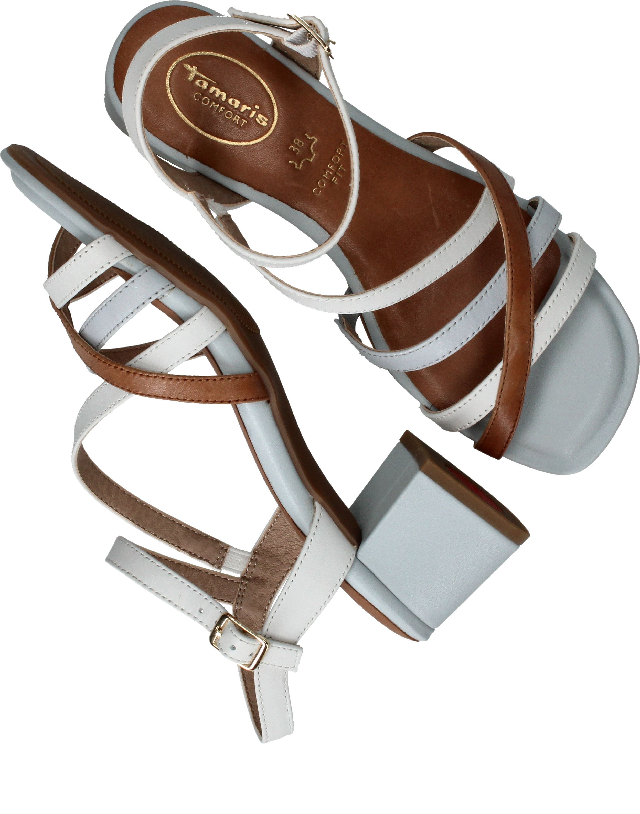 Zomerse Tamaris sandalette met een leuke kleurencombinatie van lichtblauw, wit en cognac.