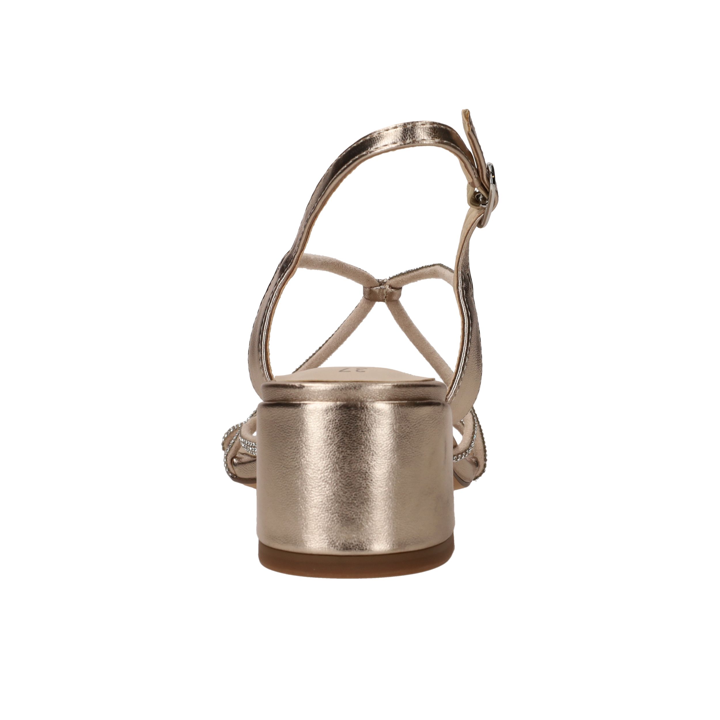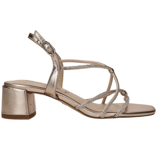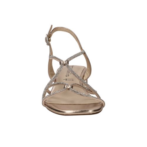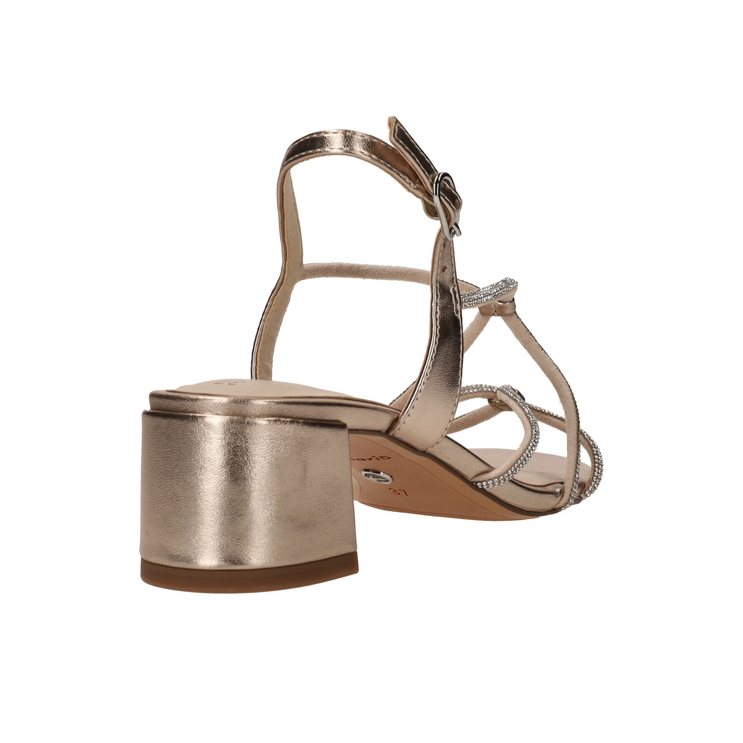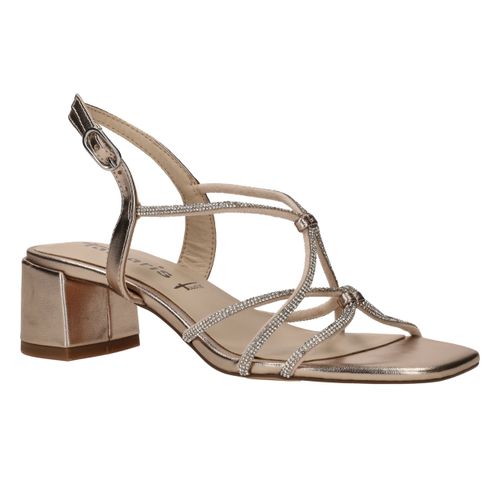 Elegante gouden Tamaris VEGAN sandalette met glittersteentjes.