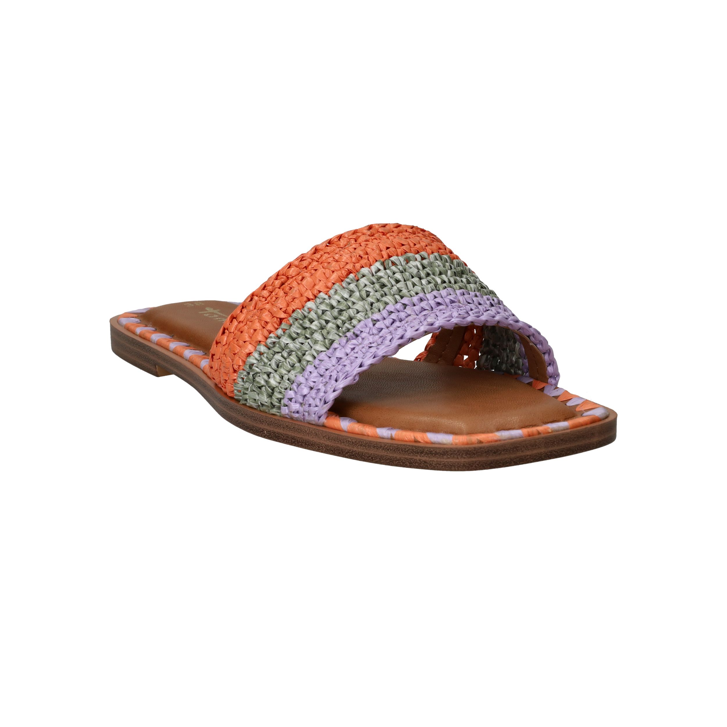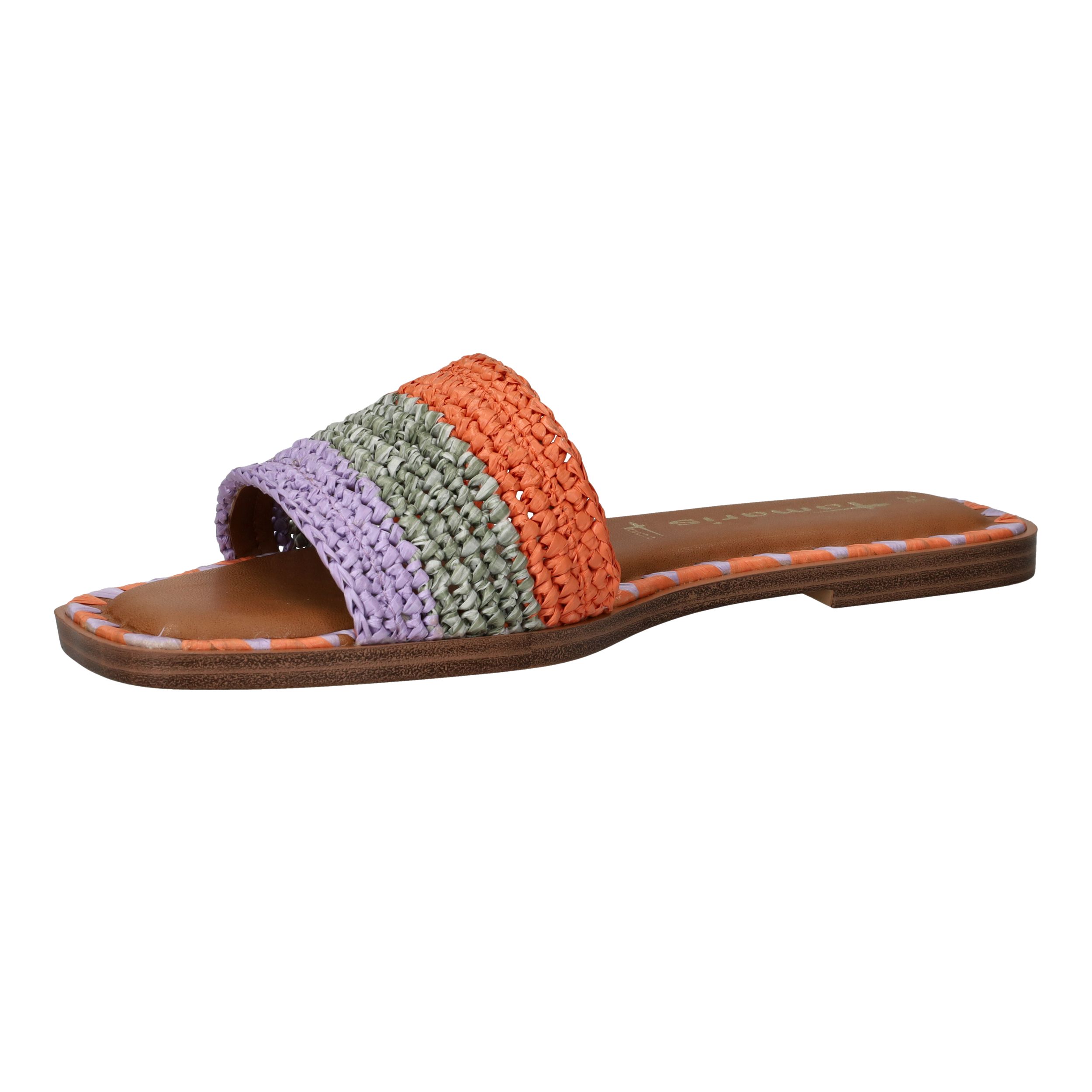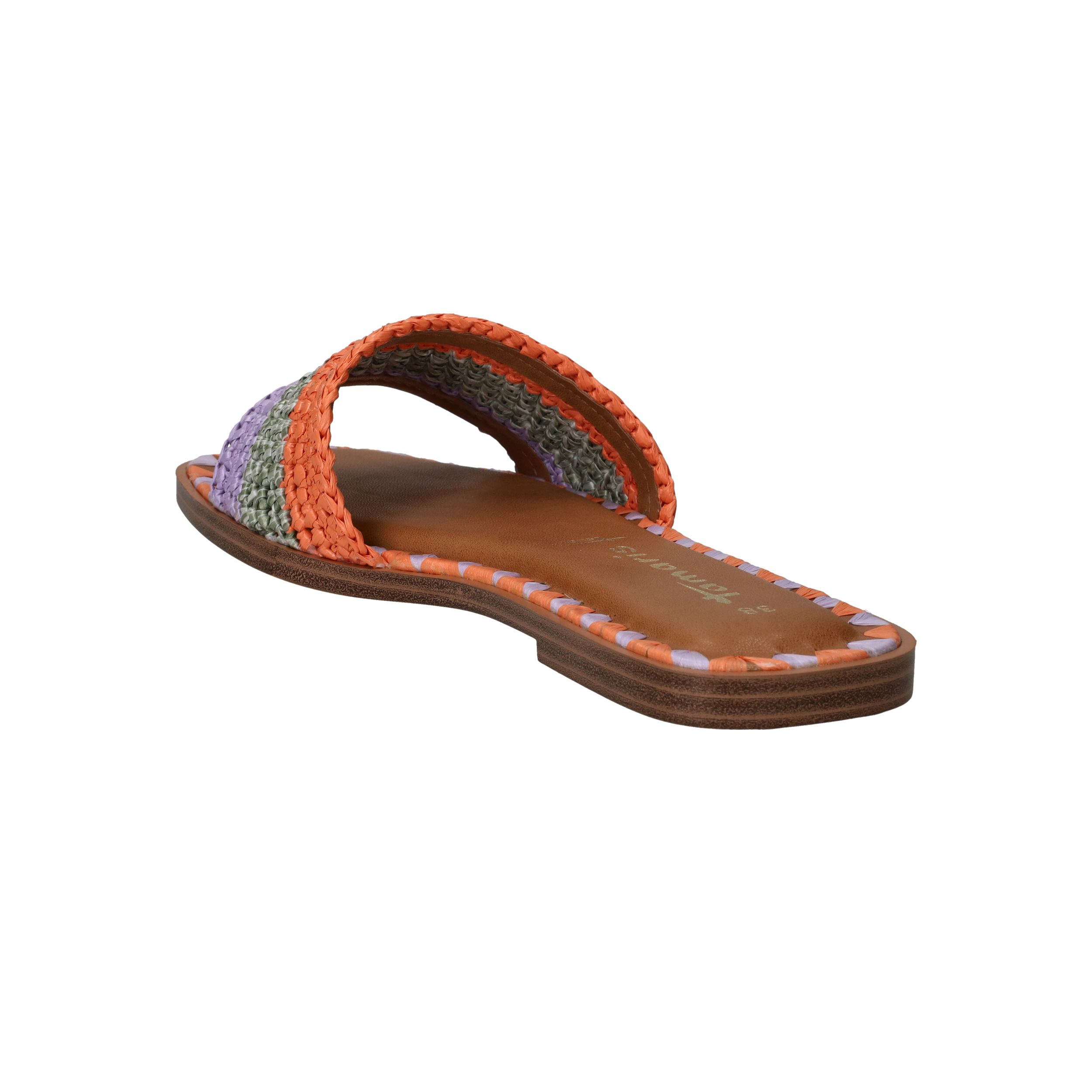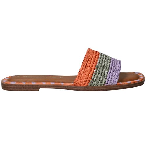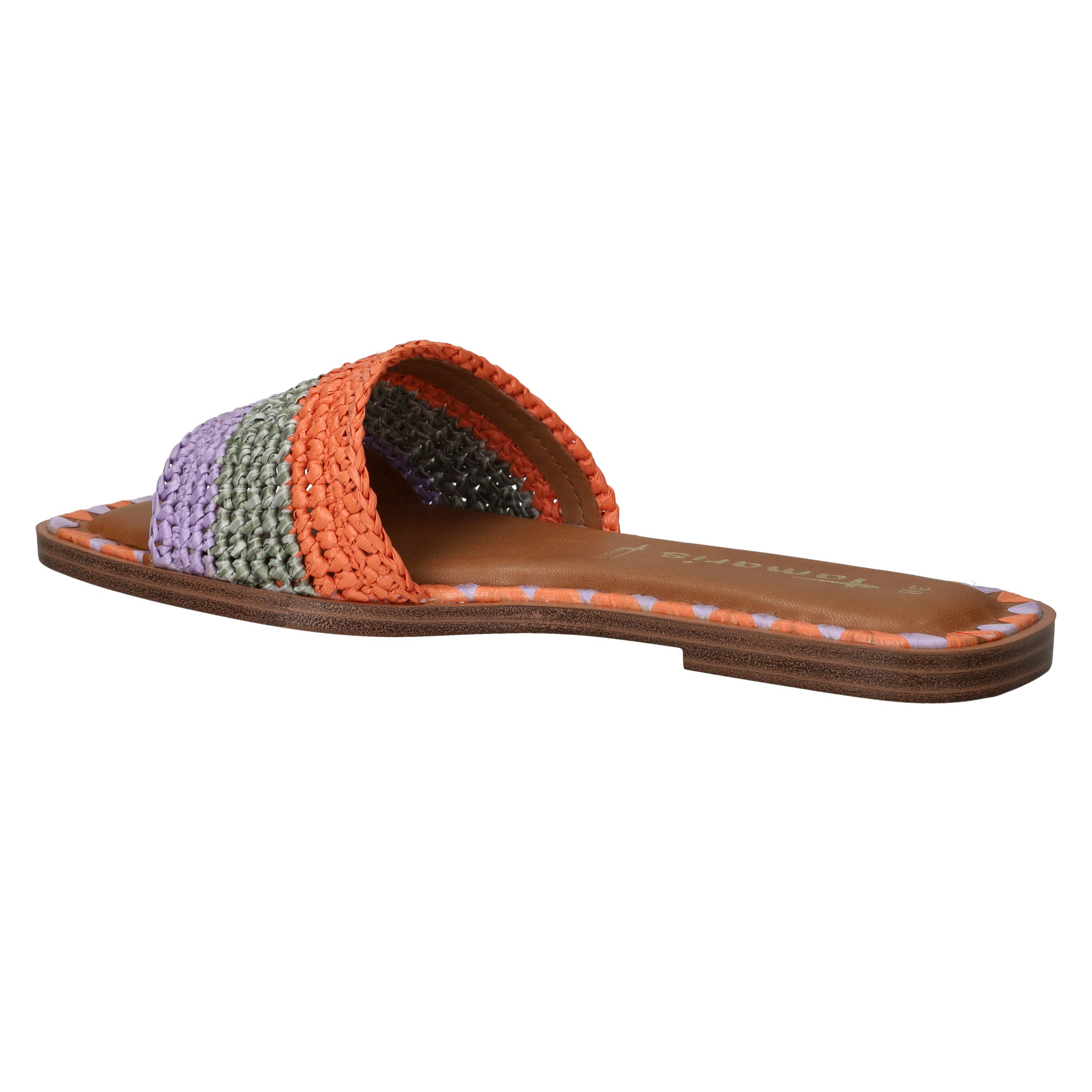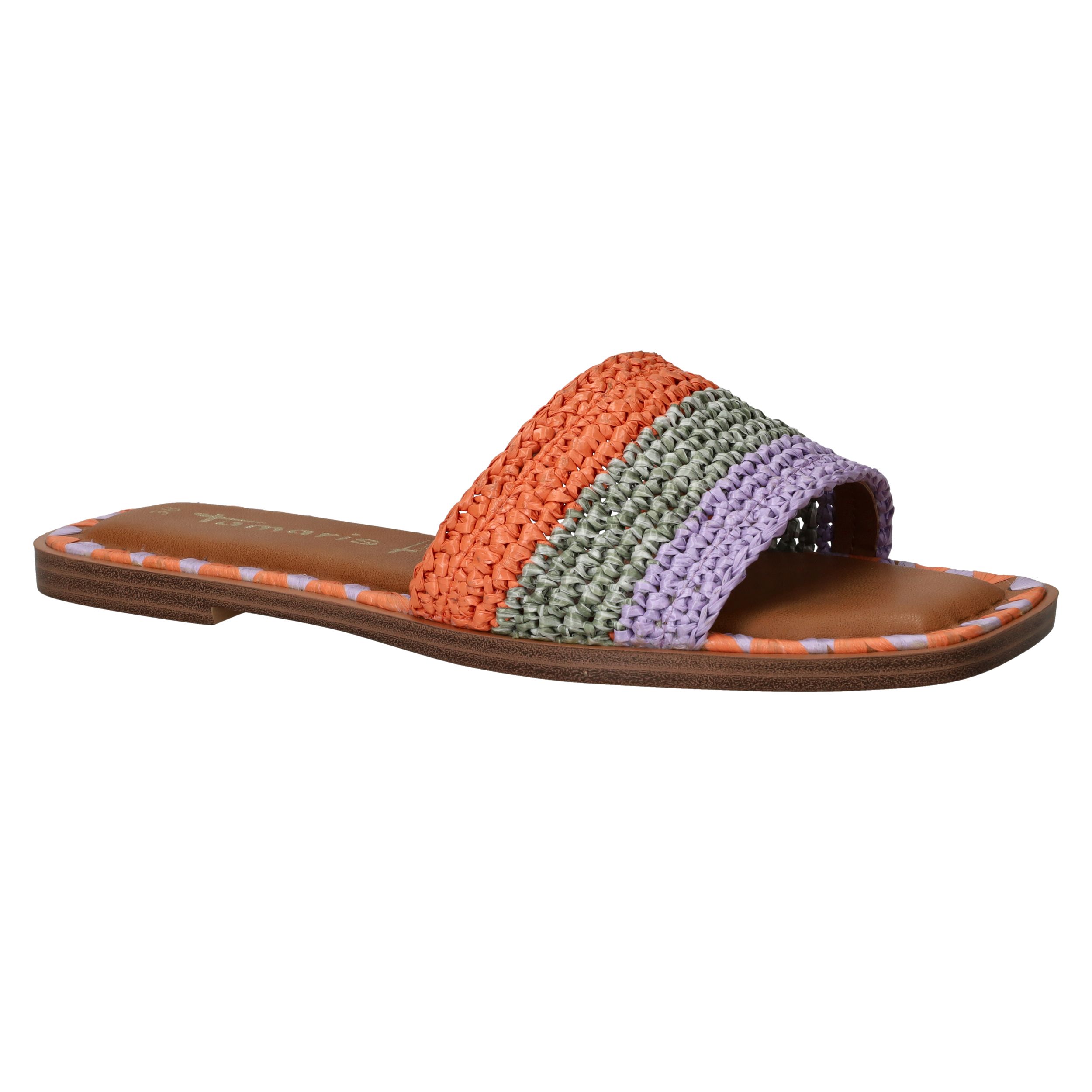 Laat de zomer maar komen met deze kleurrijke slippers van Tamaris. De brede band is gemaakt van stevig en gevlochten textiel in vrolijke tinten als oranje, groen en lila. Ideaal voor dames met voetbreedte G die op zoek zijn naar luchtige schoenen met flair. Door de platte zool en het instapmodel zijn ze heerlijk comfortabel en gemakkelijk te dragen.
