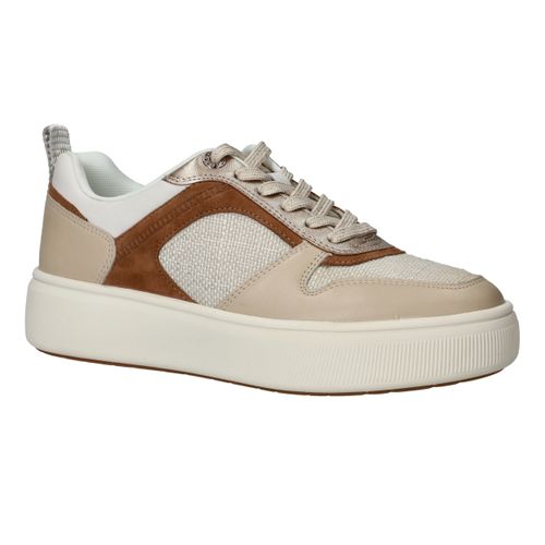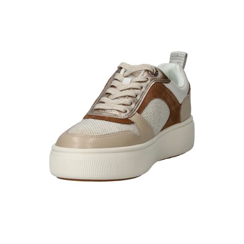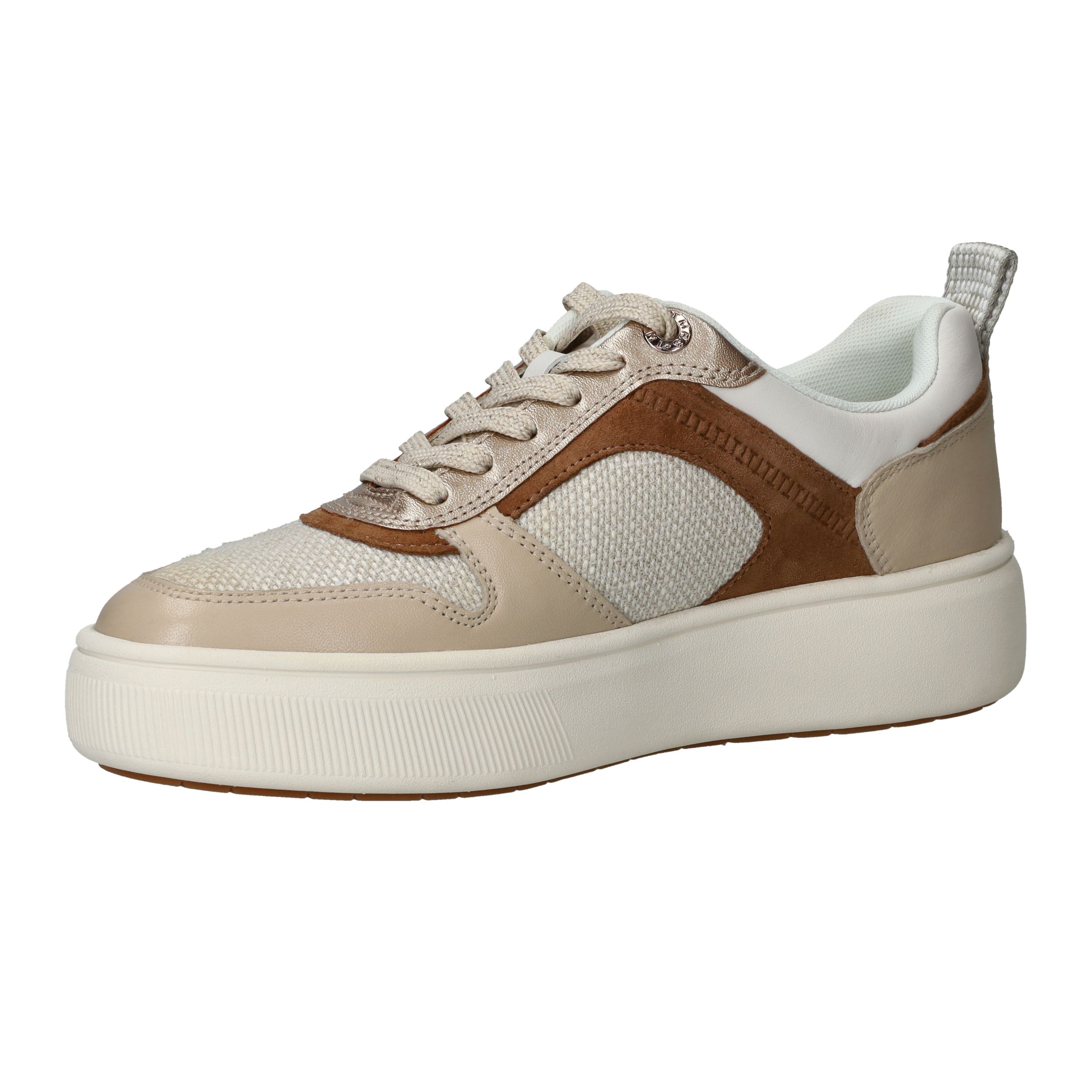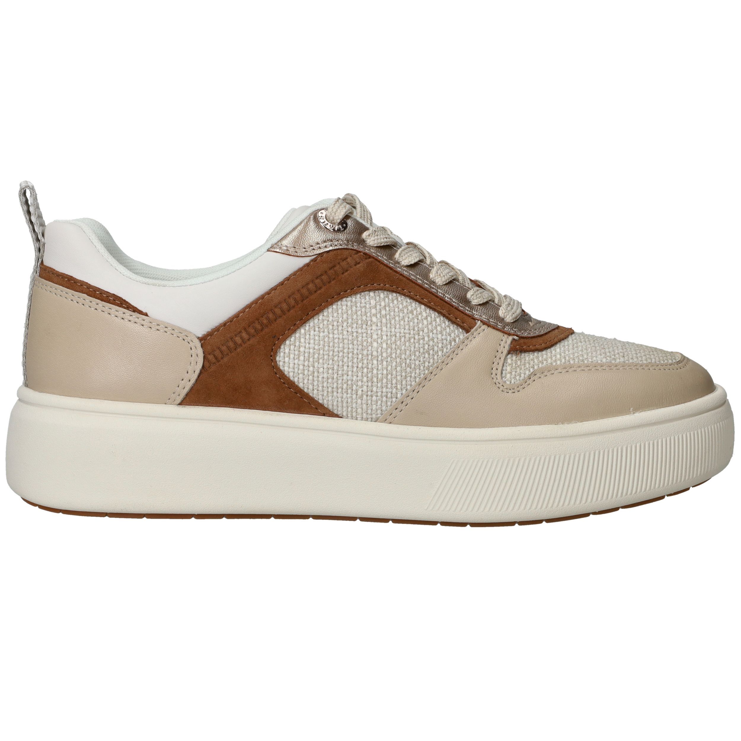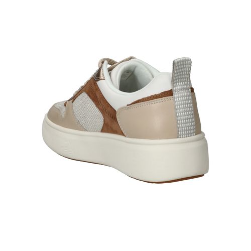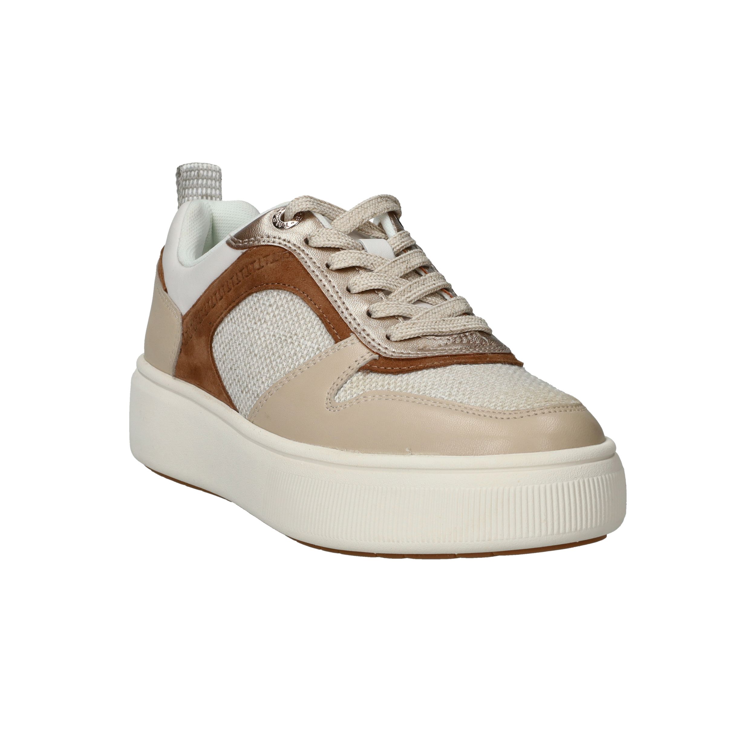 Hippe Tamaris sneaker voor dames in neutrale beige en bruine kleuren. De sneaker krijgt een trendy look door de platformzool.