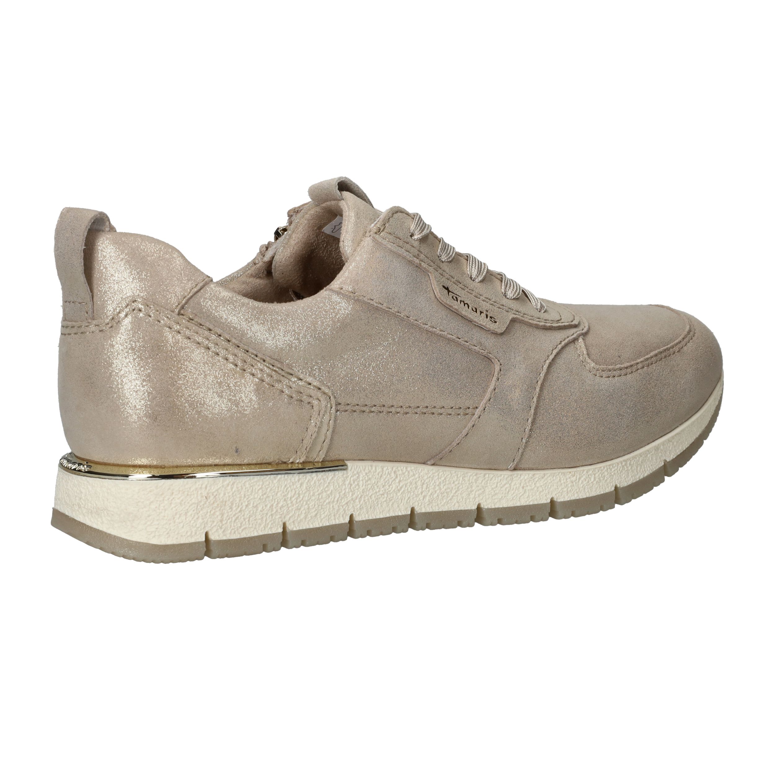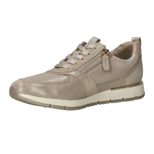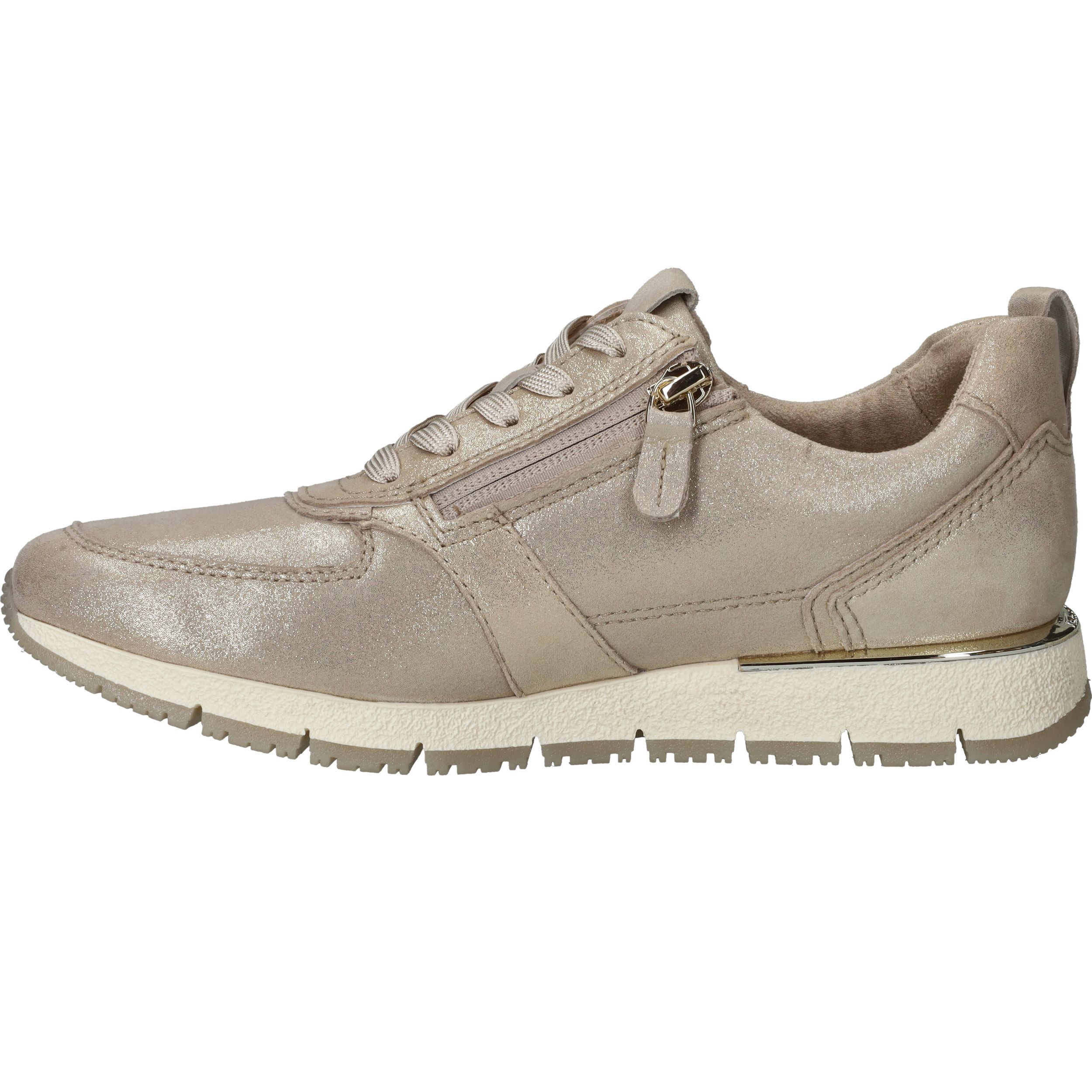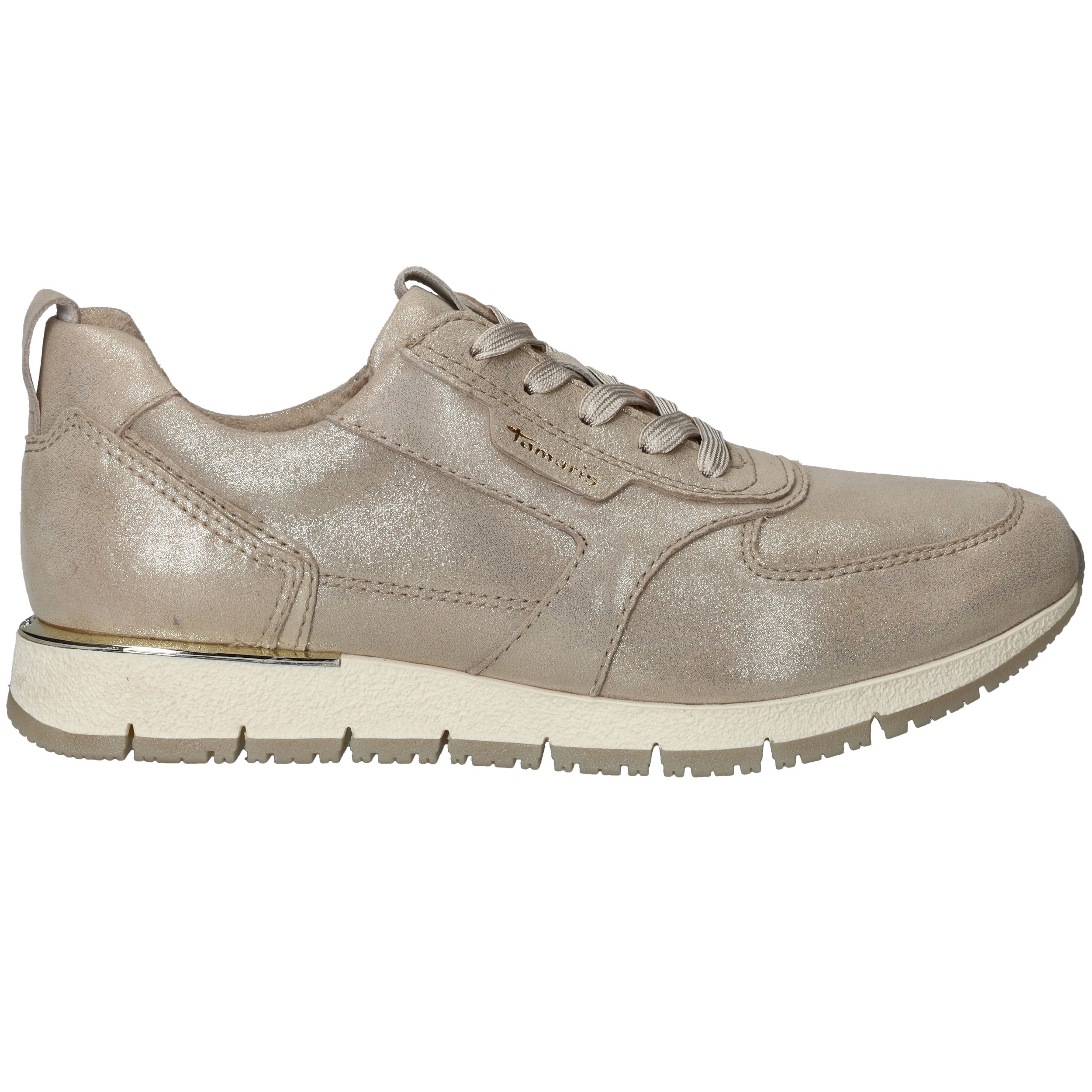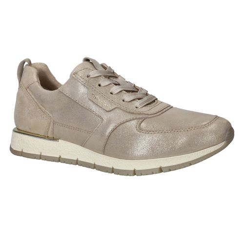 Comfortabele Tamaris veterschoen in een te gekke metallic gouden kleur. De sneaker is gemaakt van leer en je stapt makkelijk in de schoen door de veter- en ritssluiting.