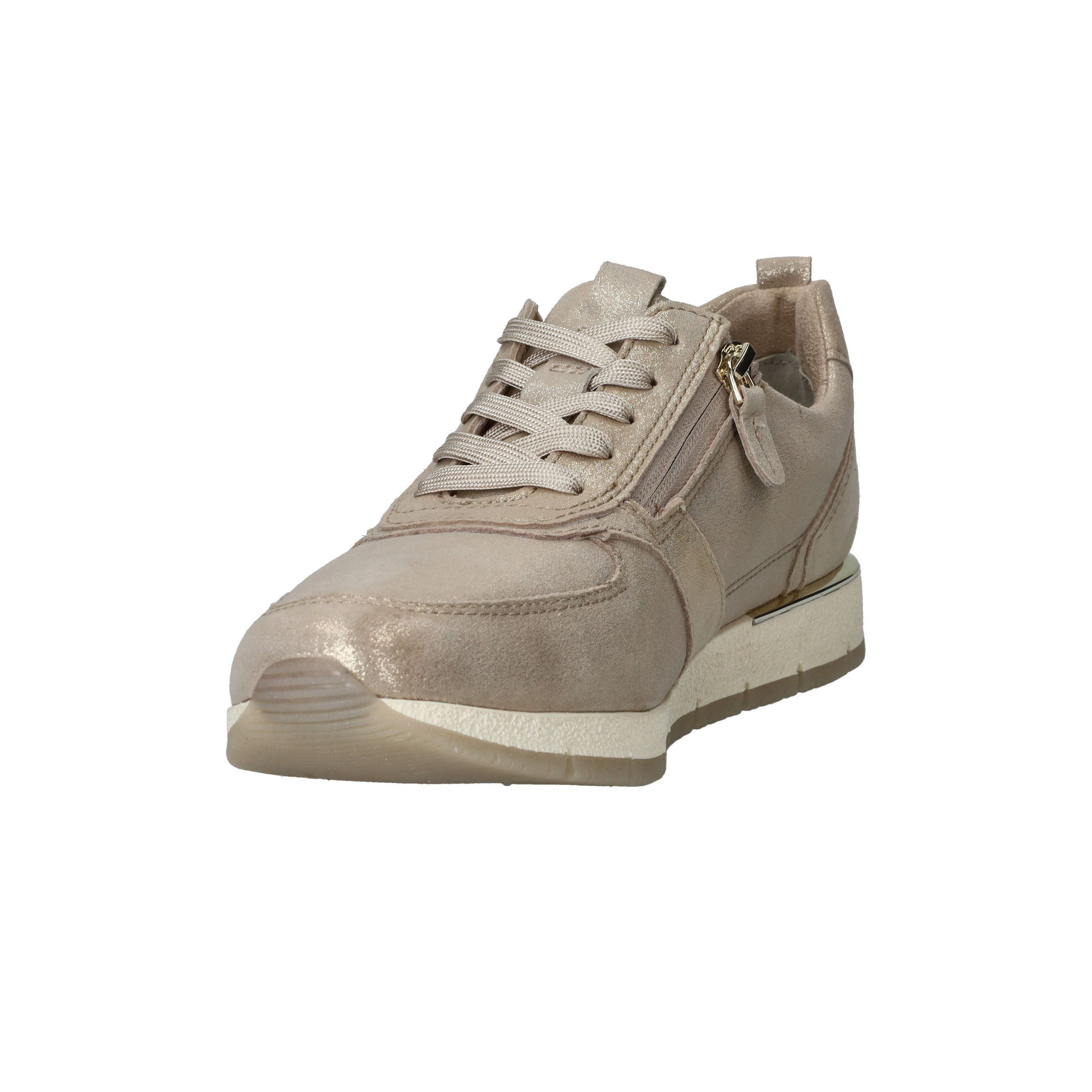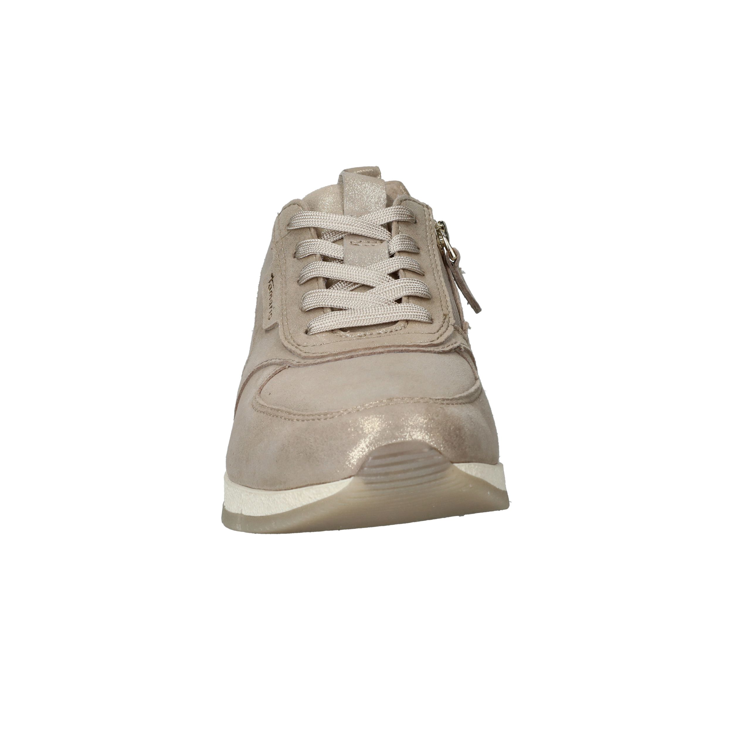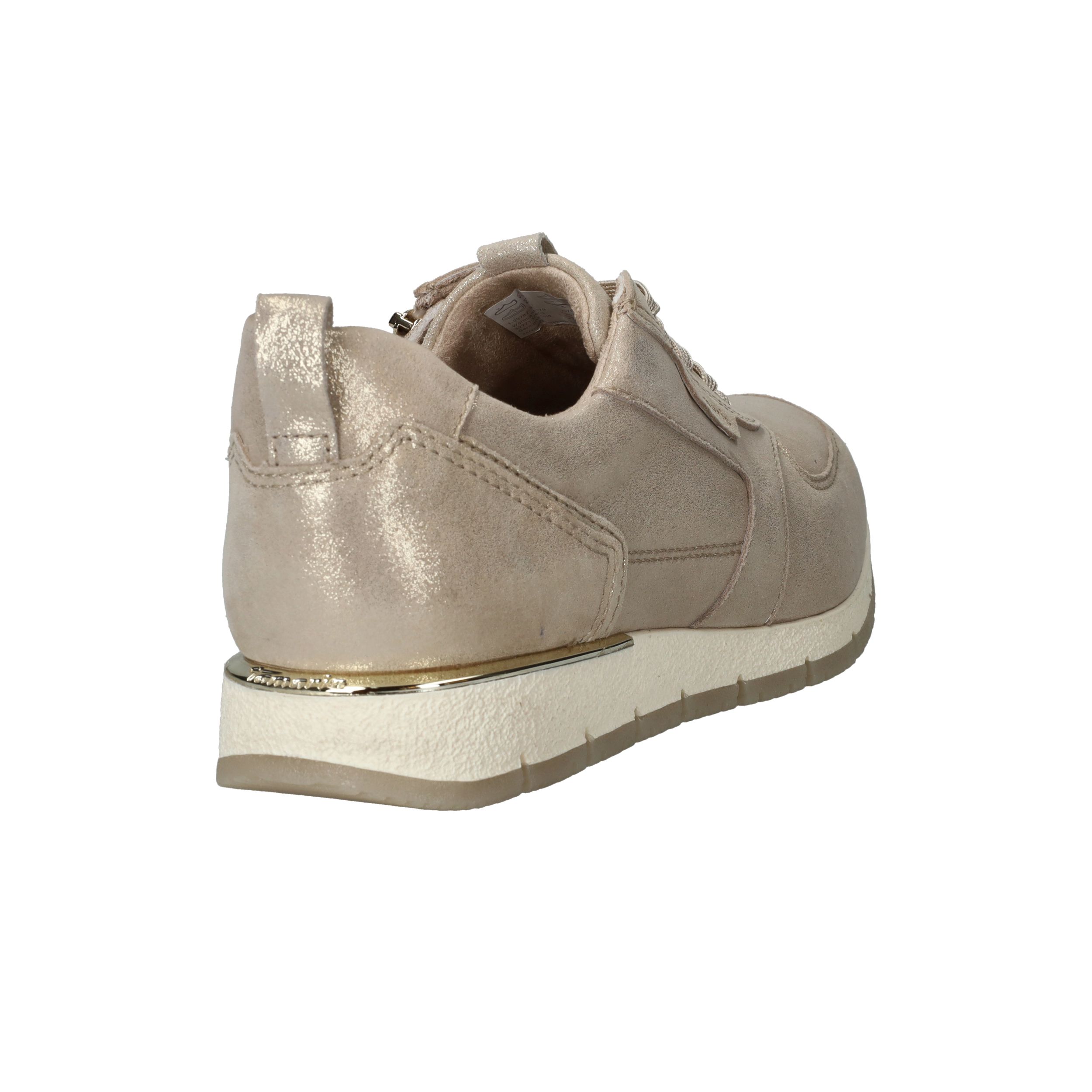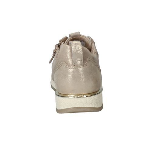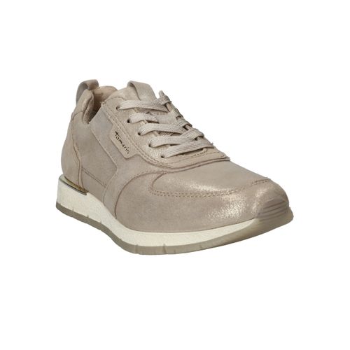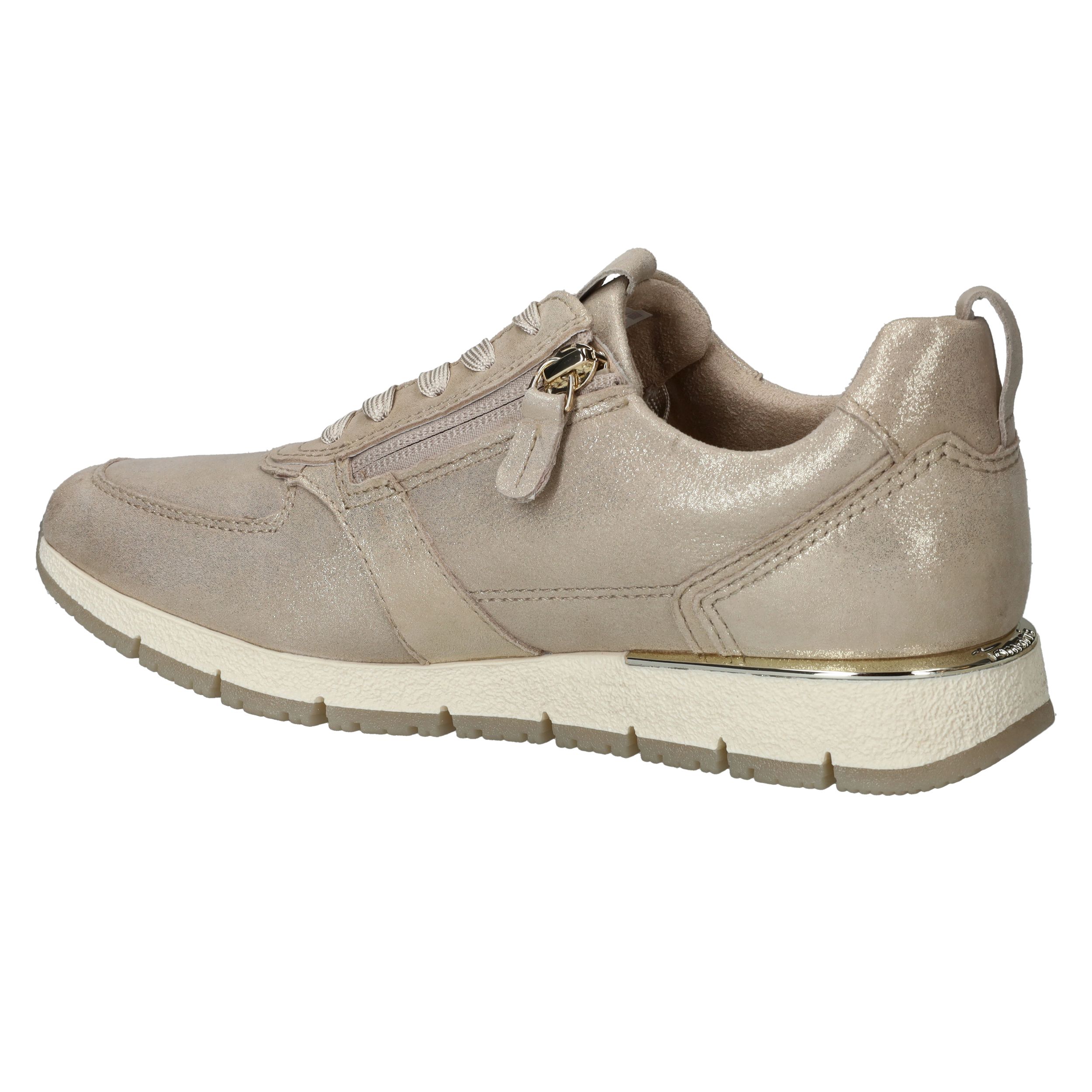 Comfortabele Tamaris veterschoen in een te gekke metallic gouden kleur. De sneaker is gemaakt van leer en je stapt makkelijk in de schoen door de veter- en ritssluiting.