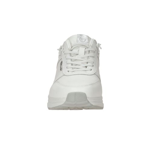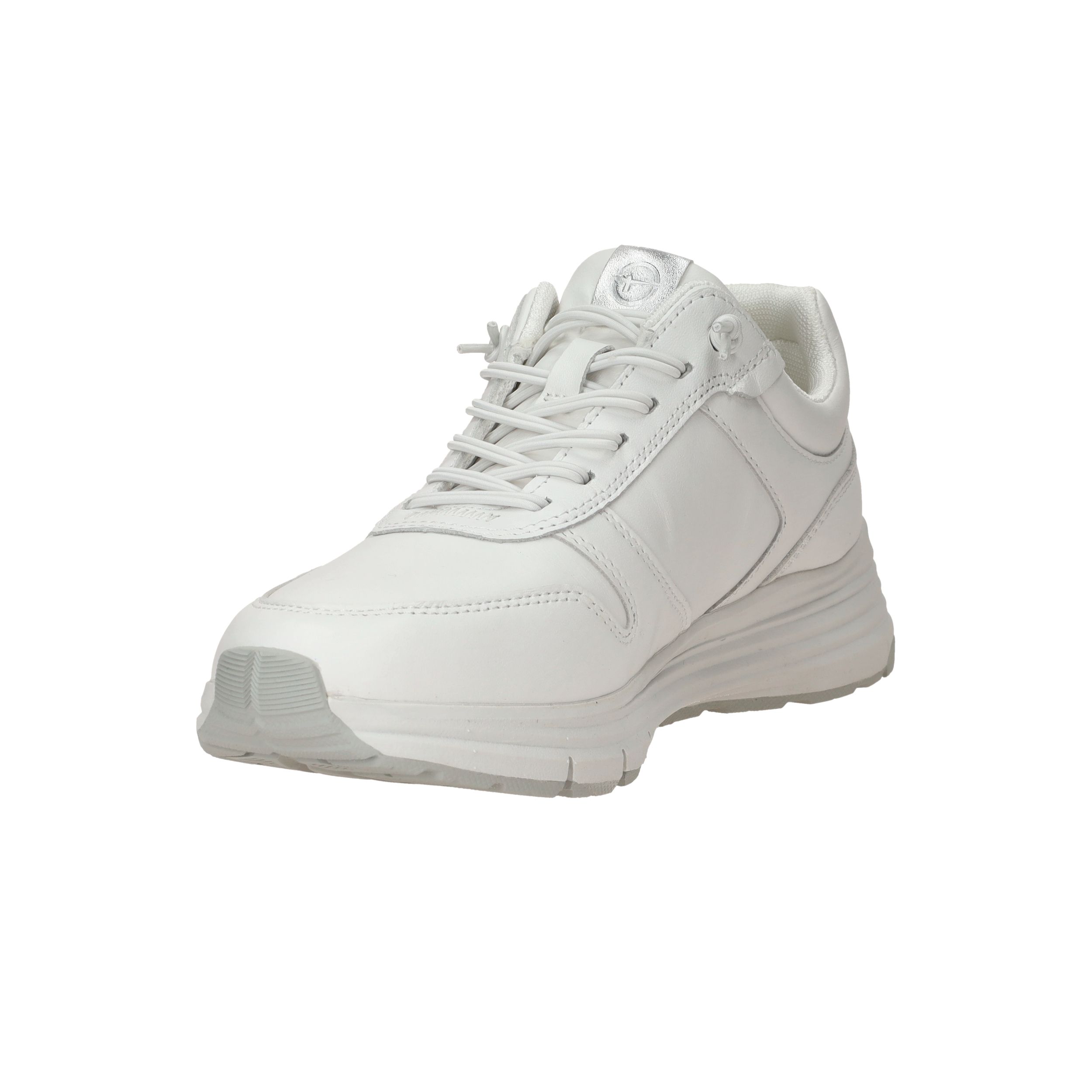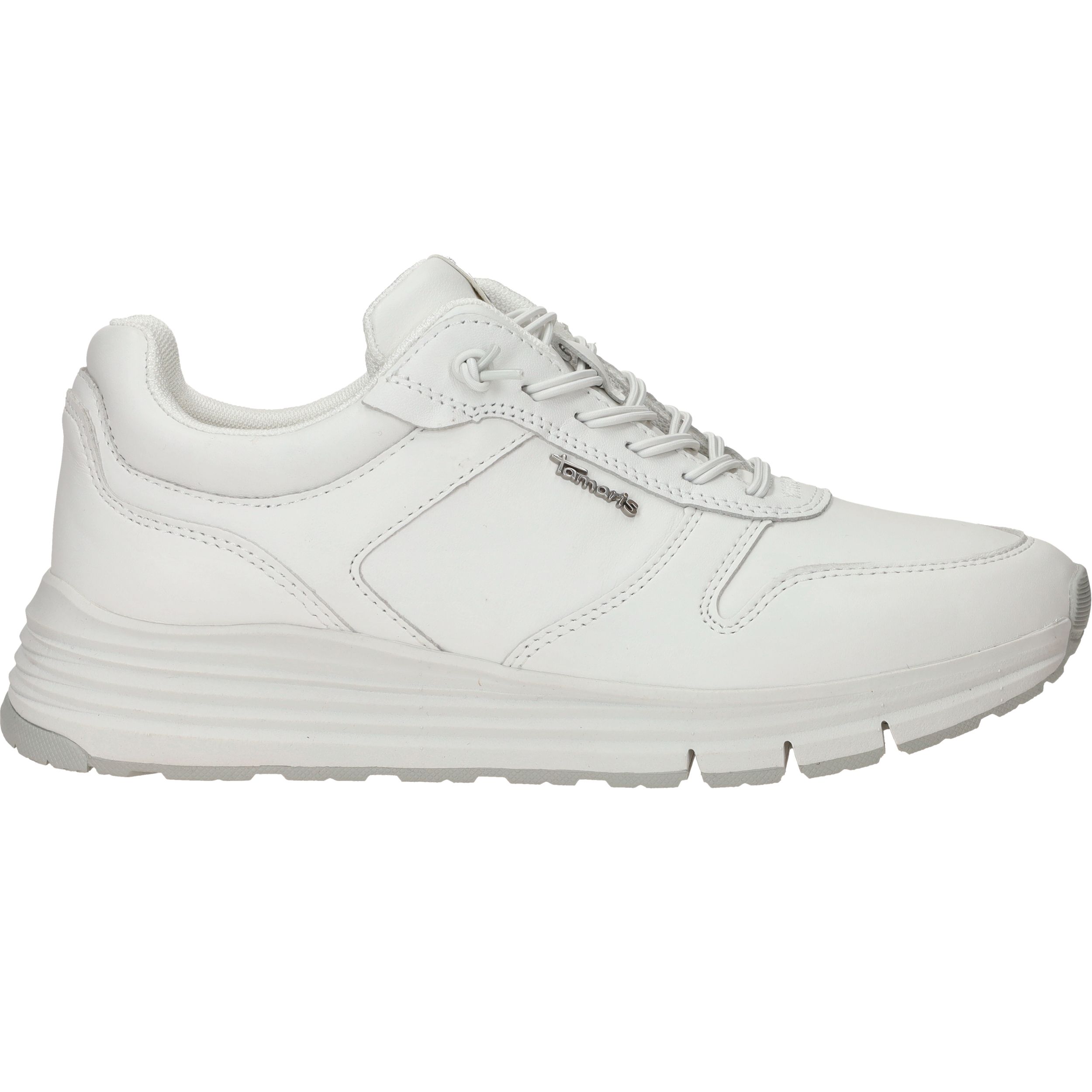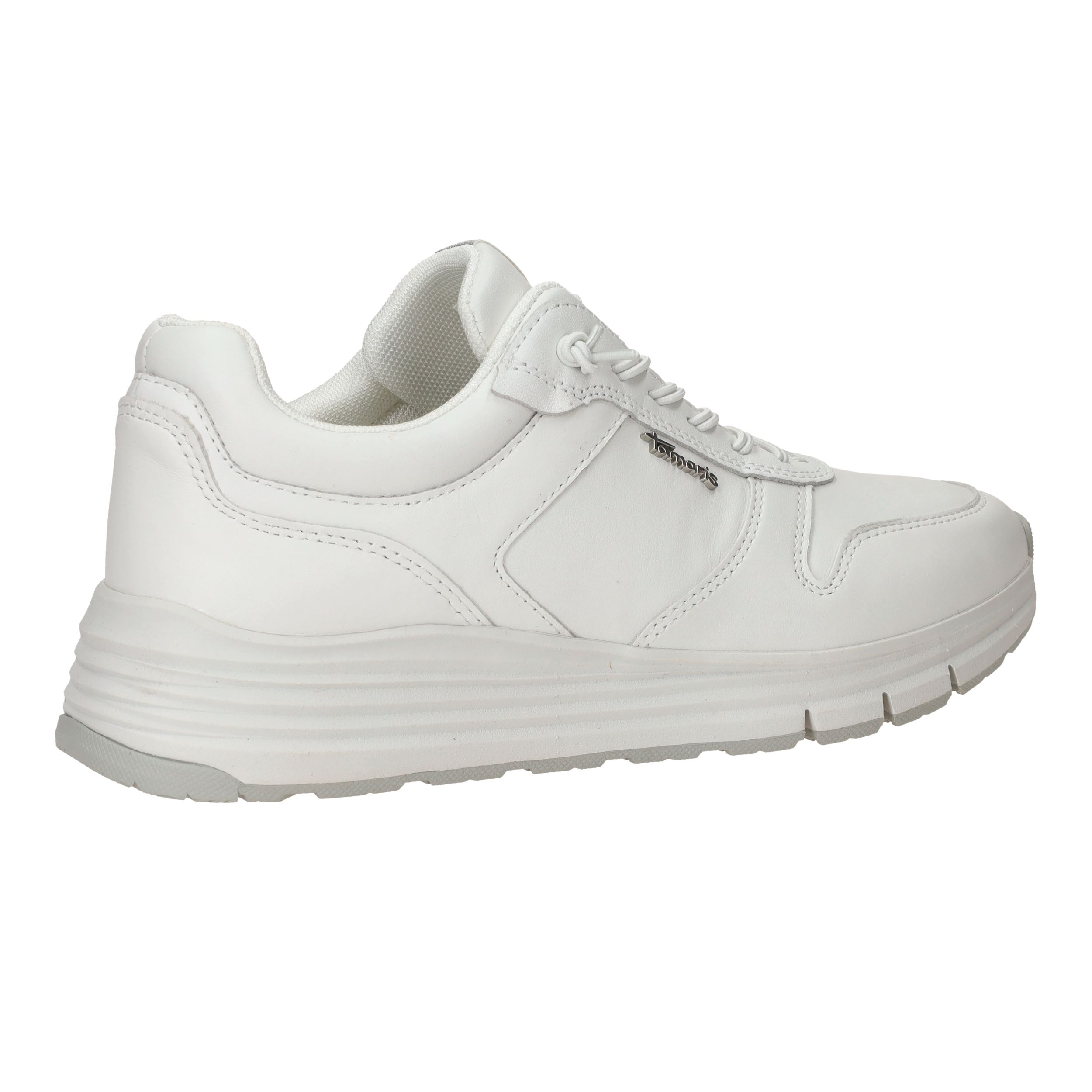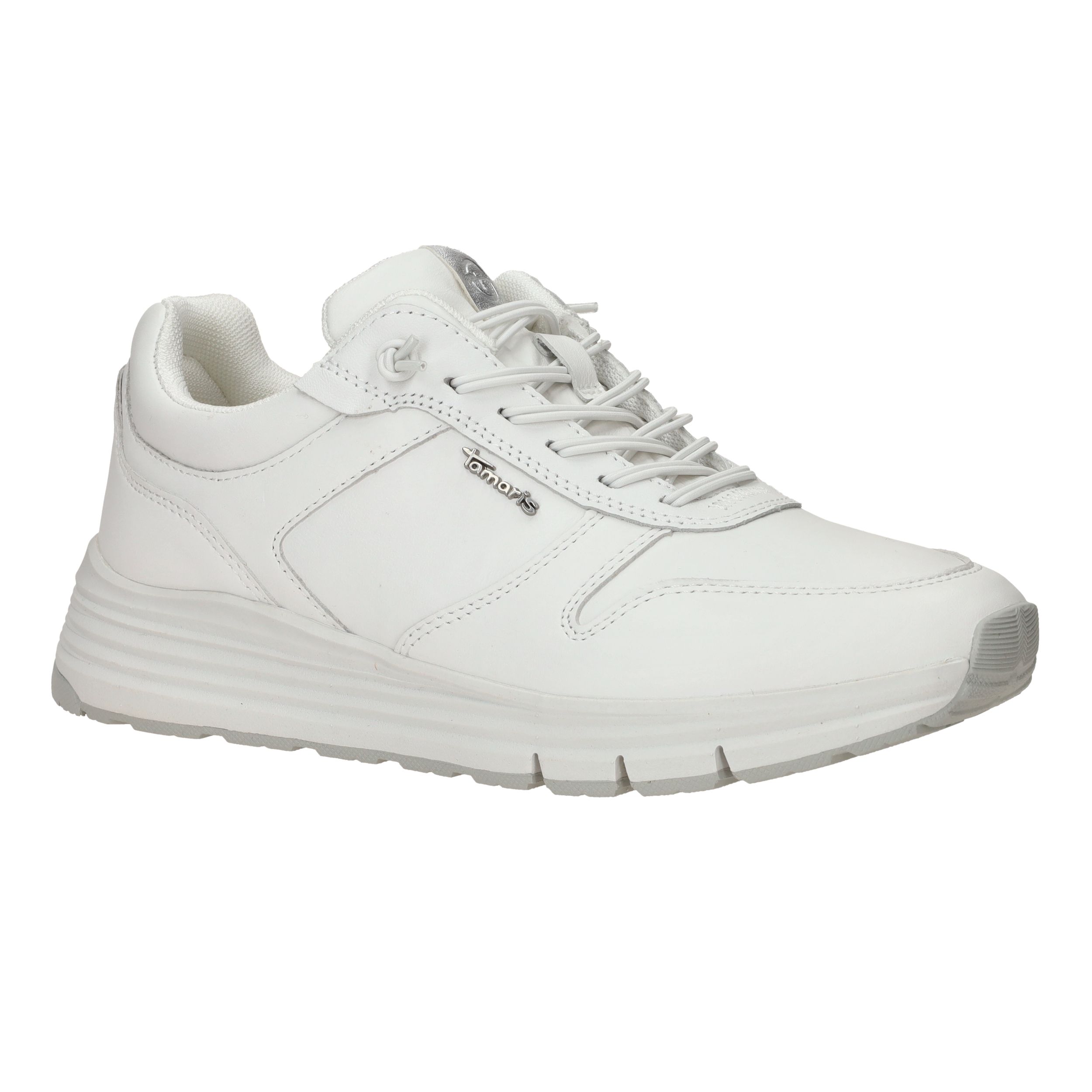 Kies voor deze mooie damessneaker van Tamaris! De witte sneaker heeft elastieke veters, zo stap je makkelijk in de schoen.