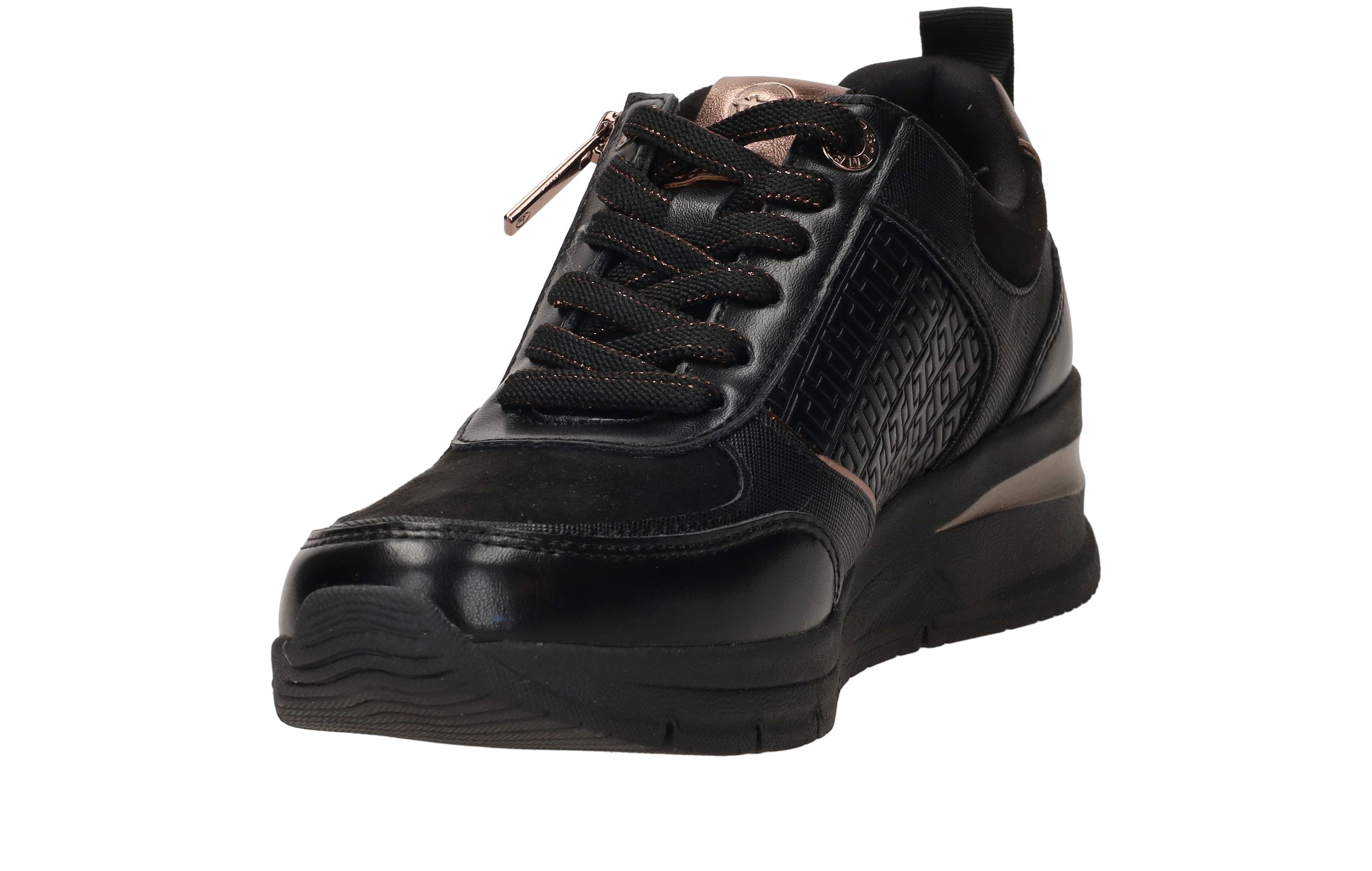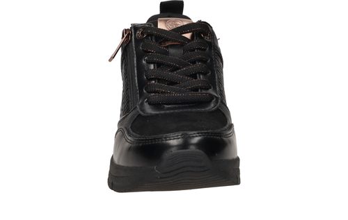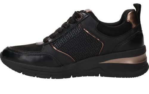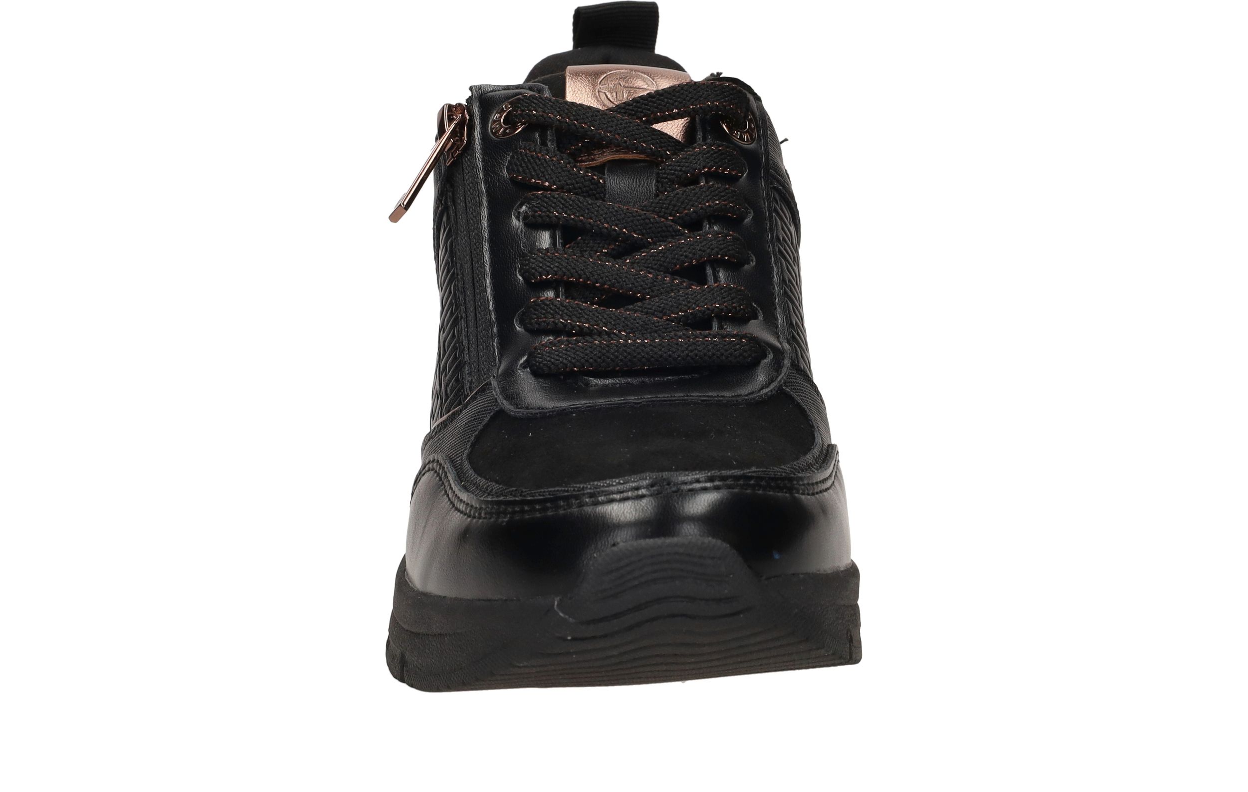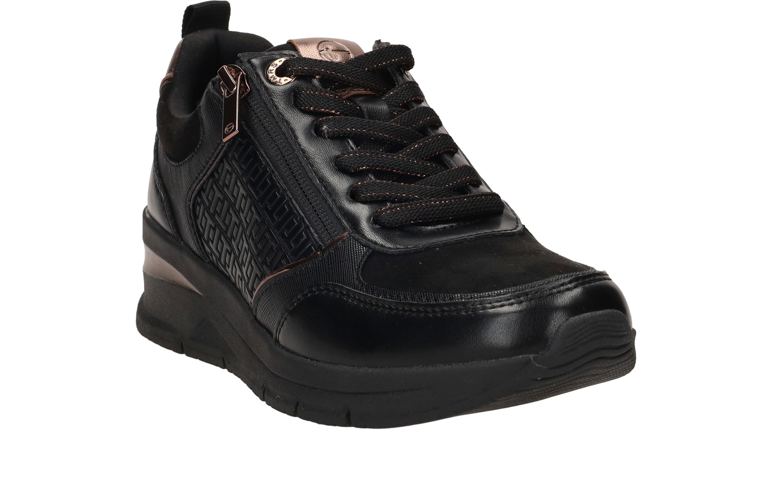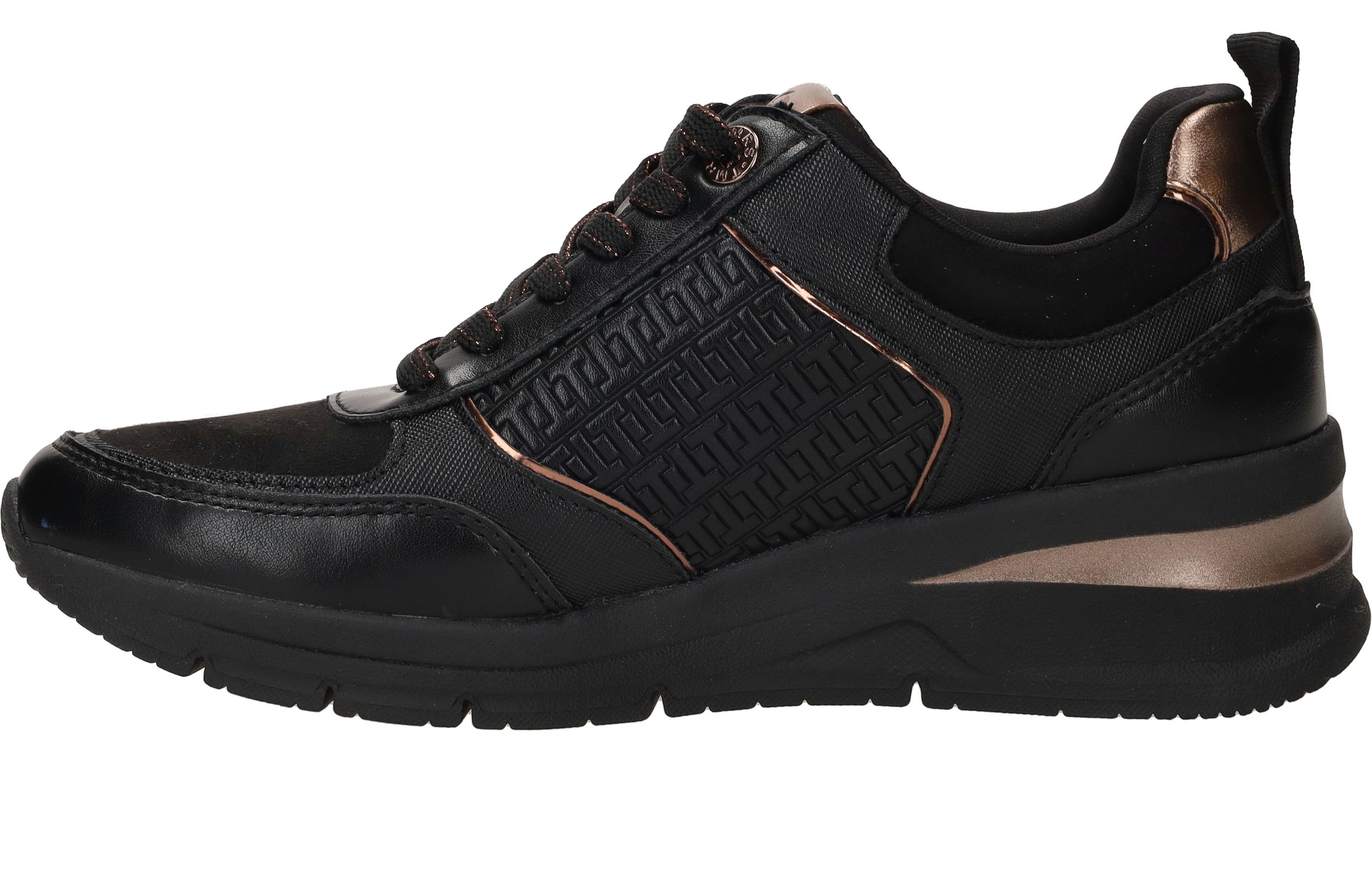 Mooie zwarte Tamaris sneaker voor dames met stijlvolle metallic roségouden accenten! De sneakers zijn helemaal gemaakt van vegan materiaal.